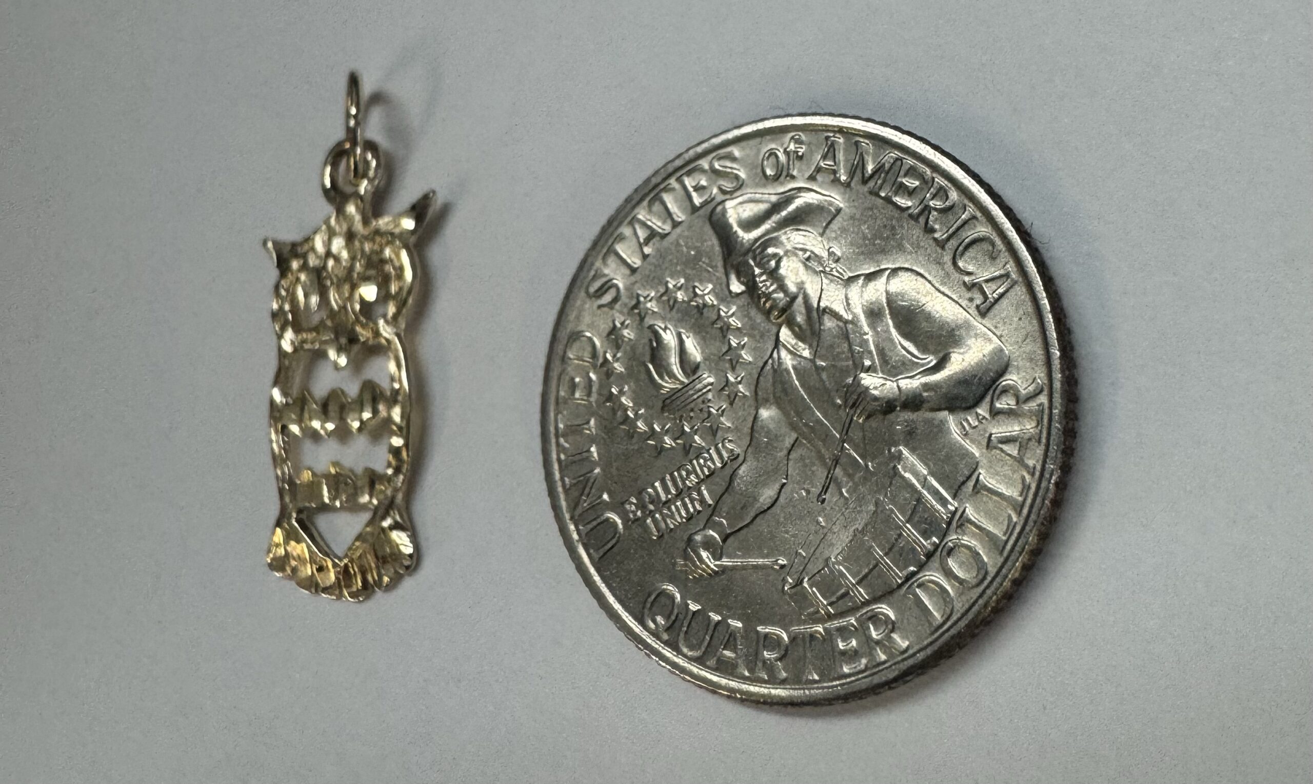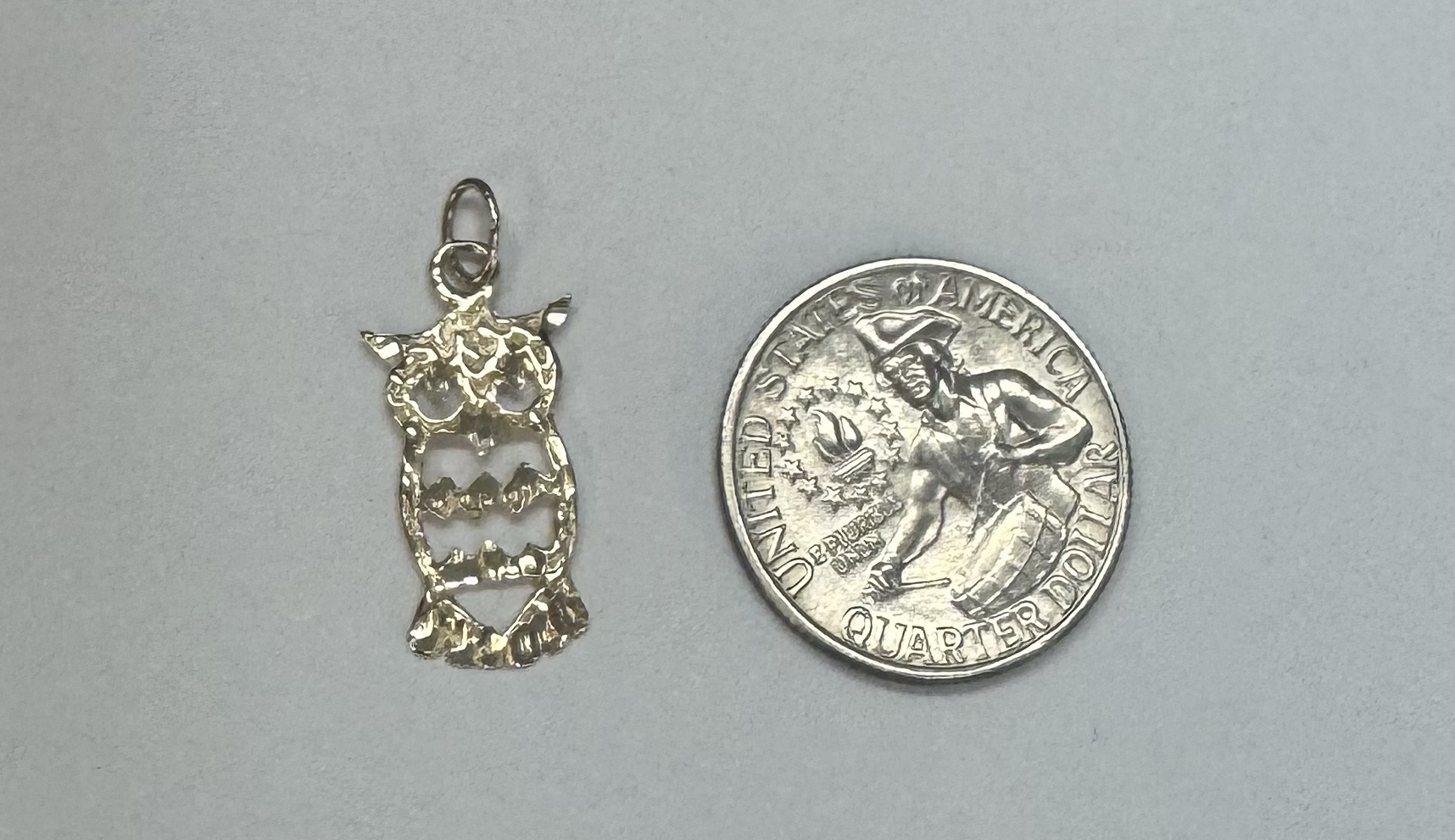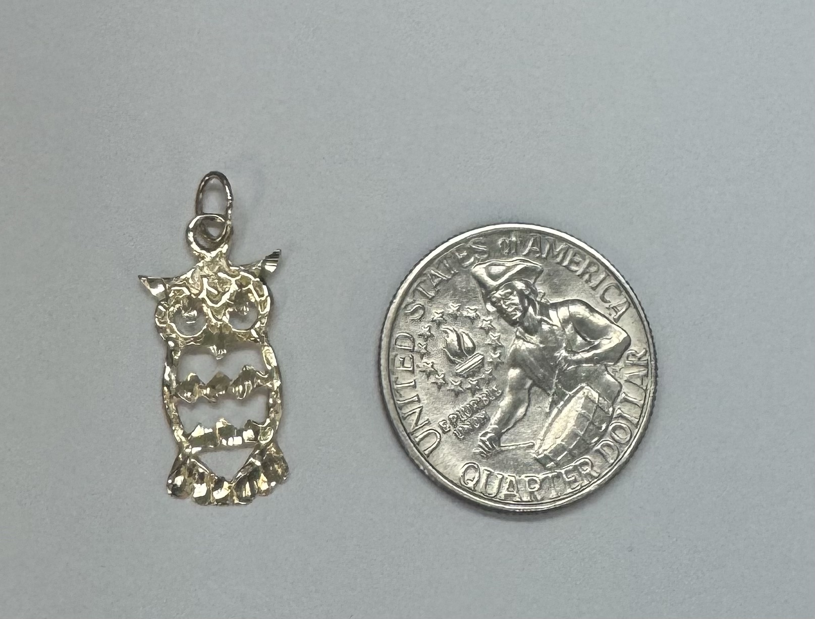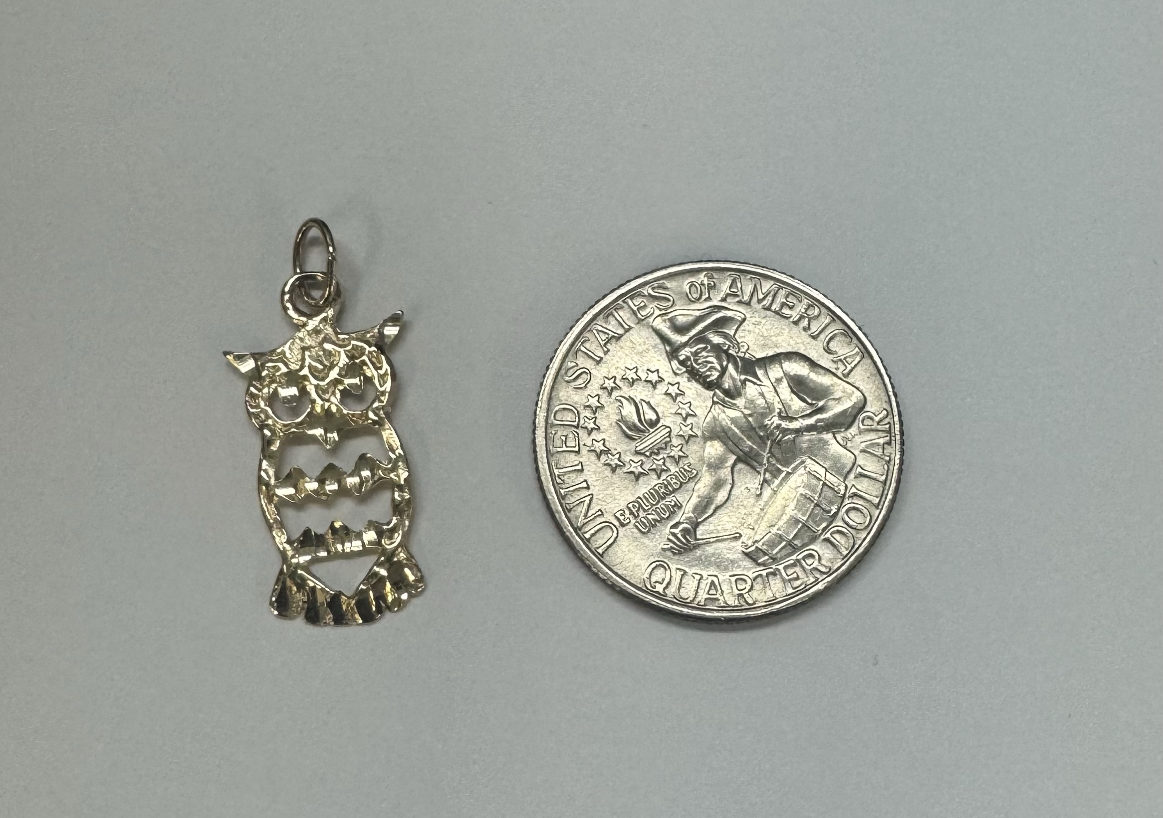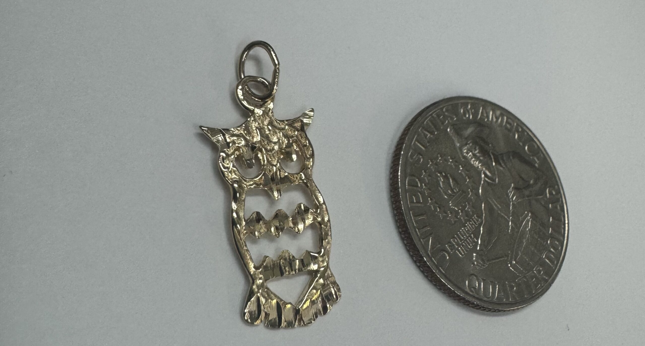 14k yellow gold openwork Owl charm/pendant. This piece has an entire weight of 1.2 grams.