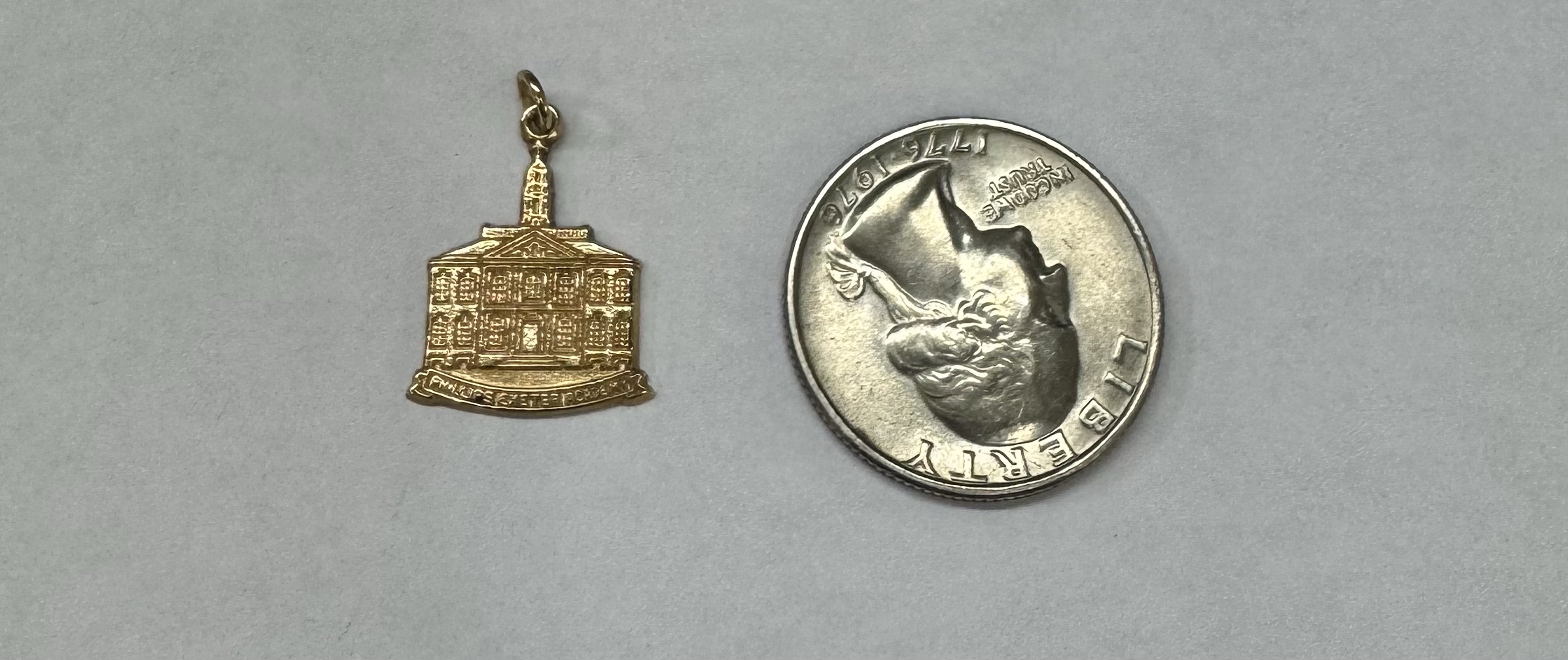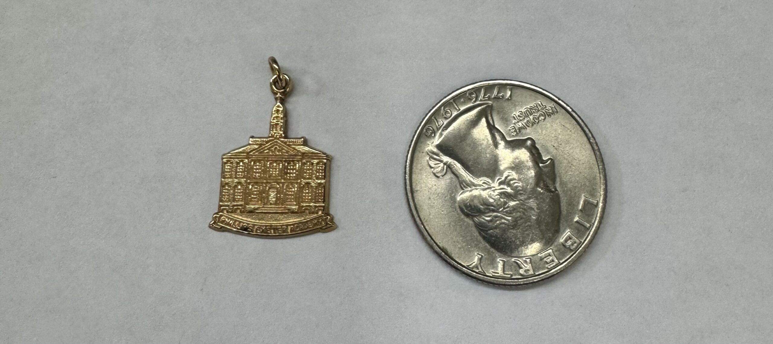 14k yellow gold Phillips Exeter Academy charm/pendant. This piece has an entire weight of 1.8 grams.