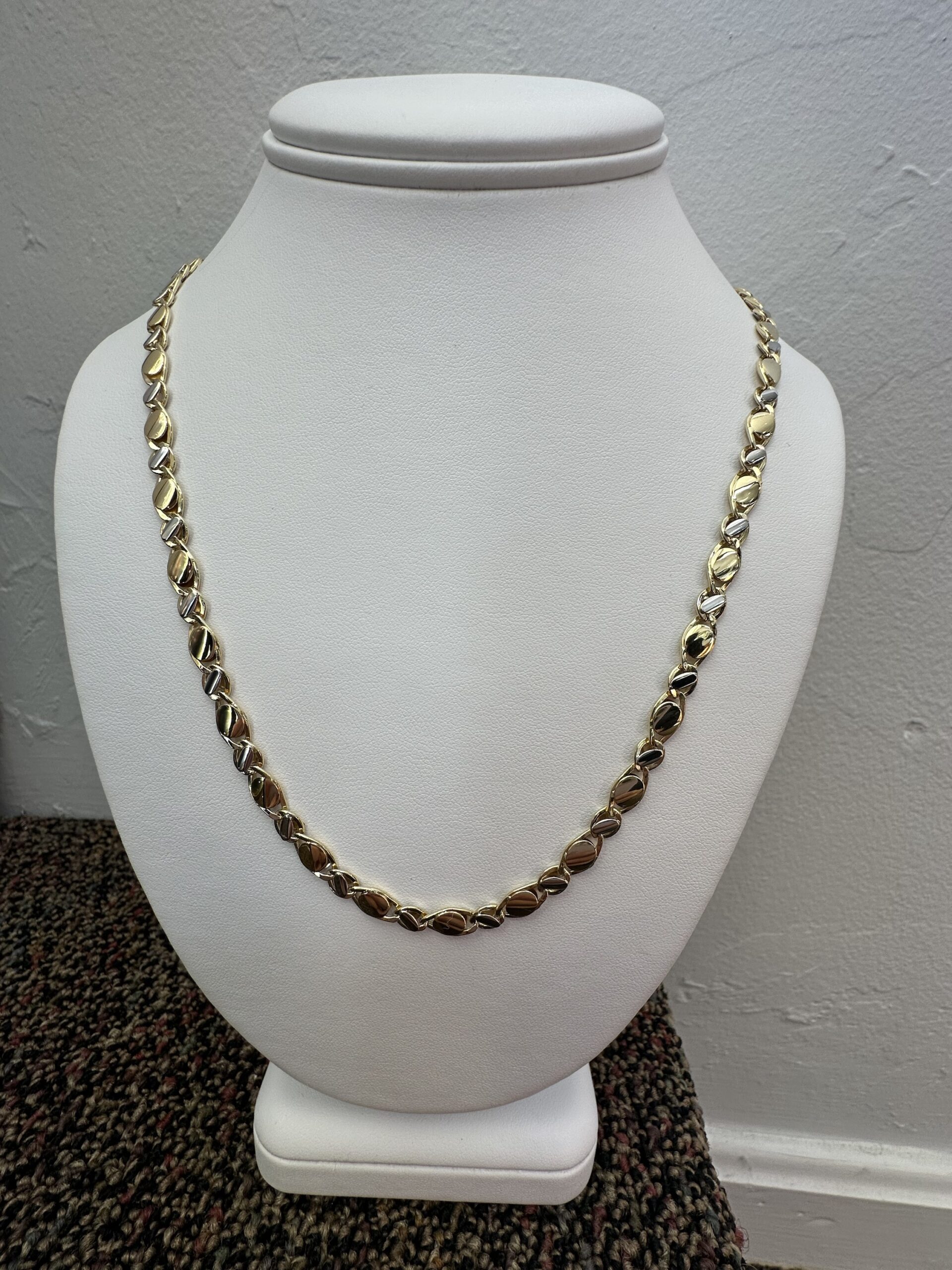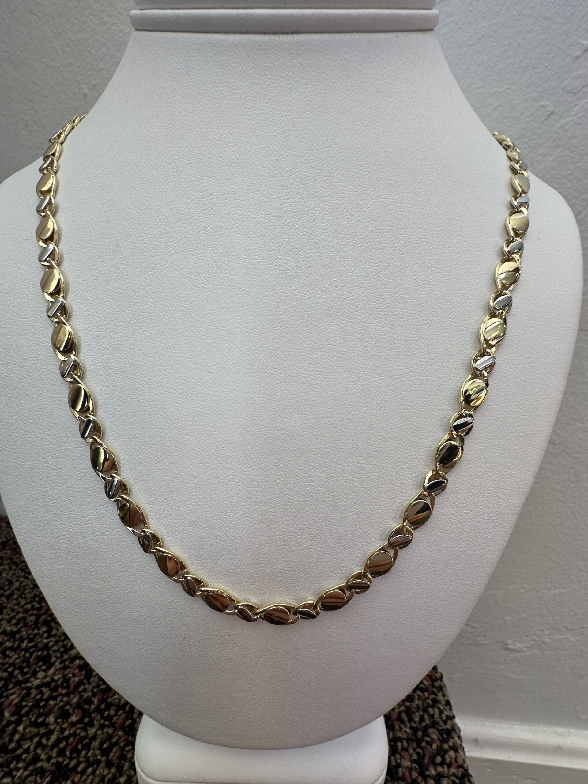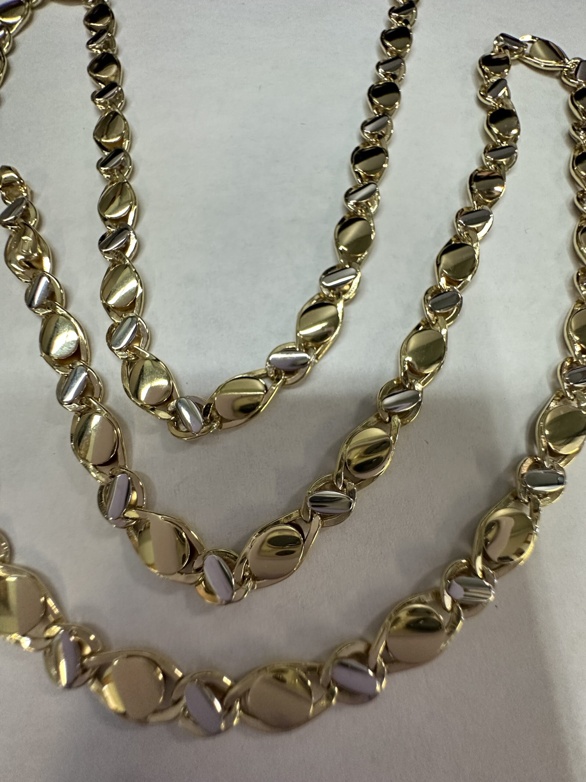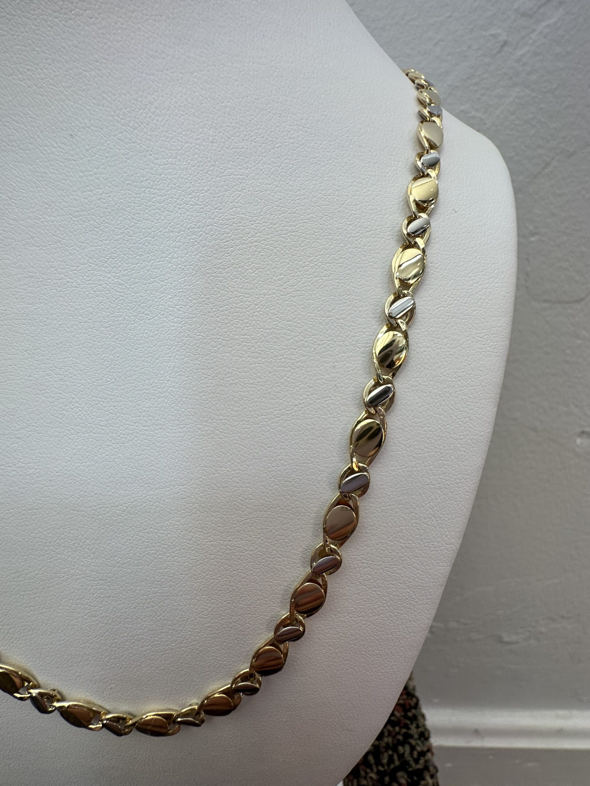 One-of-a-kind 18k 2tone 23.5” fancy link necklace directly imported from Italy, 13.56 grams.