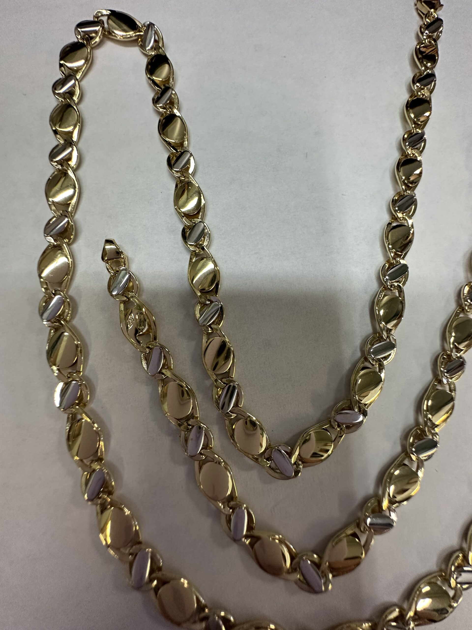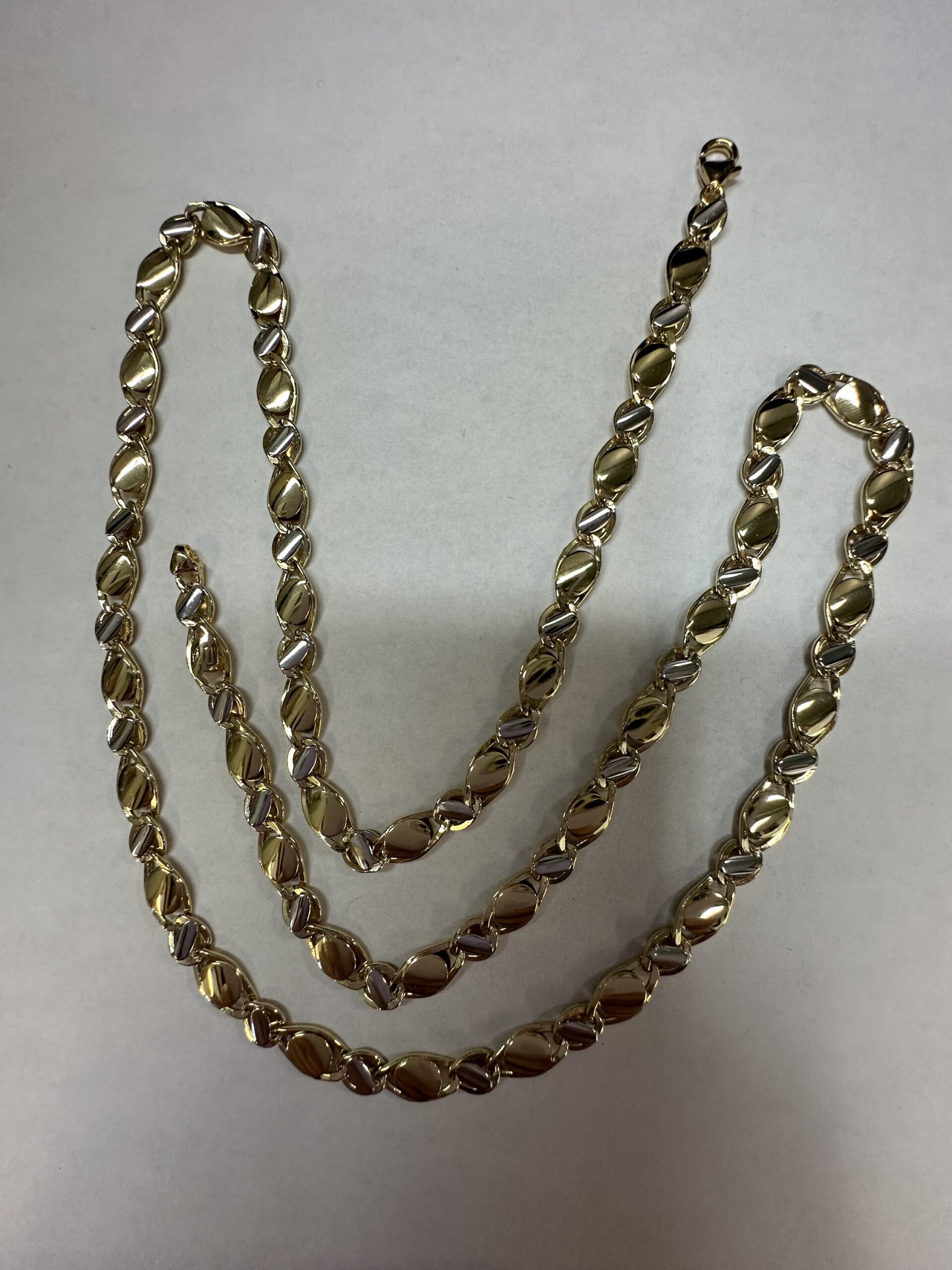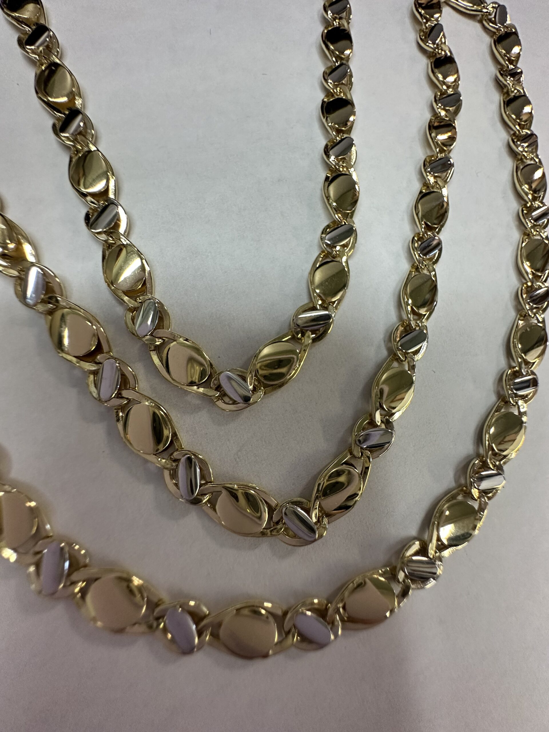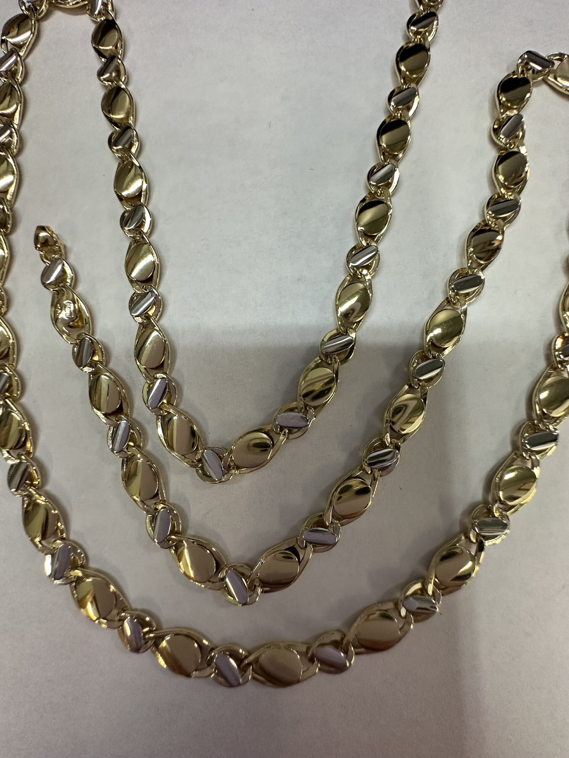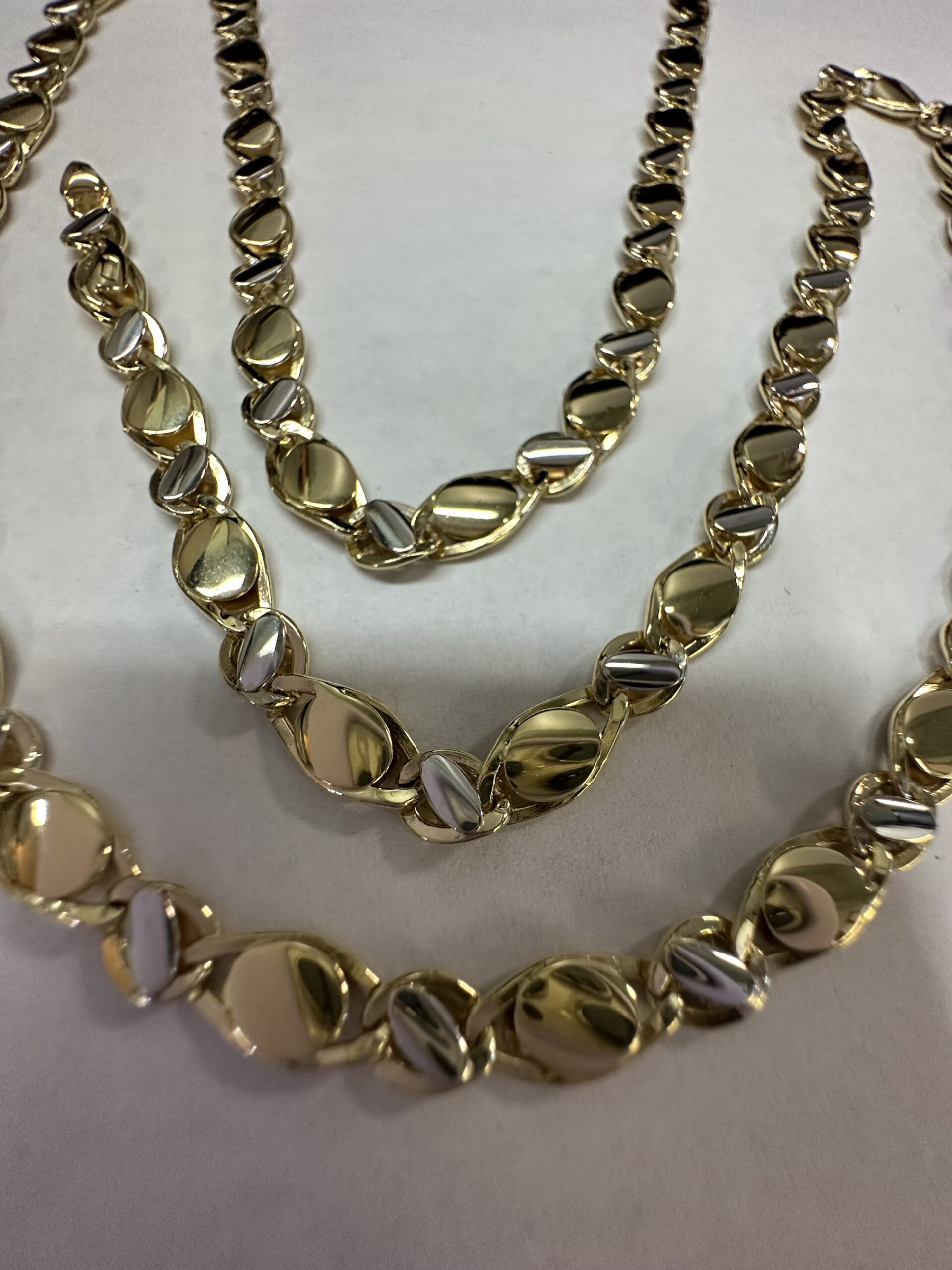 One-of-a-kind 18k 2tone 23.5” fancy link necklace directly imported from Italy, 13.56 grams.