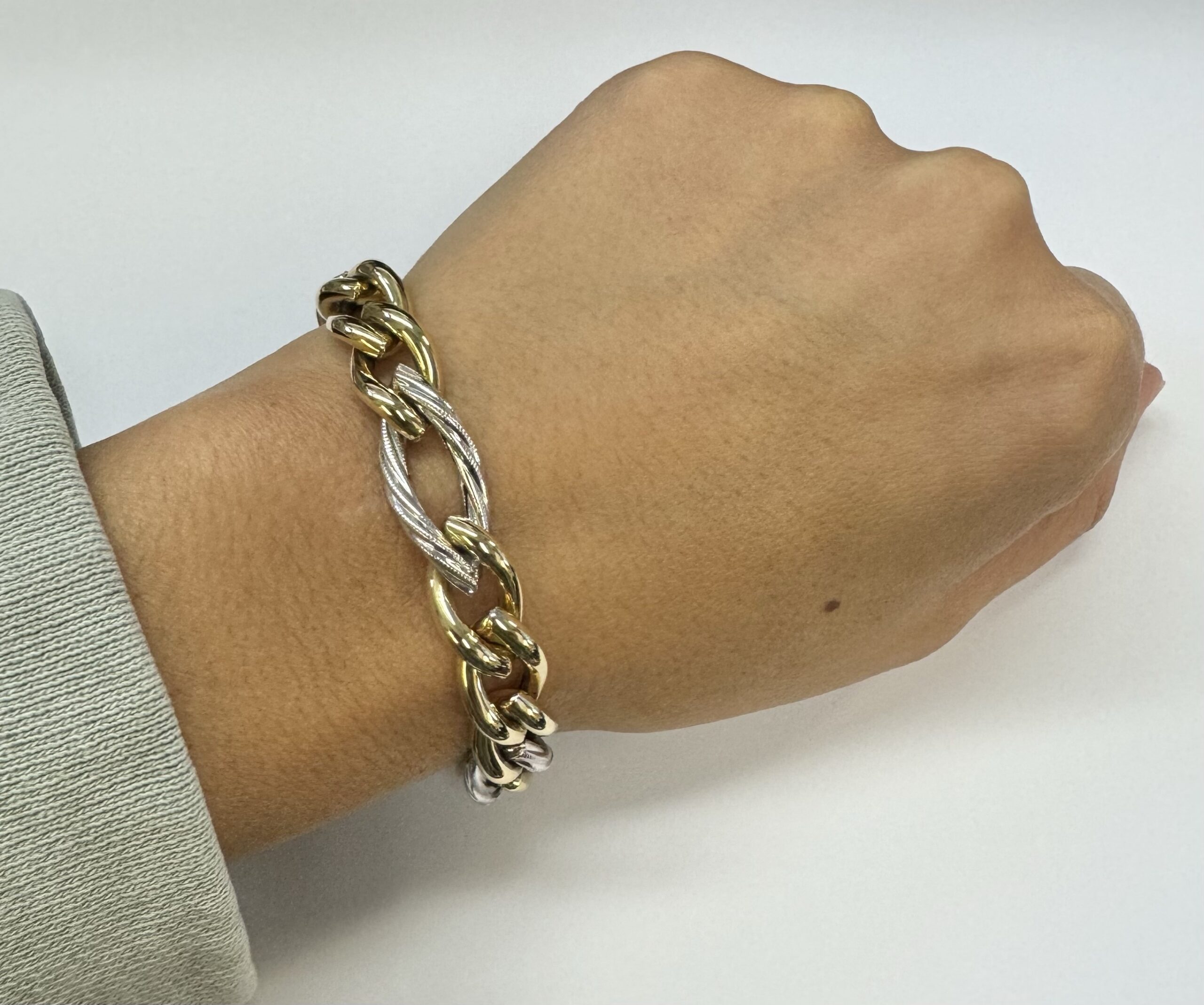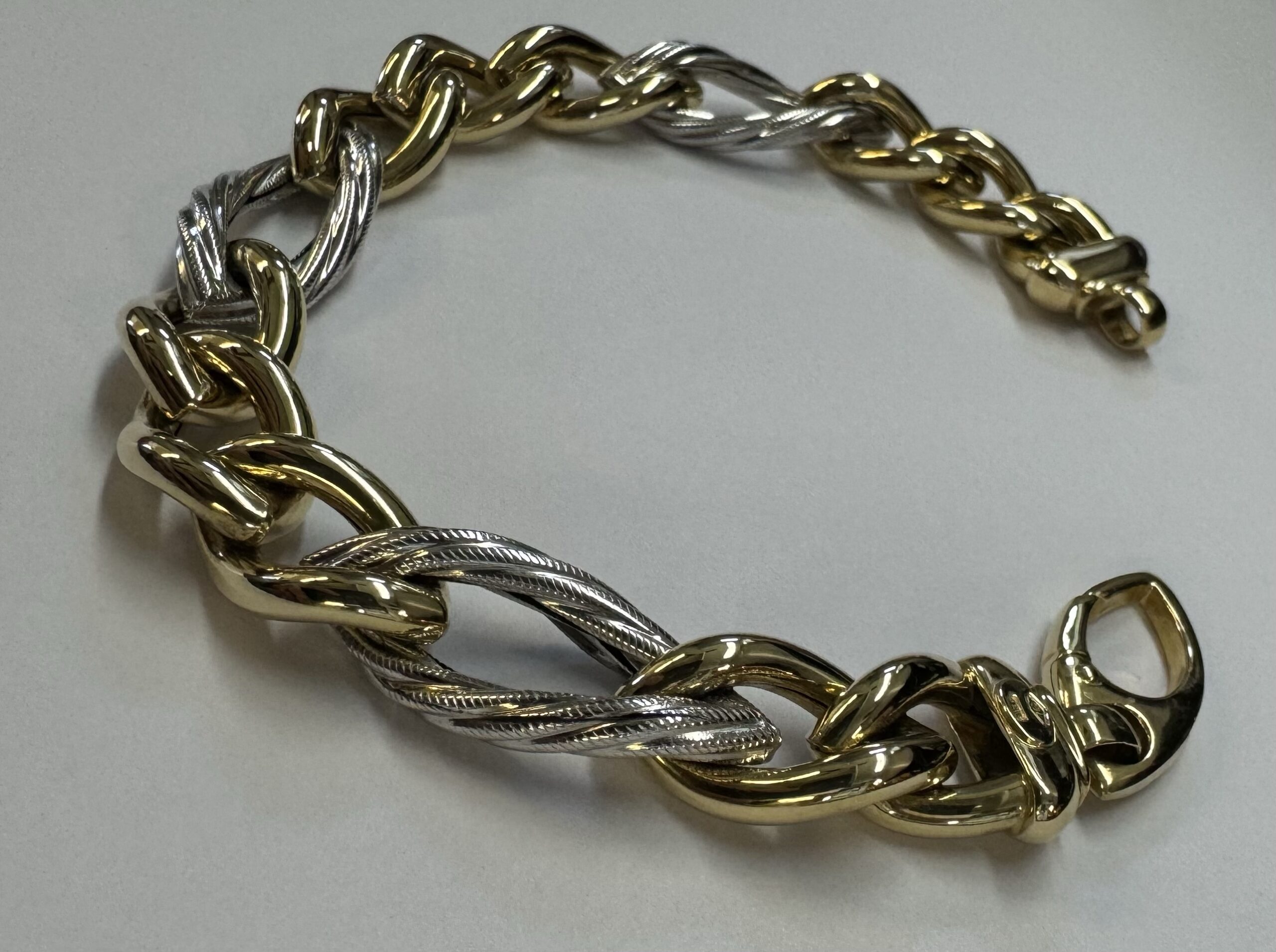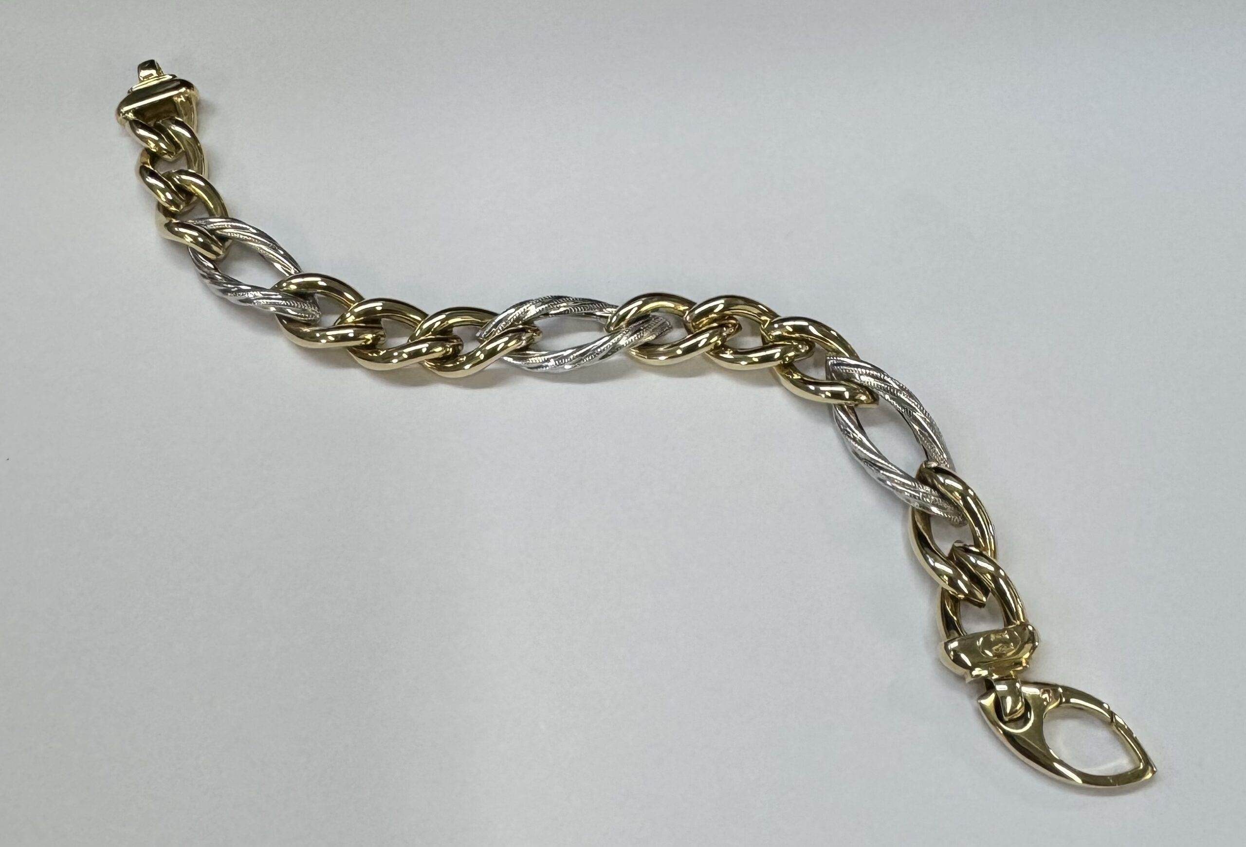 The perfect accessory to any outfit! An 18k 2tone open link bracelet, 7.5″, 18.1 grams, directly imported from Italy, normally $2,795, on sale for $1,795!!! Only one of these beauties available!