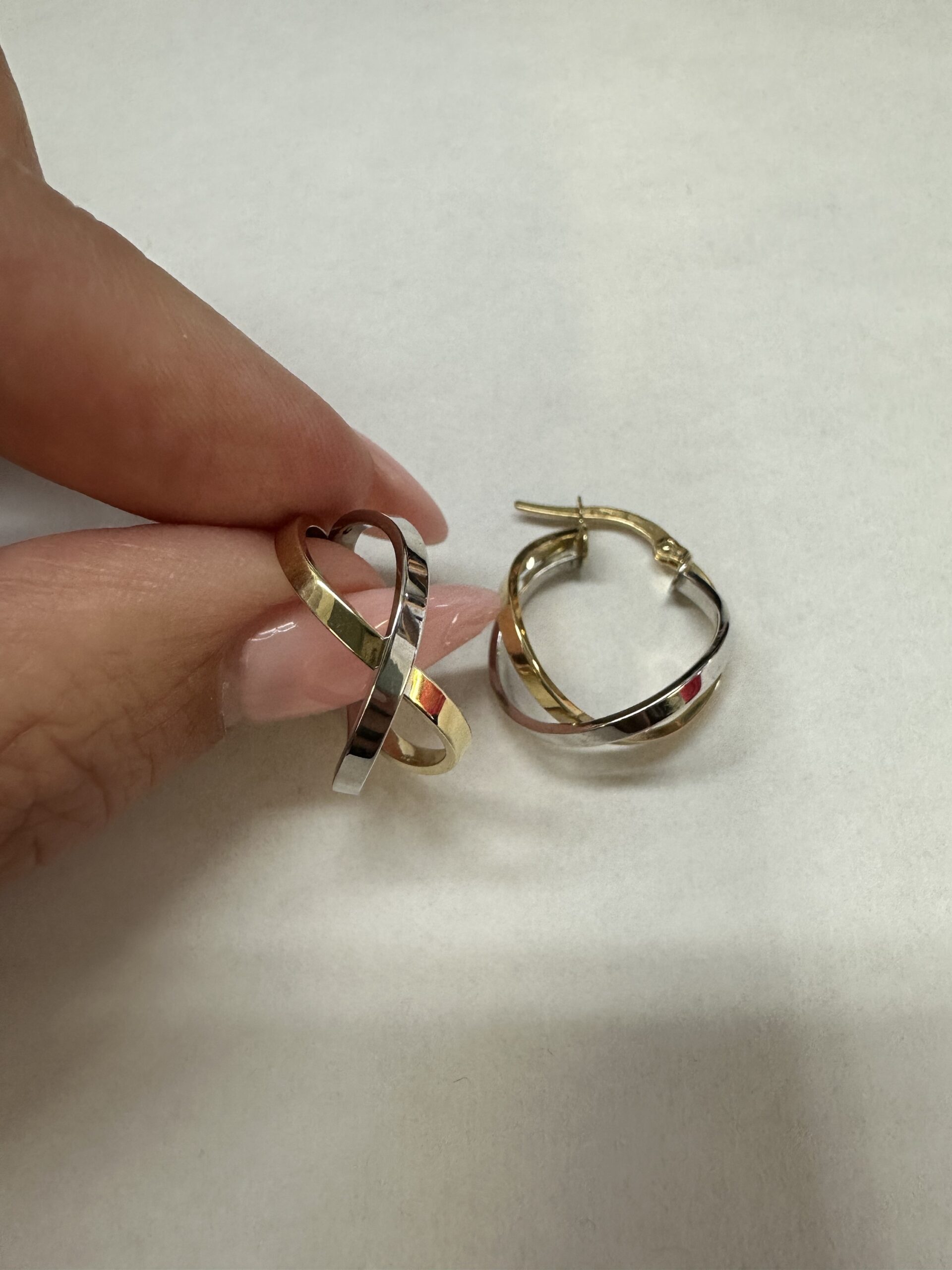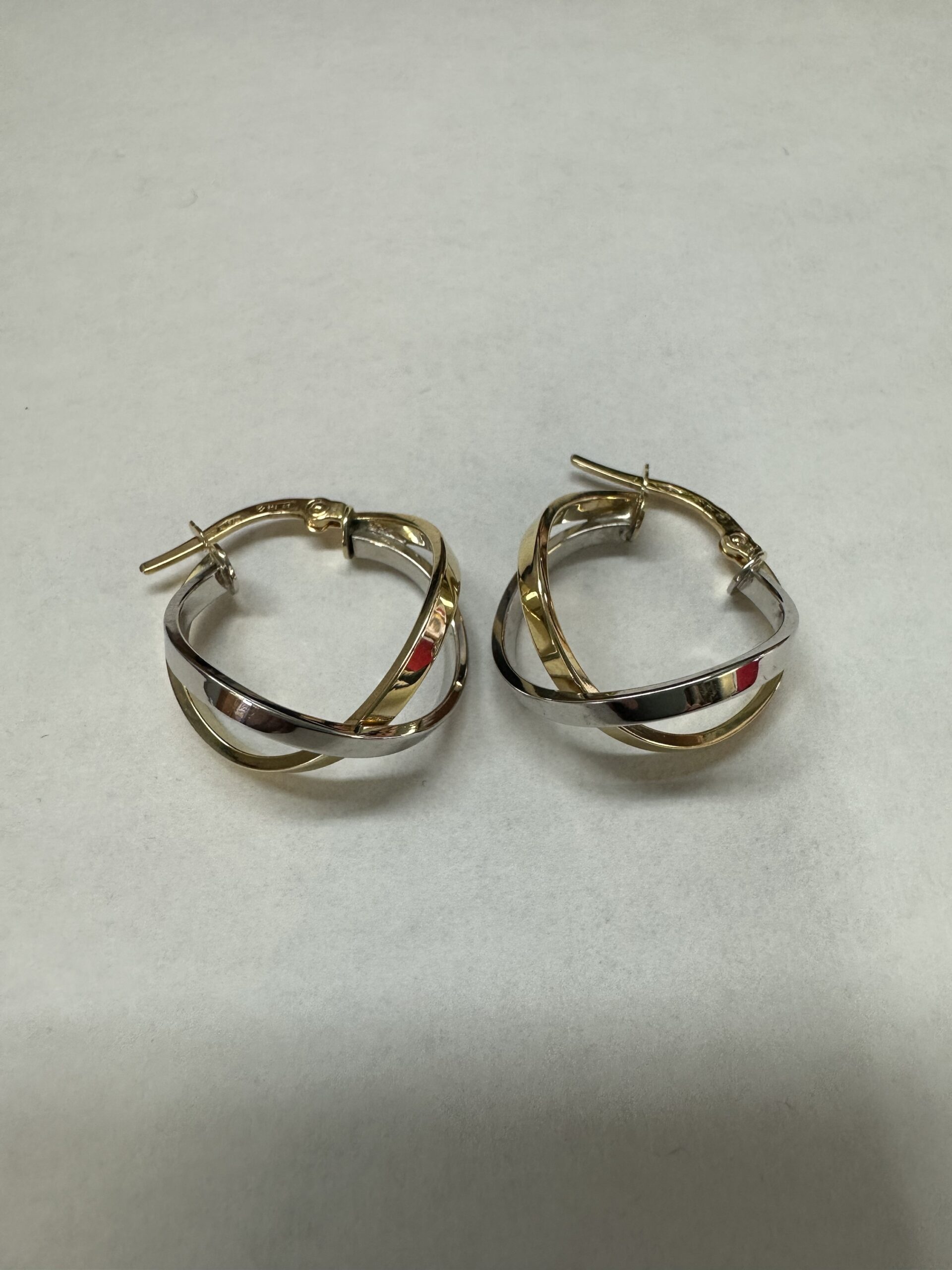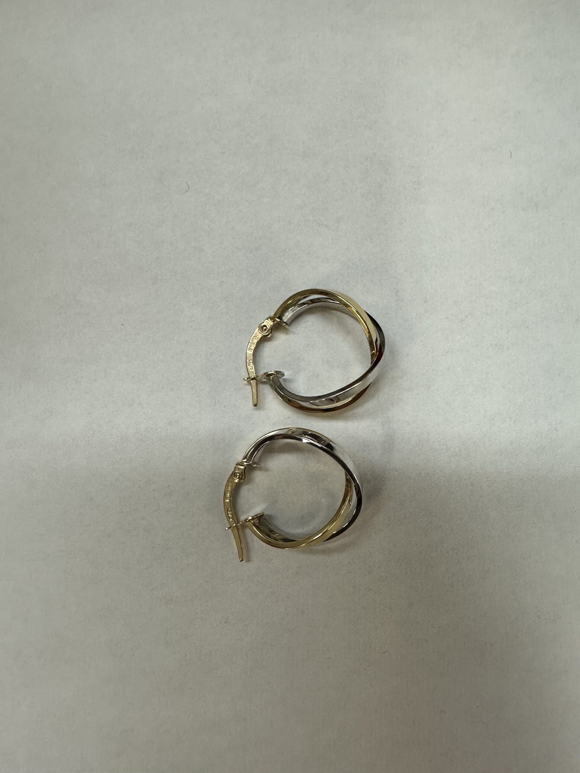 One-of-a-kind 18k two-tone round small hoop earrings directly imported from Italy. These earrings measure approximately 21 x 9 mm in size and they have an entire weight of 2.2 grams.