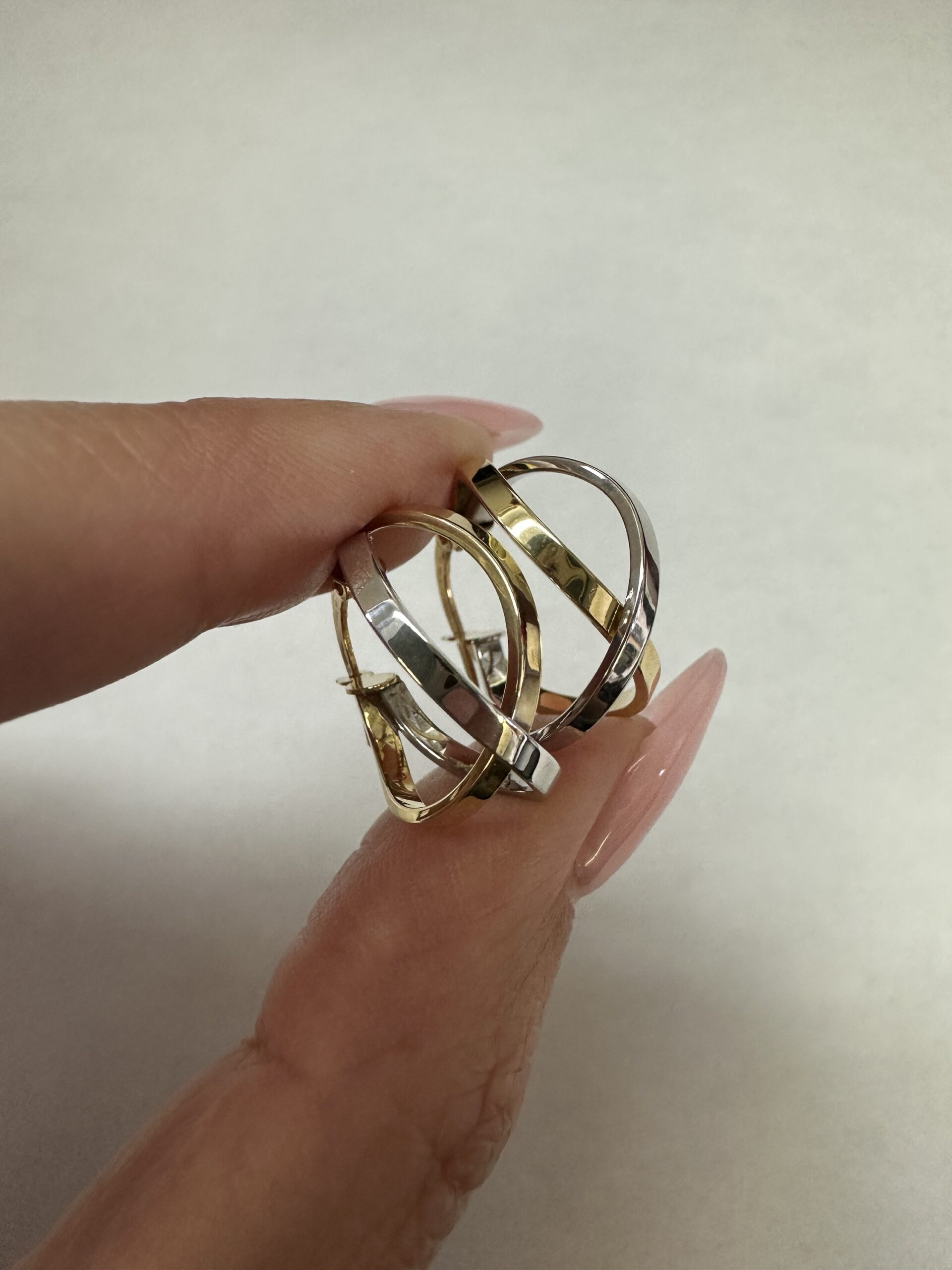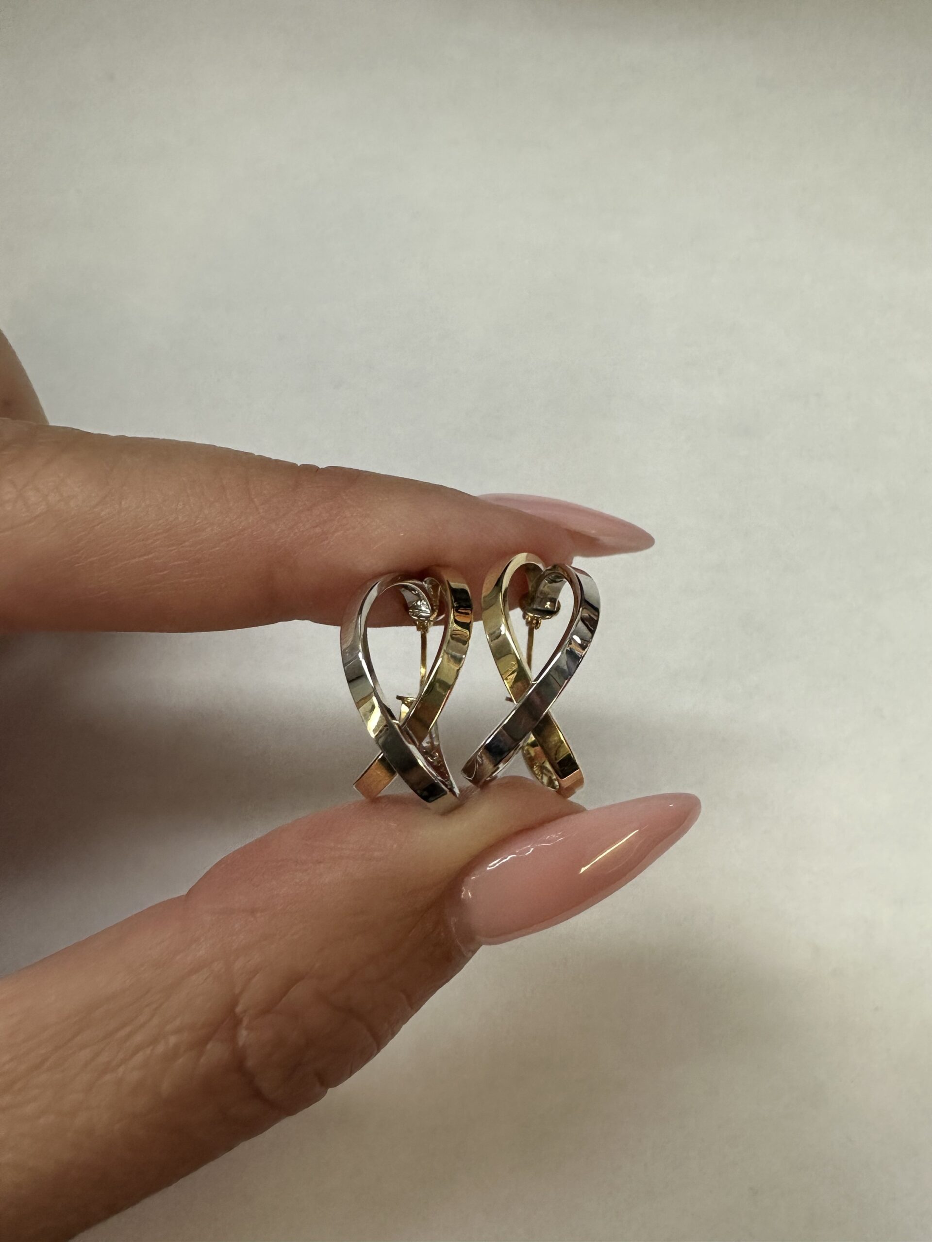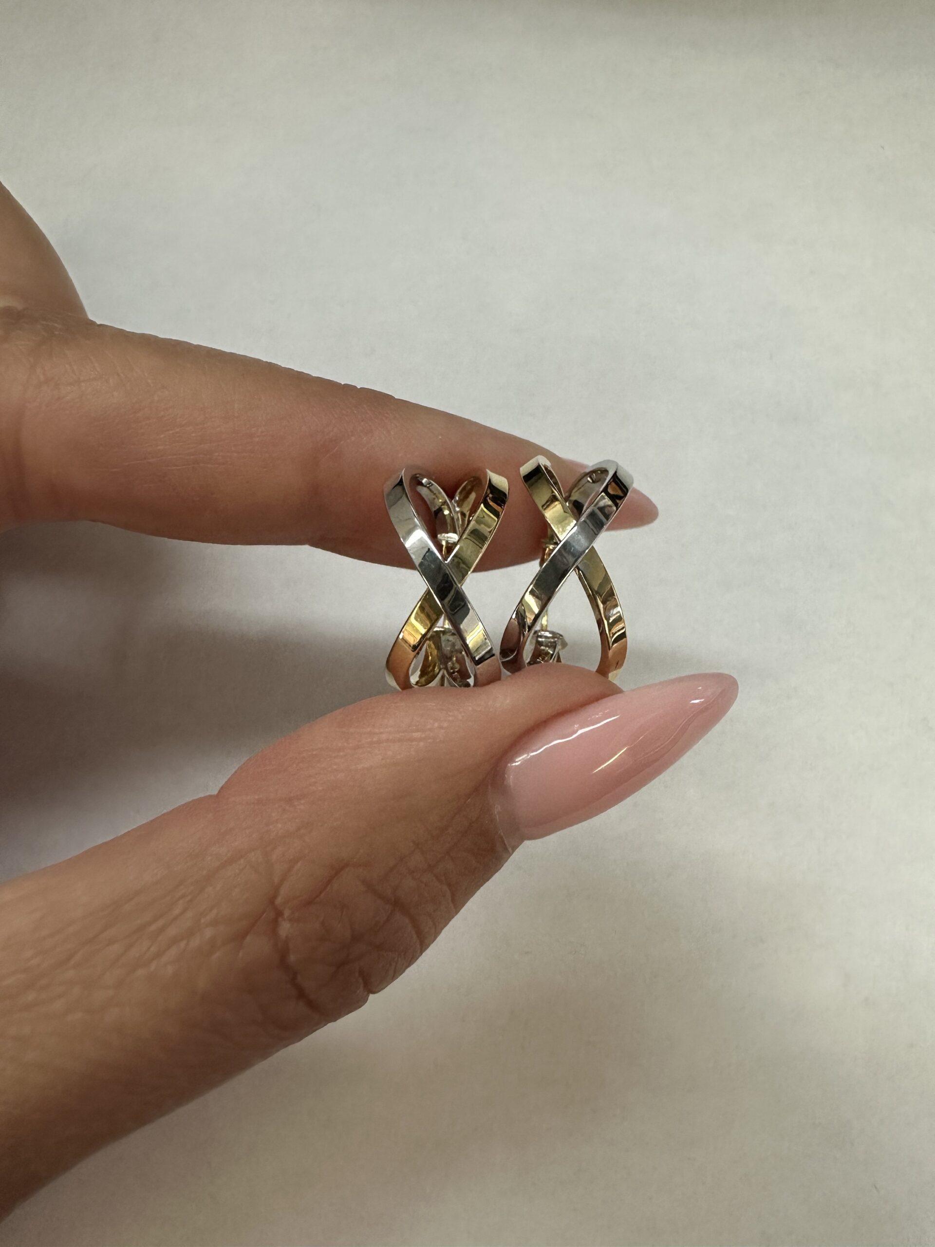 One-of-a-kind 18k two-tone round small hoop earrings directly imported from Italy. These earrings measure approximately 21 x 9 mm in size and they have an entire weight of 2.2 grams.
