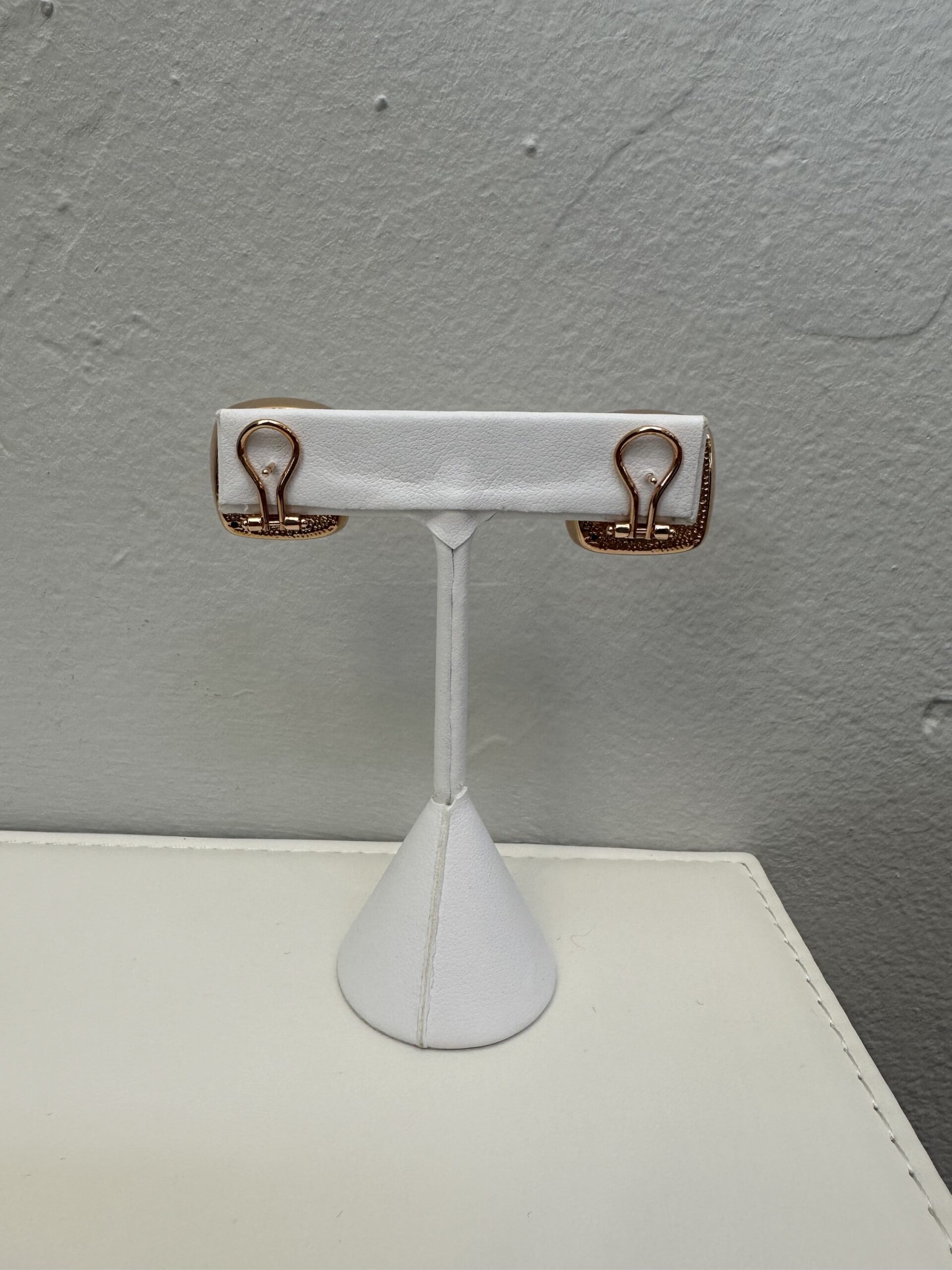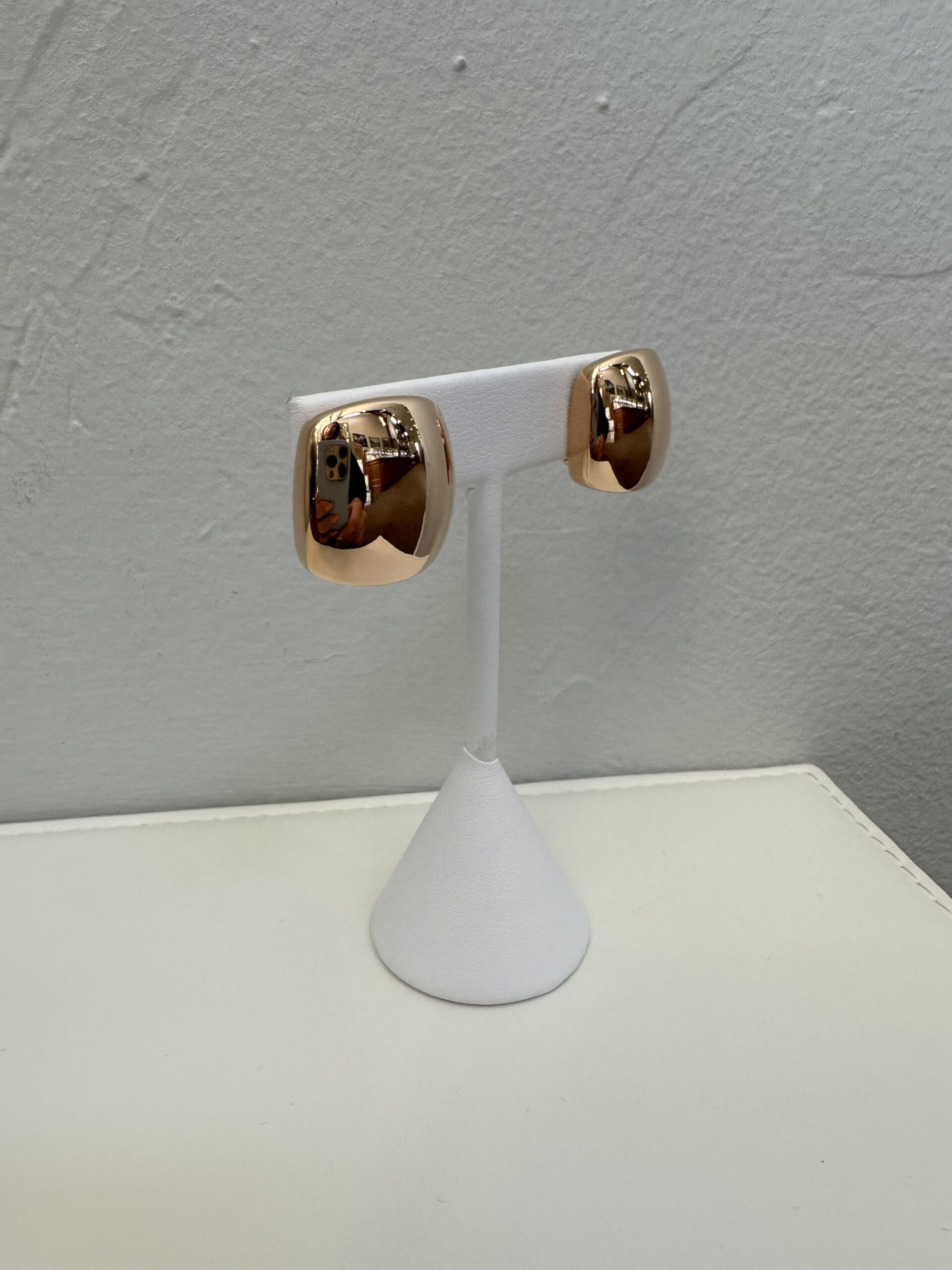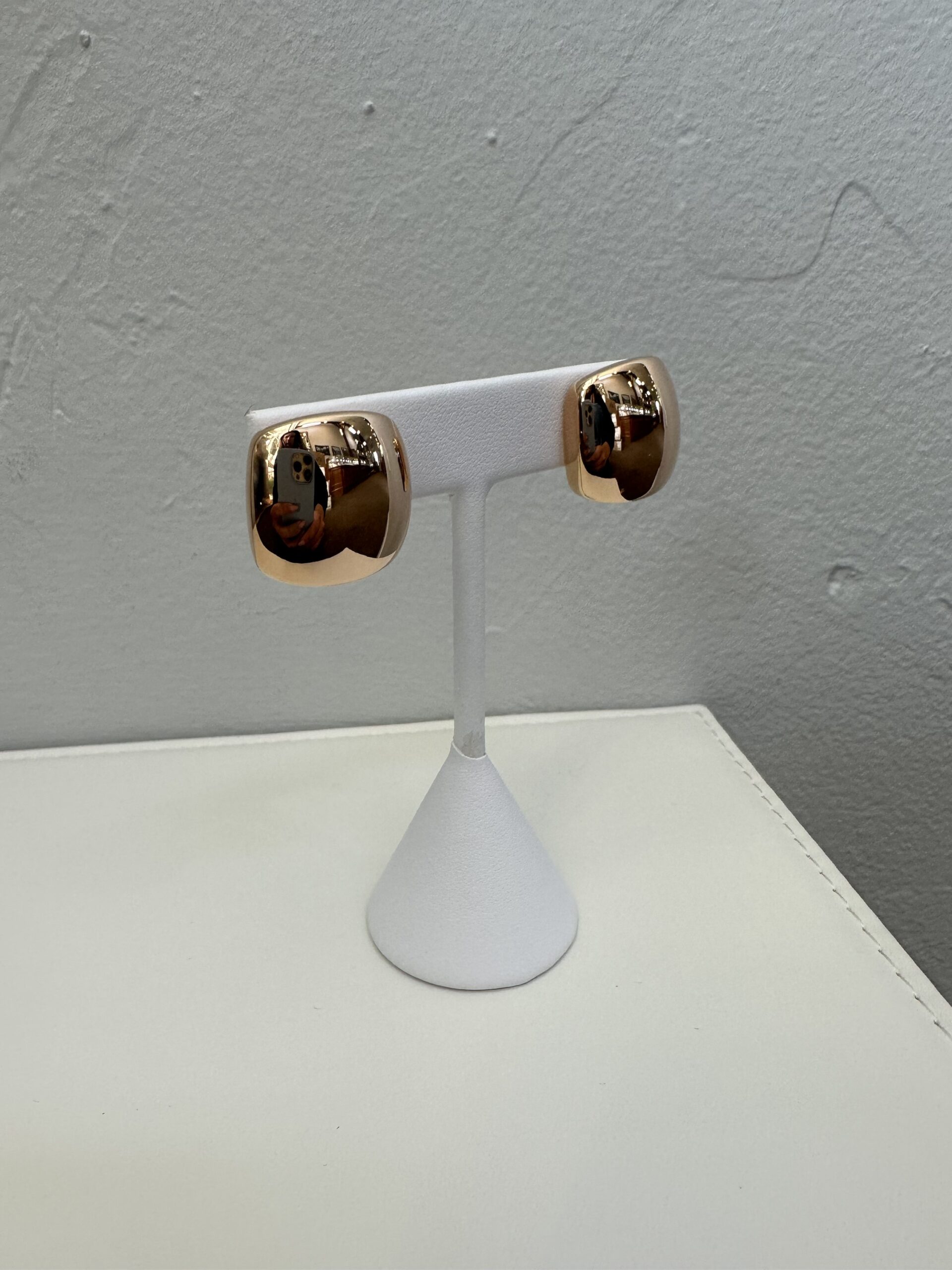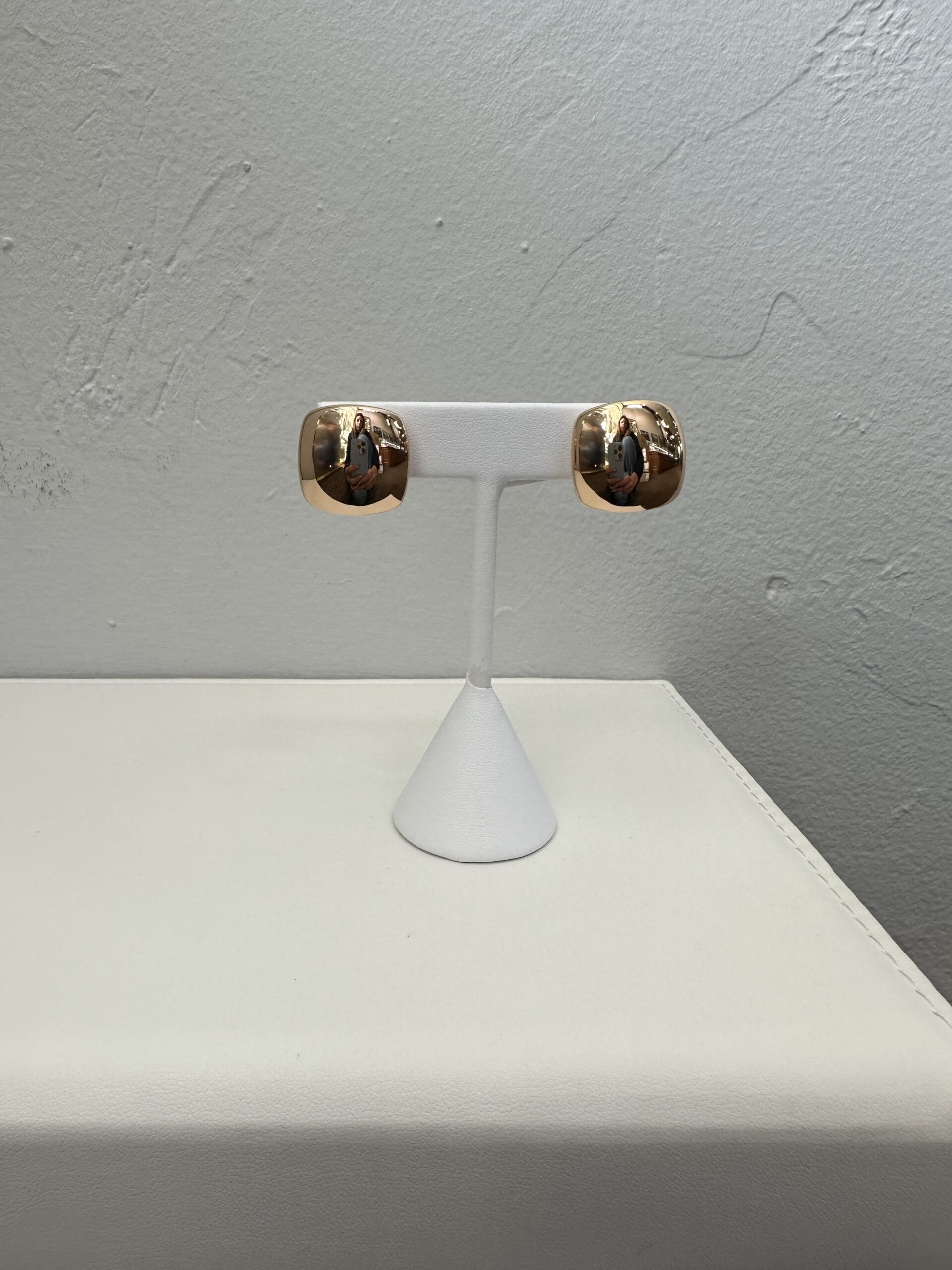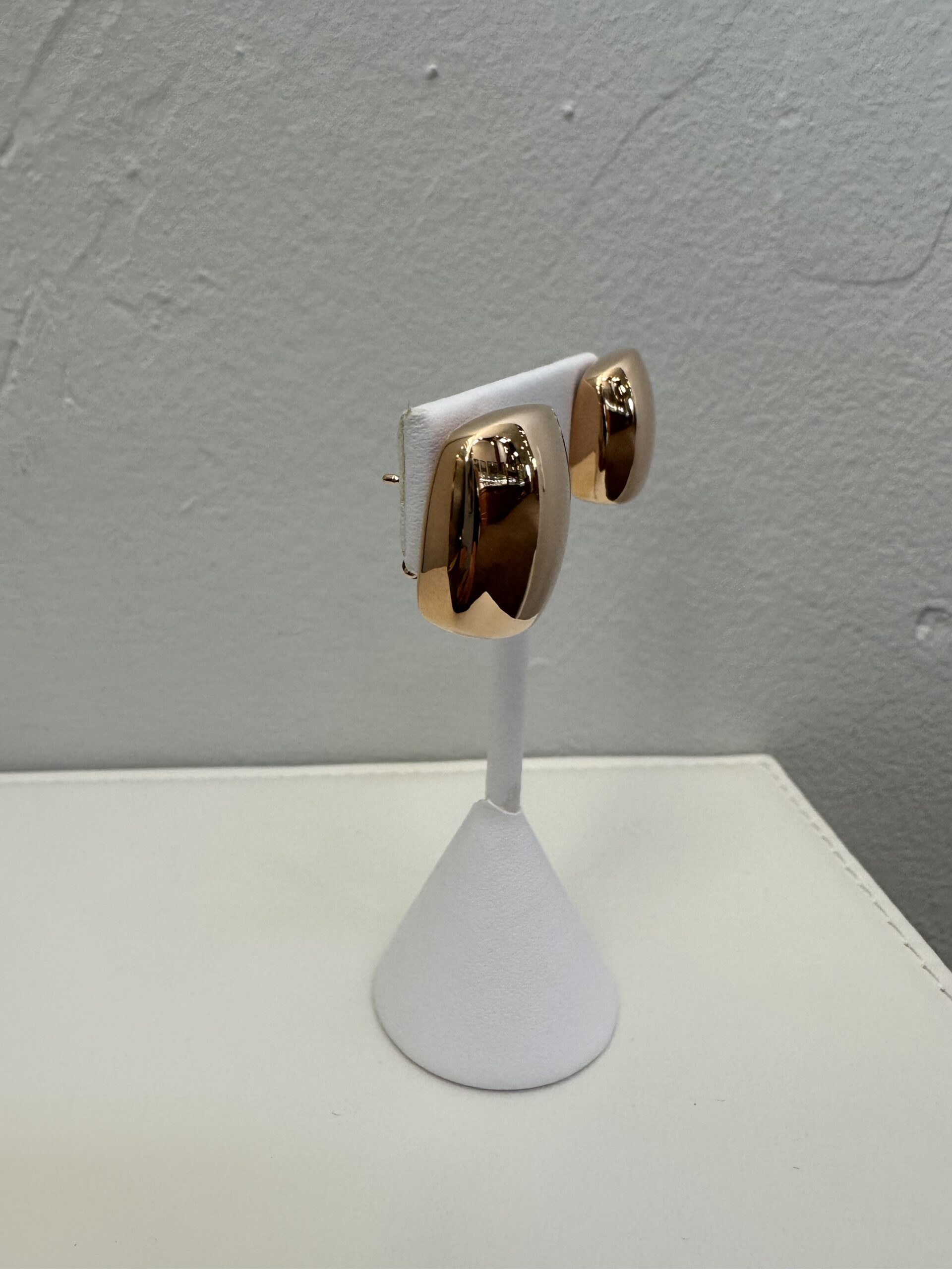 One-of-a-kind 18k rose gold polished cushion-shaped, button style post & clip earrings directly imported from Italy. These earrings measure 20 x 21 mm in size and they have an entire weight of 9.56 grams.