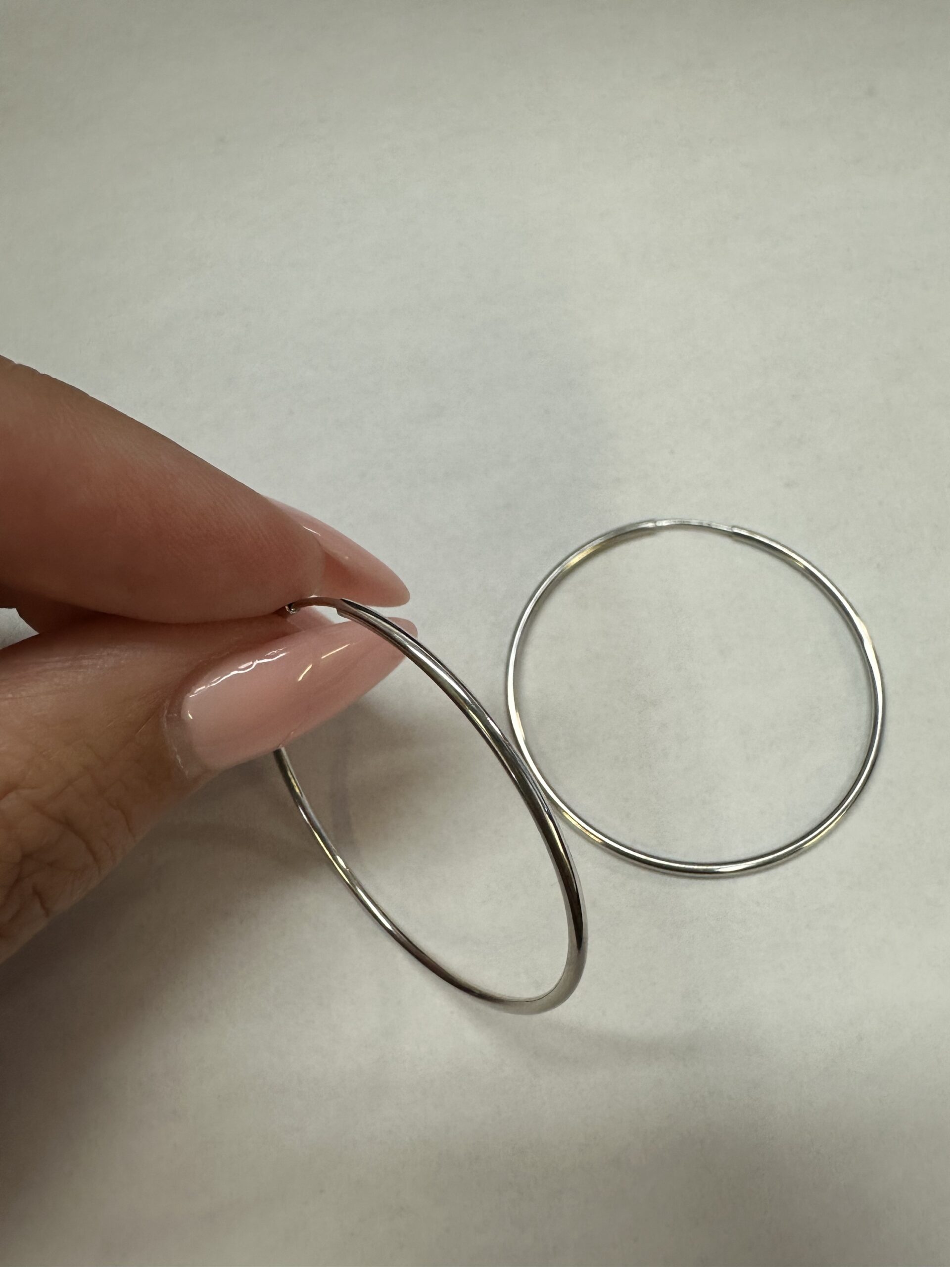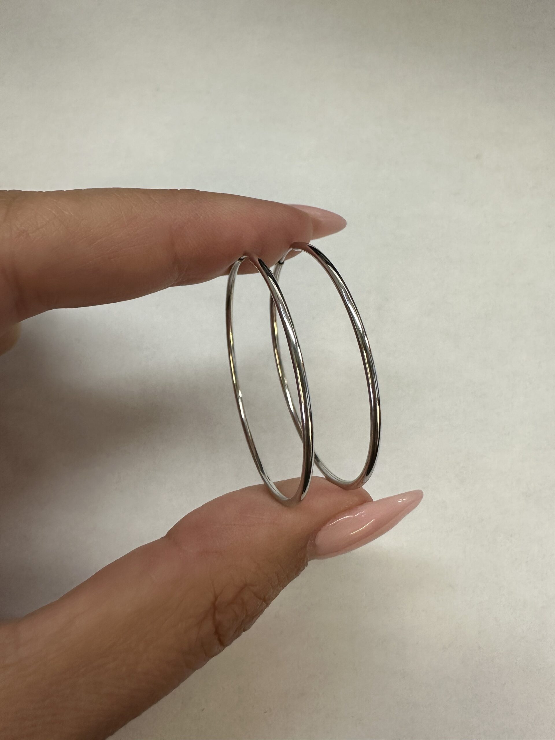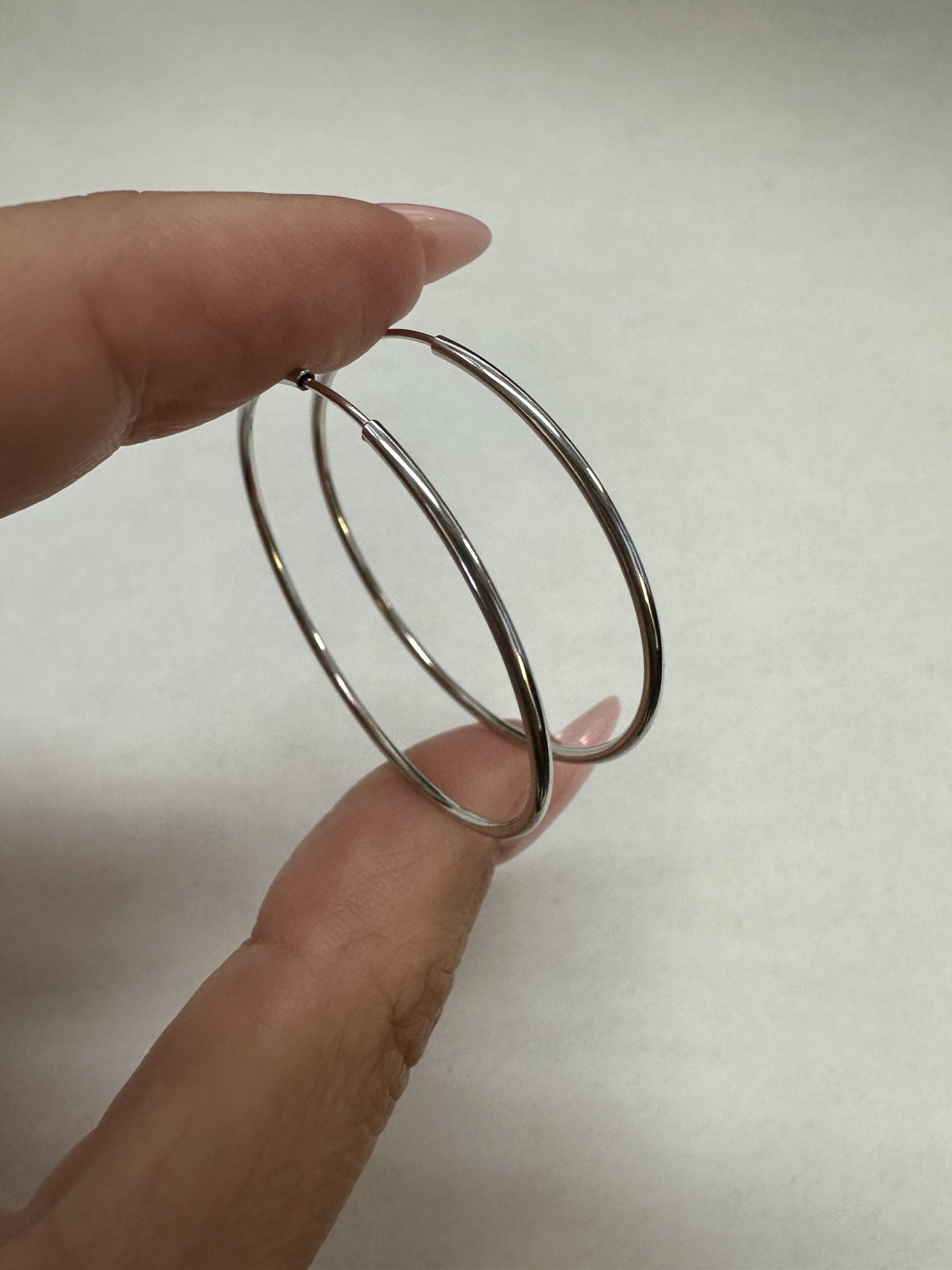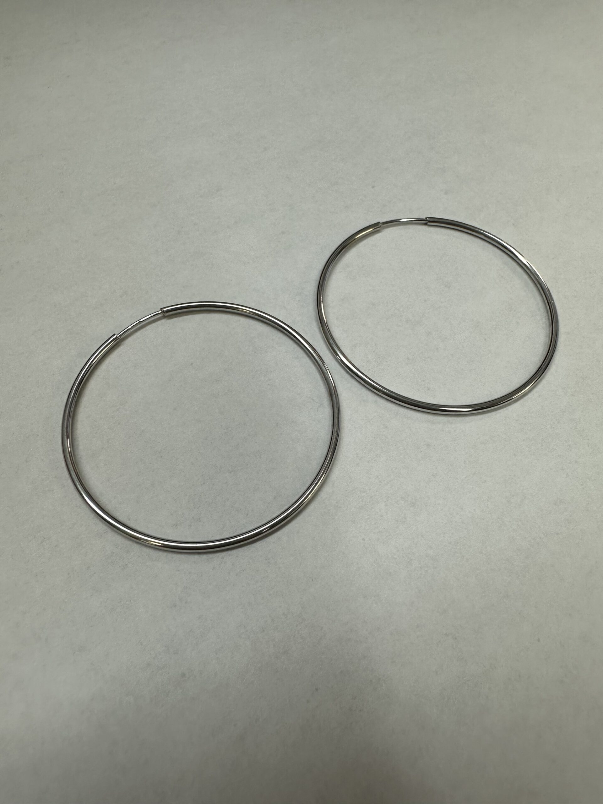 One-of-a-kind 18k white gold 1.4 x 36 mm endless round hoop earrings directly imported from Italy. These earrings have an entire weight of 2.3 grams.