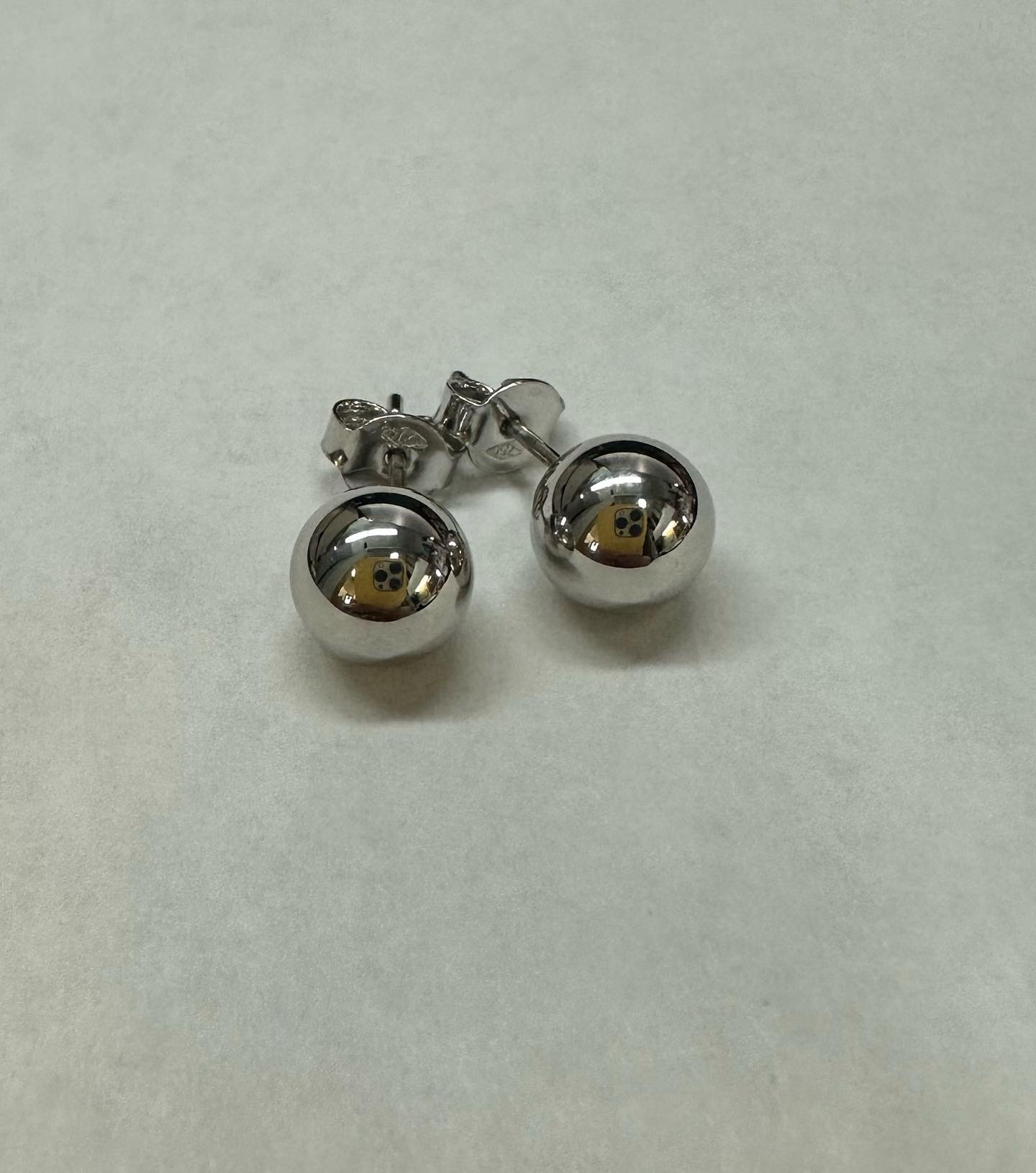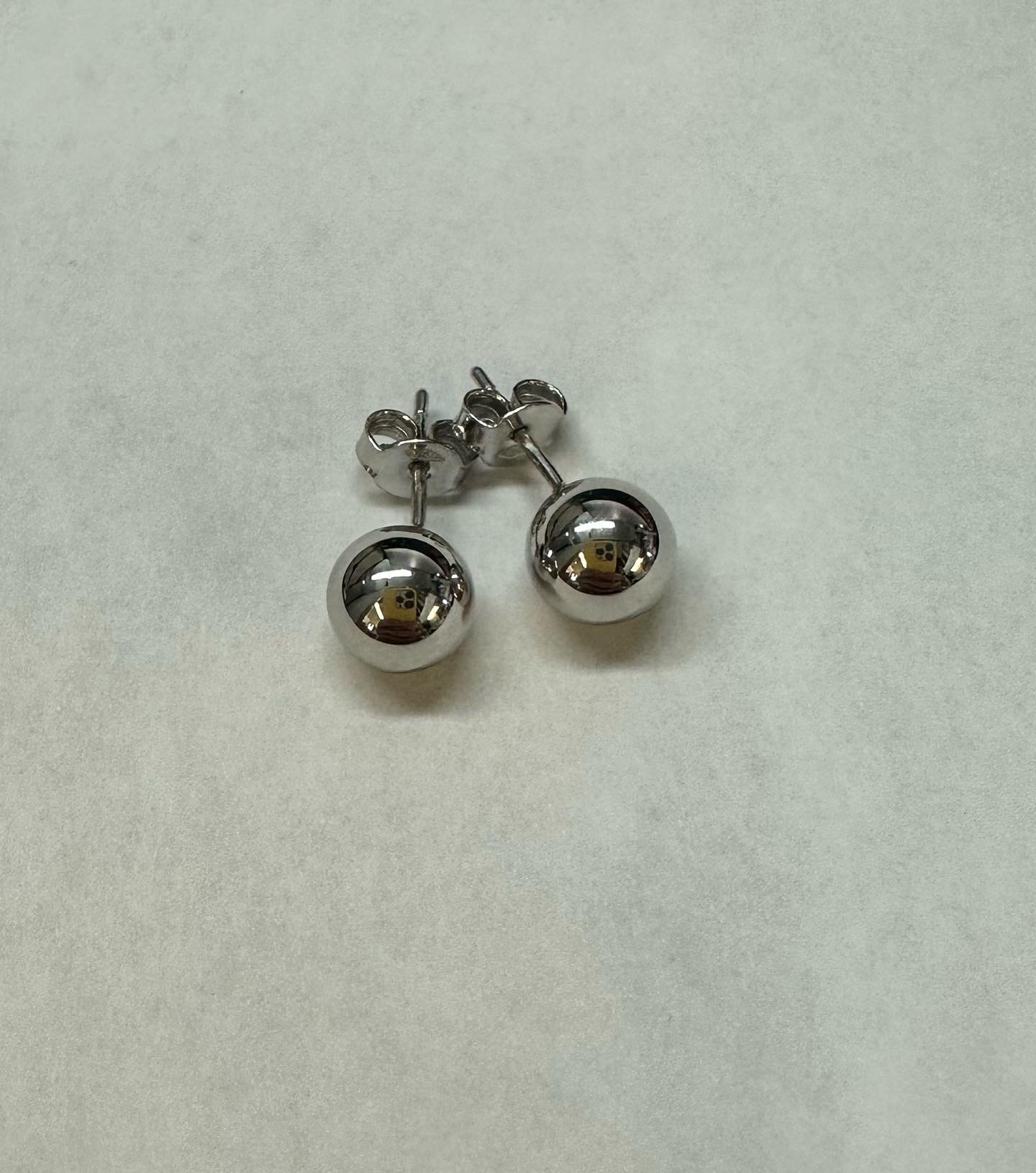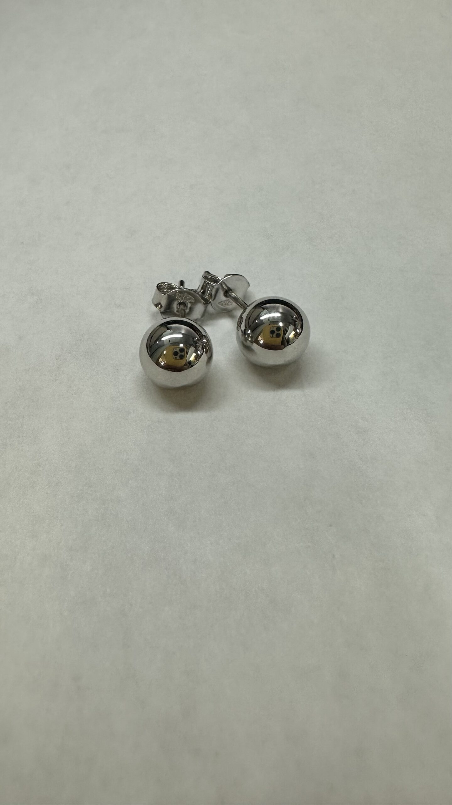One pair available! 18k white gold 7.5 mm polished ball stud earrings imported from Italy, 2.25 grams.