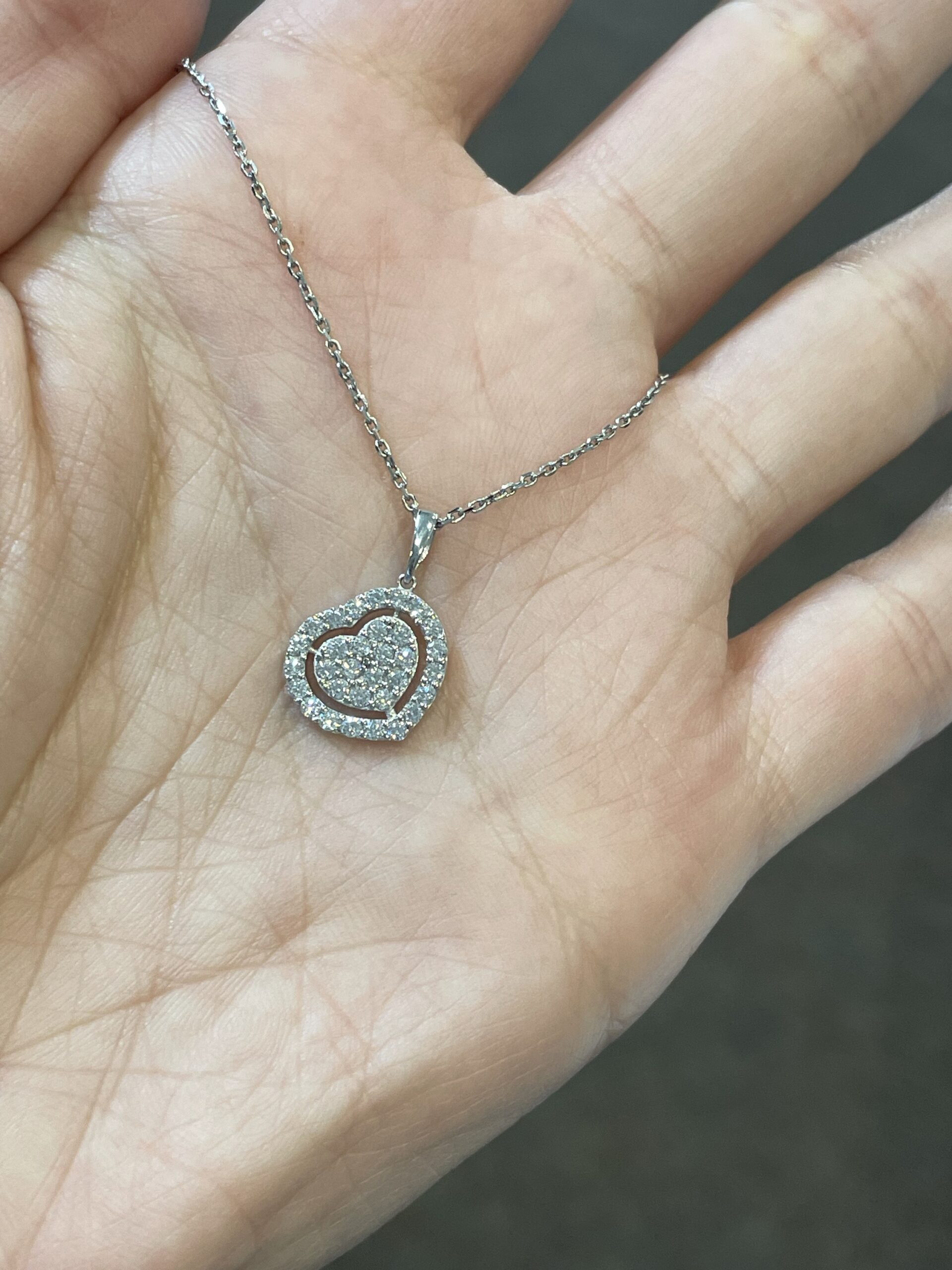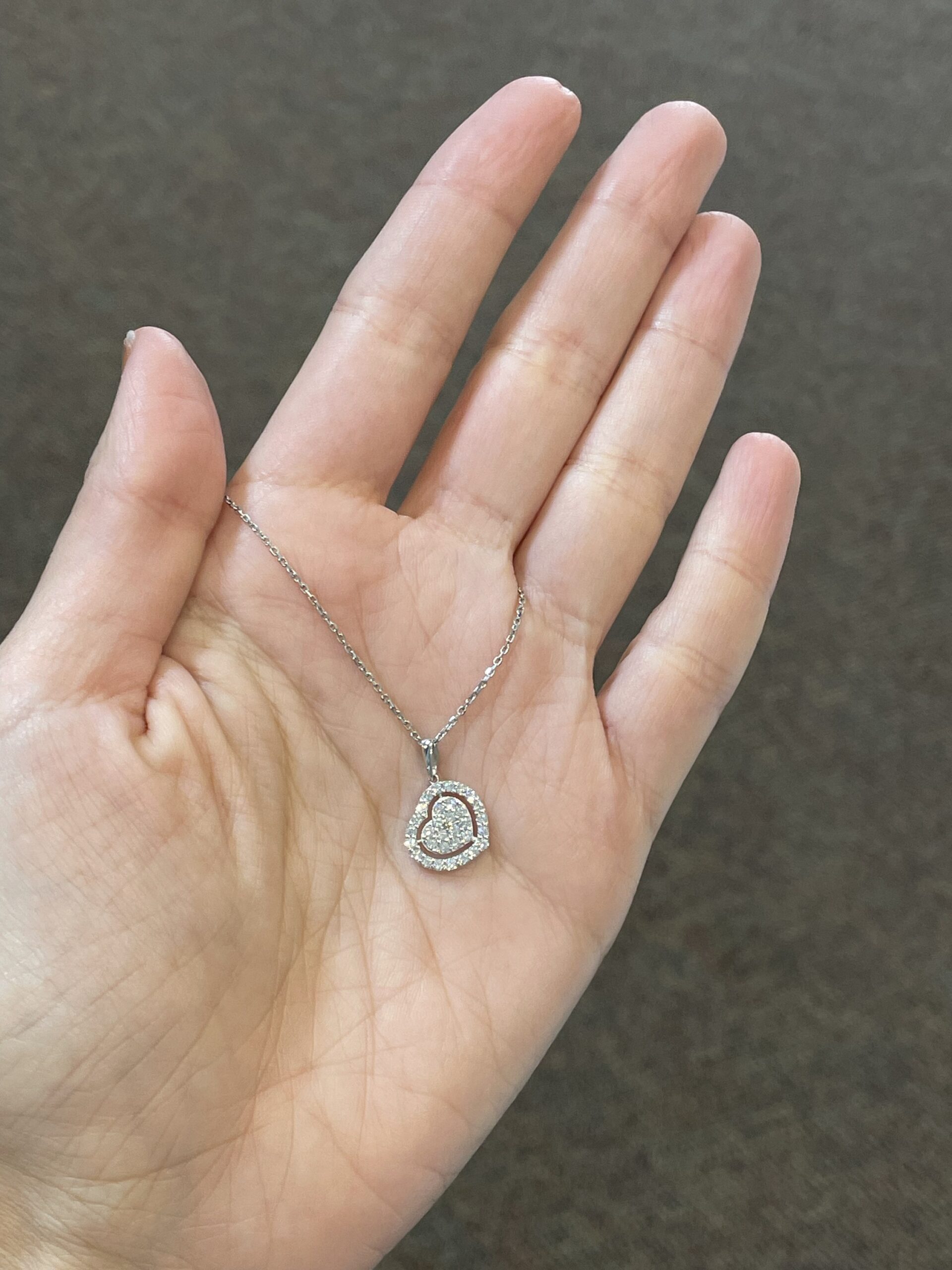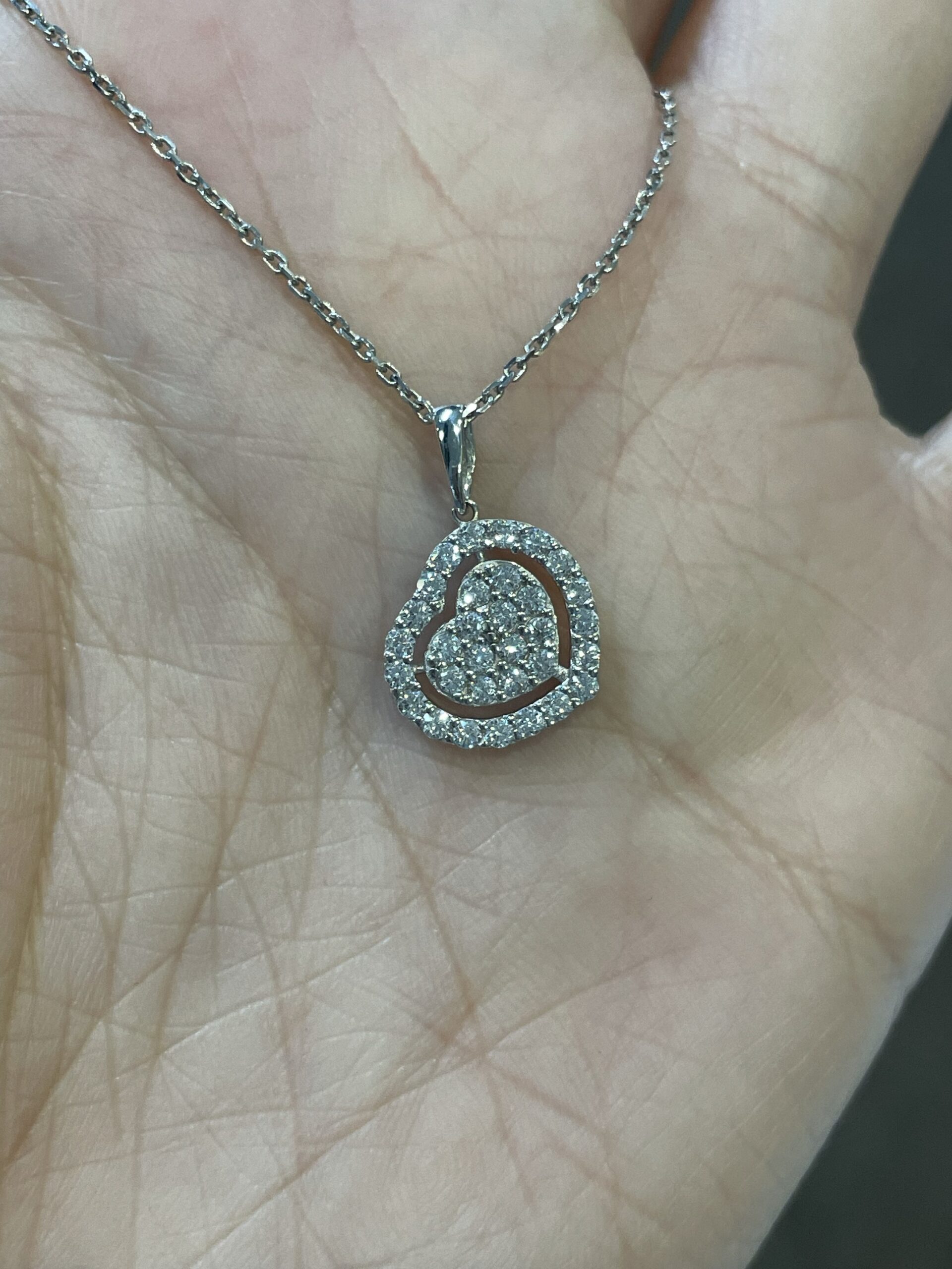 One-of-a-kind 18k white gold Cubic Zirconia (CZ) heart pendant from Italy. This piece is adjustable 16.5-18″.