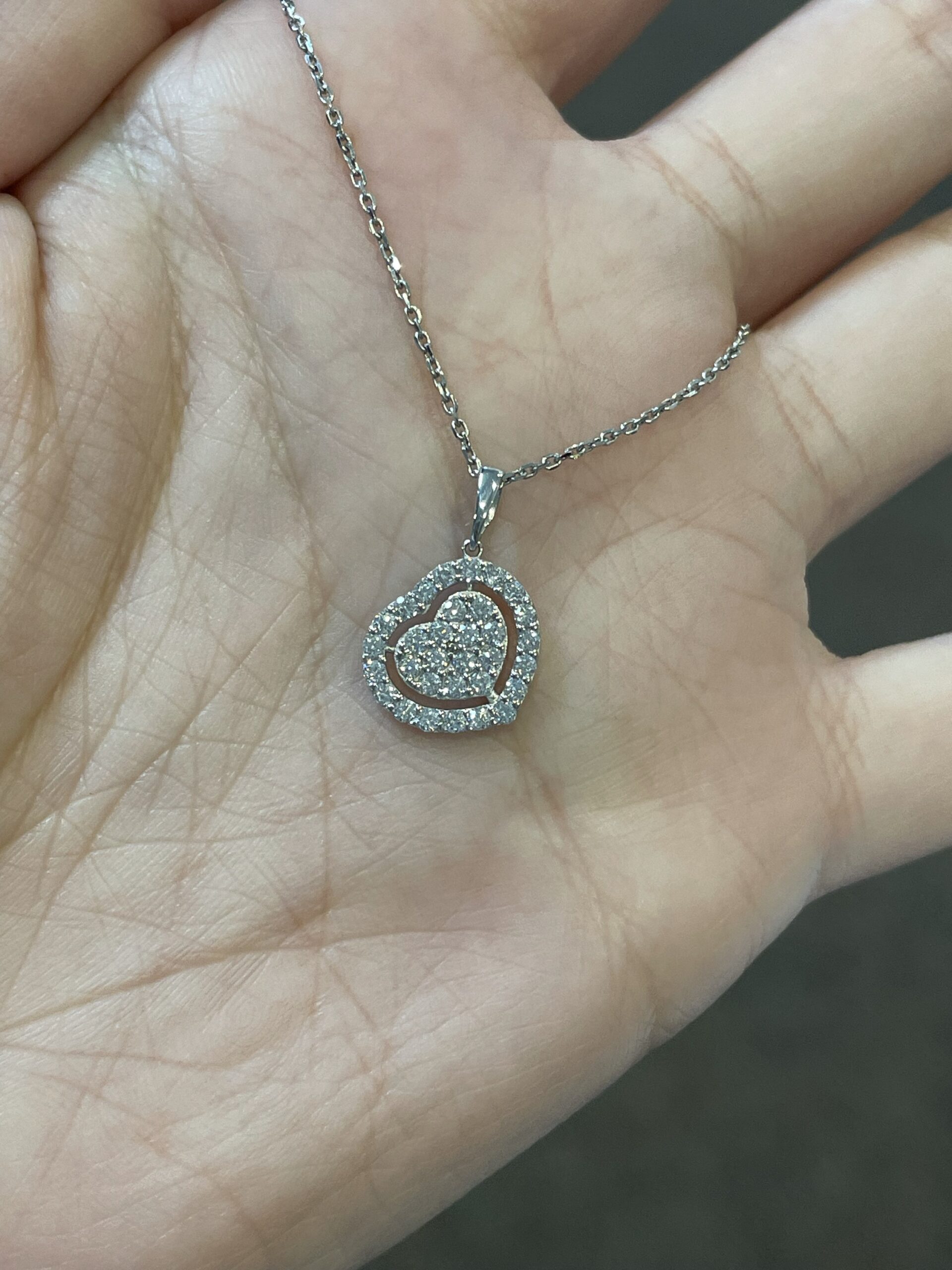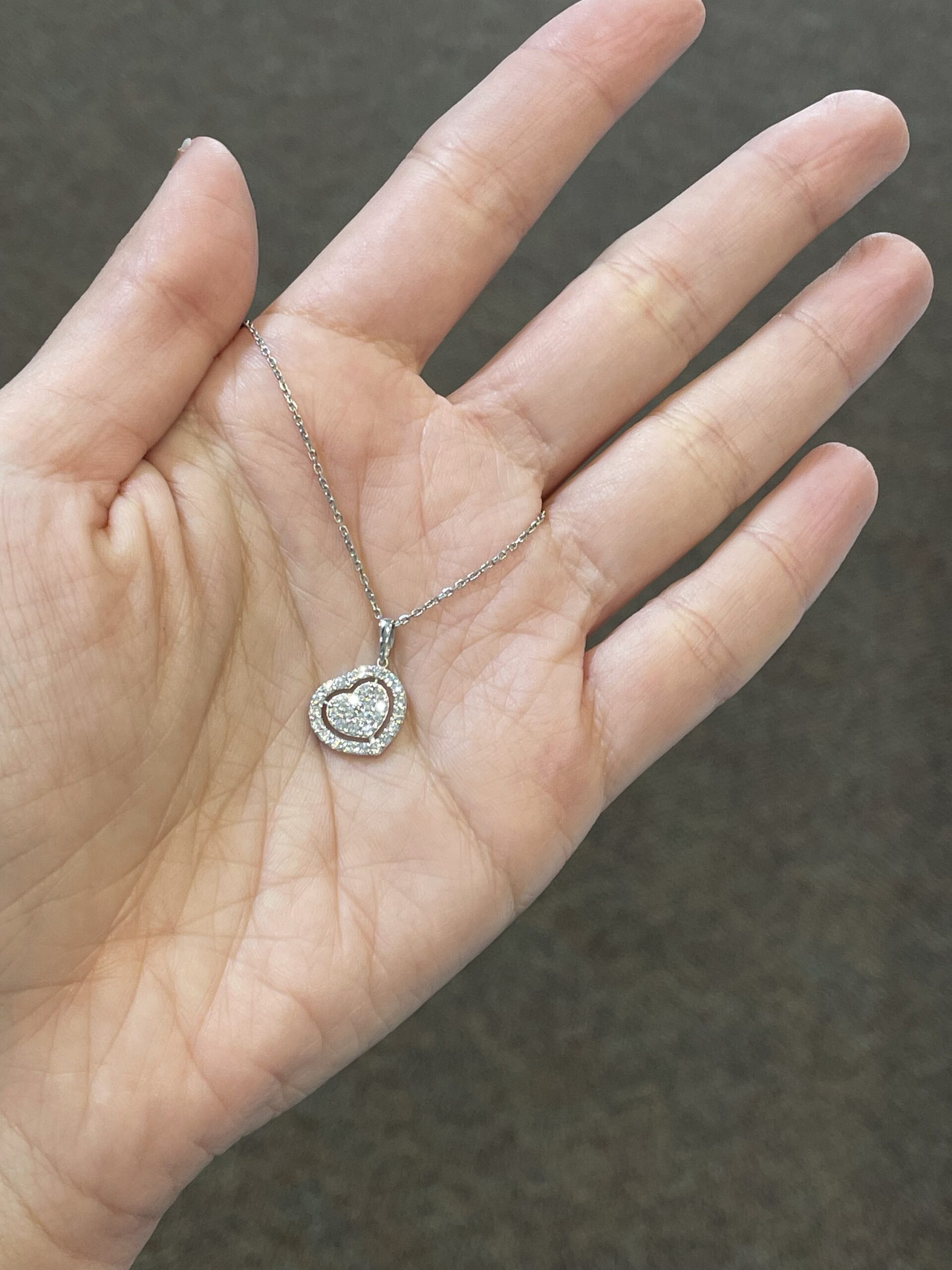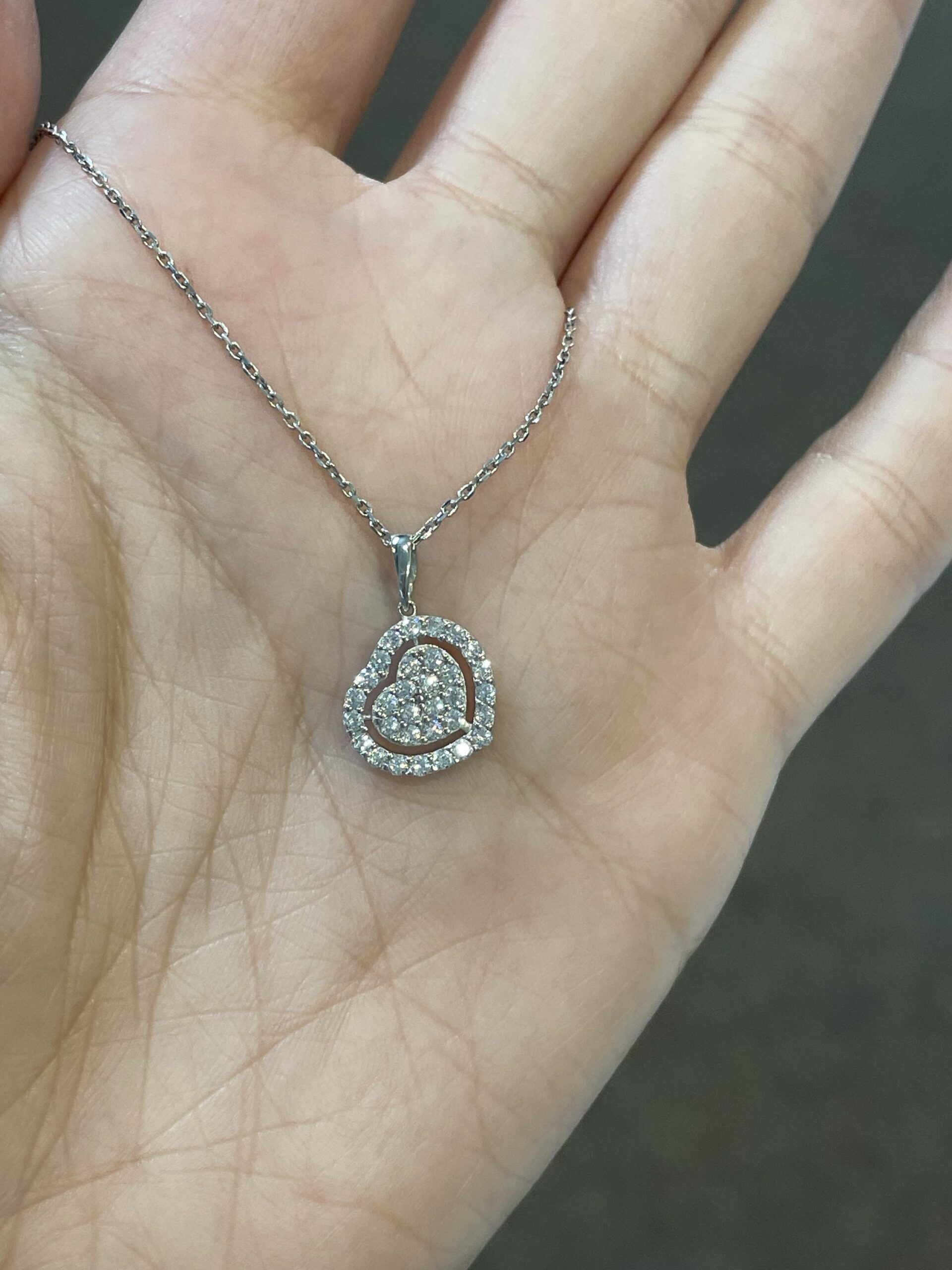 One-of-a-kind 18k white gold Cubic Zirconia (CZ) heart pendant from Italy. This piece is adjustable 16.5-18″.