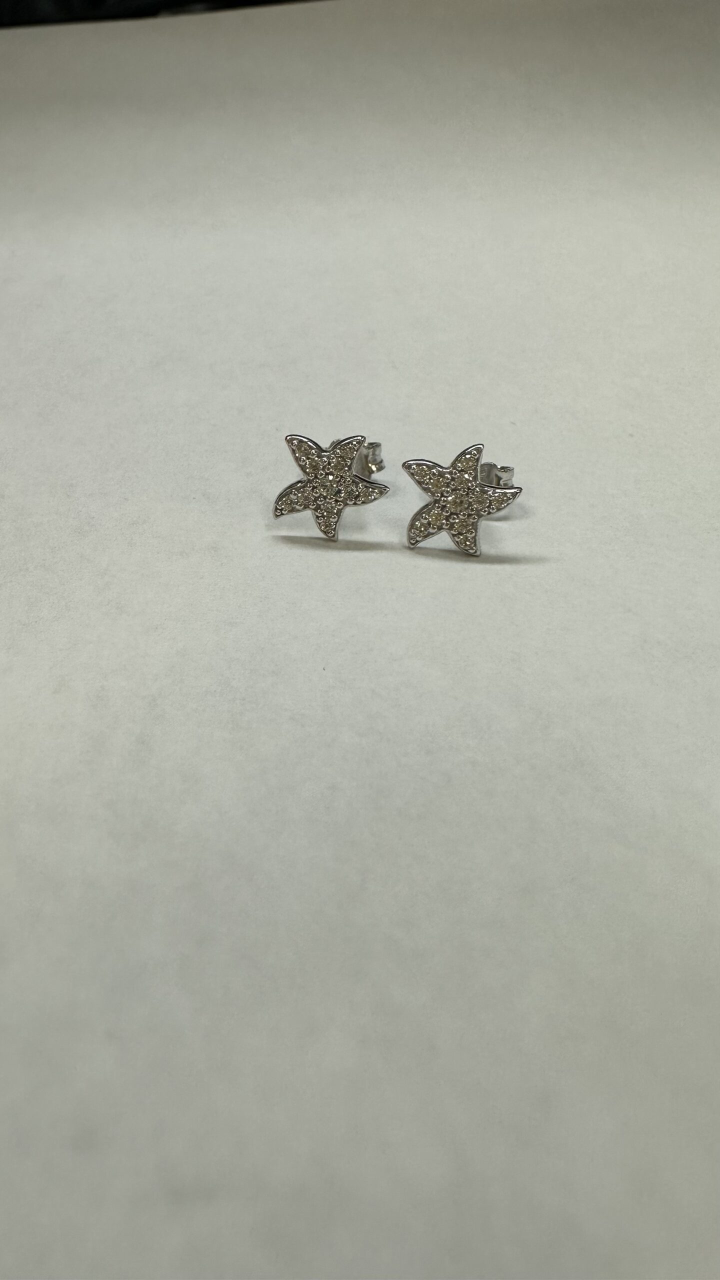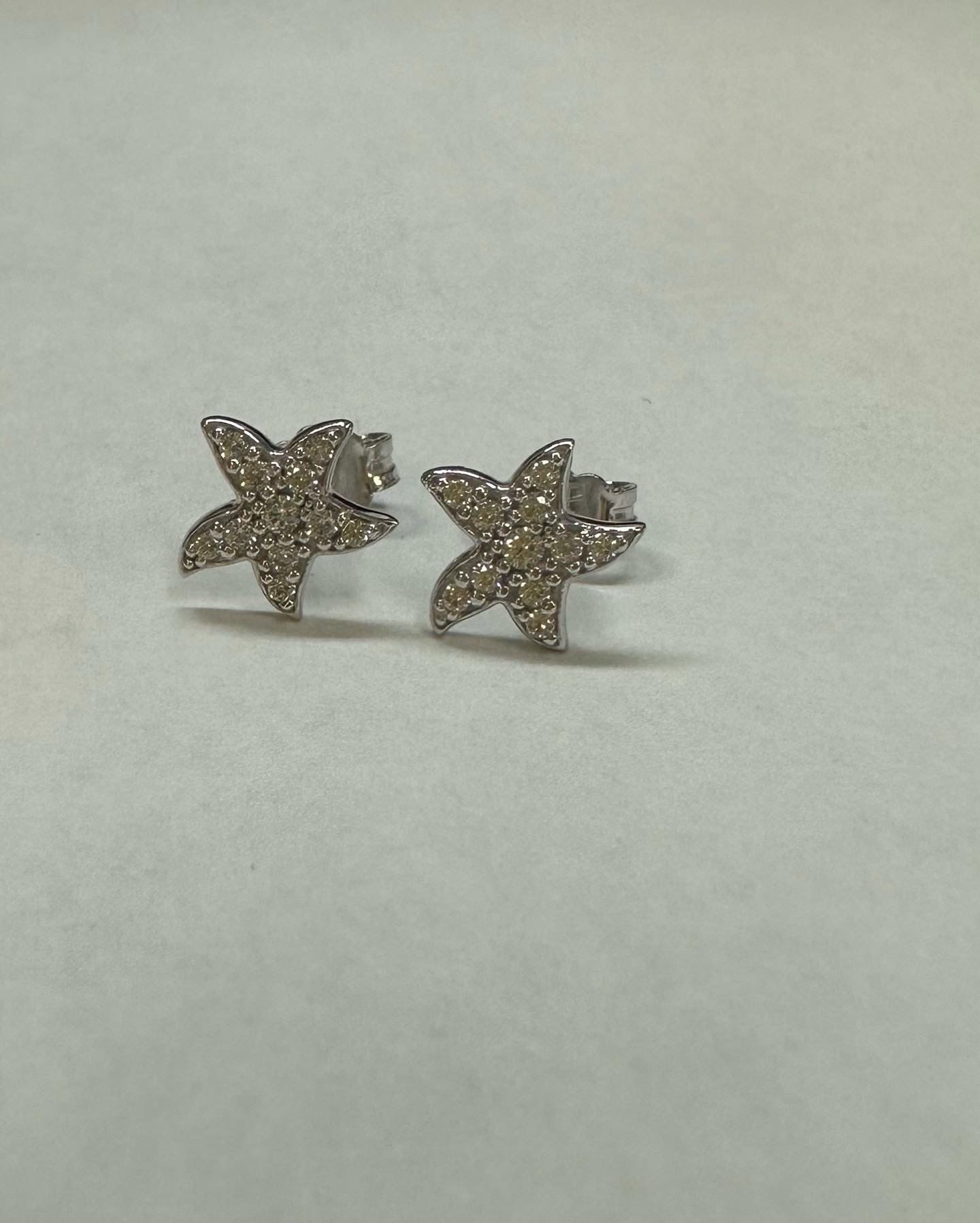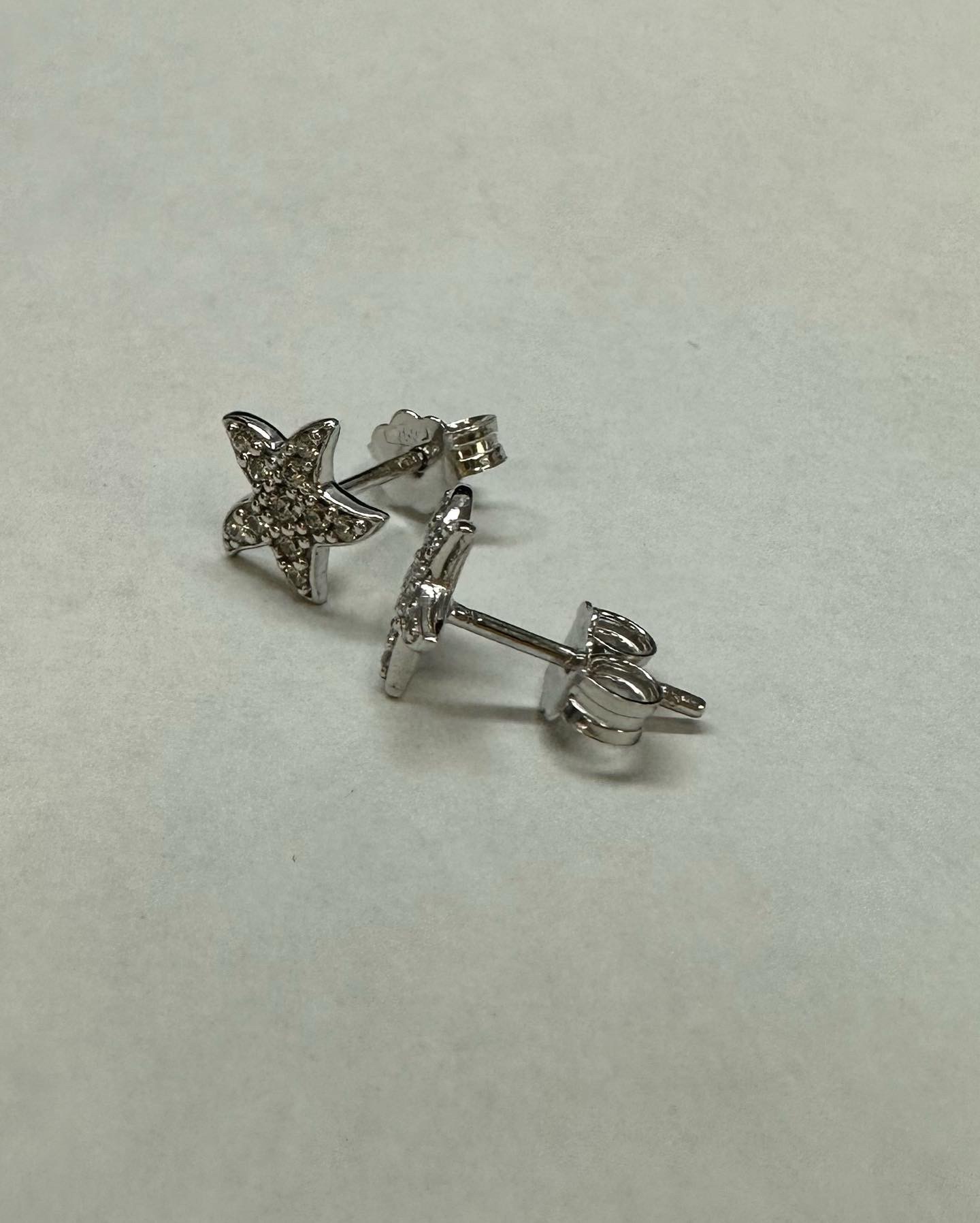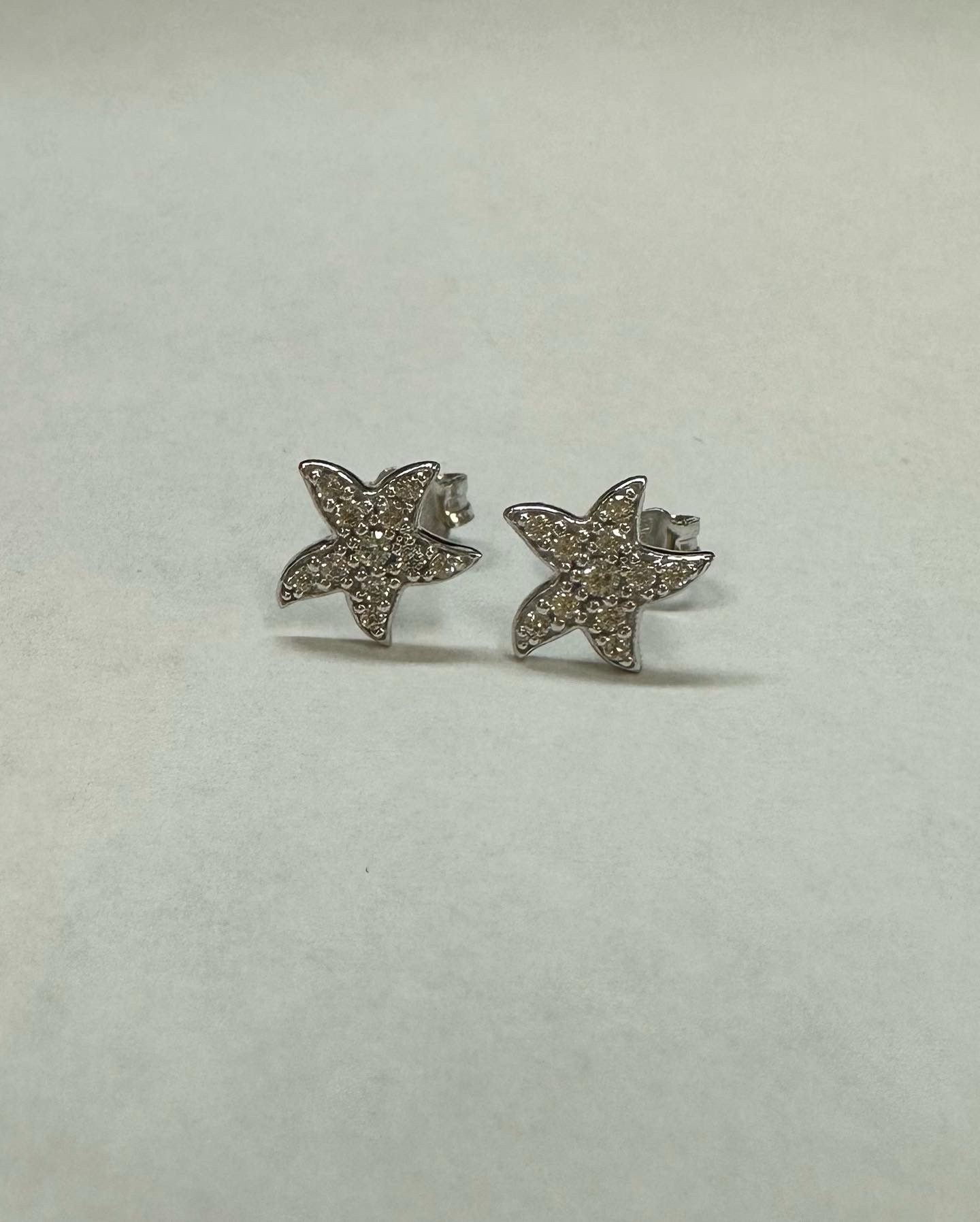 One-of-a-kind 18k white gold CZ encrusted 9 mm Starfish stud earrings from Italy, 1.63 grams.