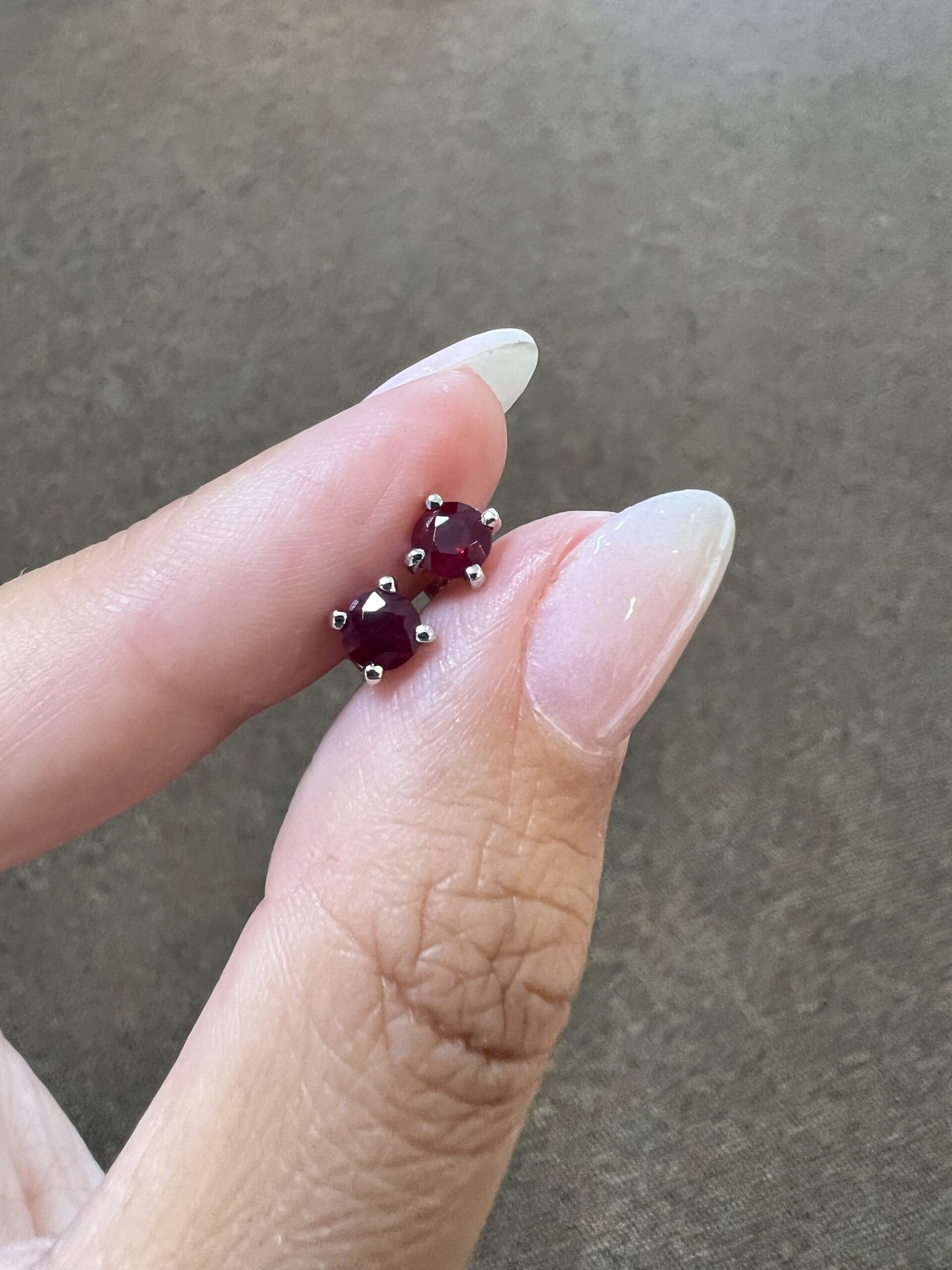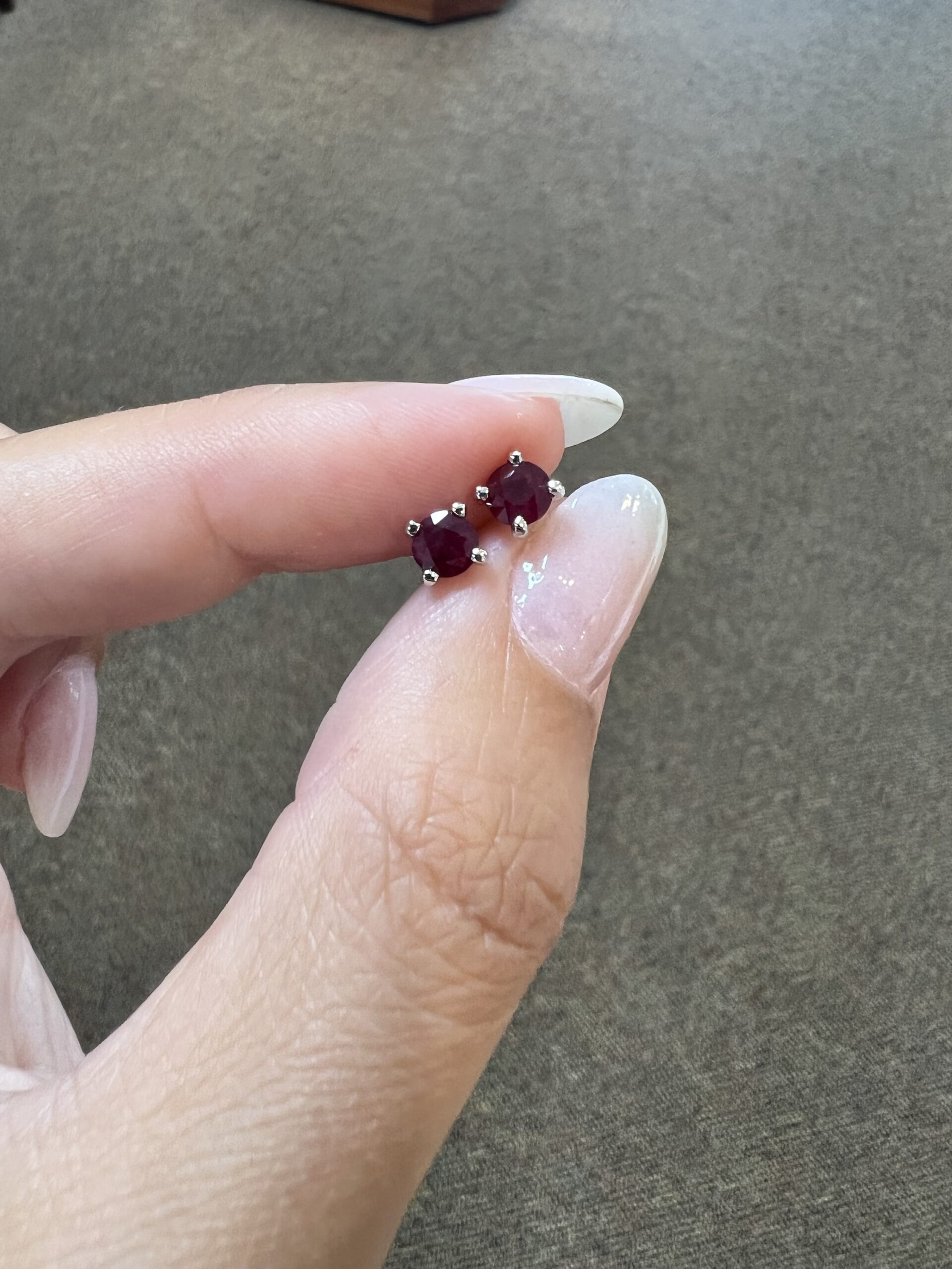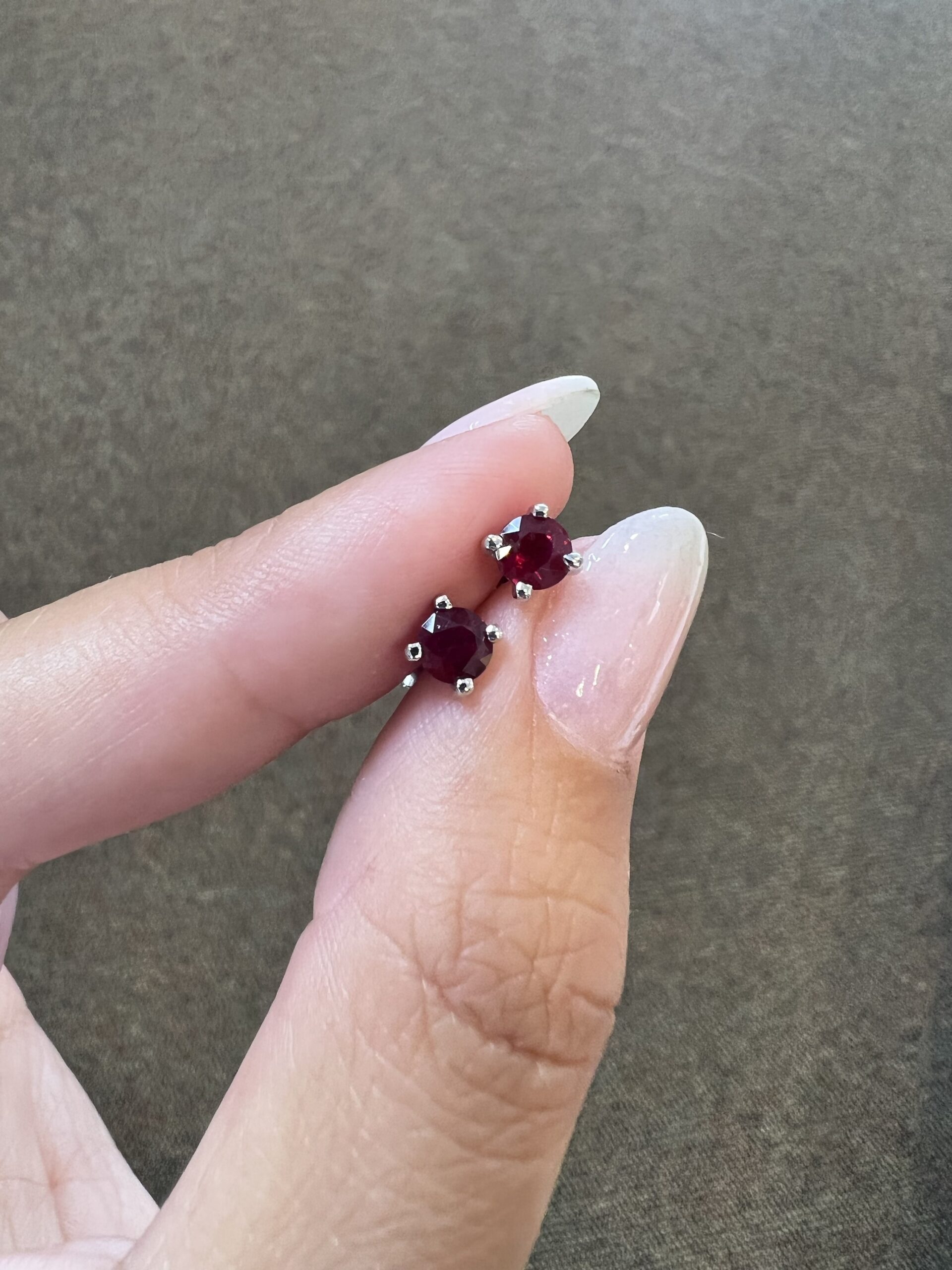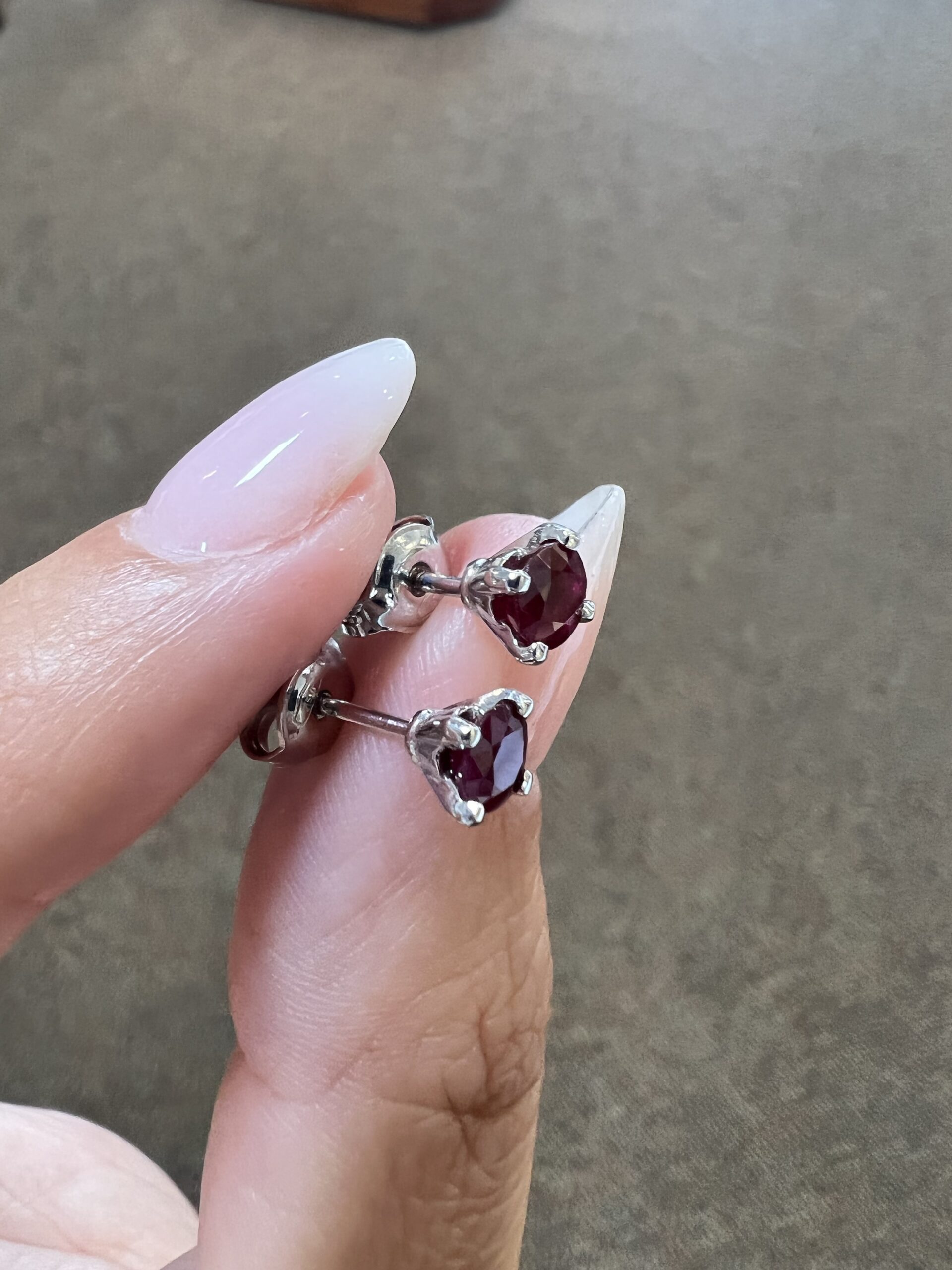 18k White Gold Genuine .83 Cttw Ruby Stud Earrings