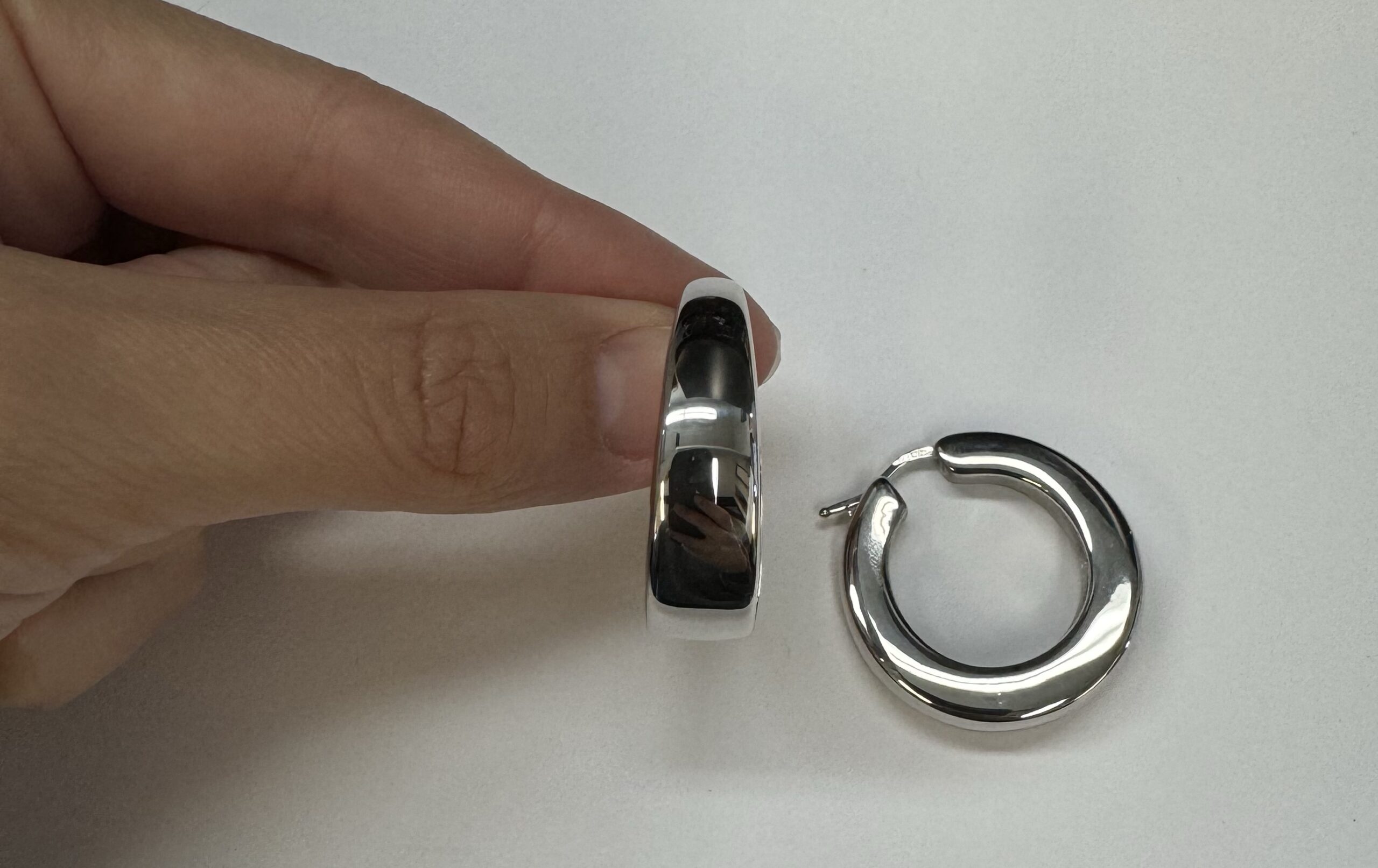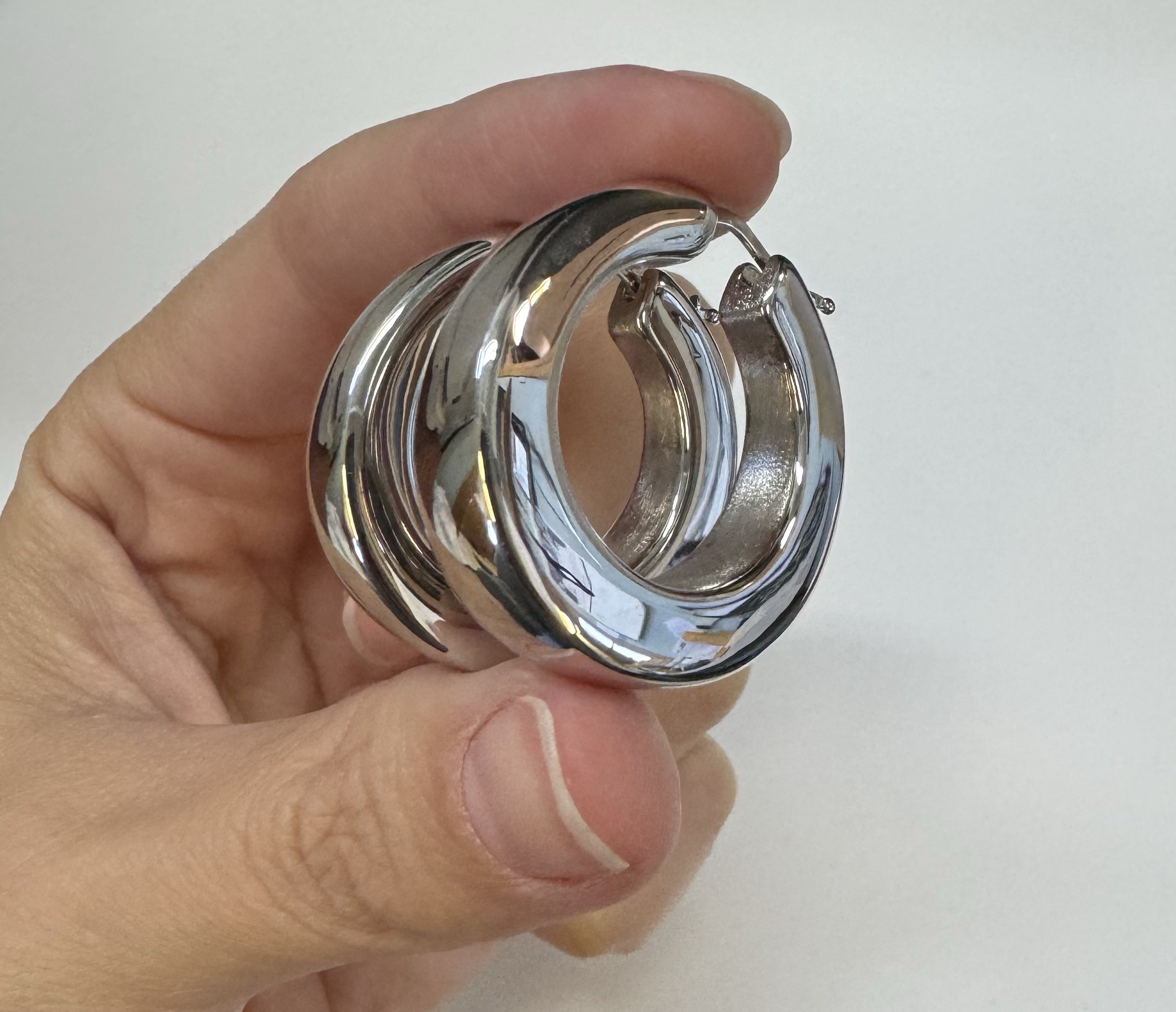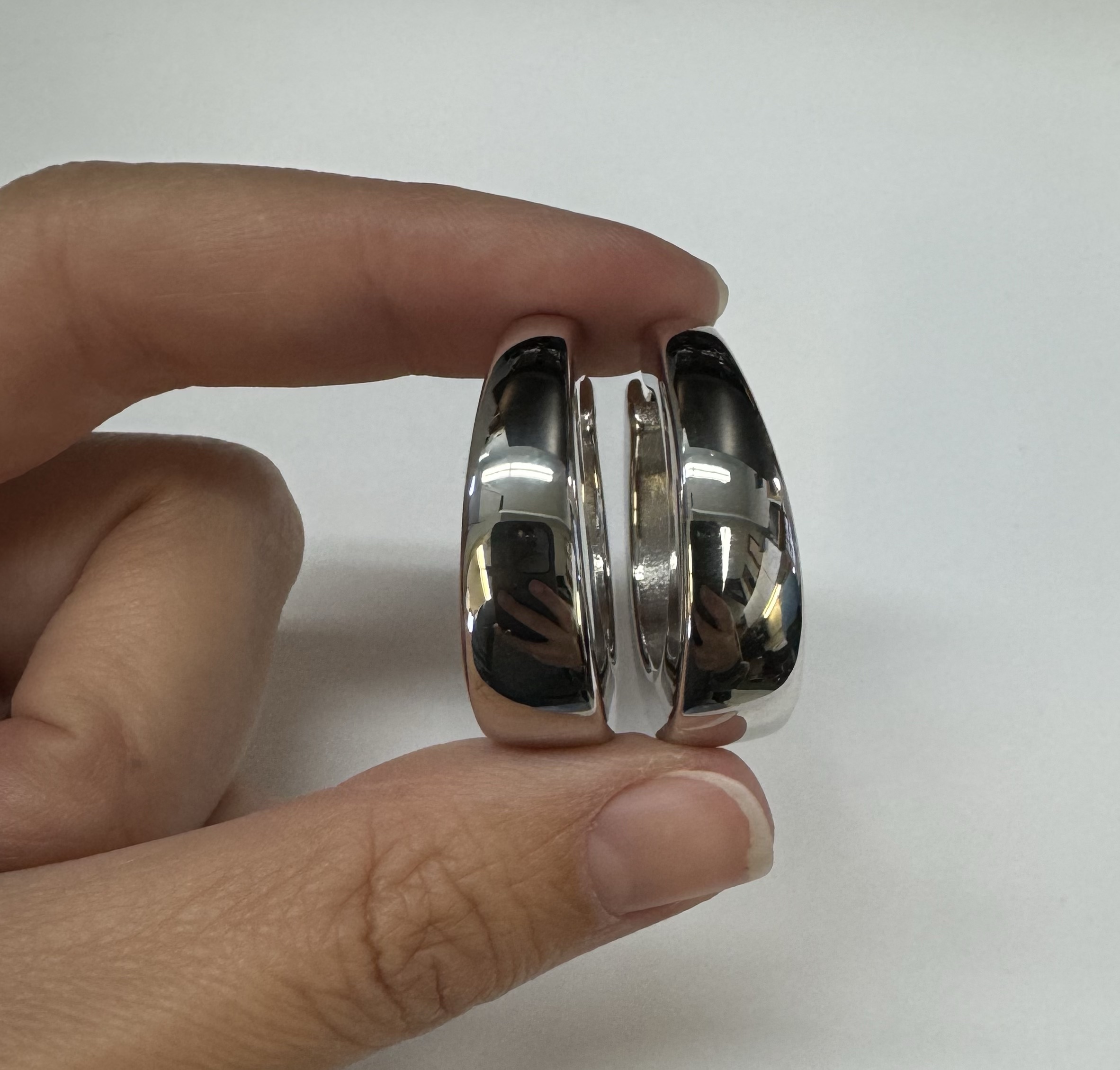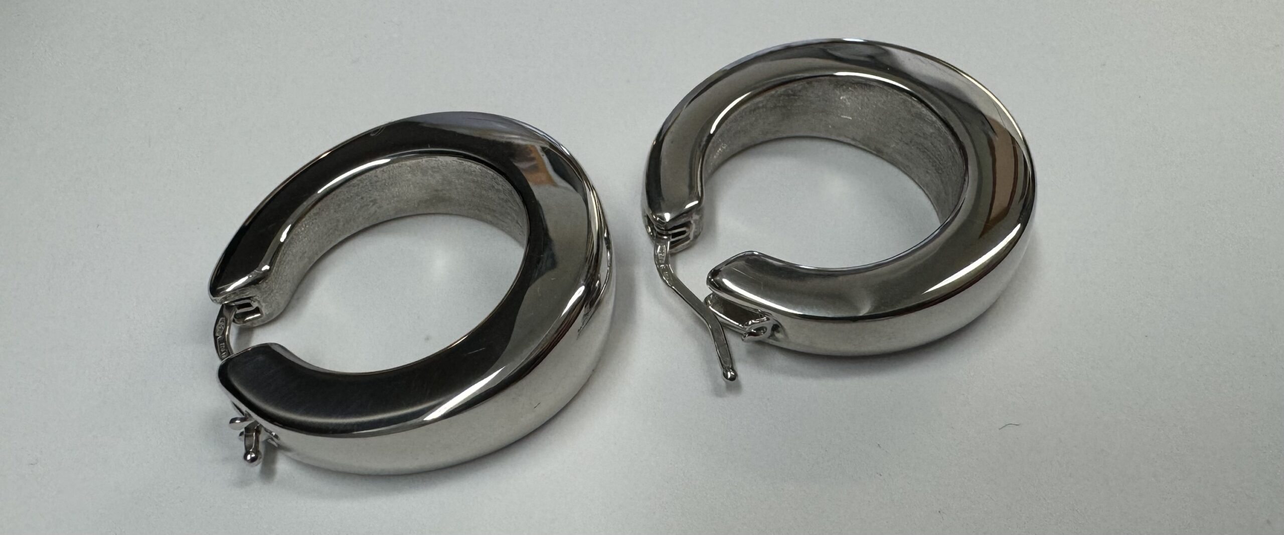 One-of-a-kind 18k white gold round hoop earrings with click, directly imported from Italy. These earrings measure approximately 30 x 9 mm in sized and they have an entire weight of 9.1 grams.