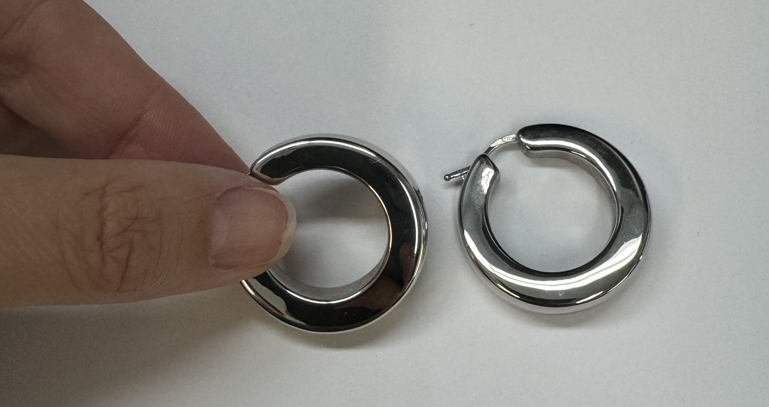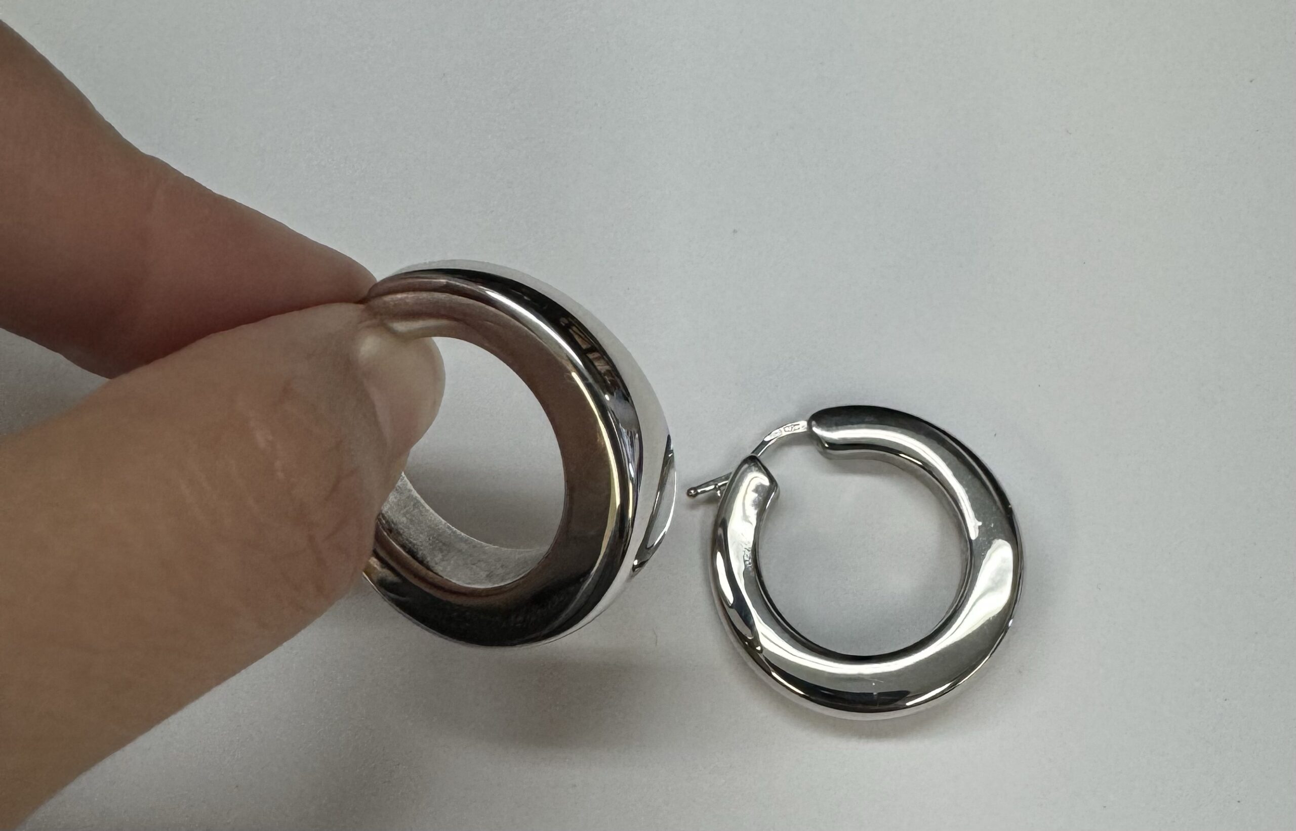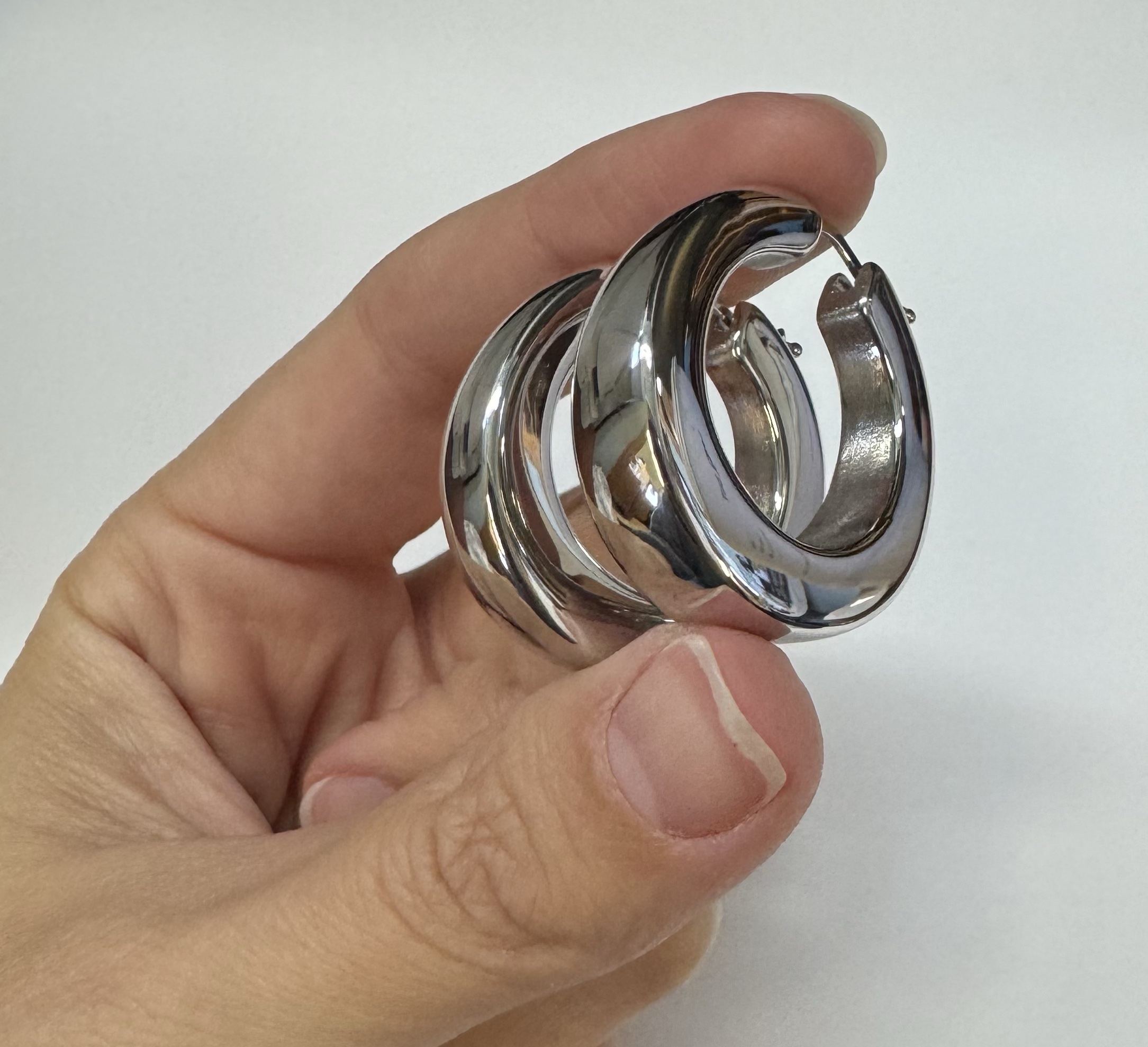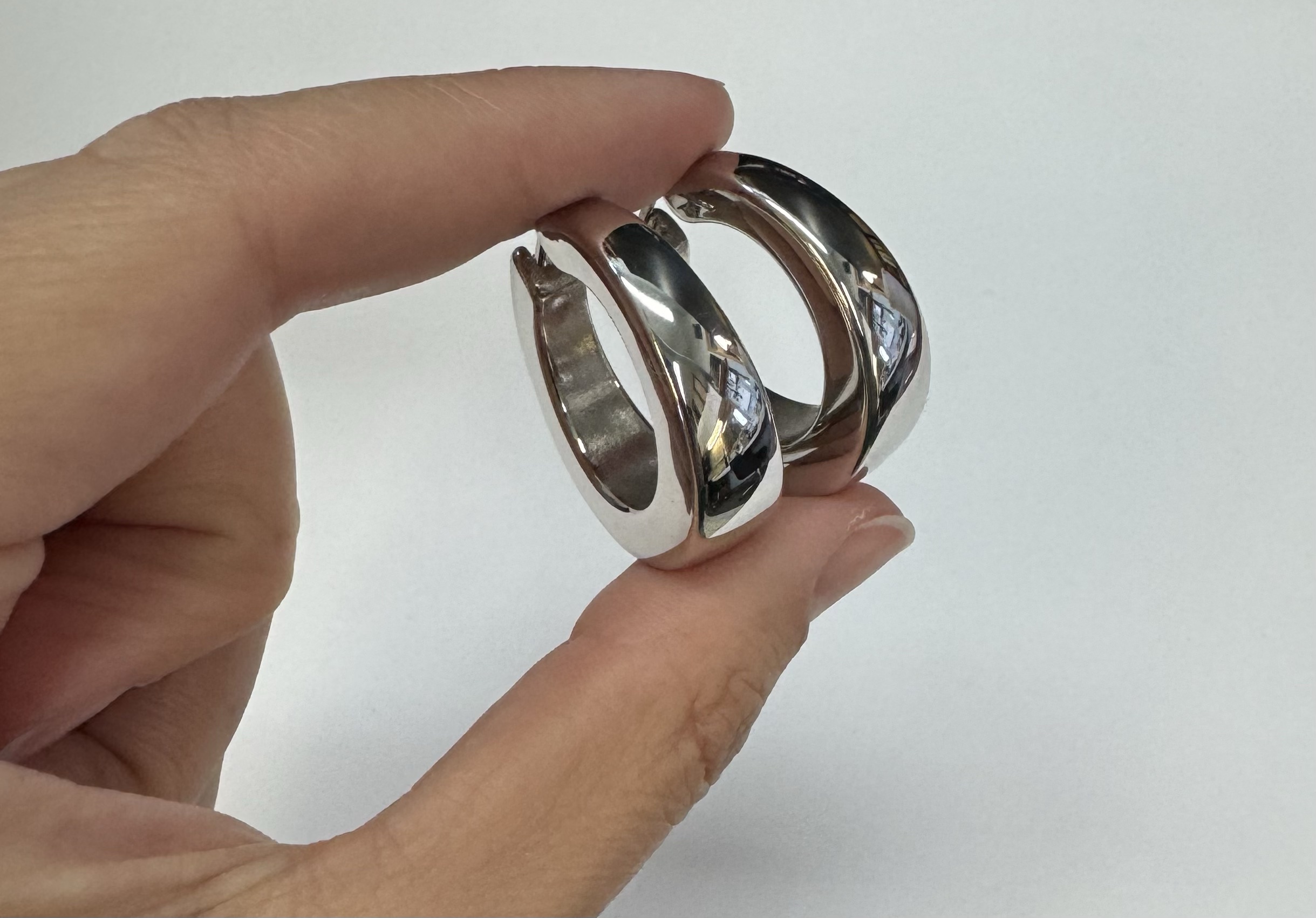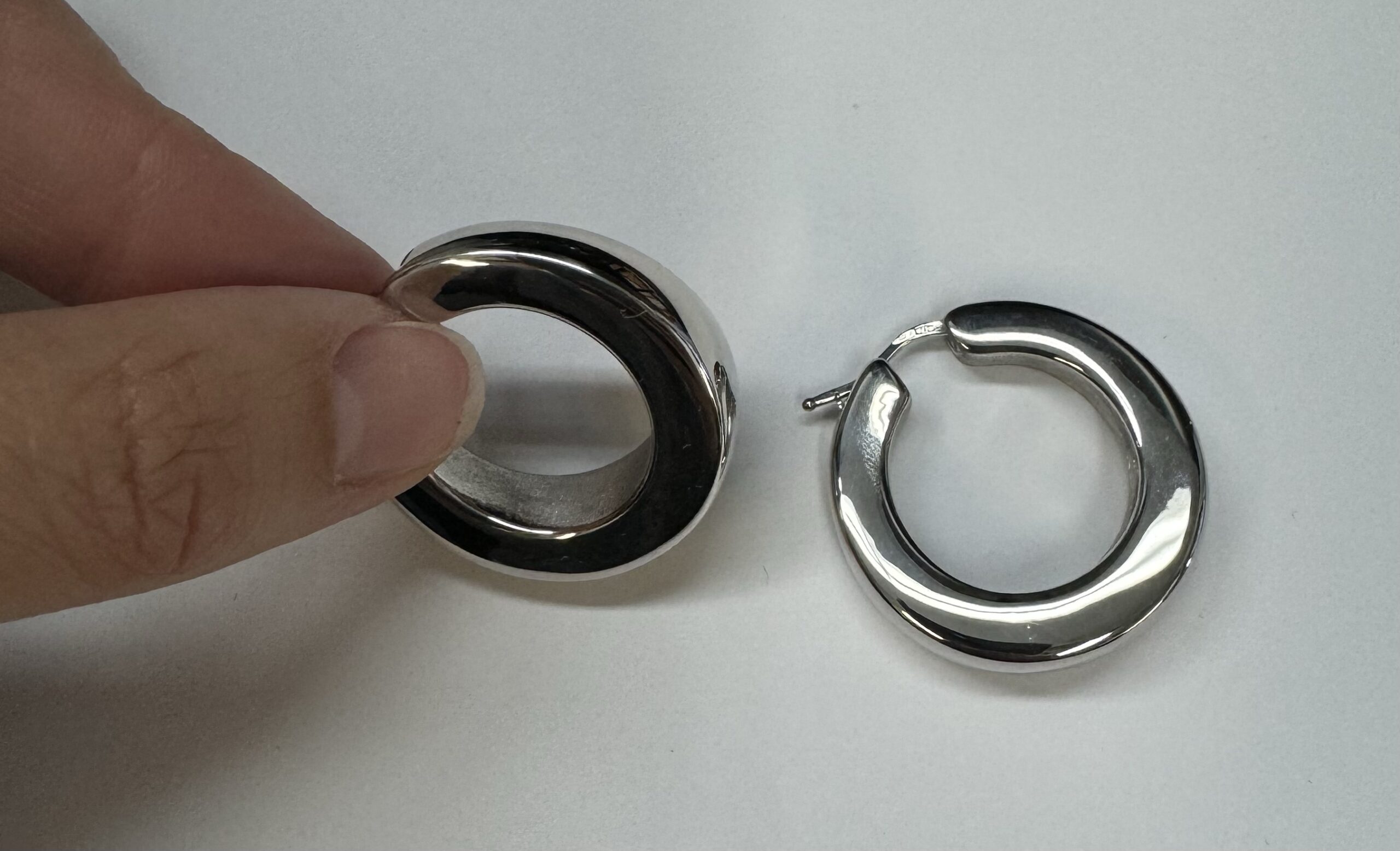 One-of-a-kind 18k white gold round hoop earrings with click, directly imported from Italy. These earrings measure approximately 30 x 9 mm in sized and they have an entire weight of 9.1 grams.