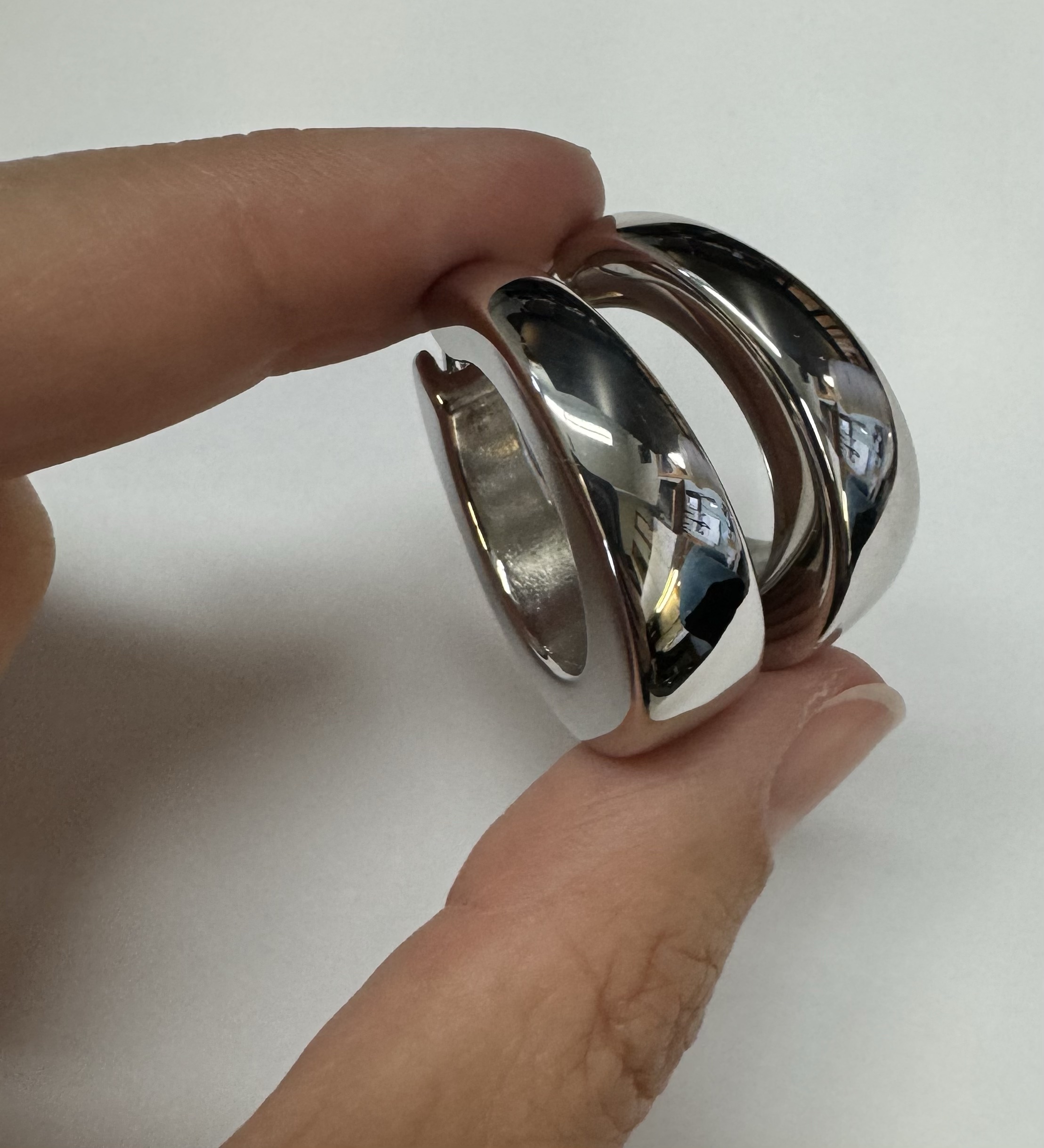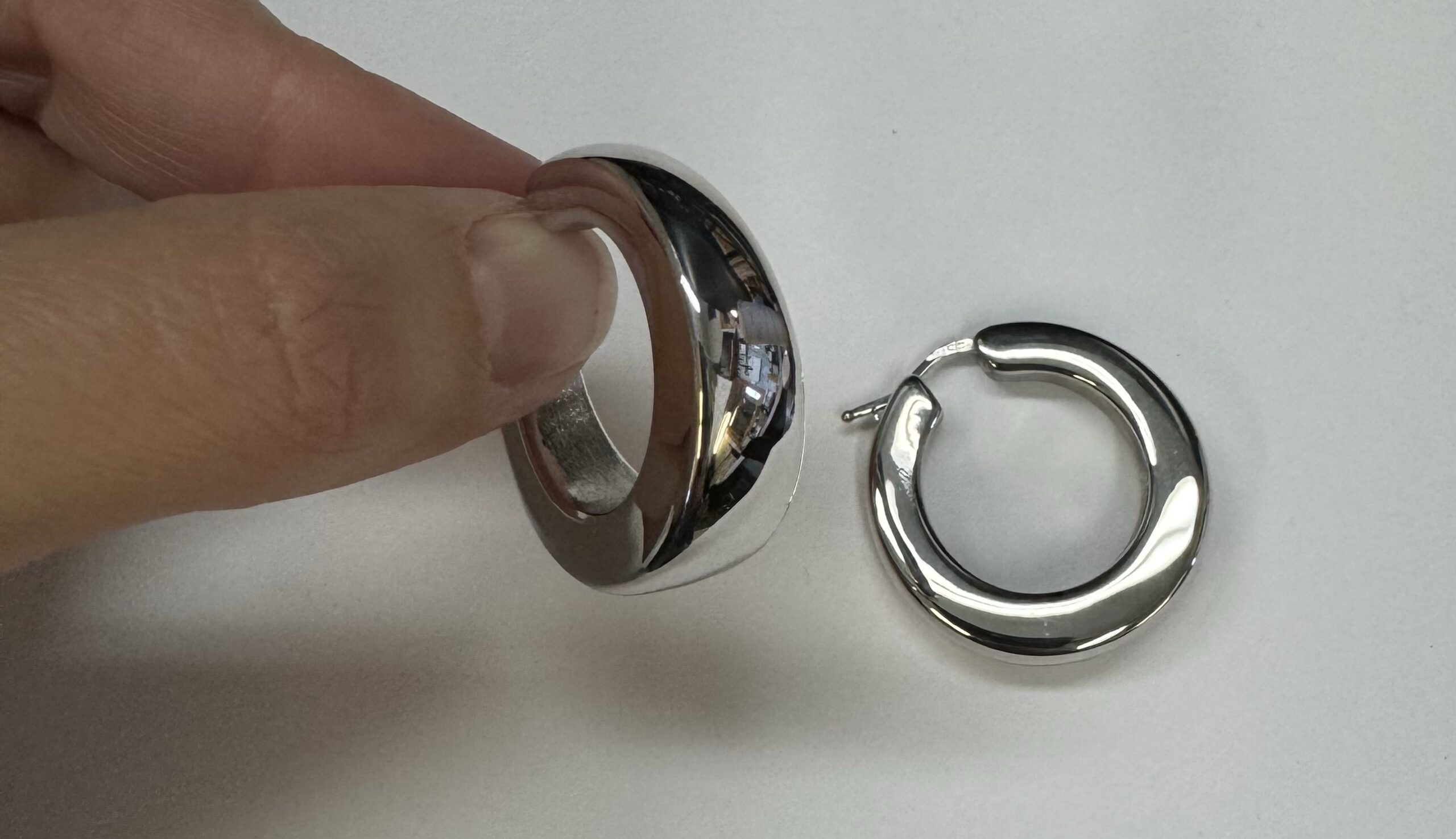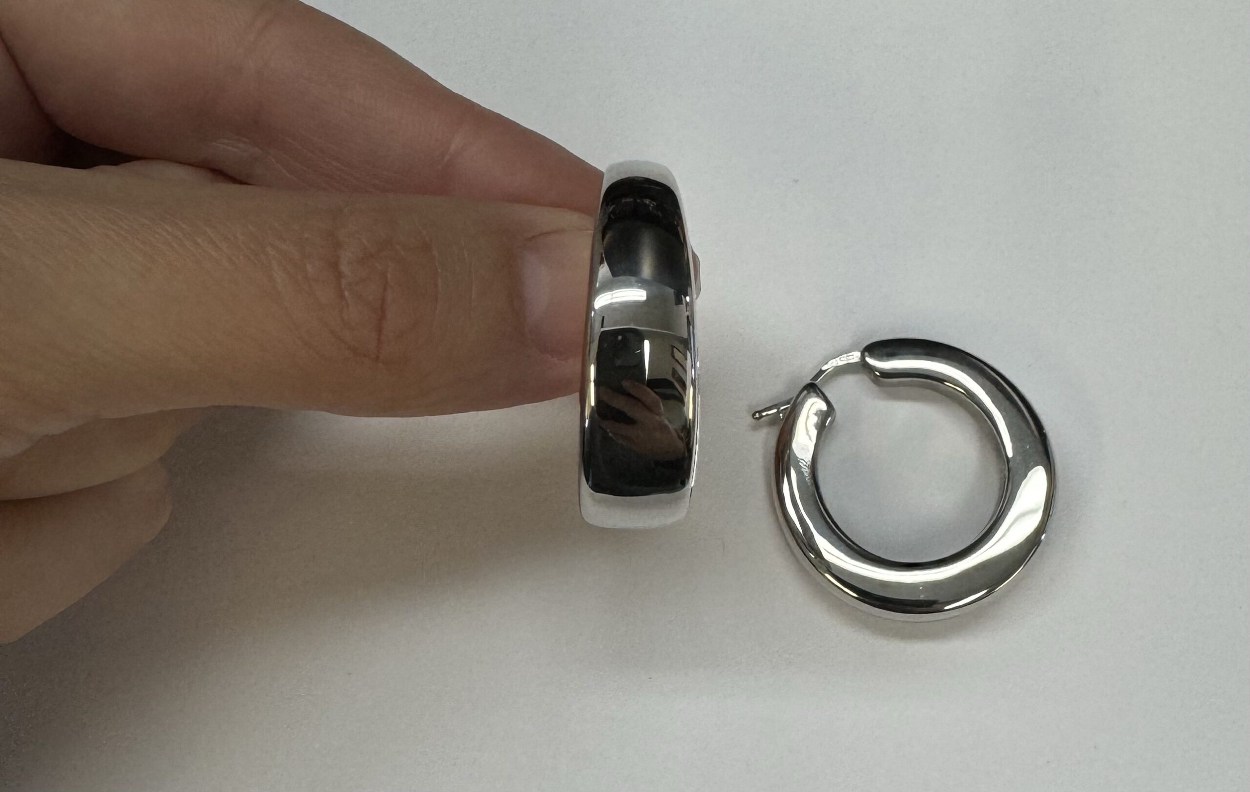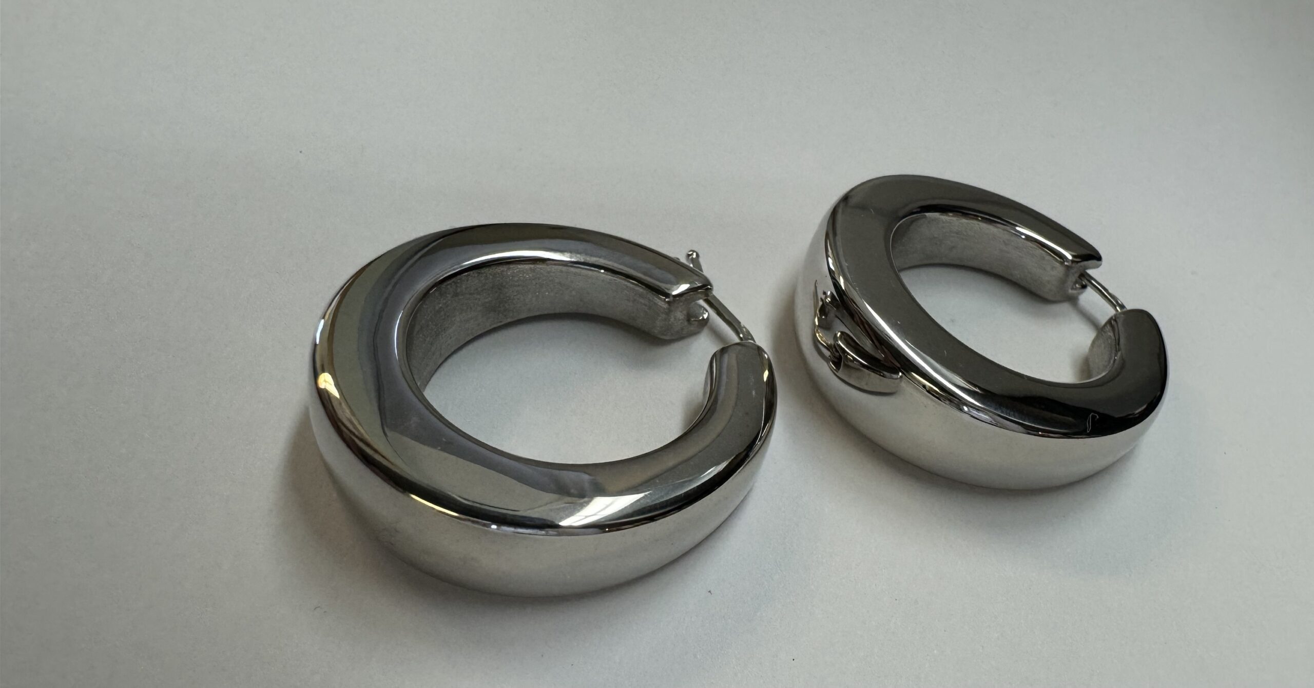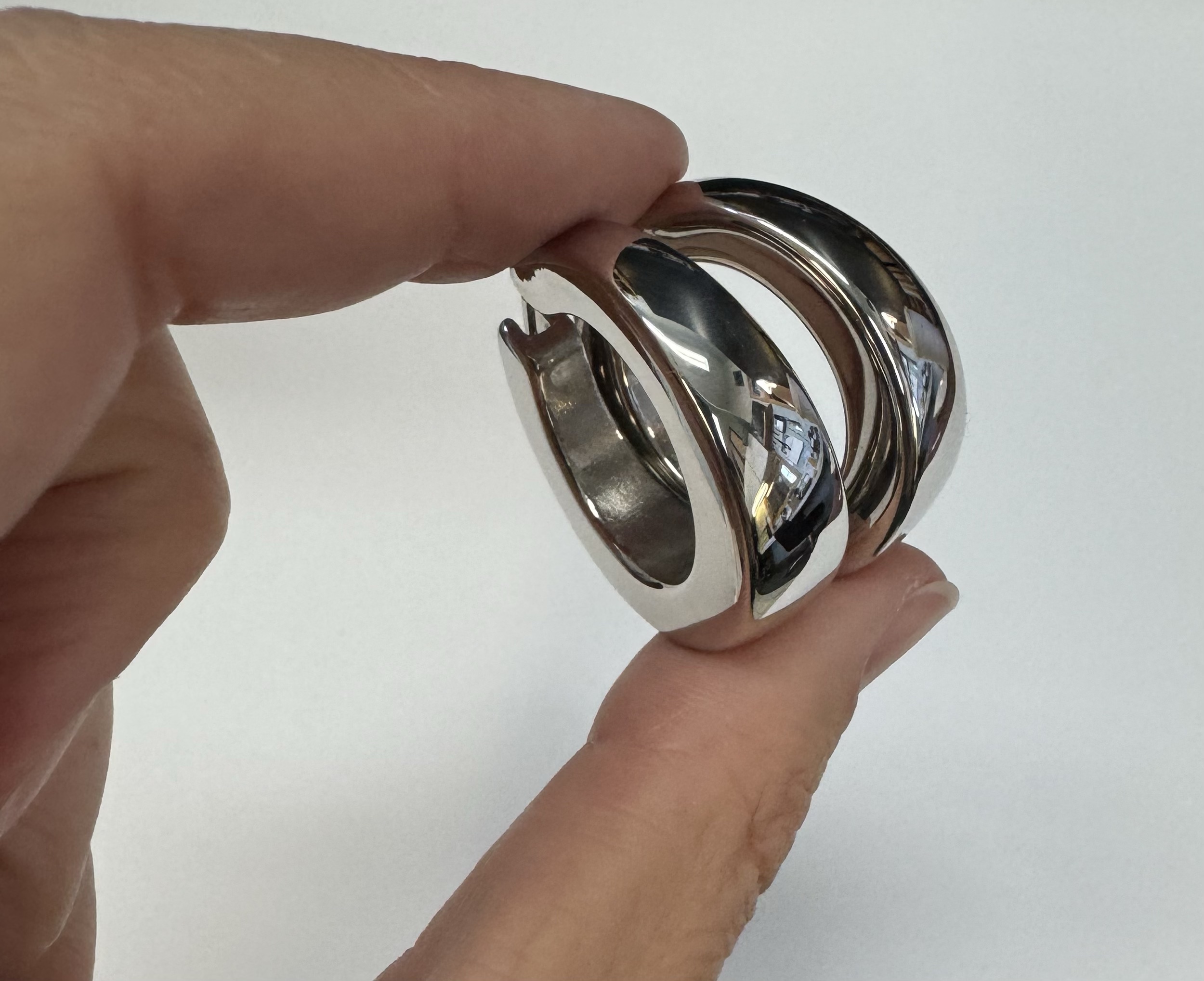 One-of-a-kind 18k white gold round hoop earrings with click, directly imported from Italy. These earrings measure approximately 30 x 9 mm in sized and they have an entire weight of 9.1 grams.
