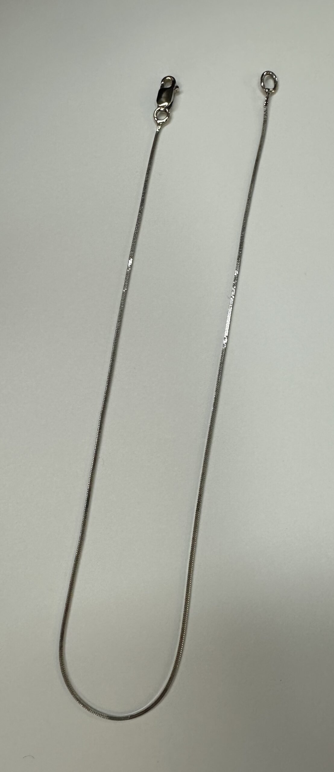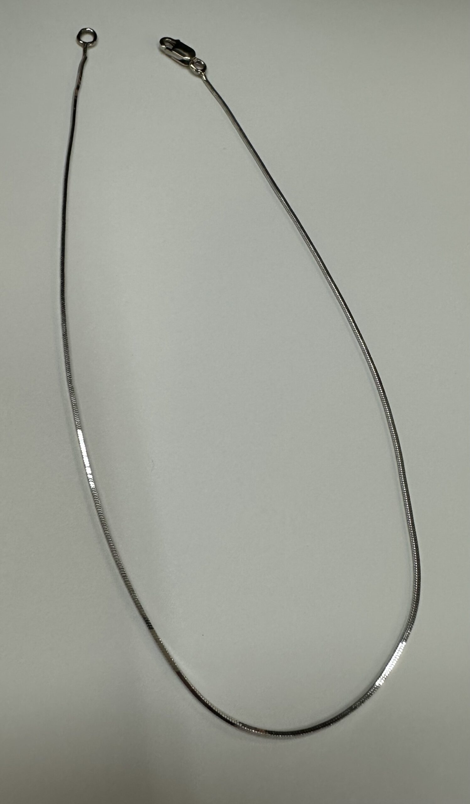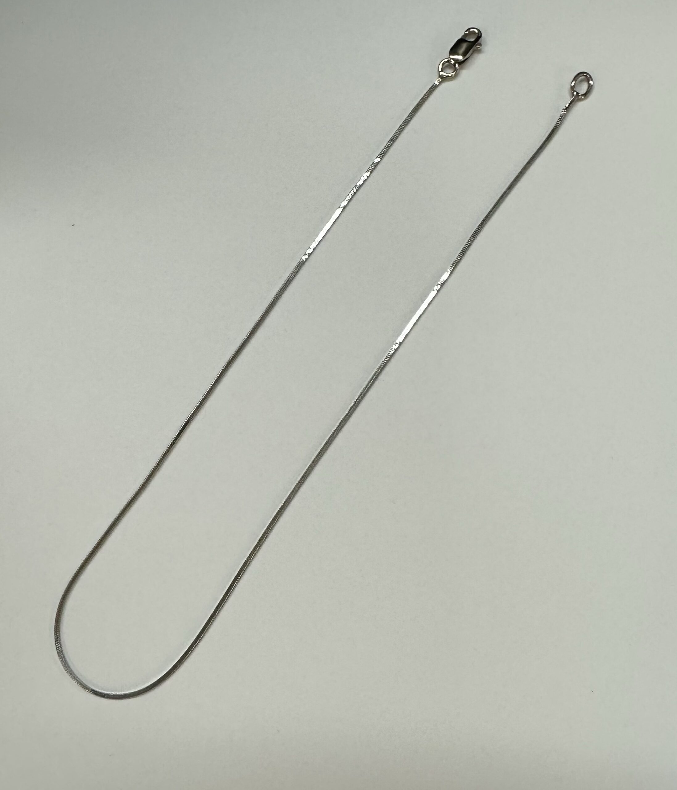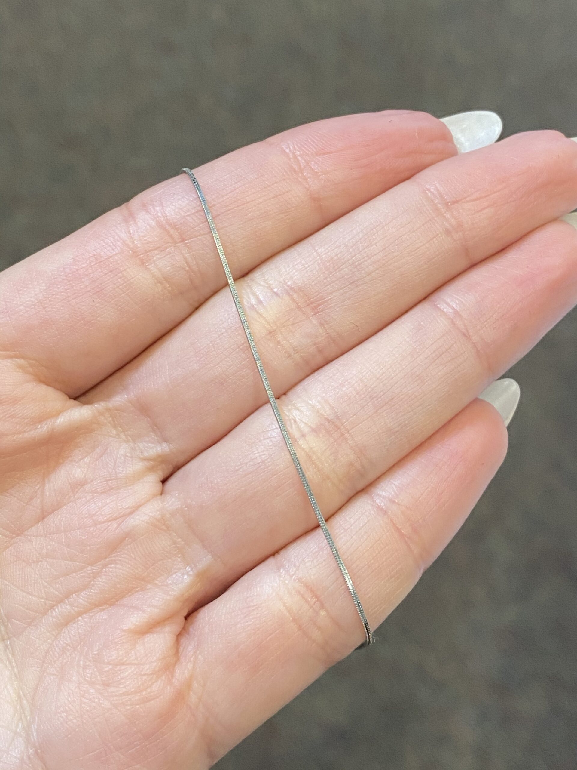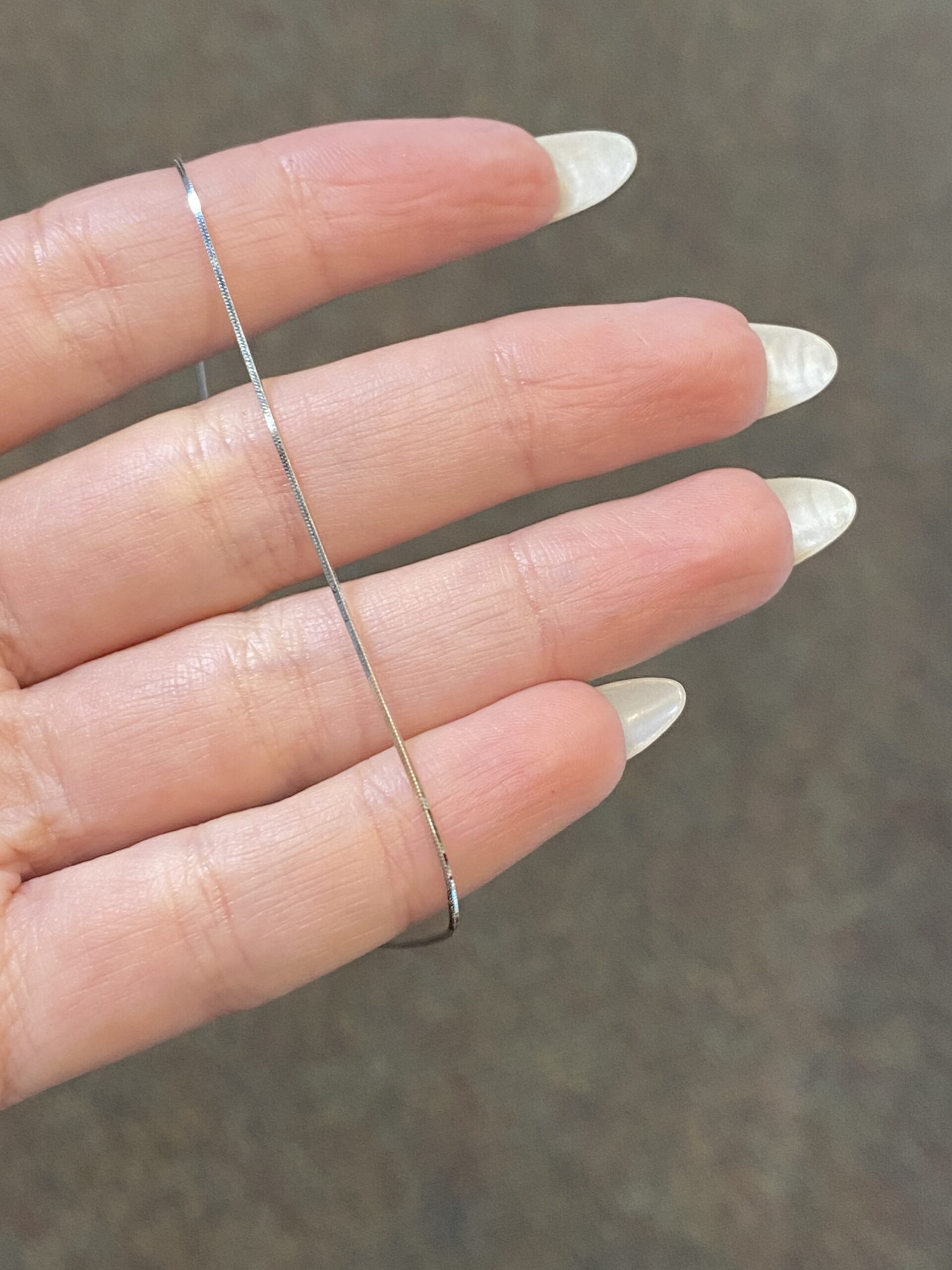 One-of-a-kind 18k white gold 10 1/4” square snake chain anklet with lobster claw clasp, directly imported from Italy. This anklet measures .5 mm in width, and it has an entire weight of 1.9 grams.