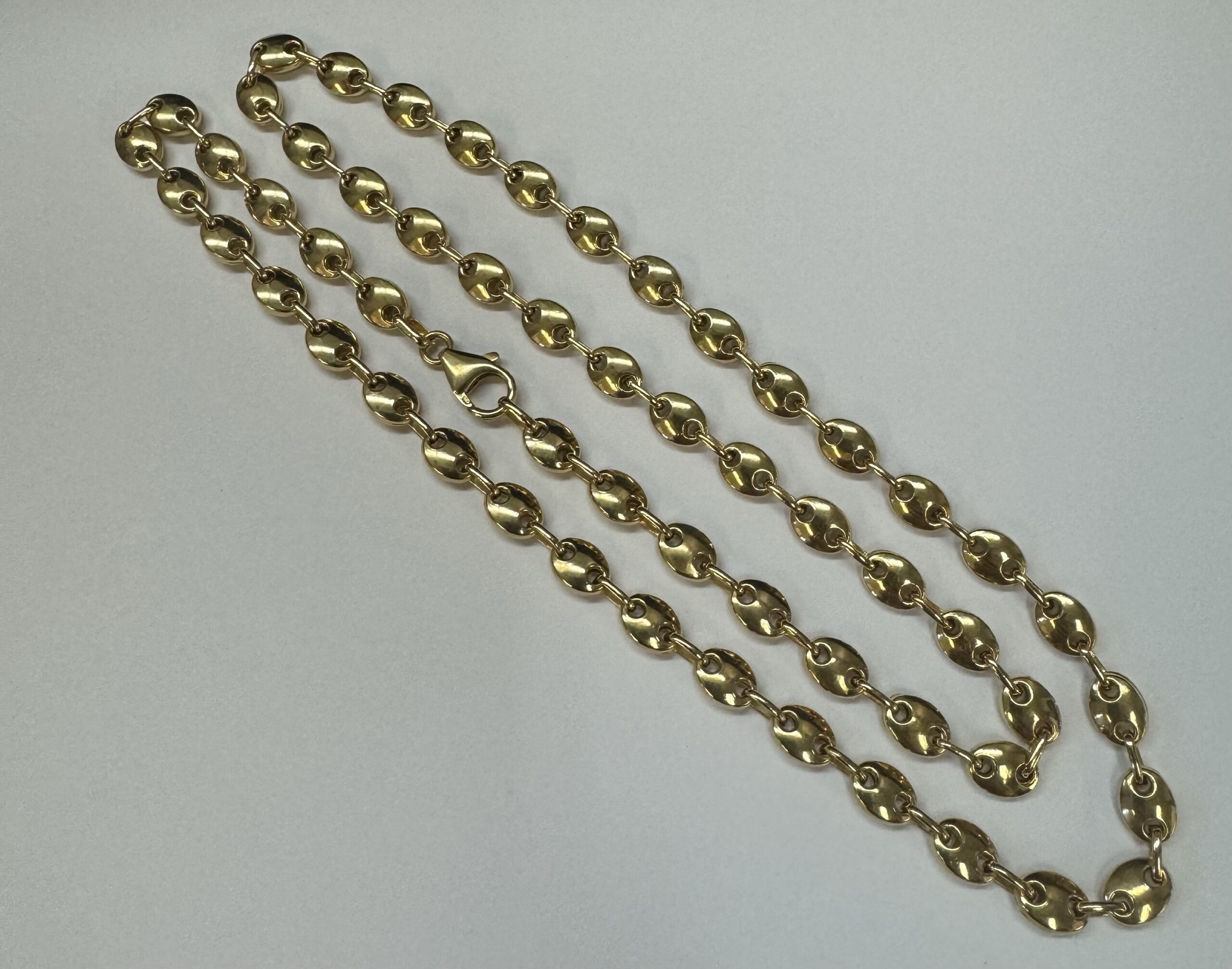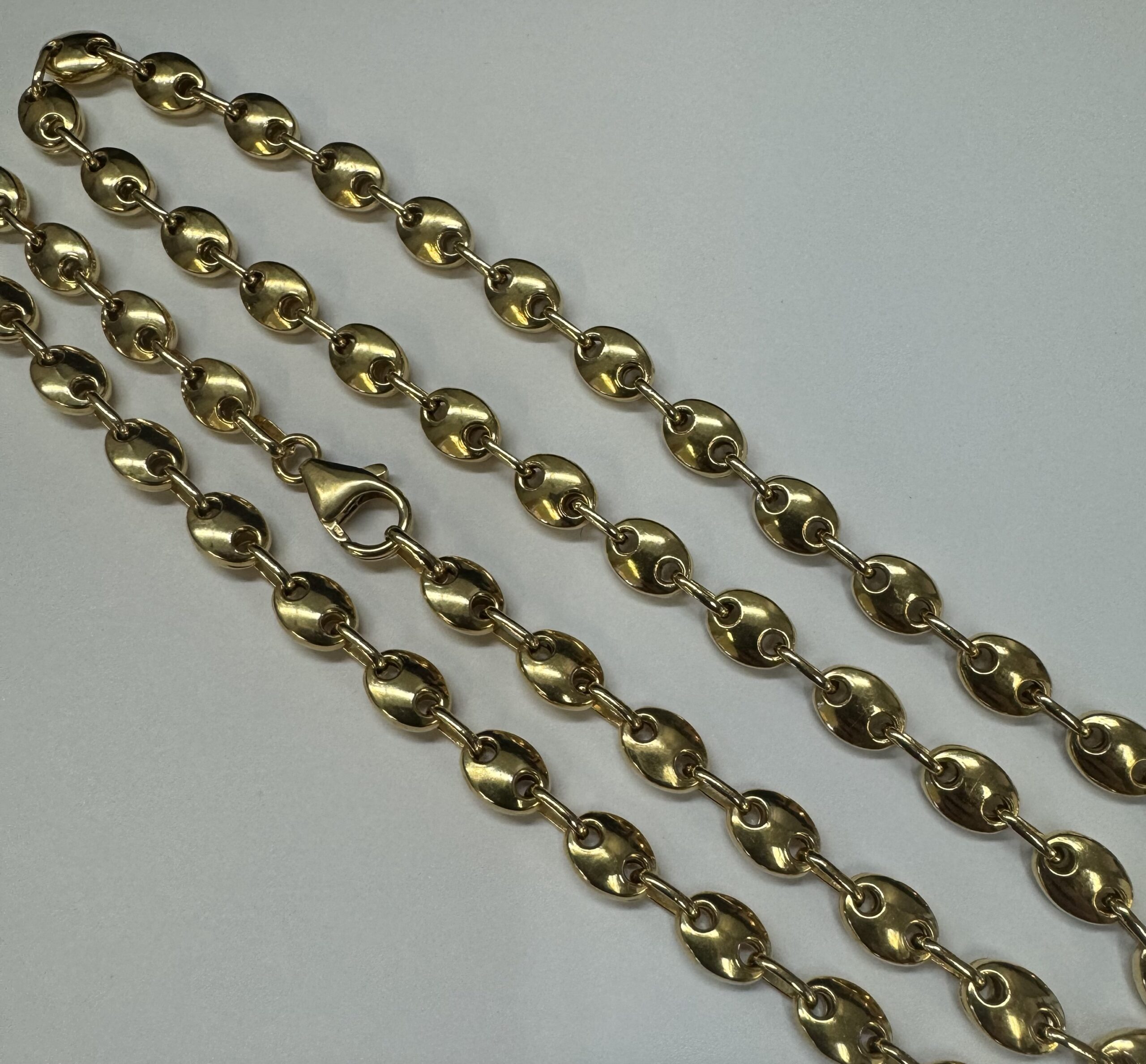 18k yellow gold 24” Gucci link chain, 6 mm, 23.8 grams, terminated by a lobster claw clasp.