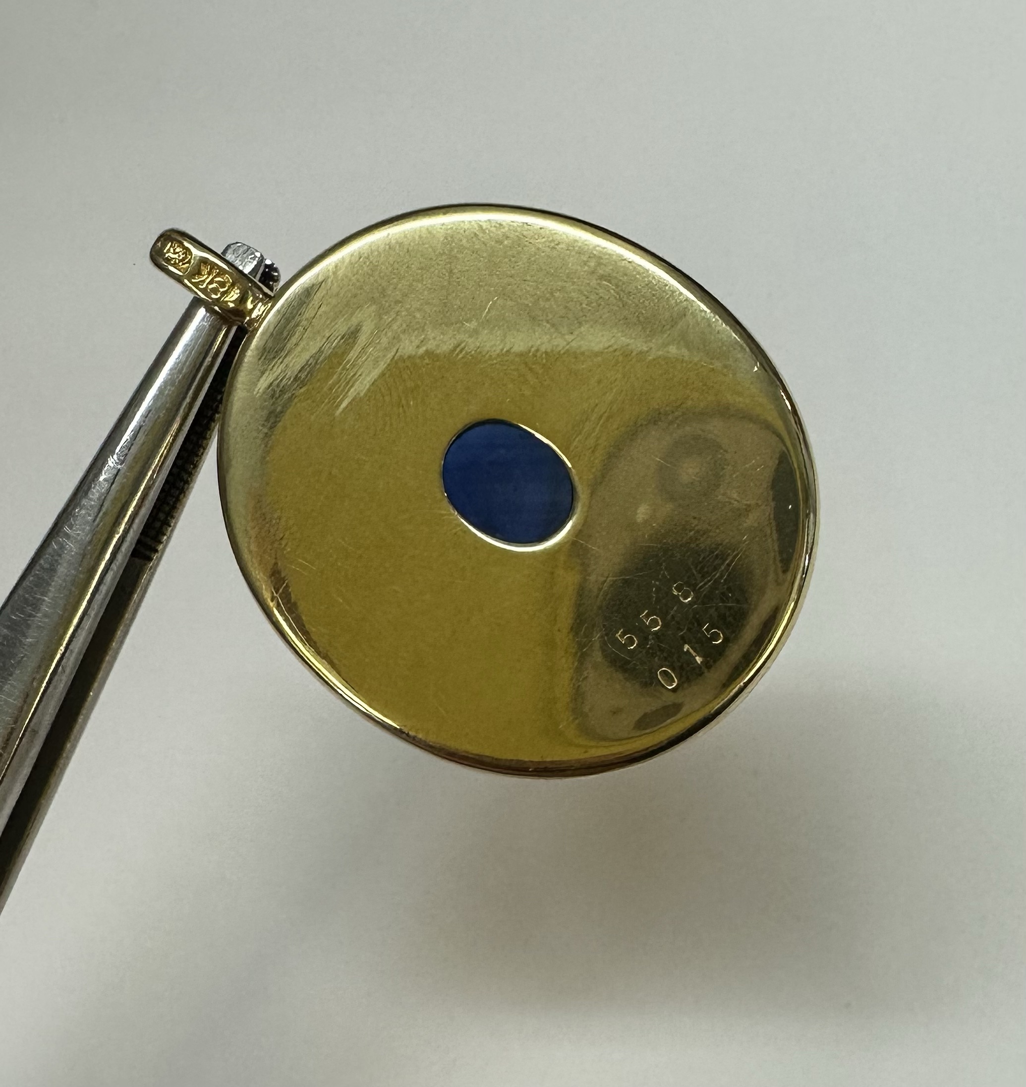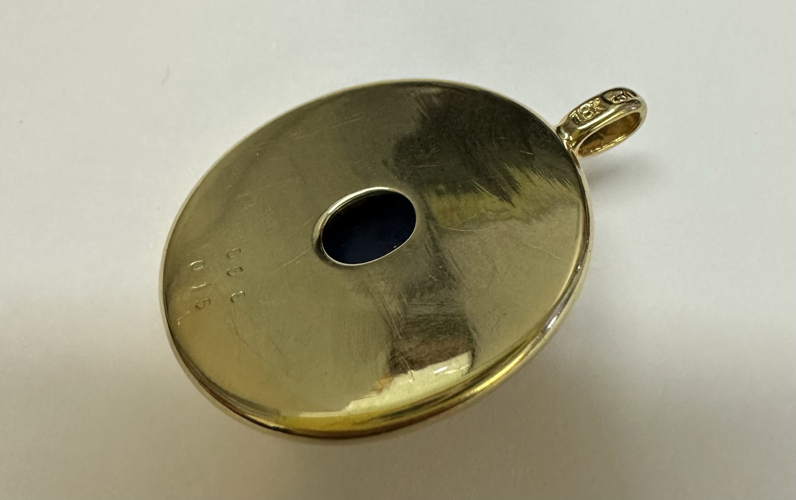 Vintage 18k Yellow Gold 3 Carat Sapphire & .15 Cttw Diamond Bezel Pendant