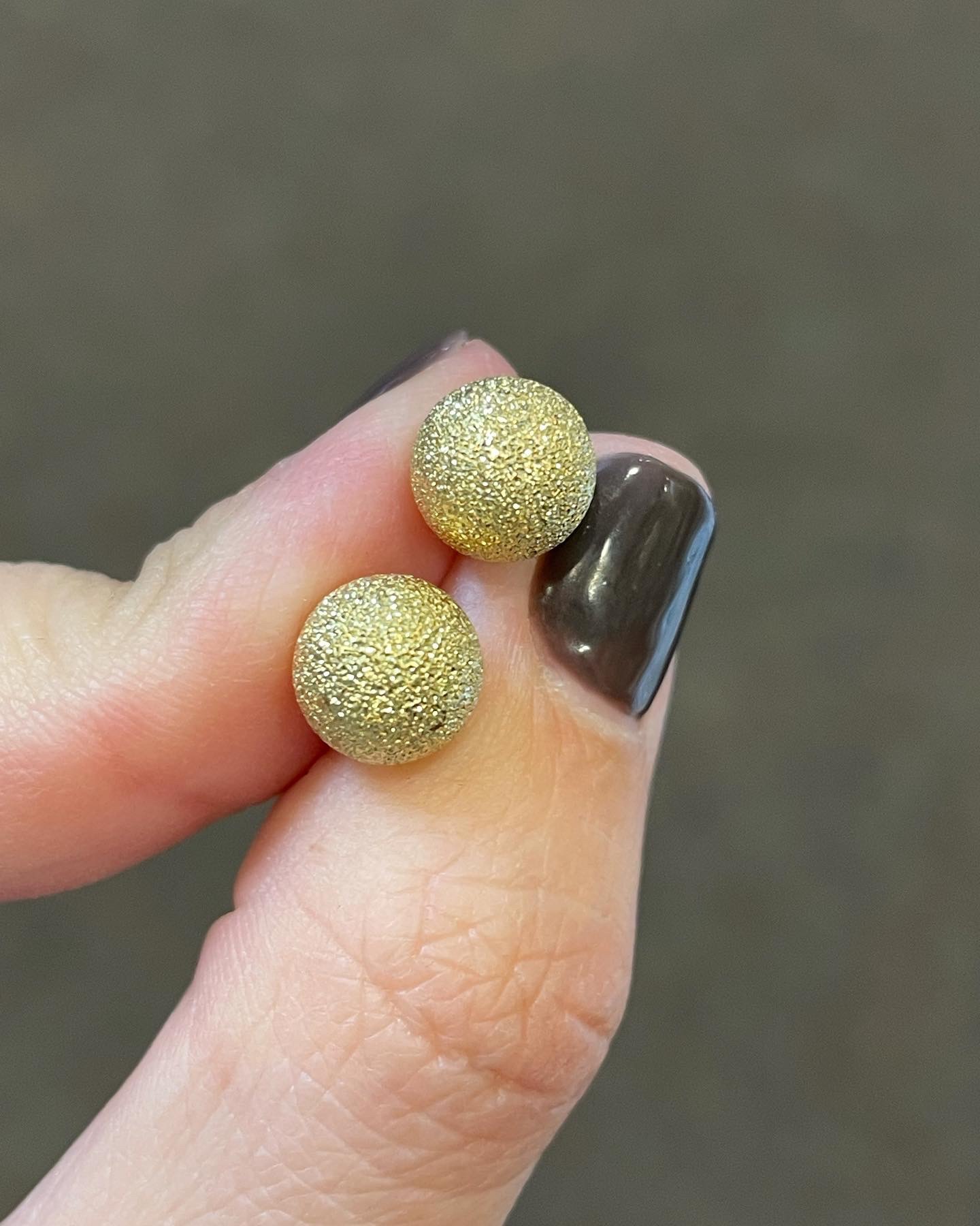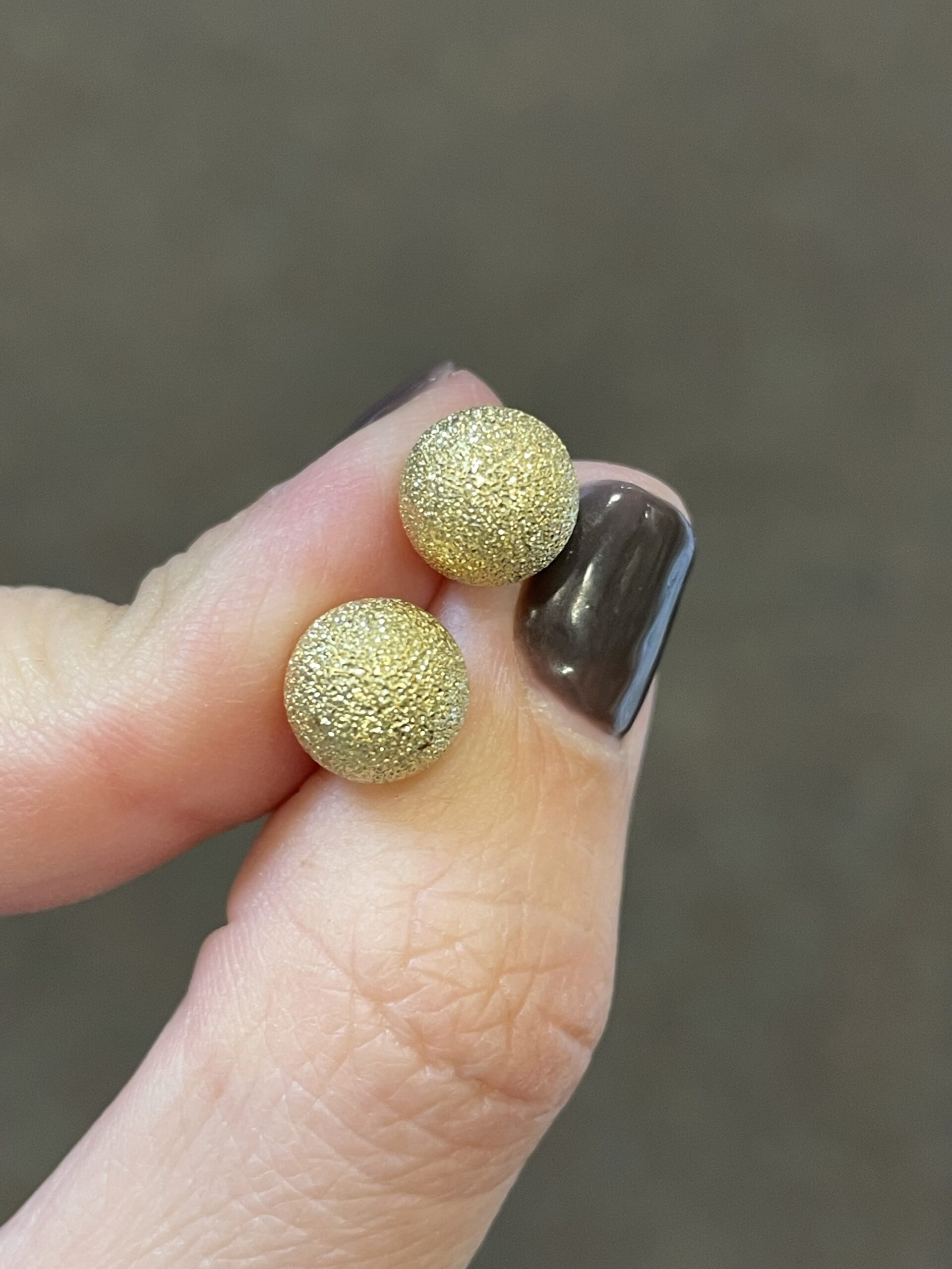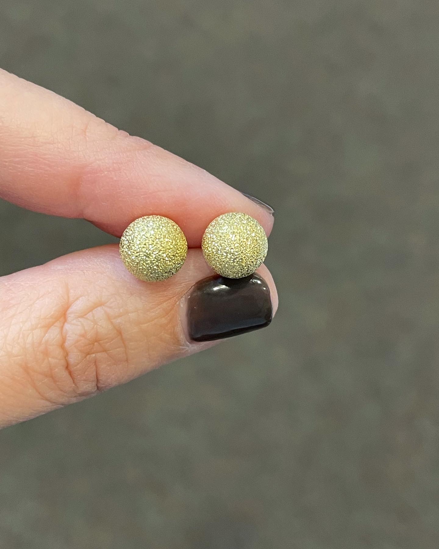 One-of-a-kind 18k yellow gold 8 mm ball stud earrings with diamanté finish, directly imported from Italy. These earrings have an entire weight of 3.5 grams, and they glisten so prettily!