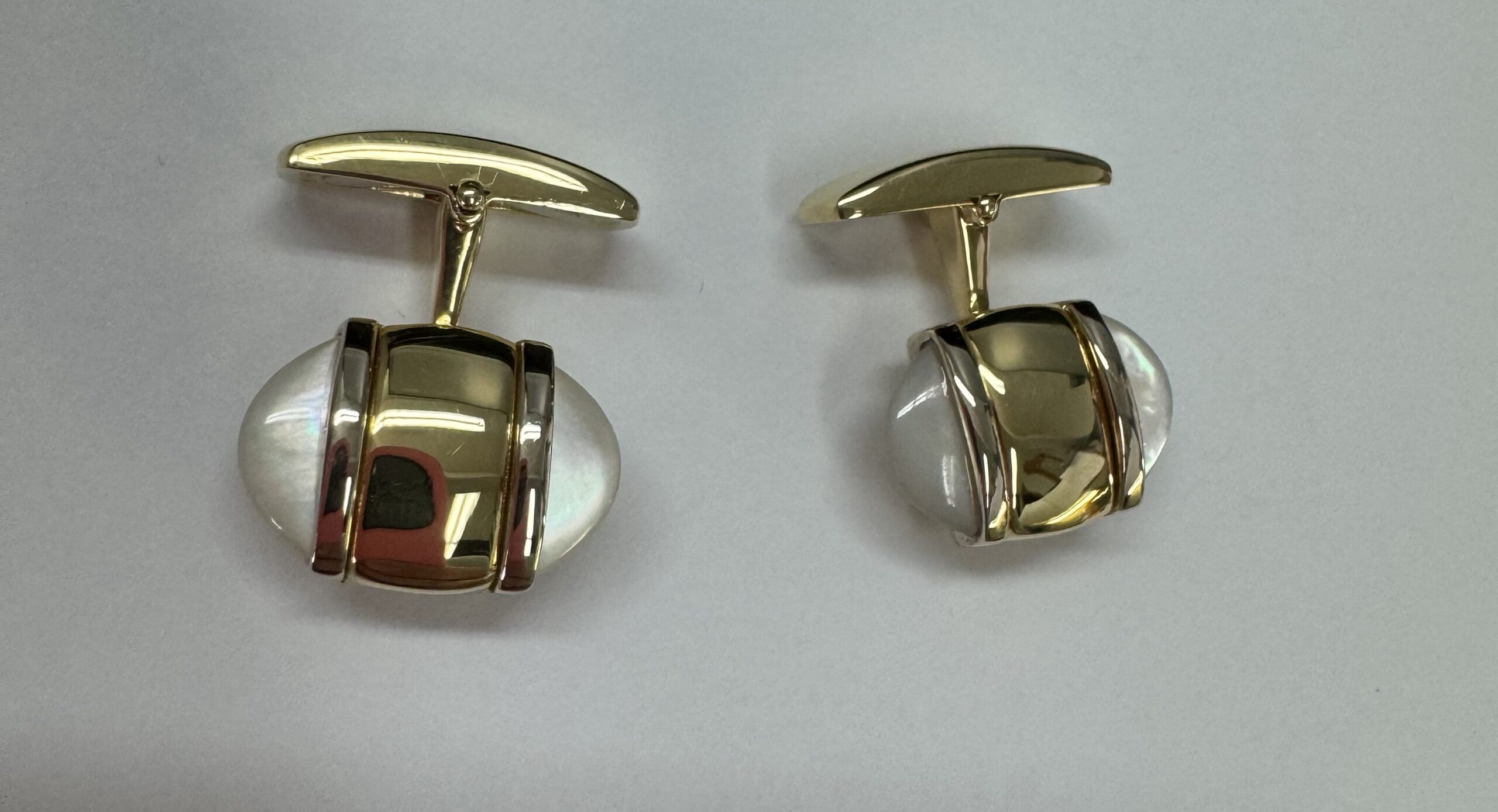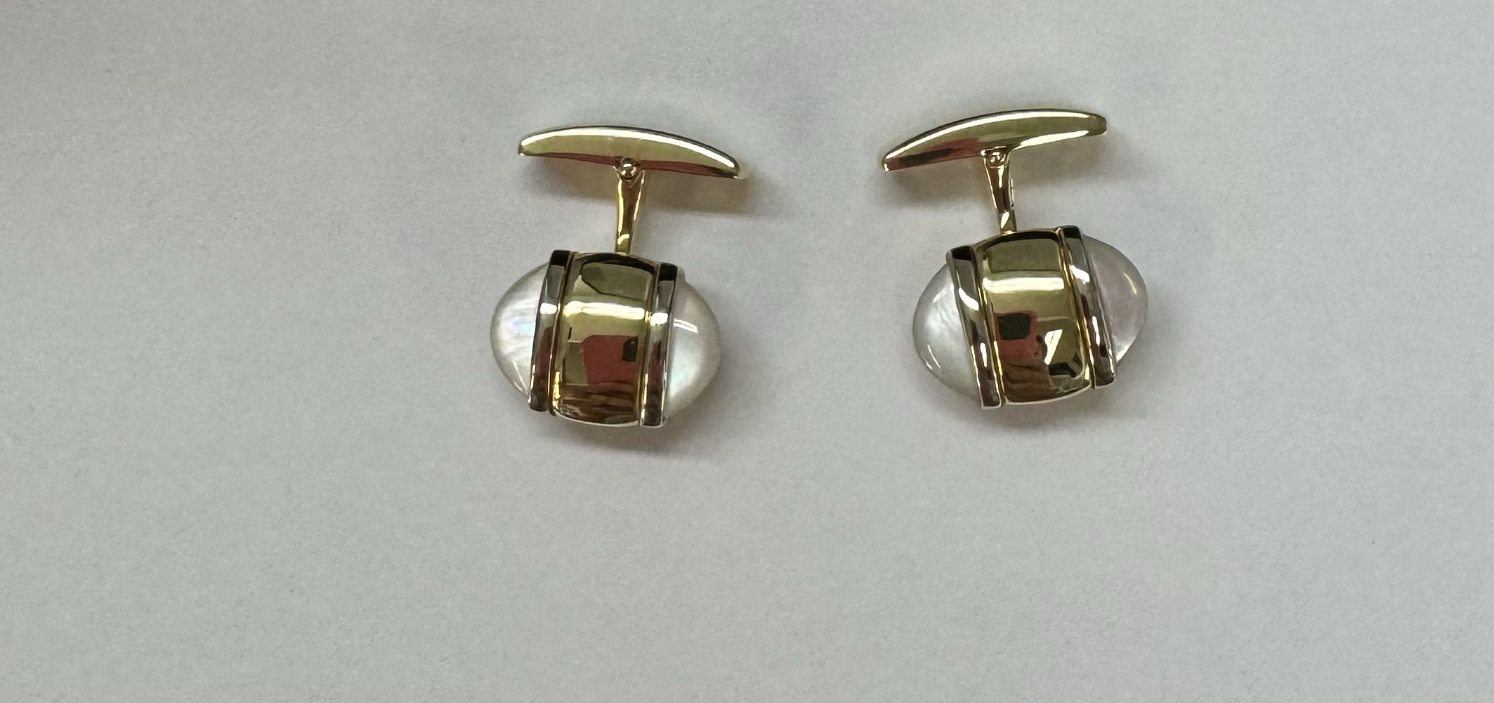 Wedding season is upon us- and wouldn’t these make a lovely wedding gift?! One-of-a-kind 18k yellow gold and genuine Mother of Pearl oval shaped cufflinks, directly imported from Italy, 16.4 mm, 10.3 grams now 50% off @$795.