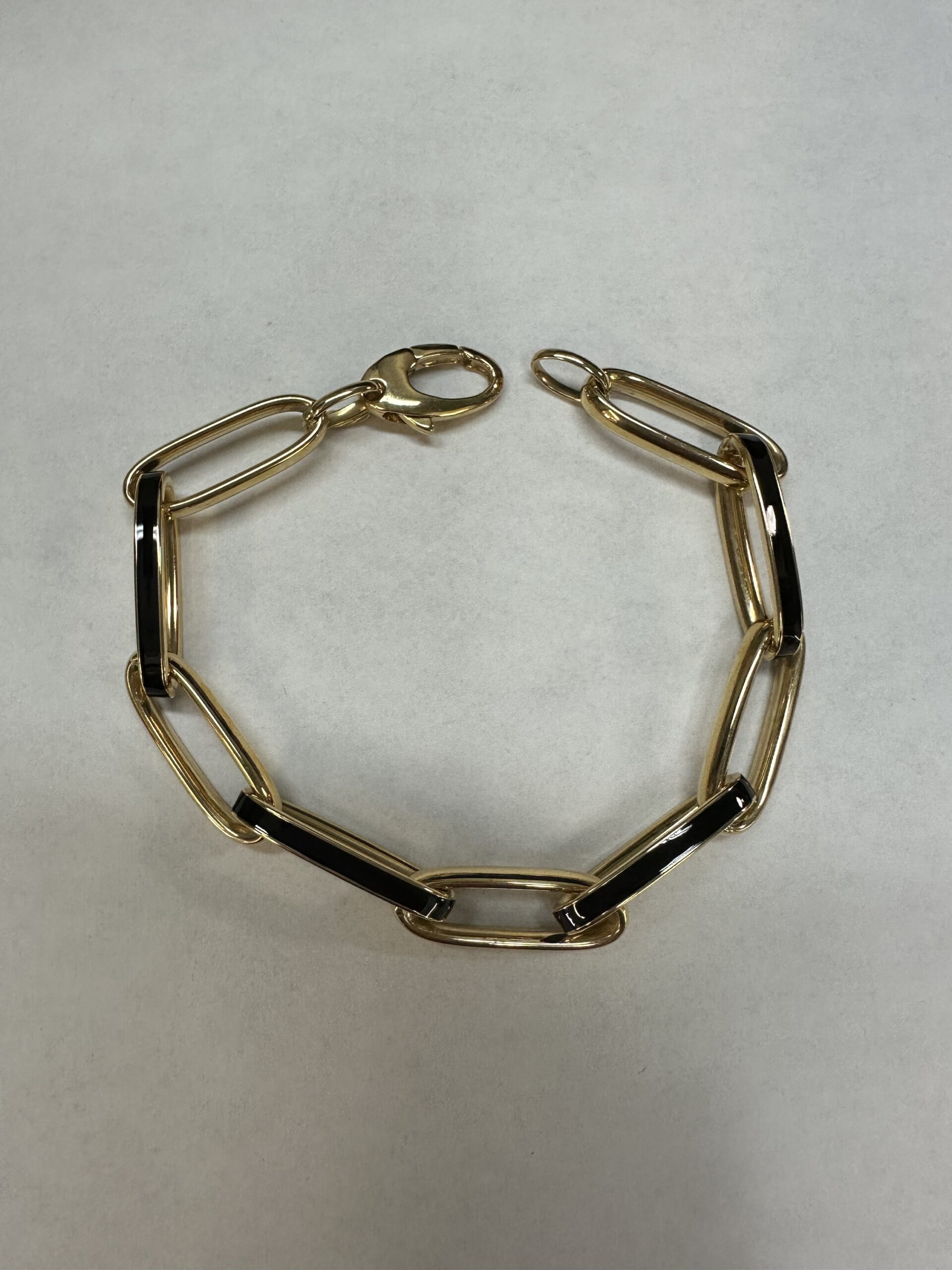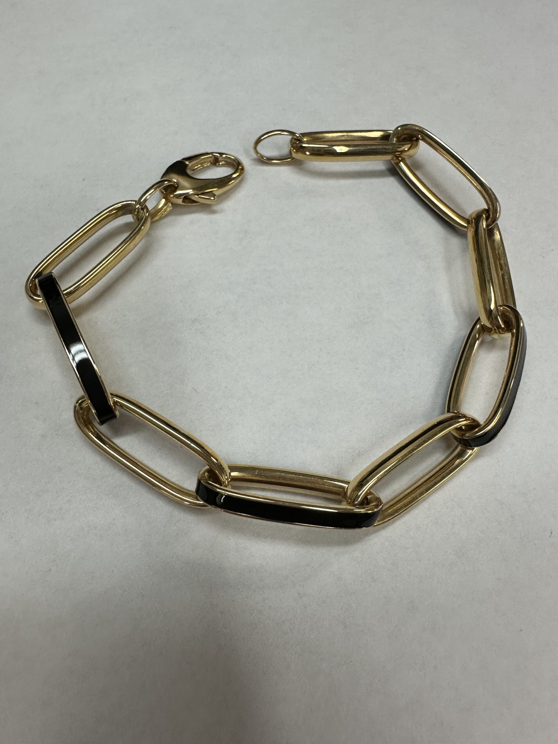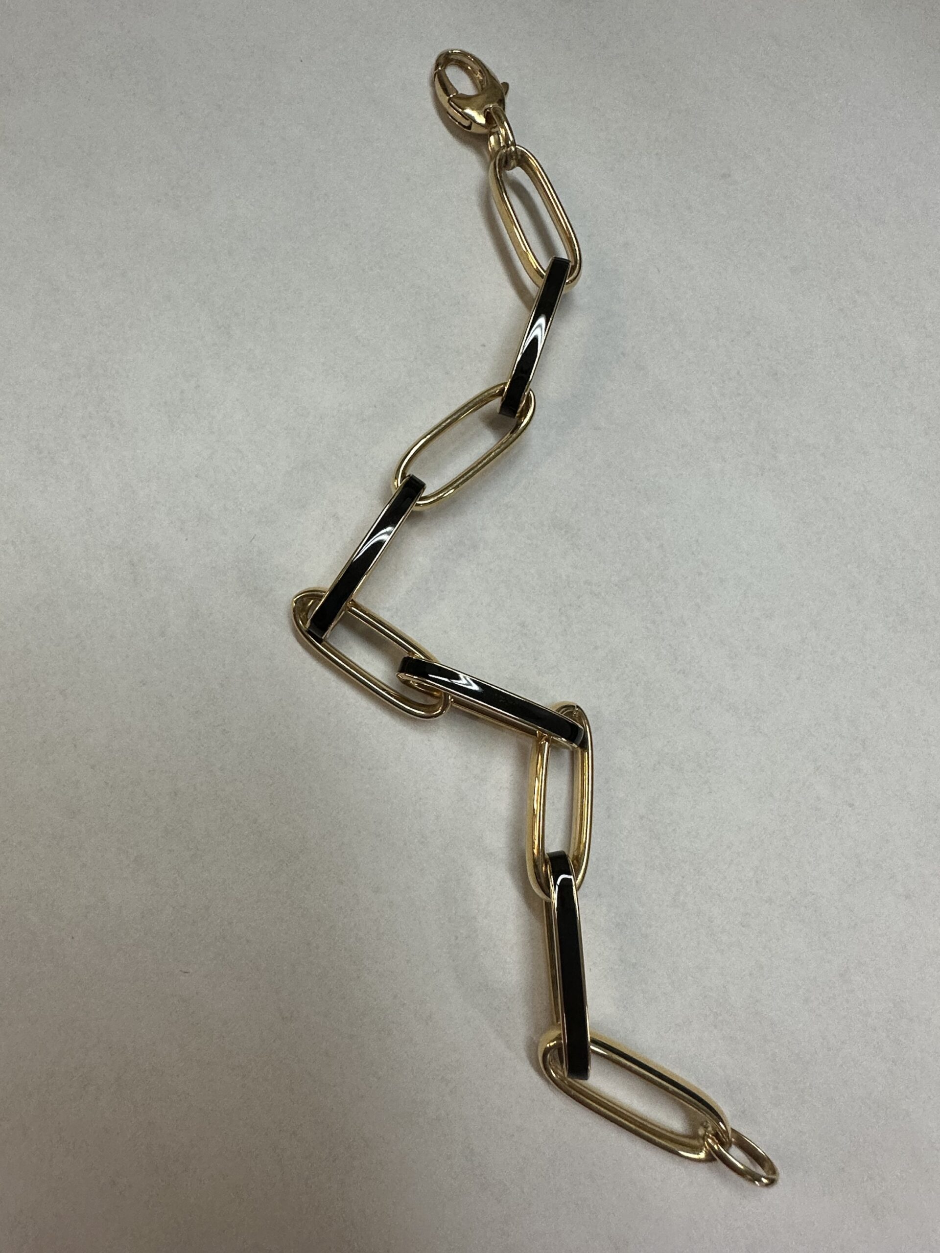One-of-a-kind 18k yellow gold & black enamel open oval link bracelet directly imported from Italy, 8”, 10.19 grams.
