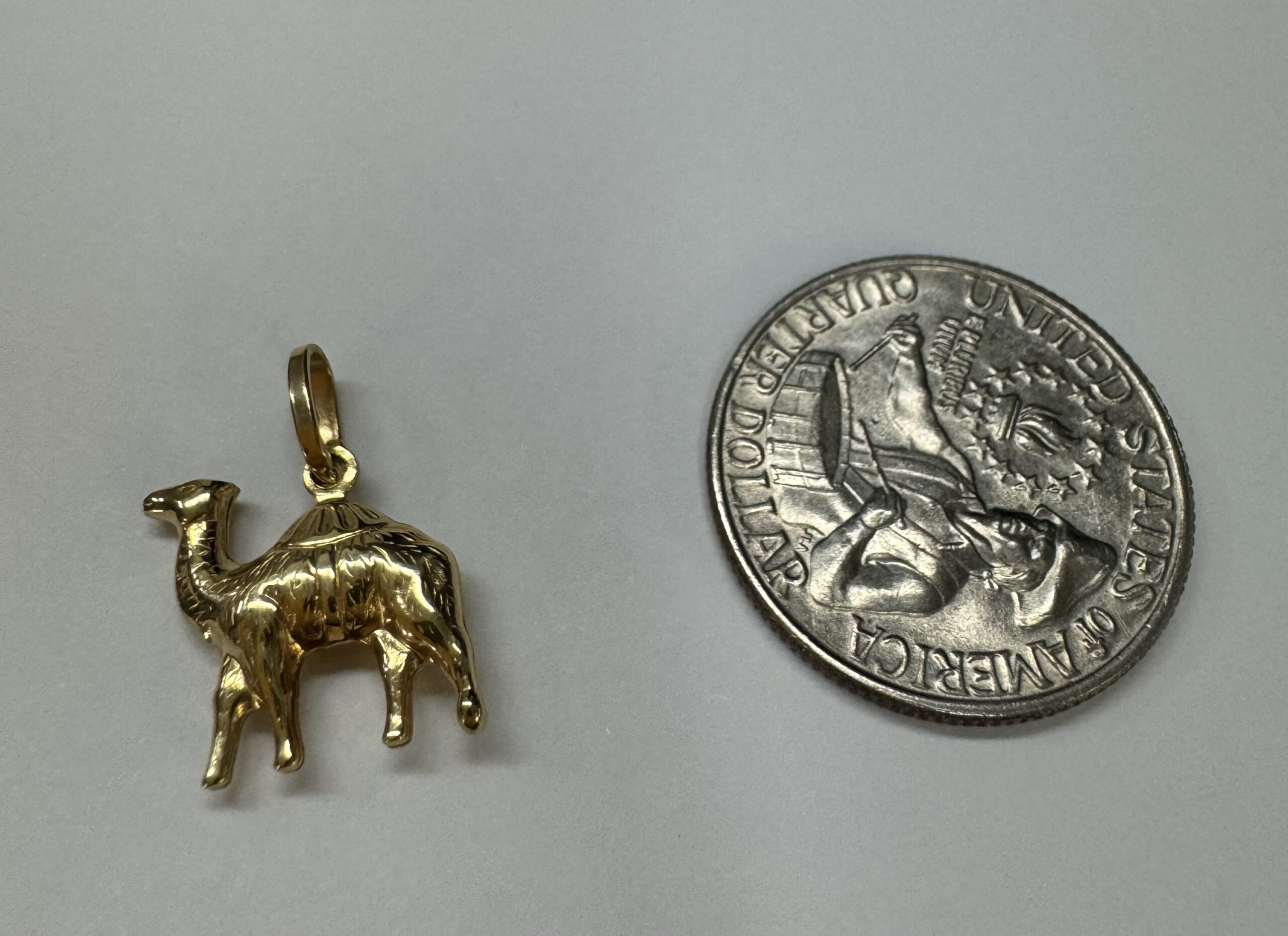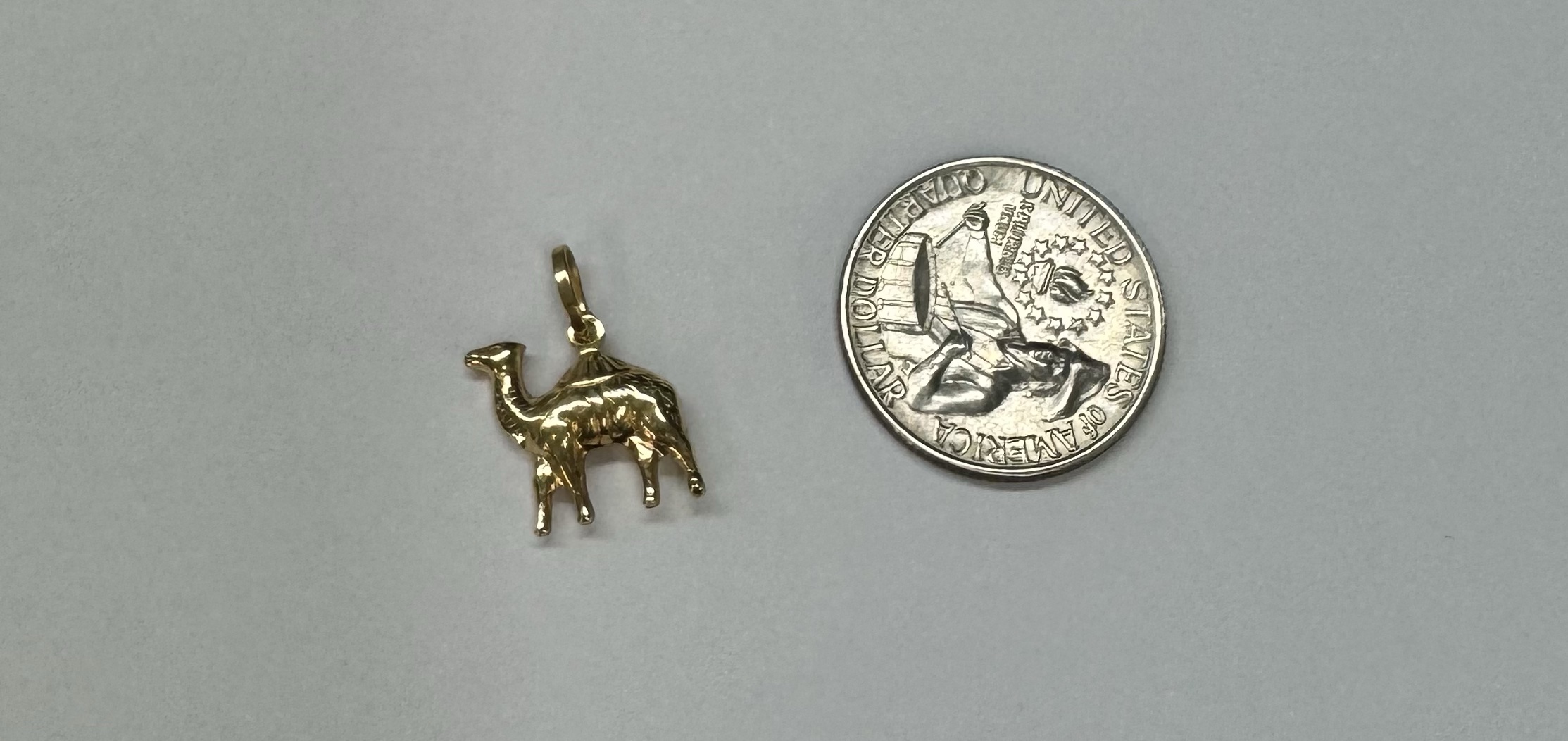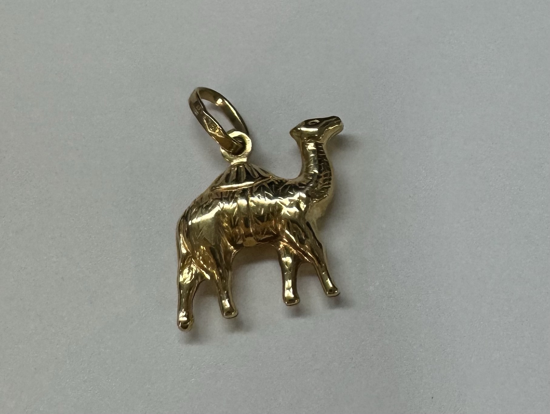18k yellow gold Camel charm/ pendant. This piece has an entire weight of 1.3 grams.