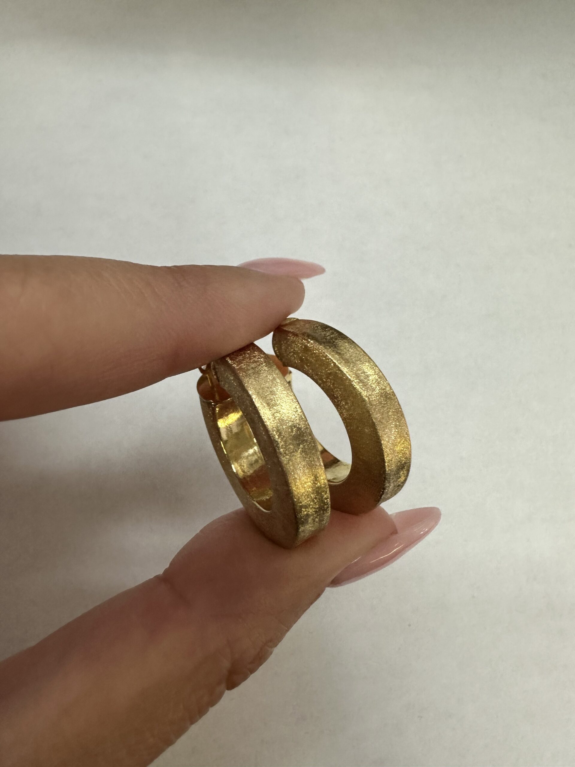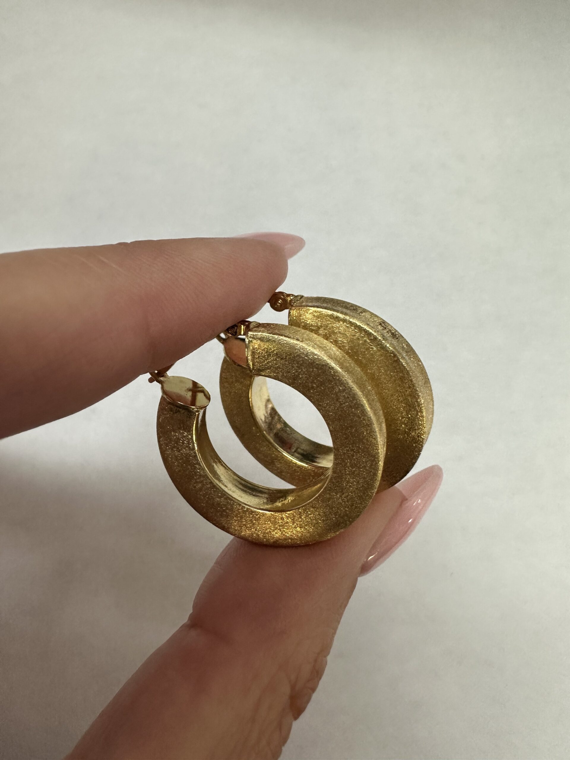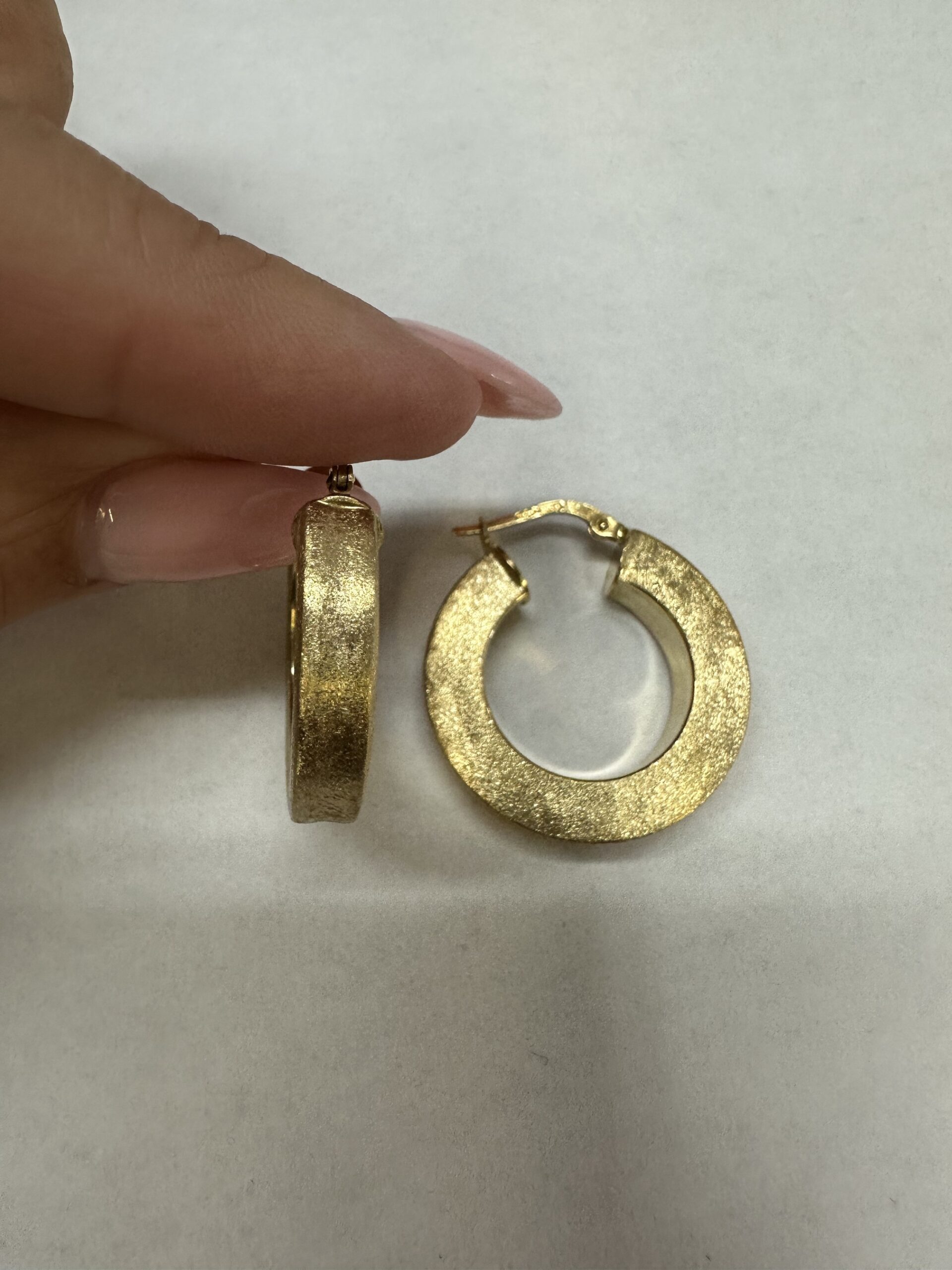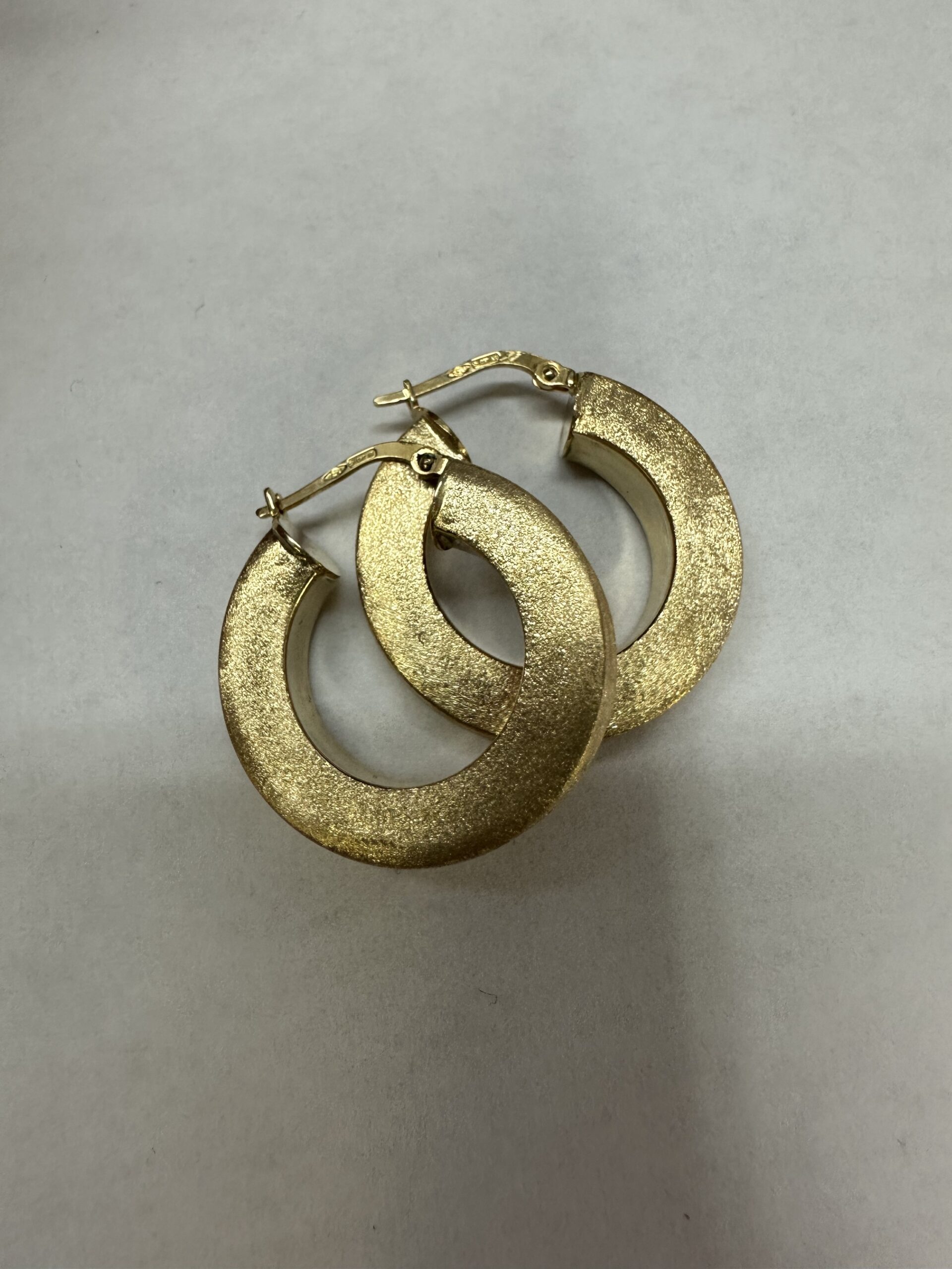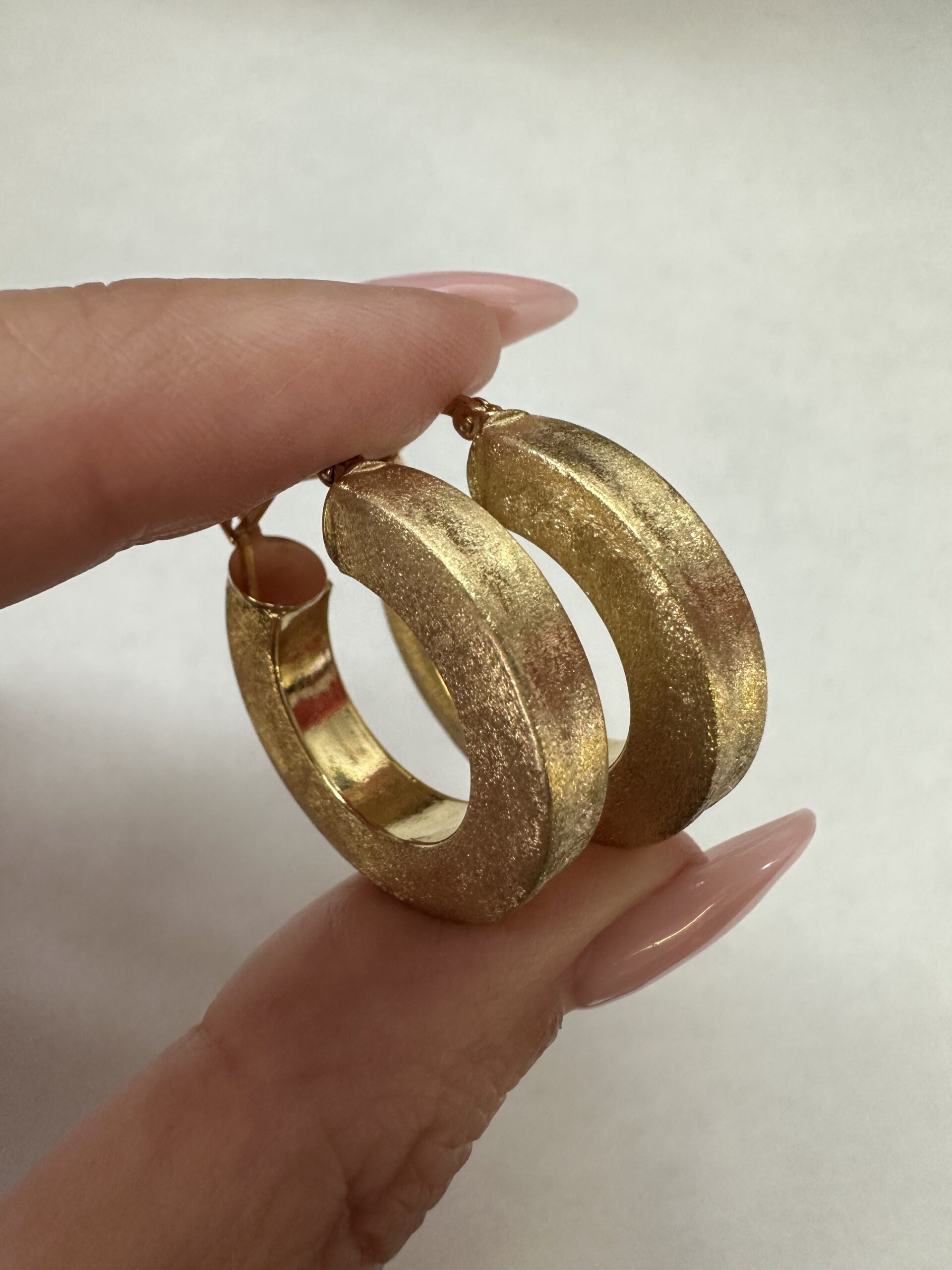 One-of-a-kind 18k yellow gold round hoop earrings with satin finish, directly imported from Italy. These earrings measure 5 x 25.5 mm in size, and they have an entire weight of 8.1 grams.