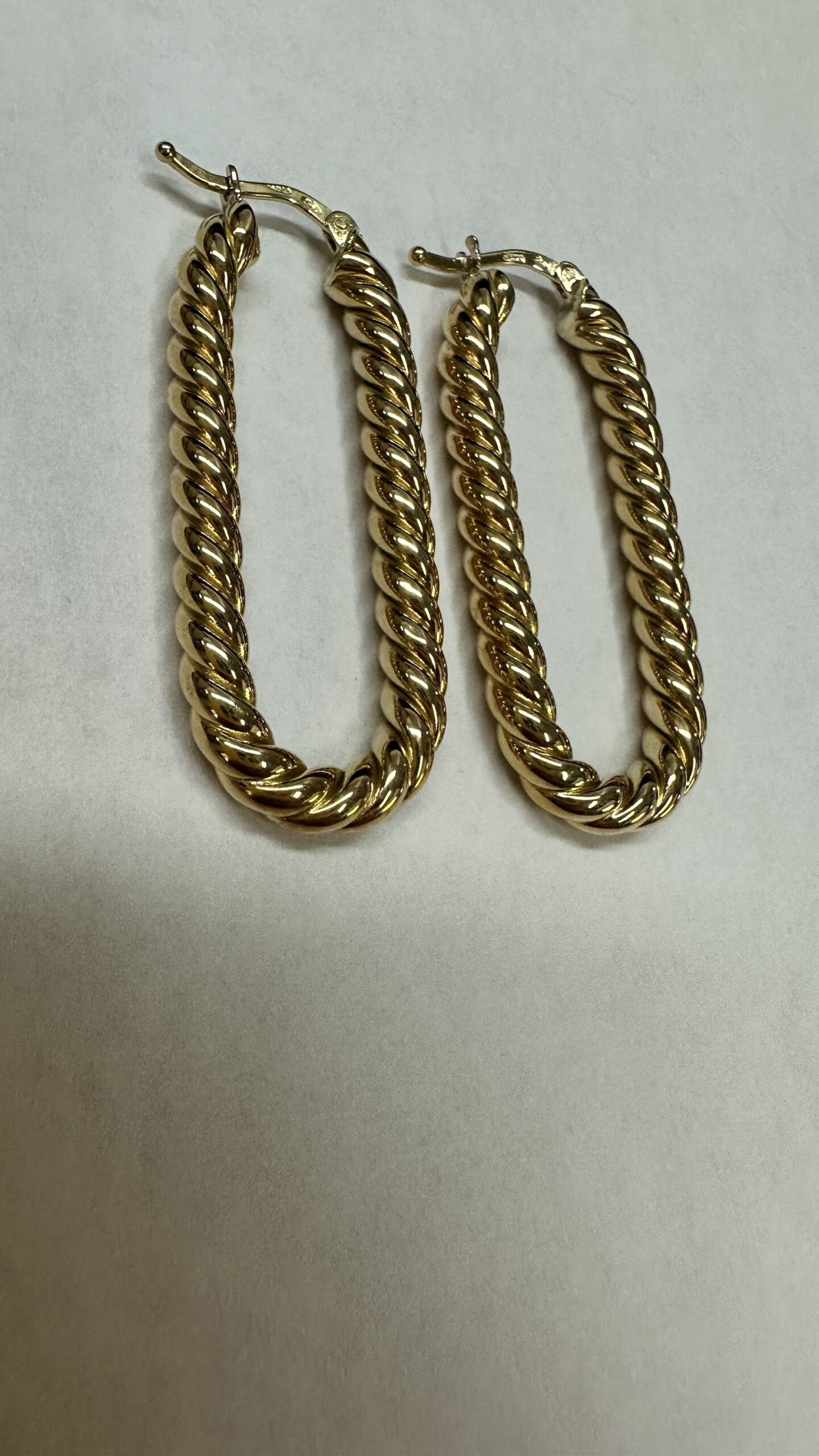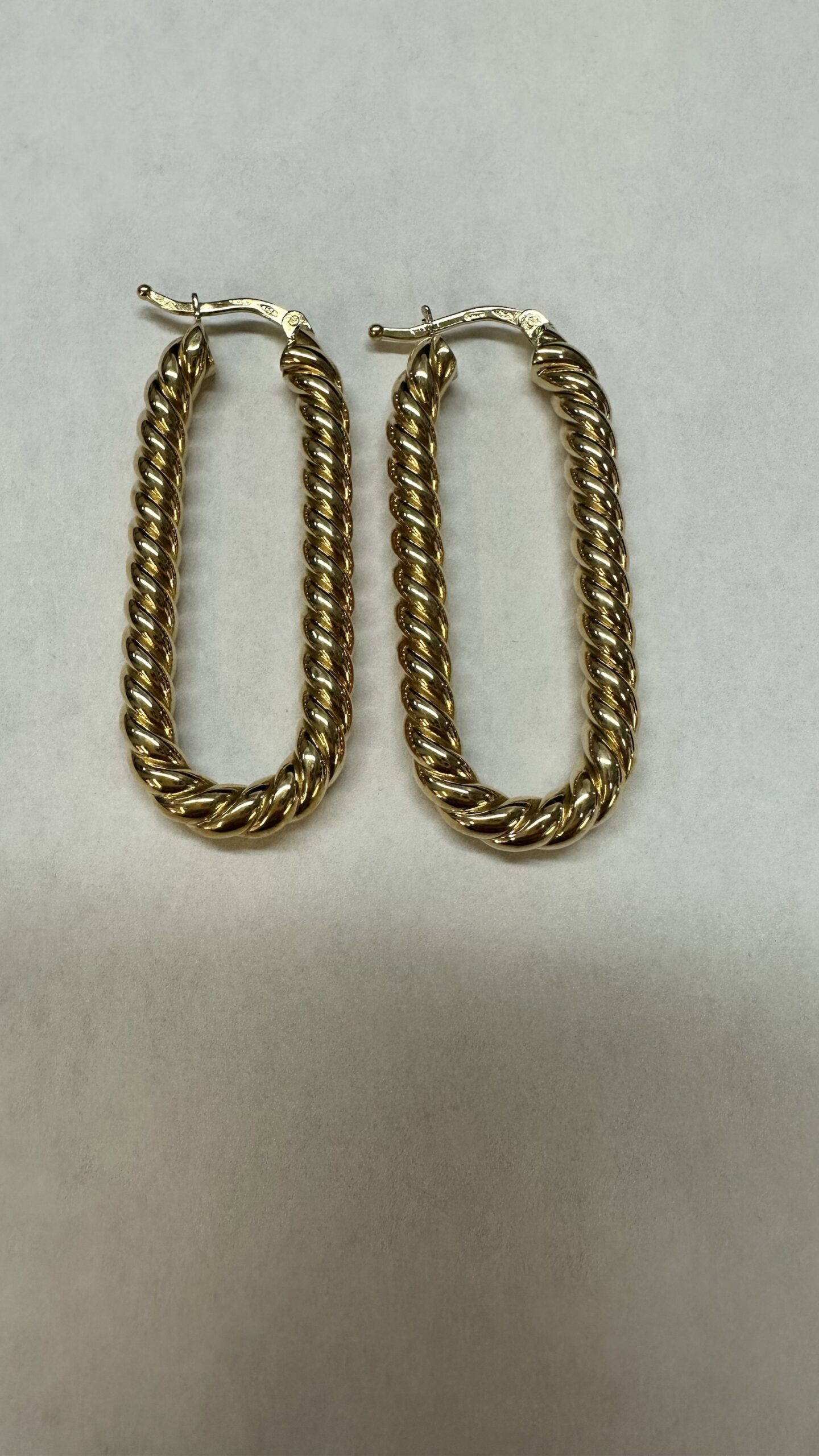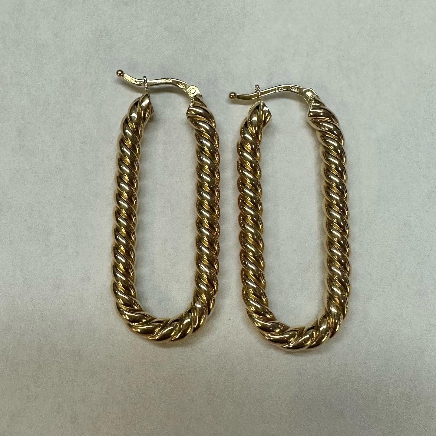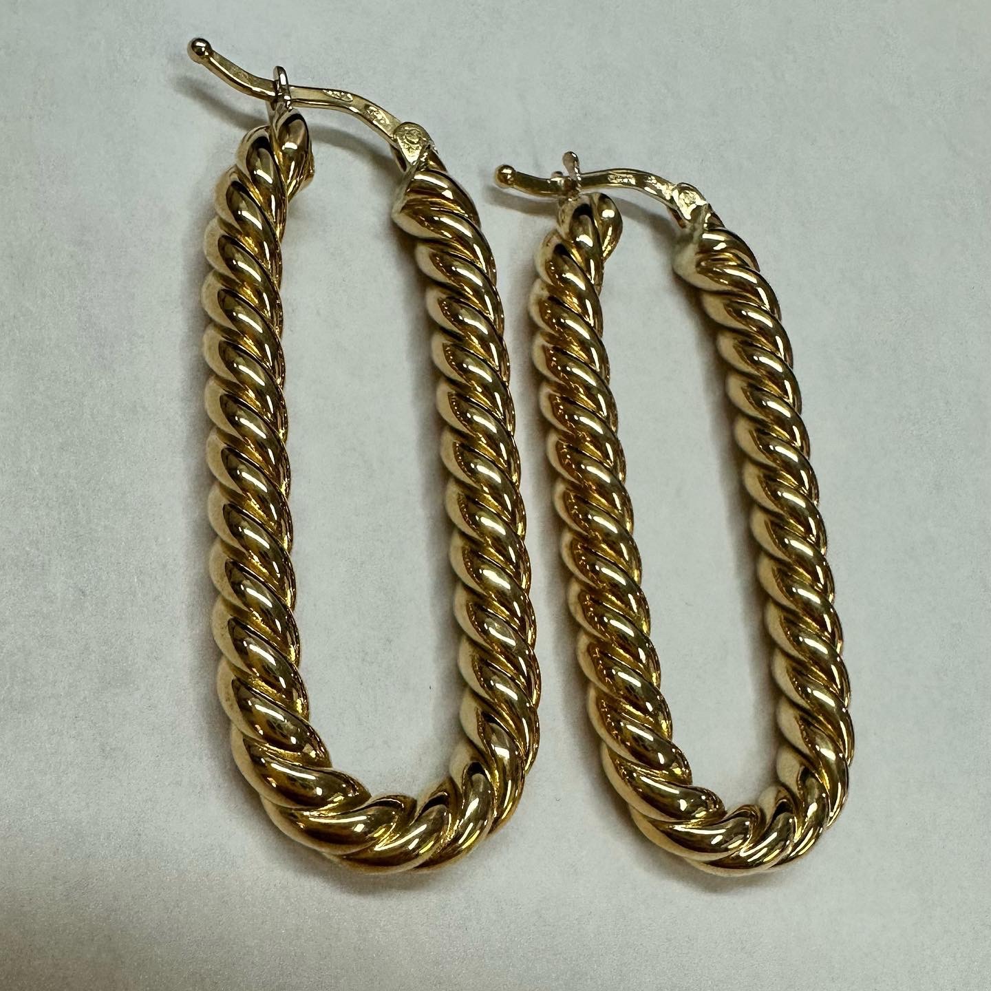 18k yellow gold paper clip style oval hoop earrings from Italy, 41.5 x 4 mm, 7.39 grams.