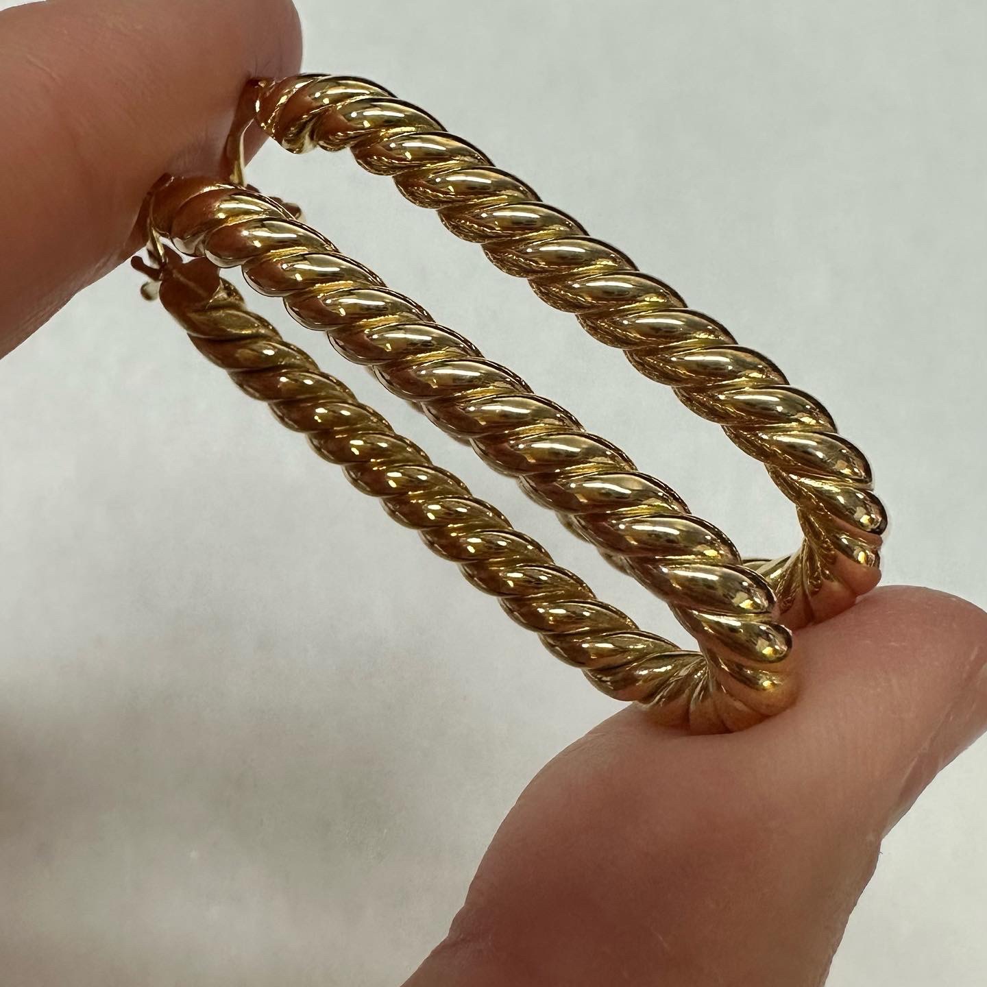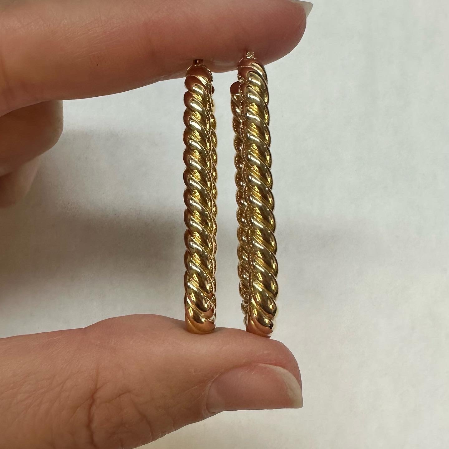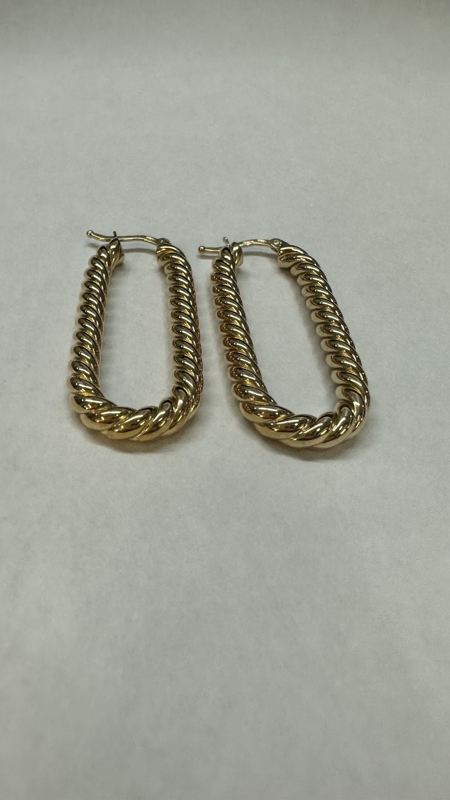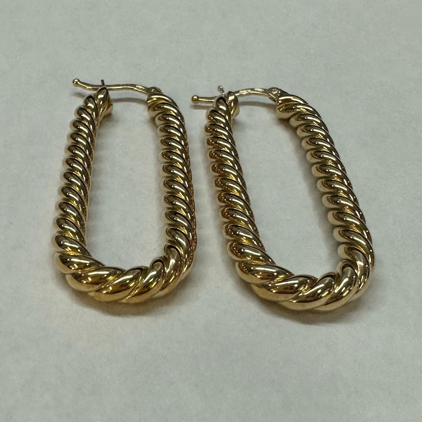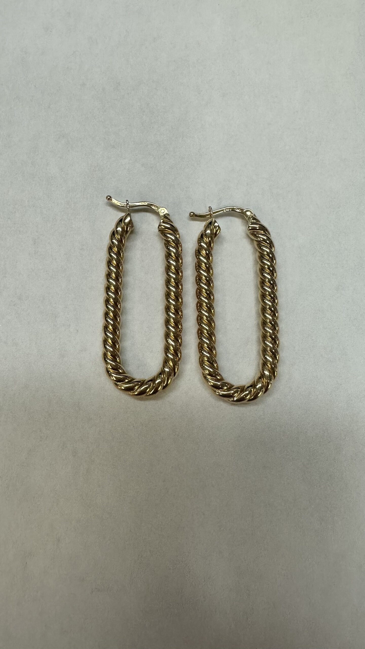 18k yellow gold paper clip style oval hoop earrings from Italy, 41.5 x 4 mm, 7.39 grams.