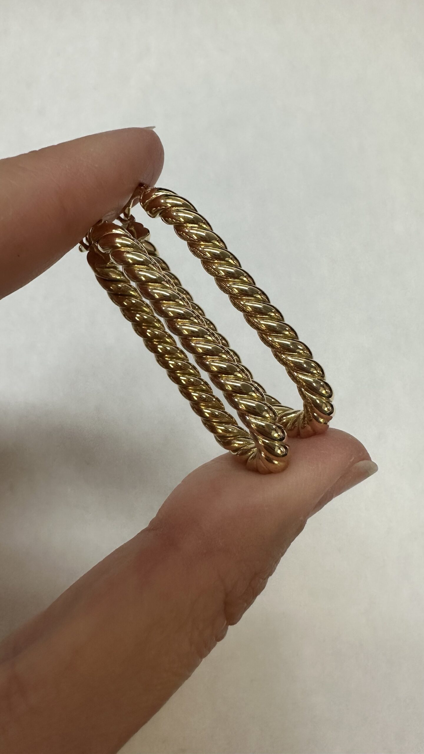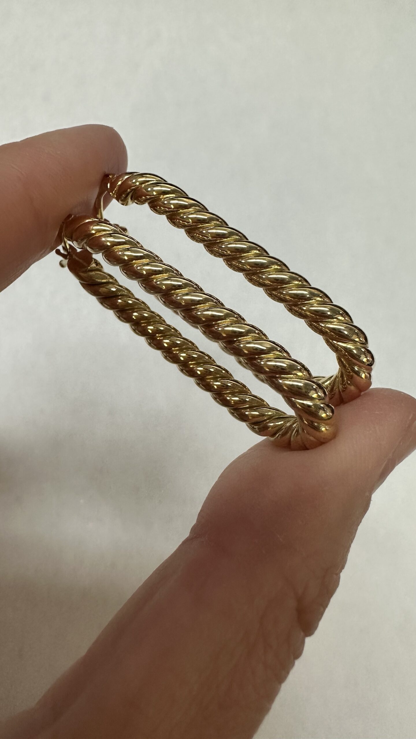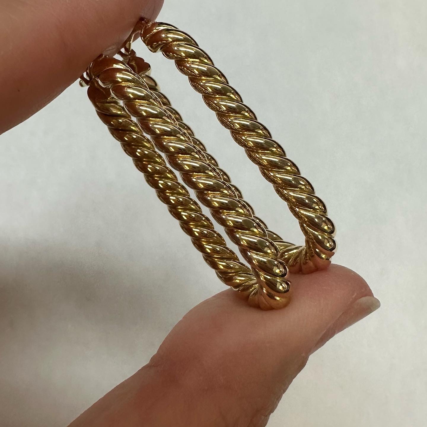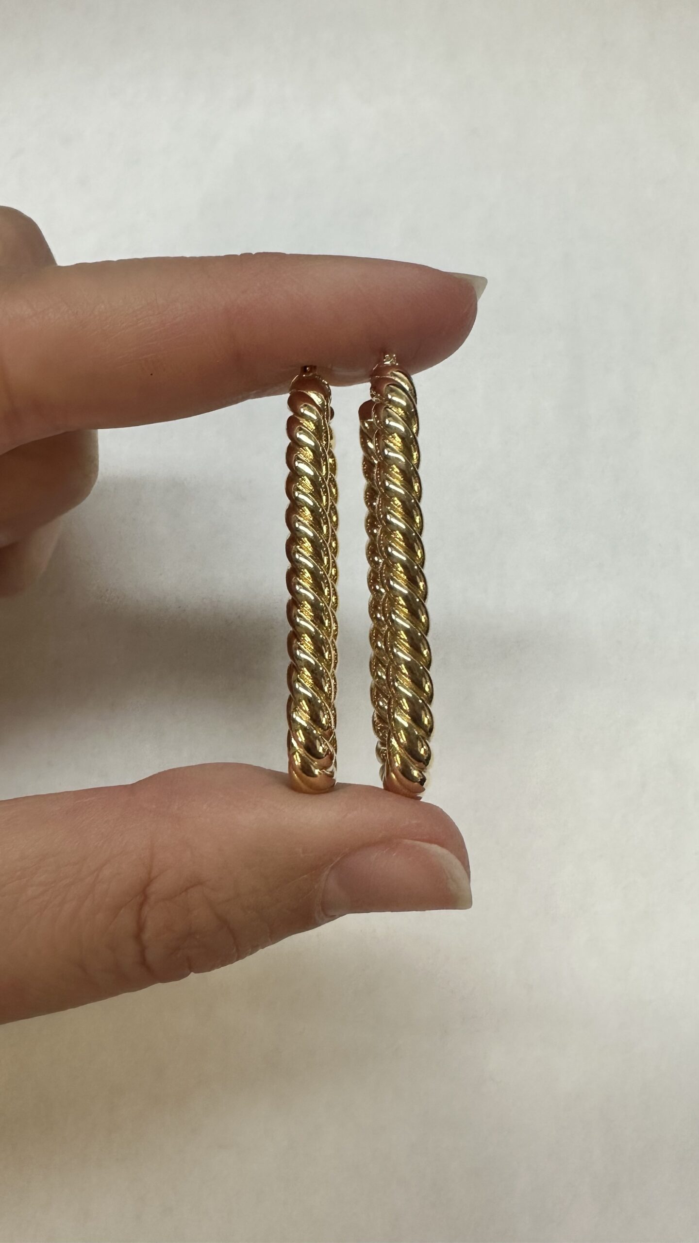 18k yellow gold paper clip style oval hoop earrings from Italy, 41.5 x 4 mm, 7.39 grams.