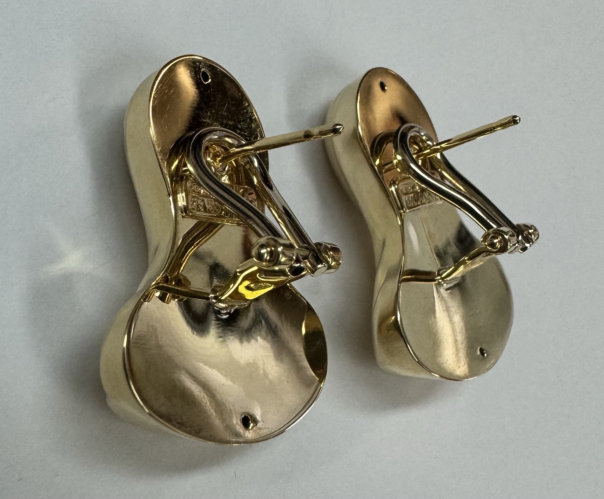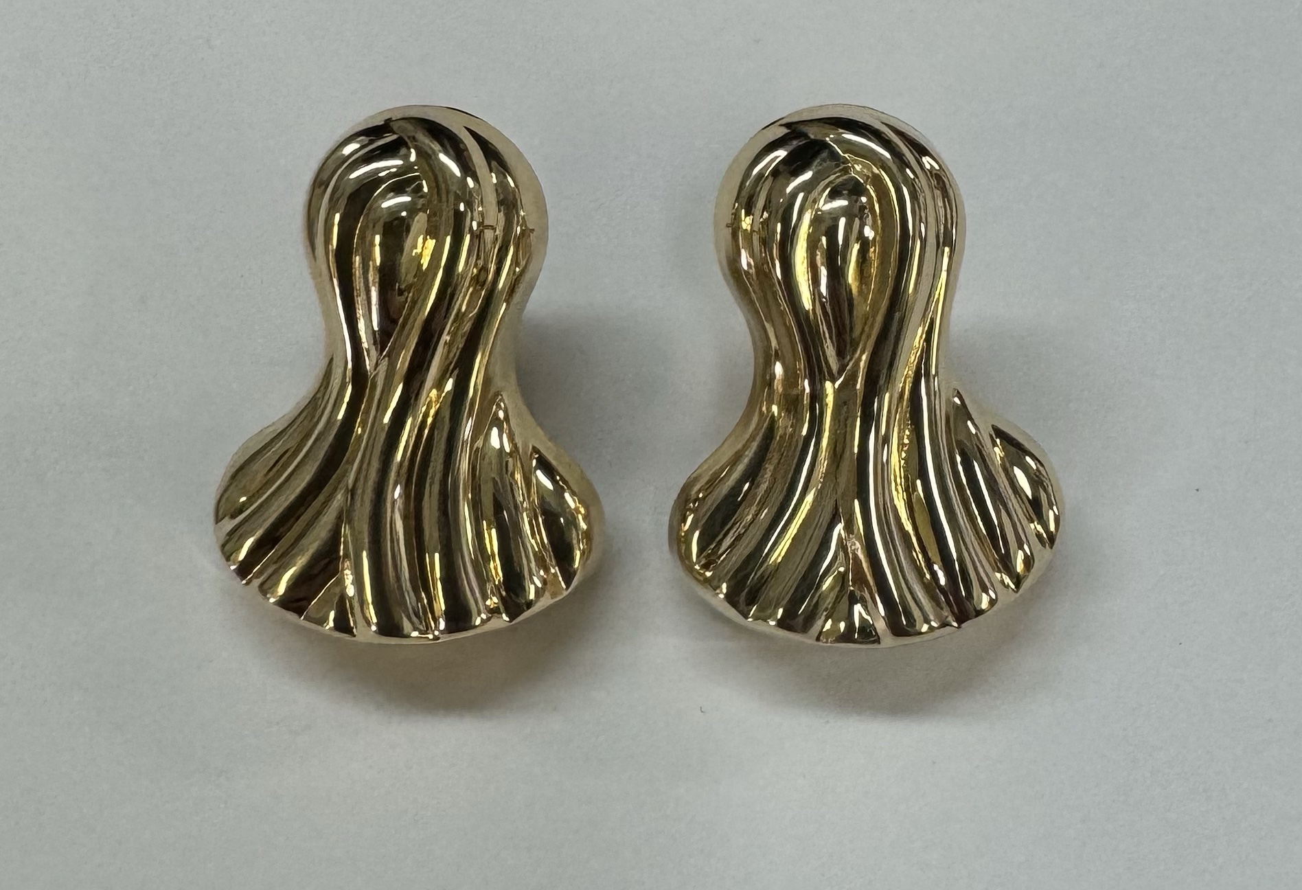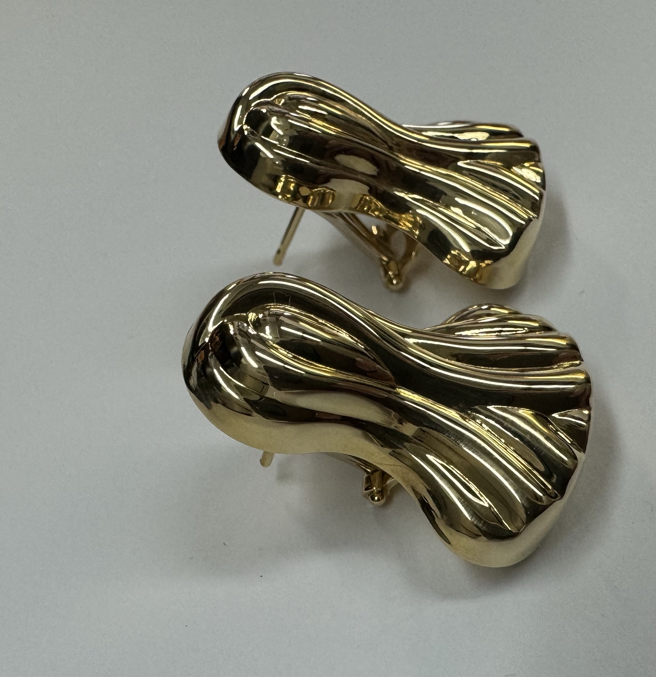 One-of-a-kind 18k yellow gold fashion post & clip earrings, directly imported from Italy. These earrings have an entire weight of 6.5 grams. These earrings measure approximately 27 x 20 mm in size.
