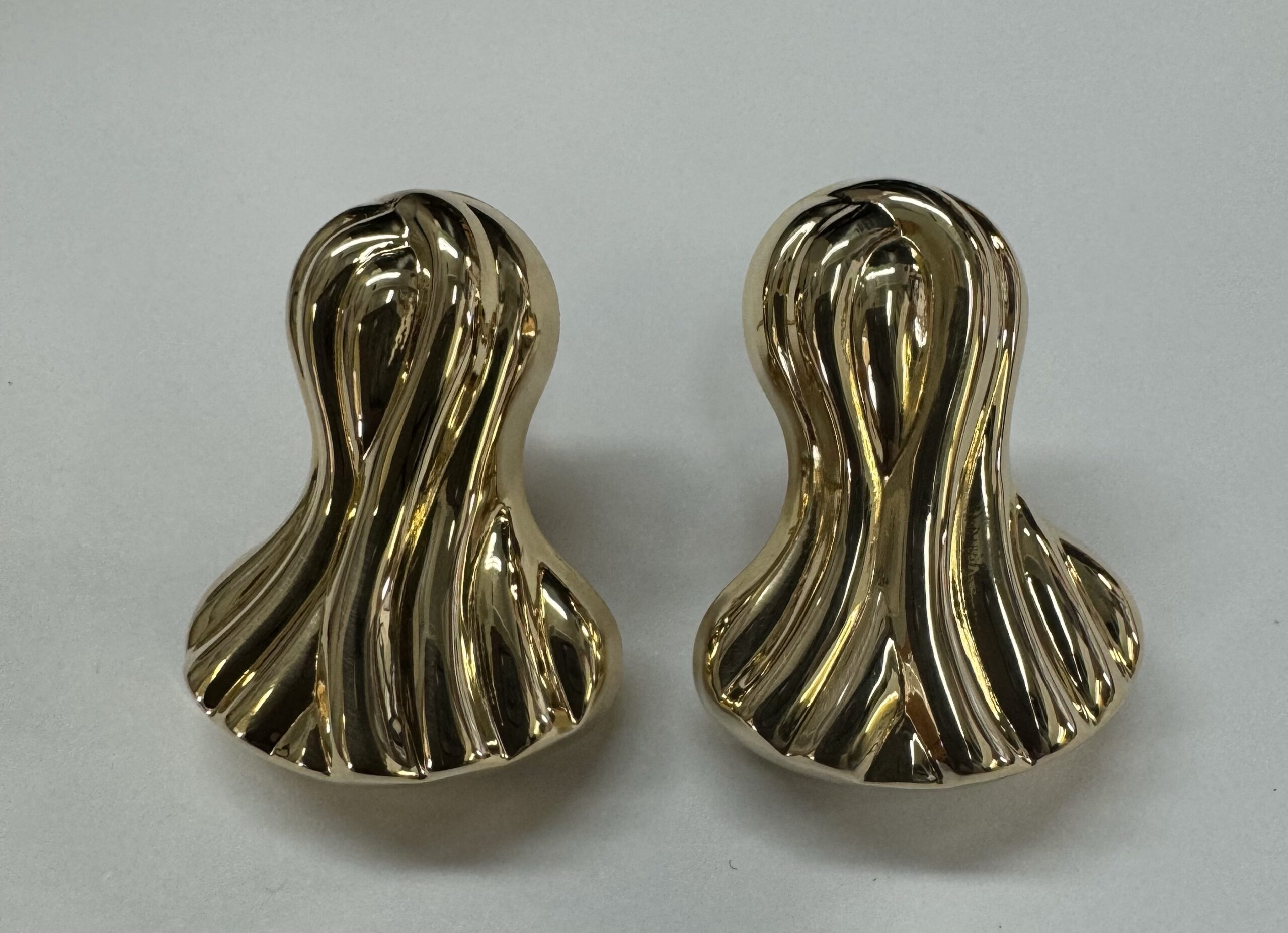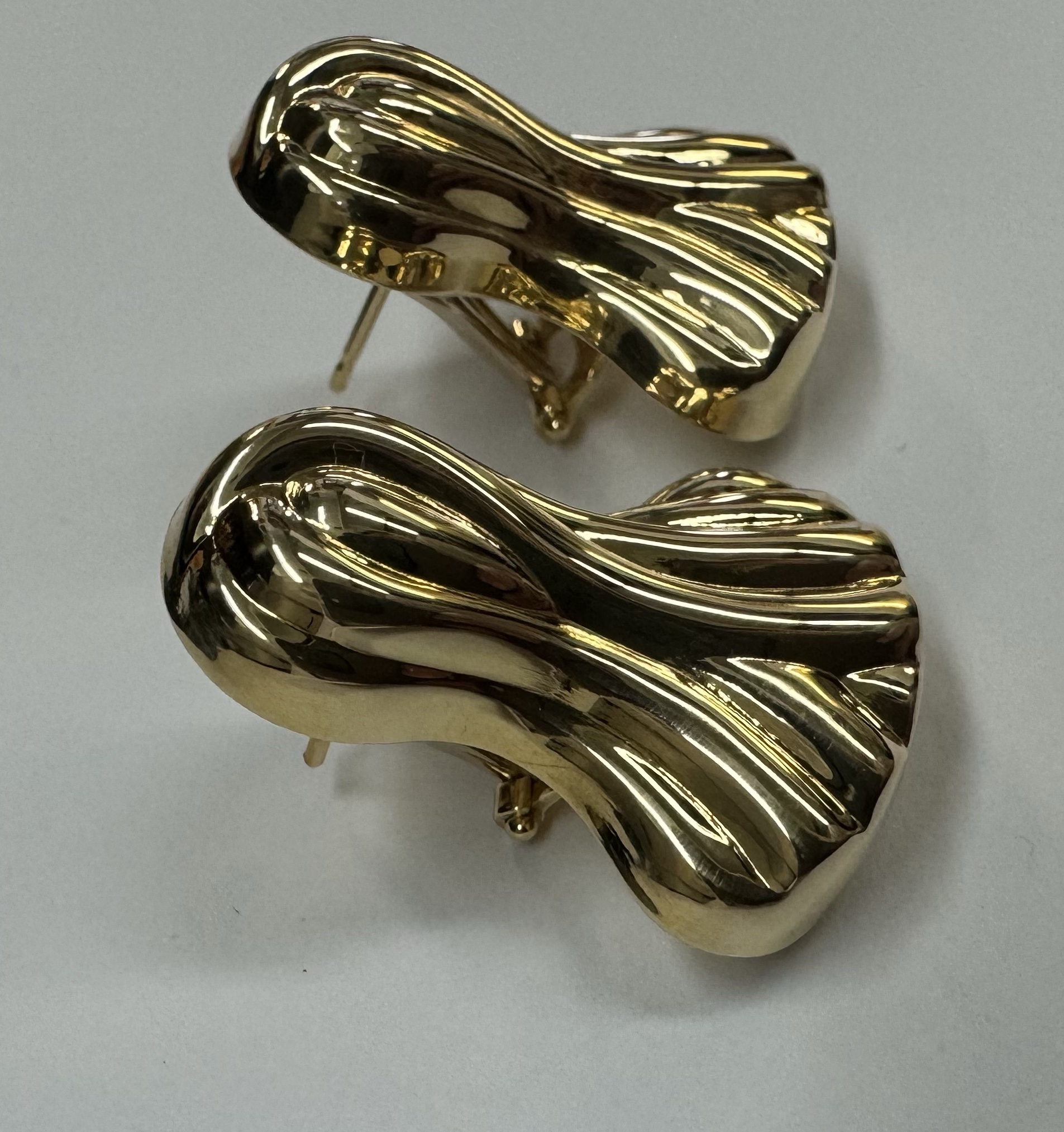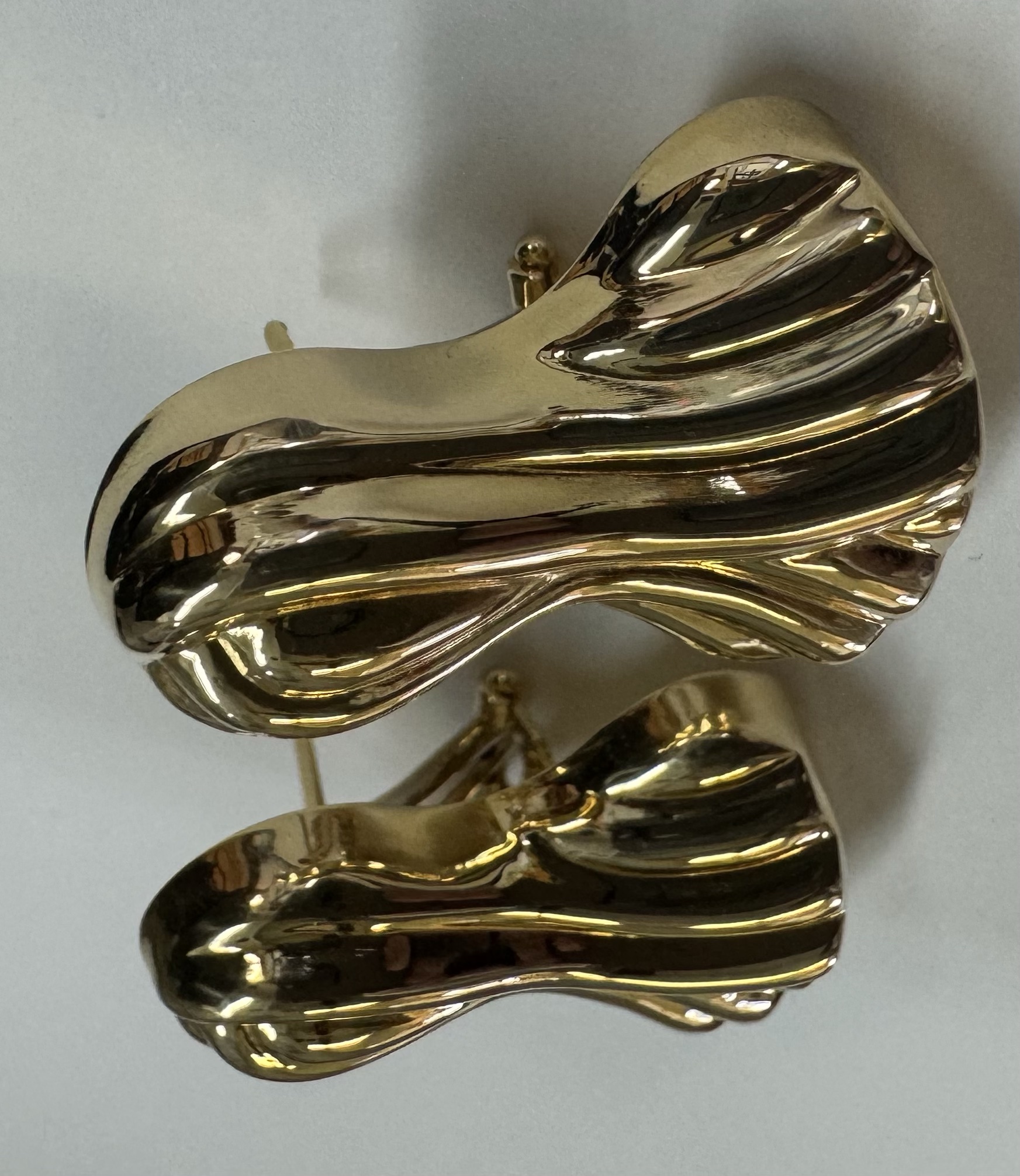 One-of-a-kind 18k yellow gold fashion post & clip earrings, directly imported from Italy. These earrings have an entire weight of 6.5 grams. These earrings measure approximately 27 x 20 mm in size.
