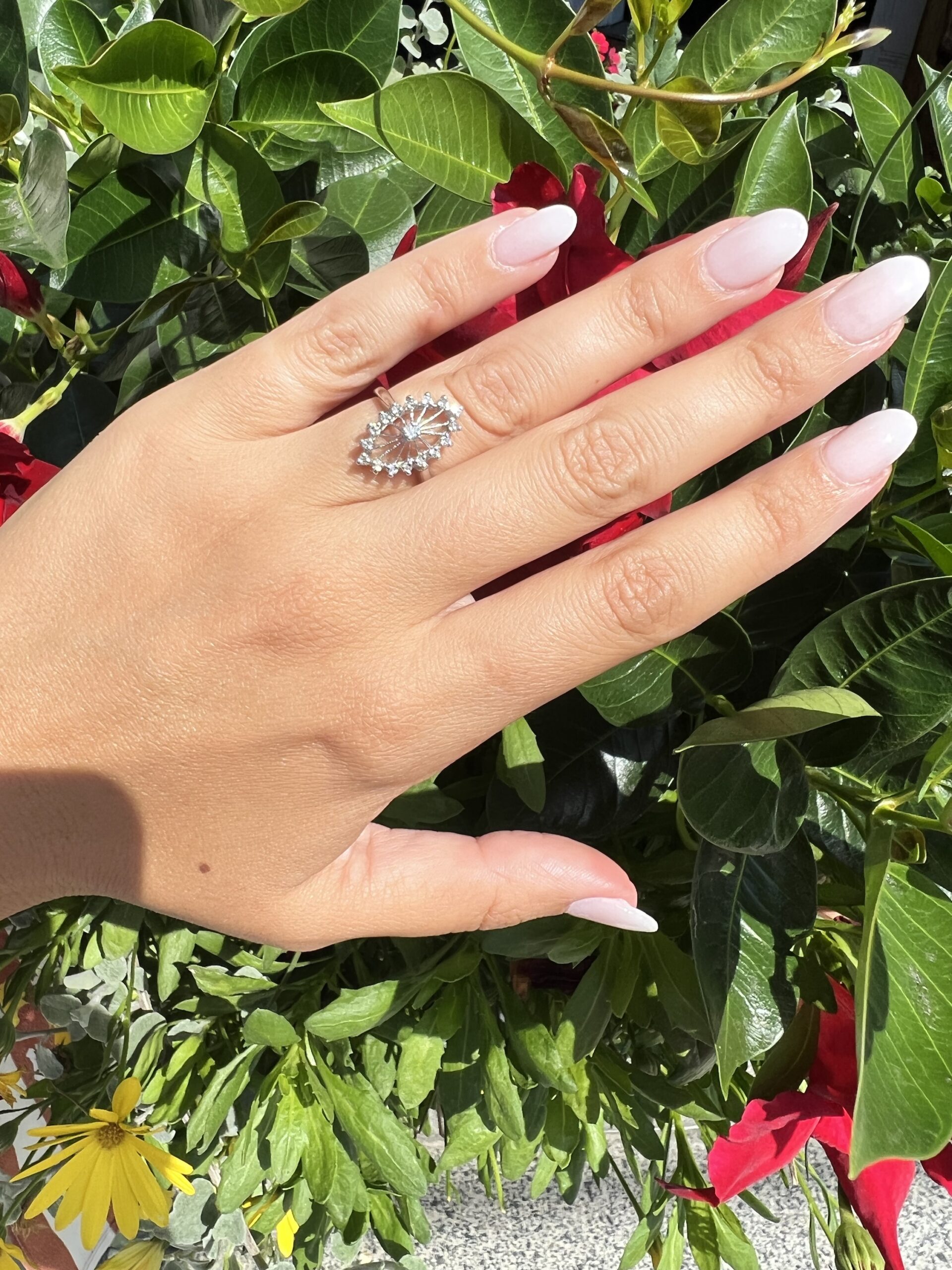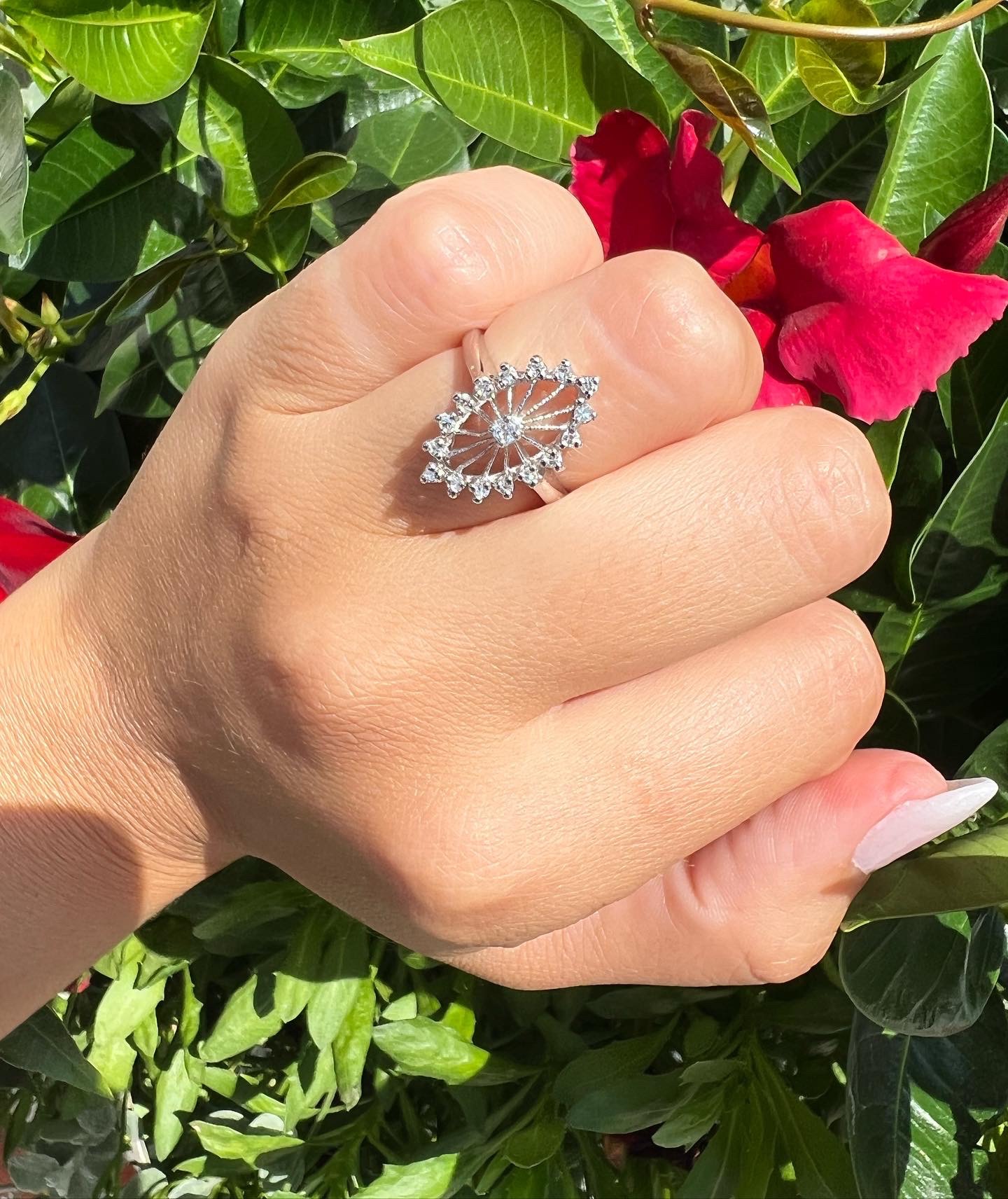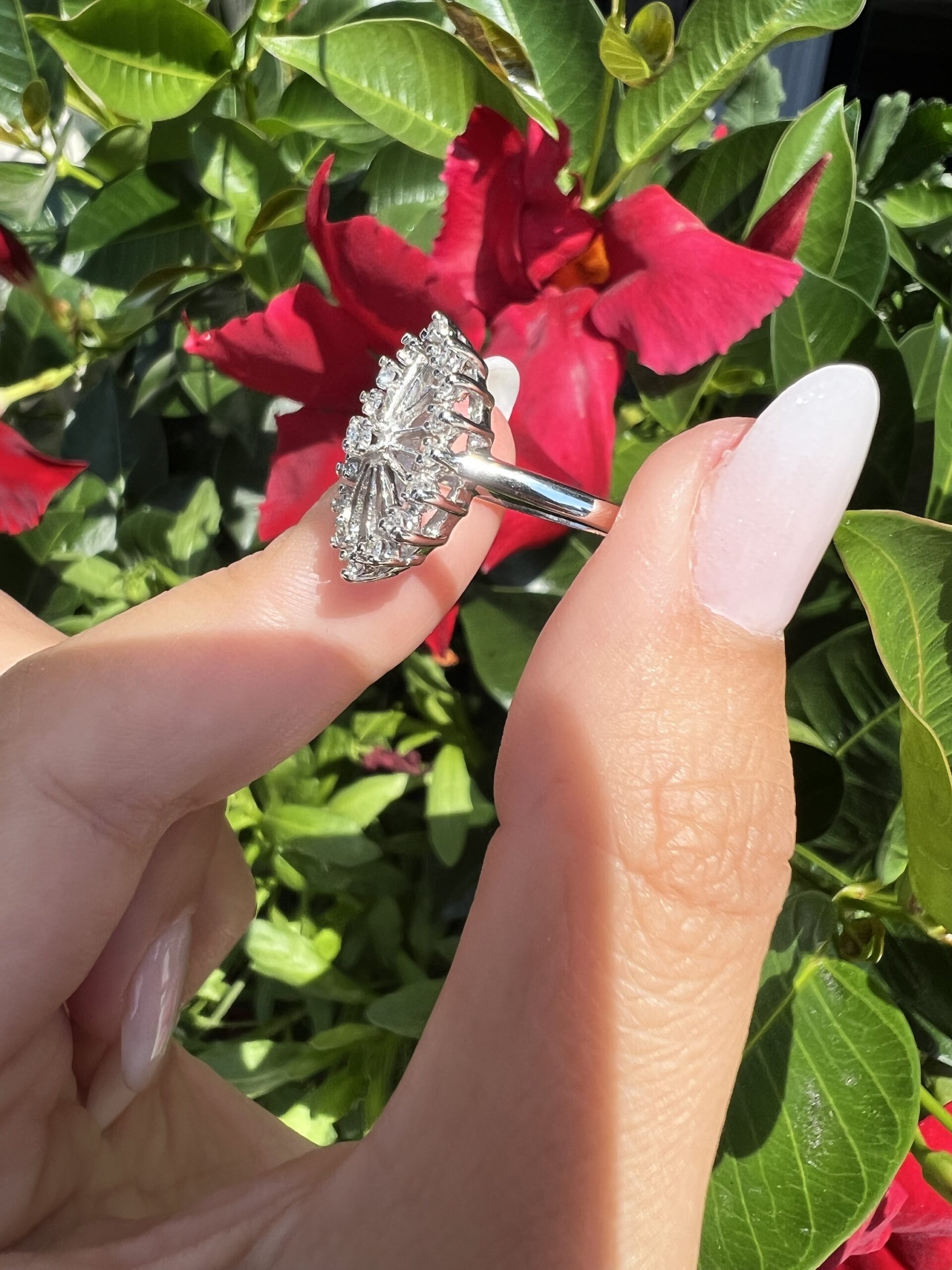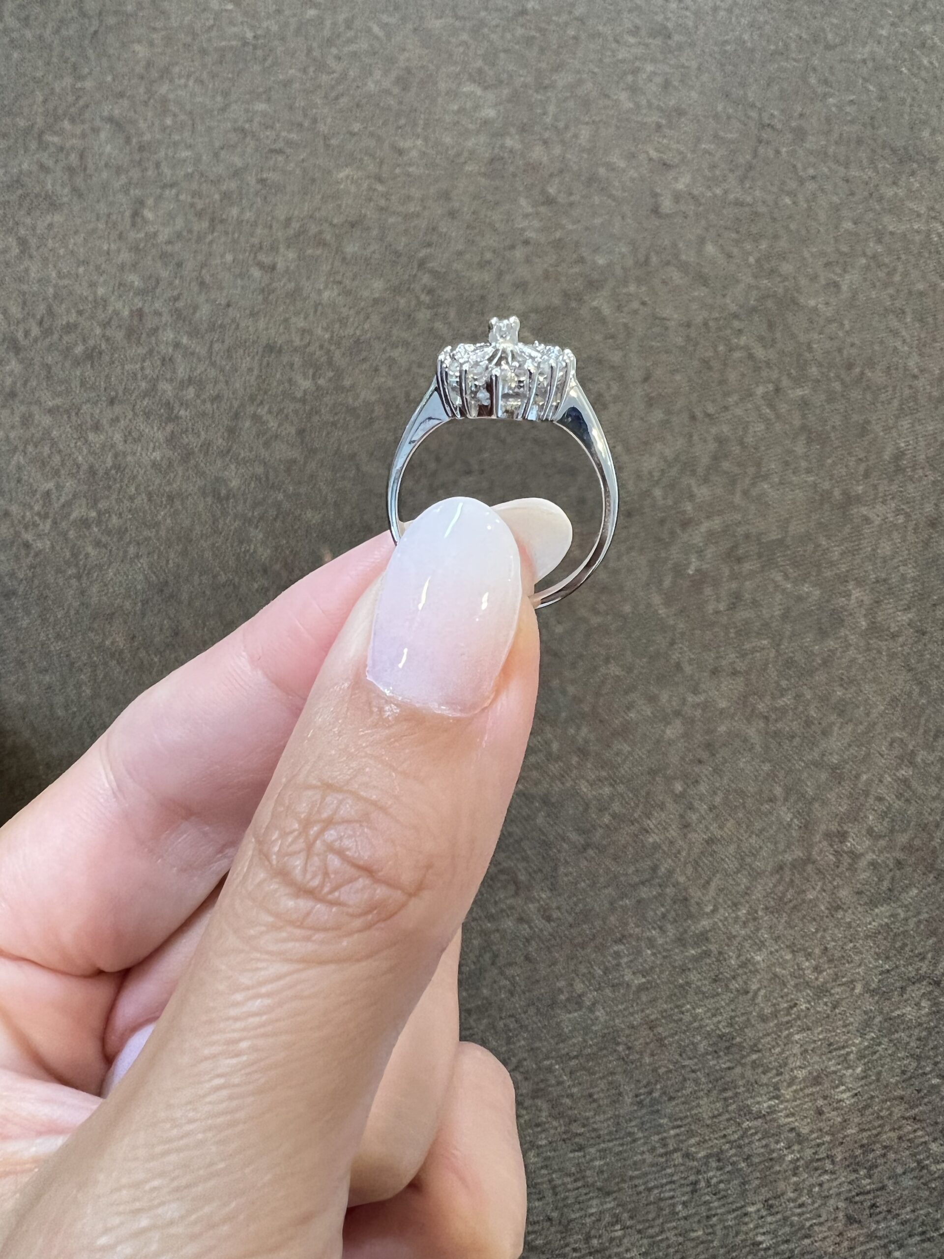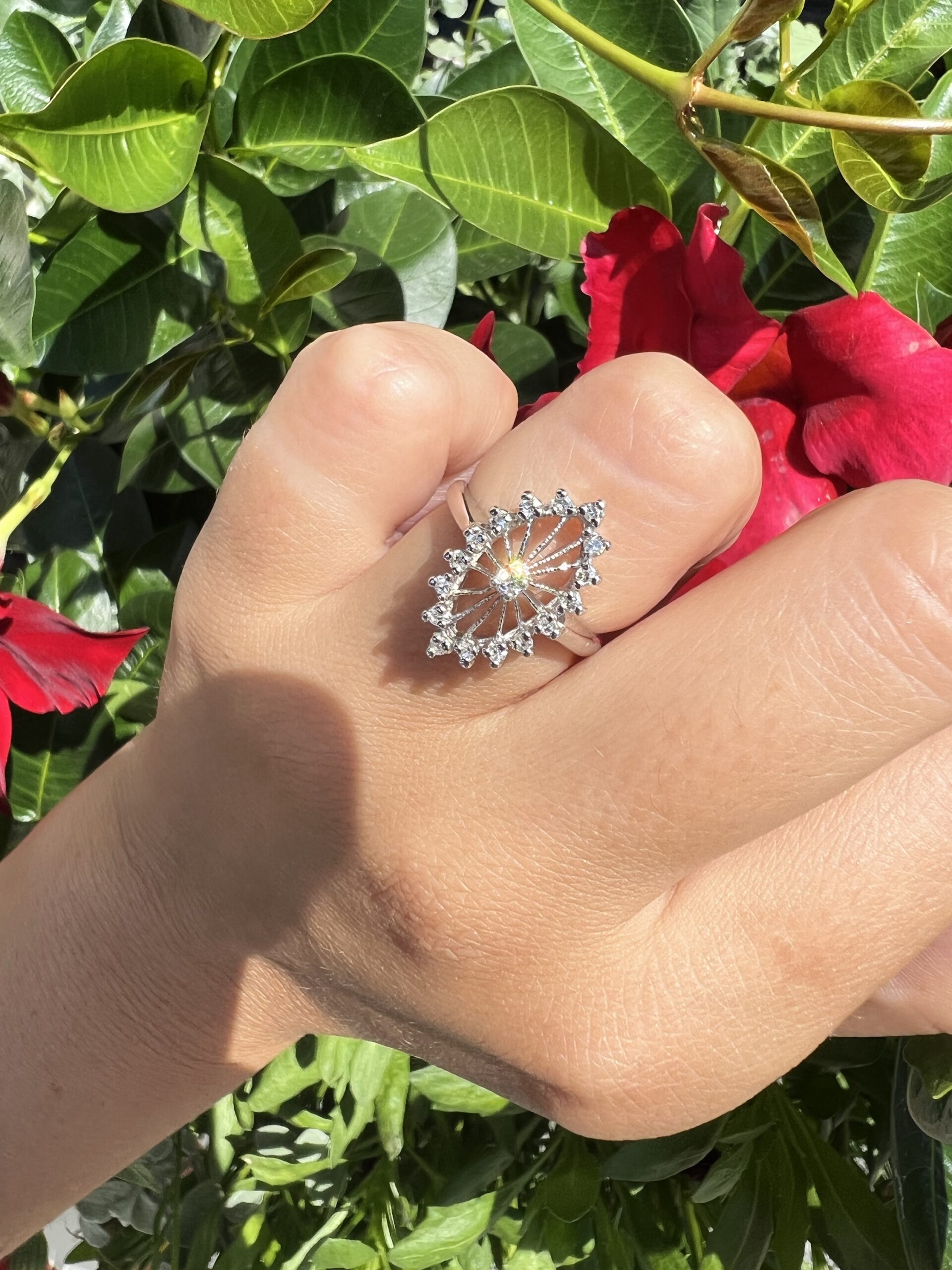 Antique one-of-a-kind 14k white gold genuine diamond cluster ring. This ring contains one genuine Full Cut diamond set in the center into 4 prongs. This diamond is surrounded in a cluster fashion by 16 genuine Single Cut diamonds. These diamonds average H in color and I1 in clarity. This ring has an entire weight of 3.5 grams. This ring is a finger size 6, but it can be reasonably sized. Please make note of the finger size needed in the comments section at checkout.