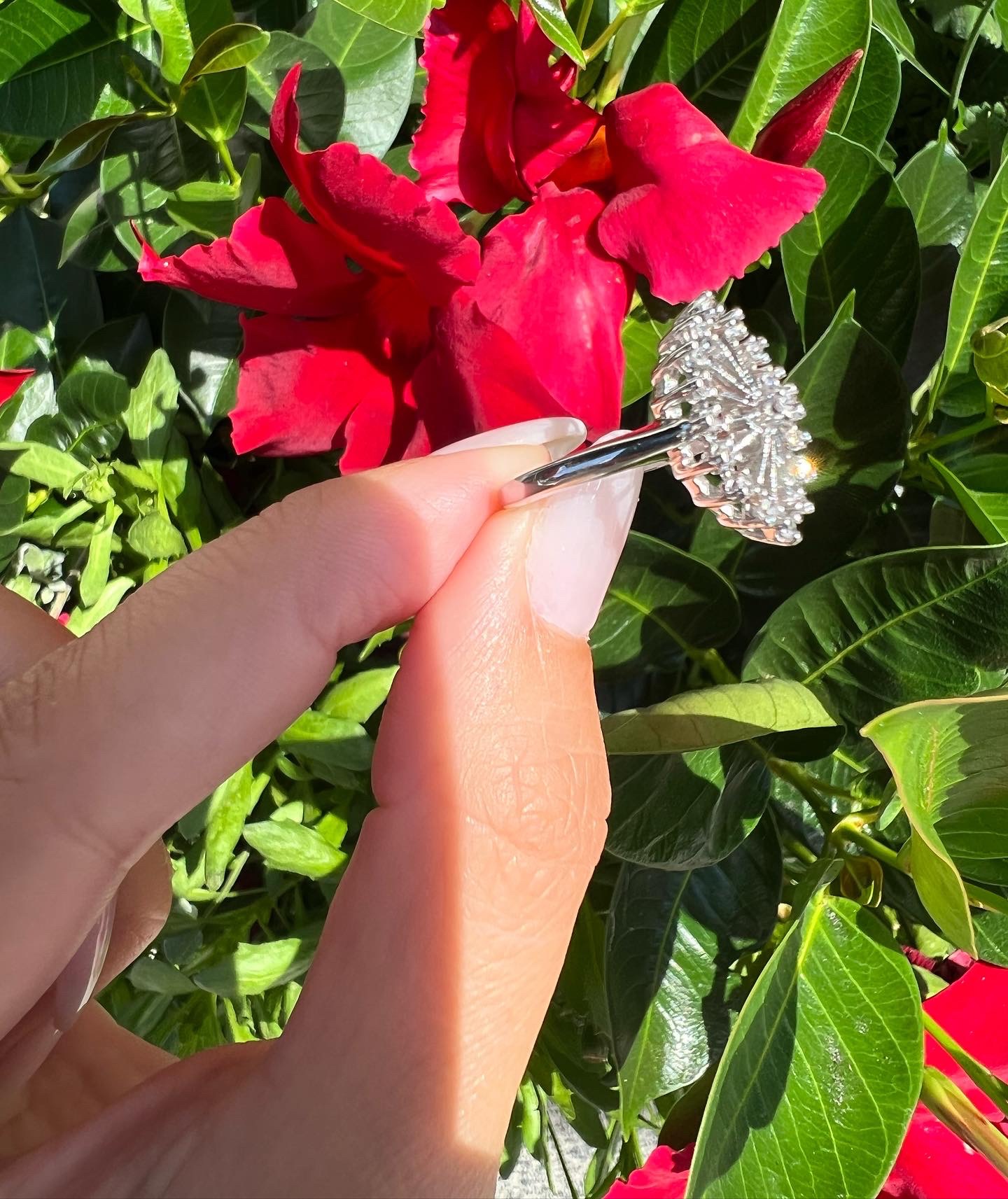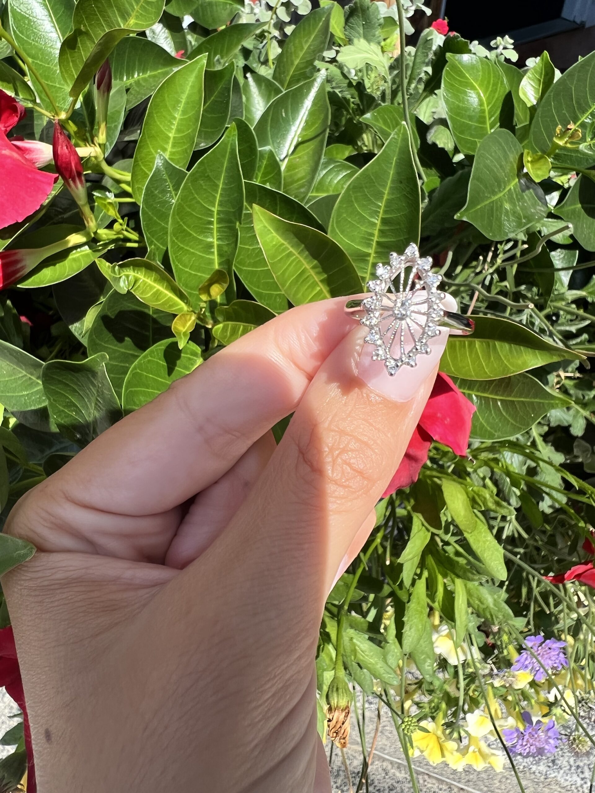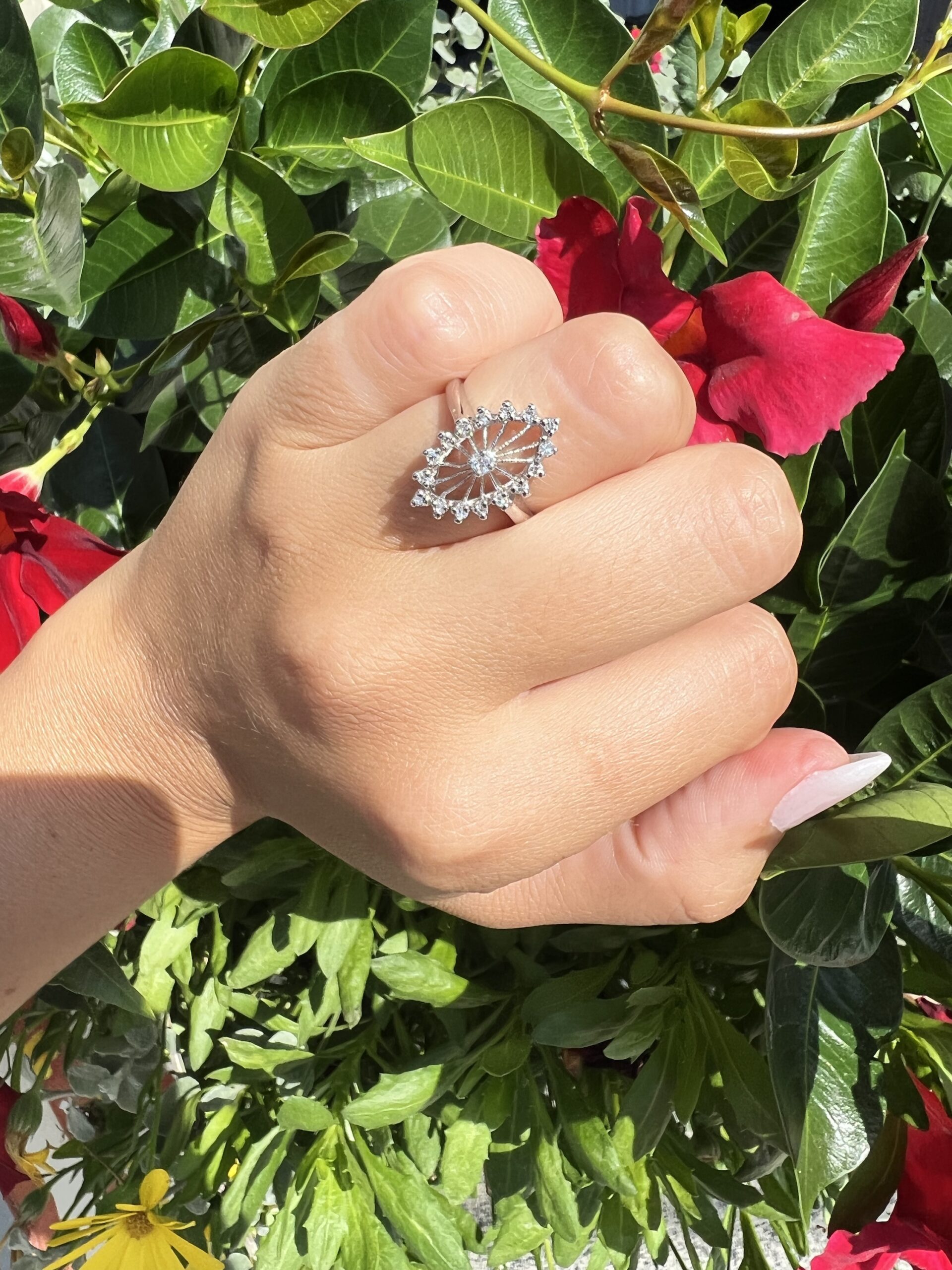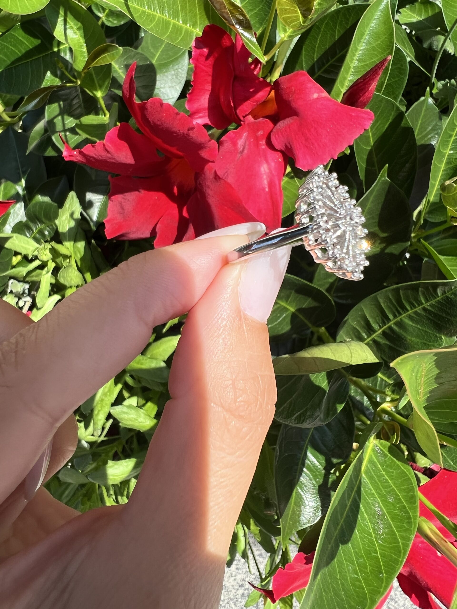Antique one-of-a-kind 14k white gold genuine diamond cluster ring. This ring contains one genuine Full Cut diamond set in the center into 4 prongs. This diamond is surrounded in a cluster fashion by 16 genuine Single Cut diamonds. These diamonds average H in color and I1 in clarity. This ring has an entire weight of 3.5 grams. This ring is a finger size 6, but it can be reasonably sized. Please make note of the finger size needed in the comments section at checkout.
