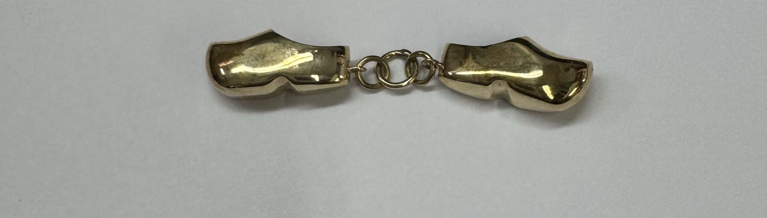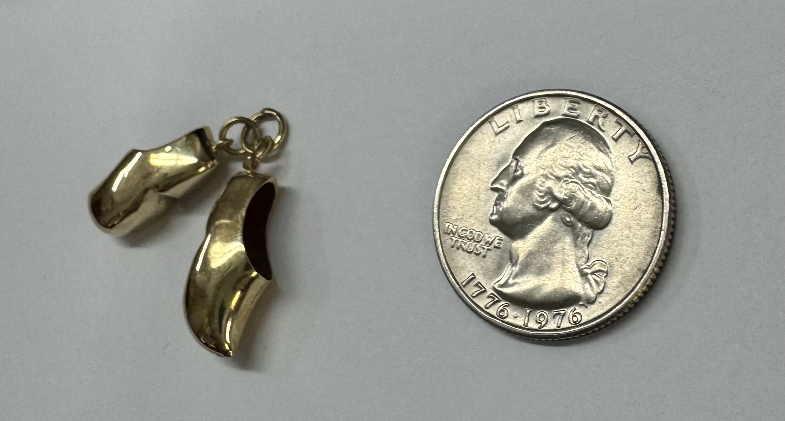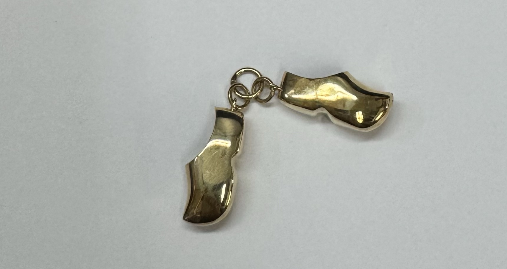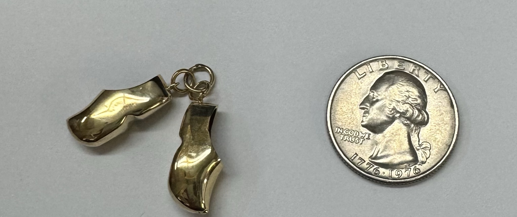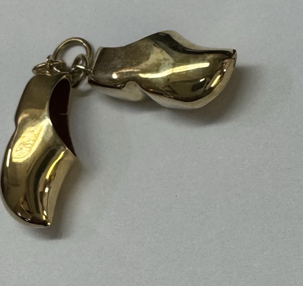Antique 14k yellow gold clog charm with red enamel details. This charm has an entire weight of 2.1 grams.