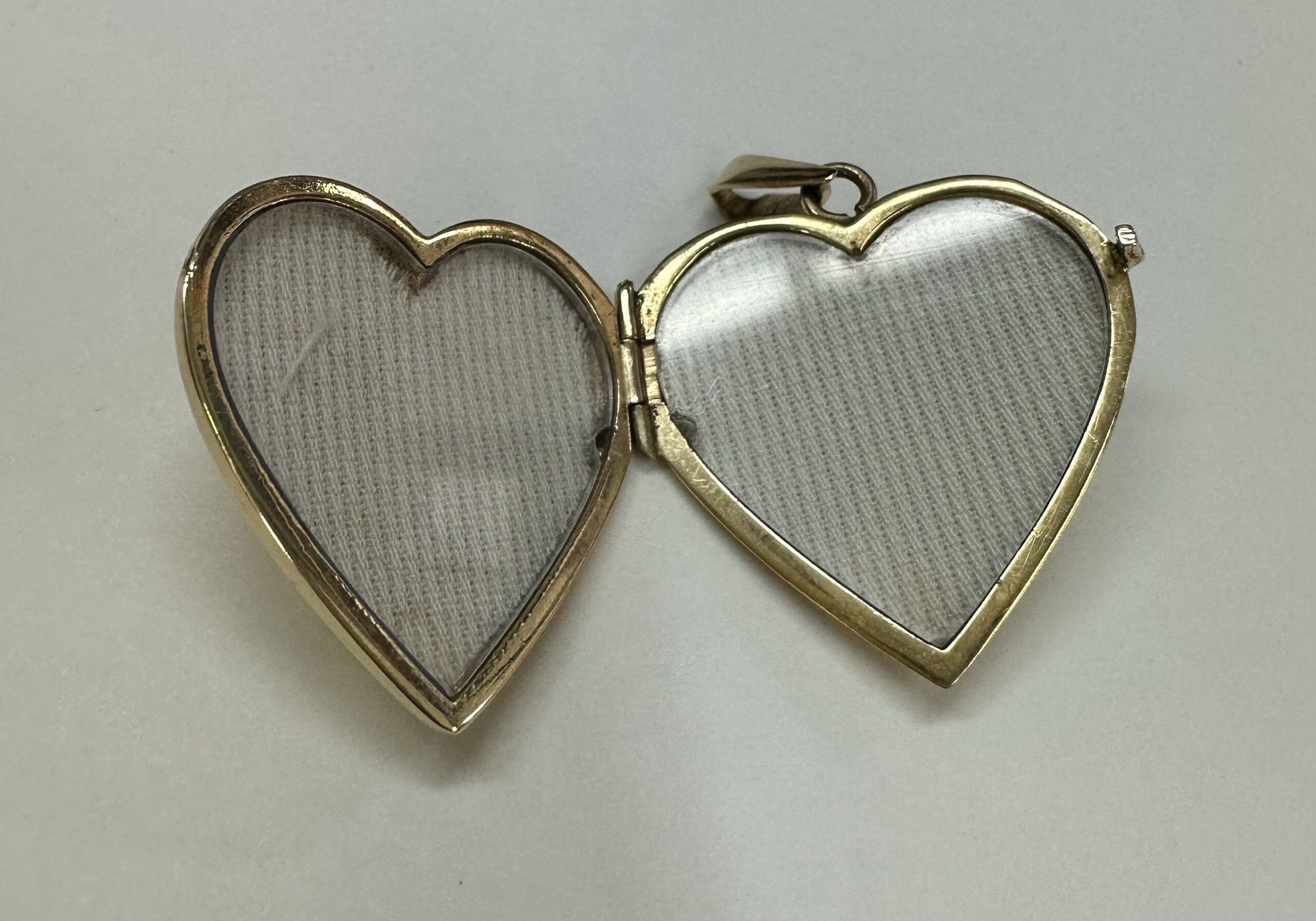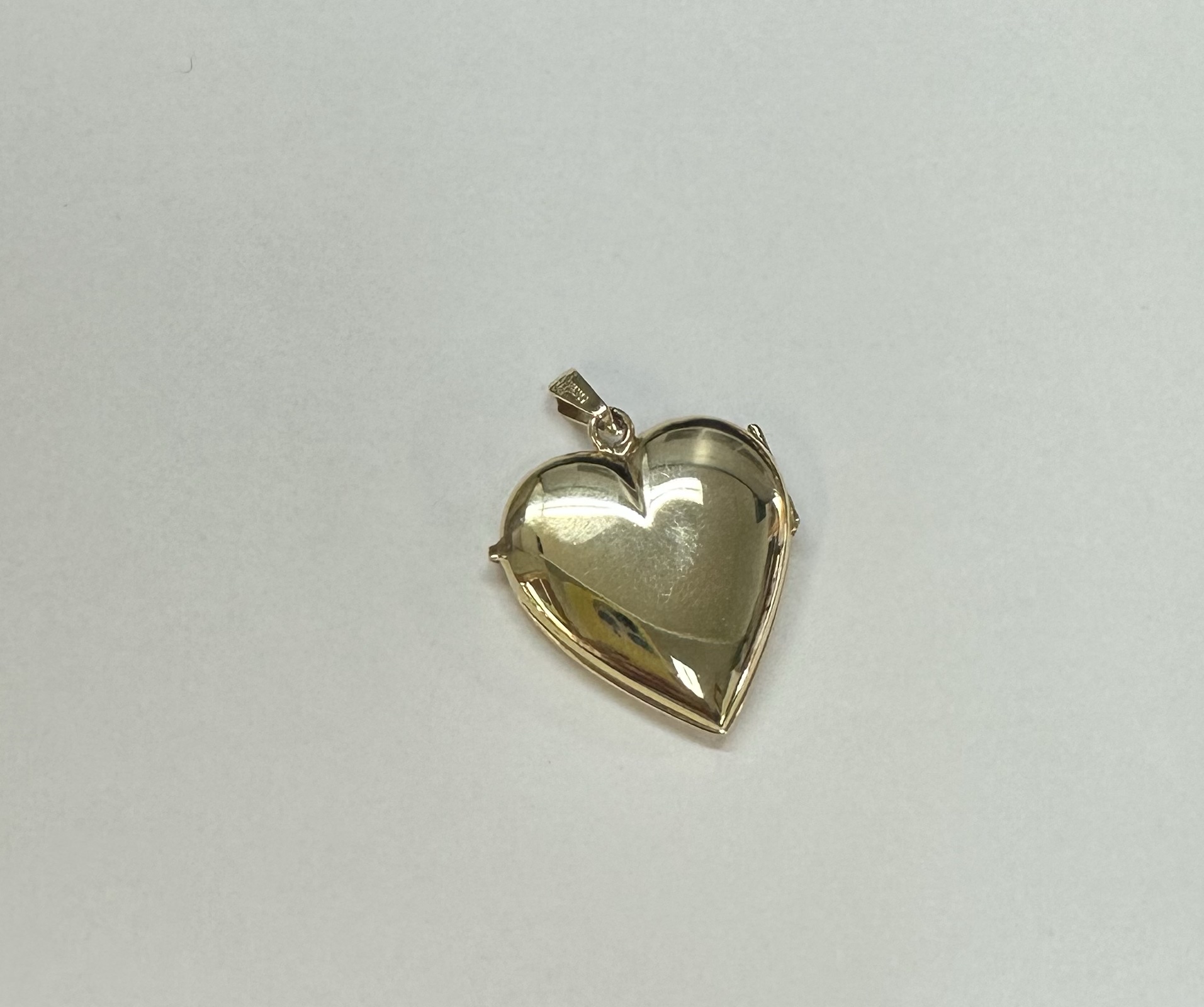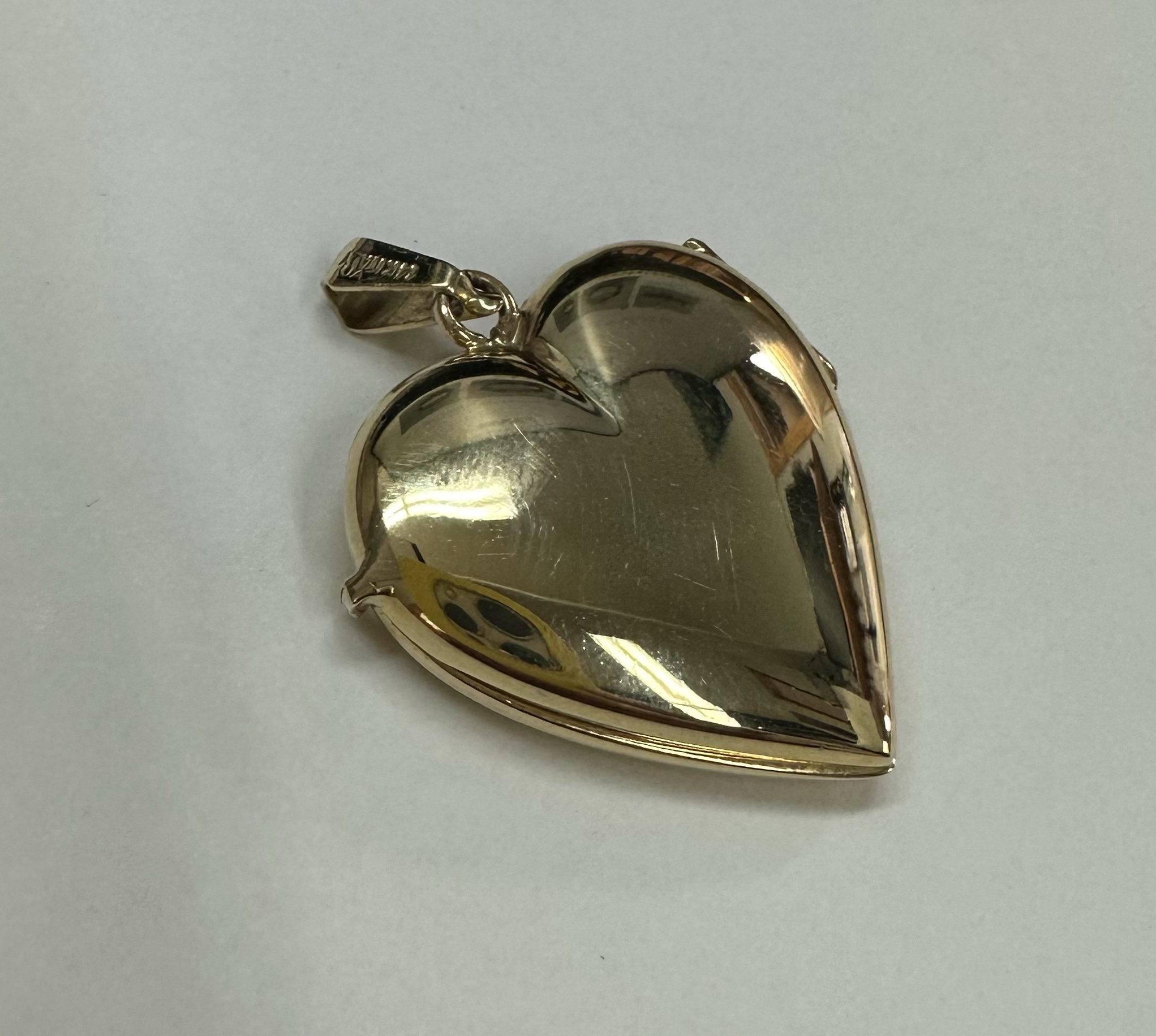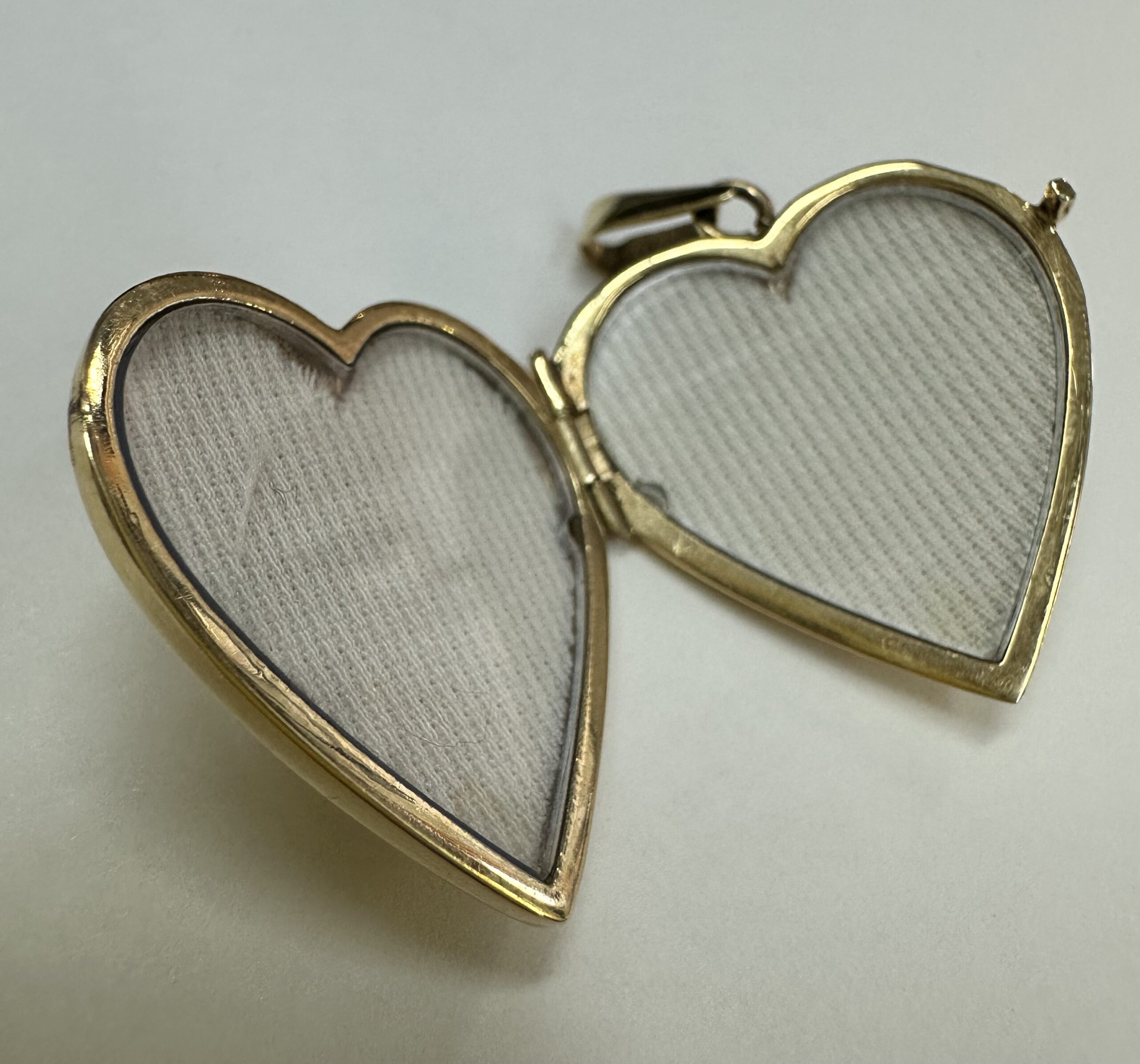 Antique one-of-a-kind 14k yellow gold engraved 2 picture locket. This locket measures approximately 1 3/4″ x 1 1/4″, and it has an entire weight of 10.1 grams.