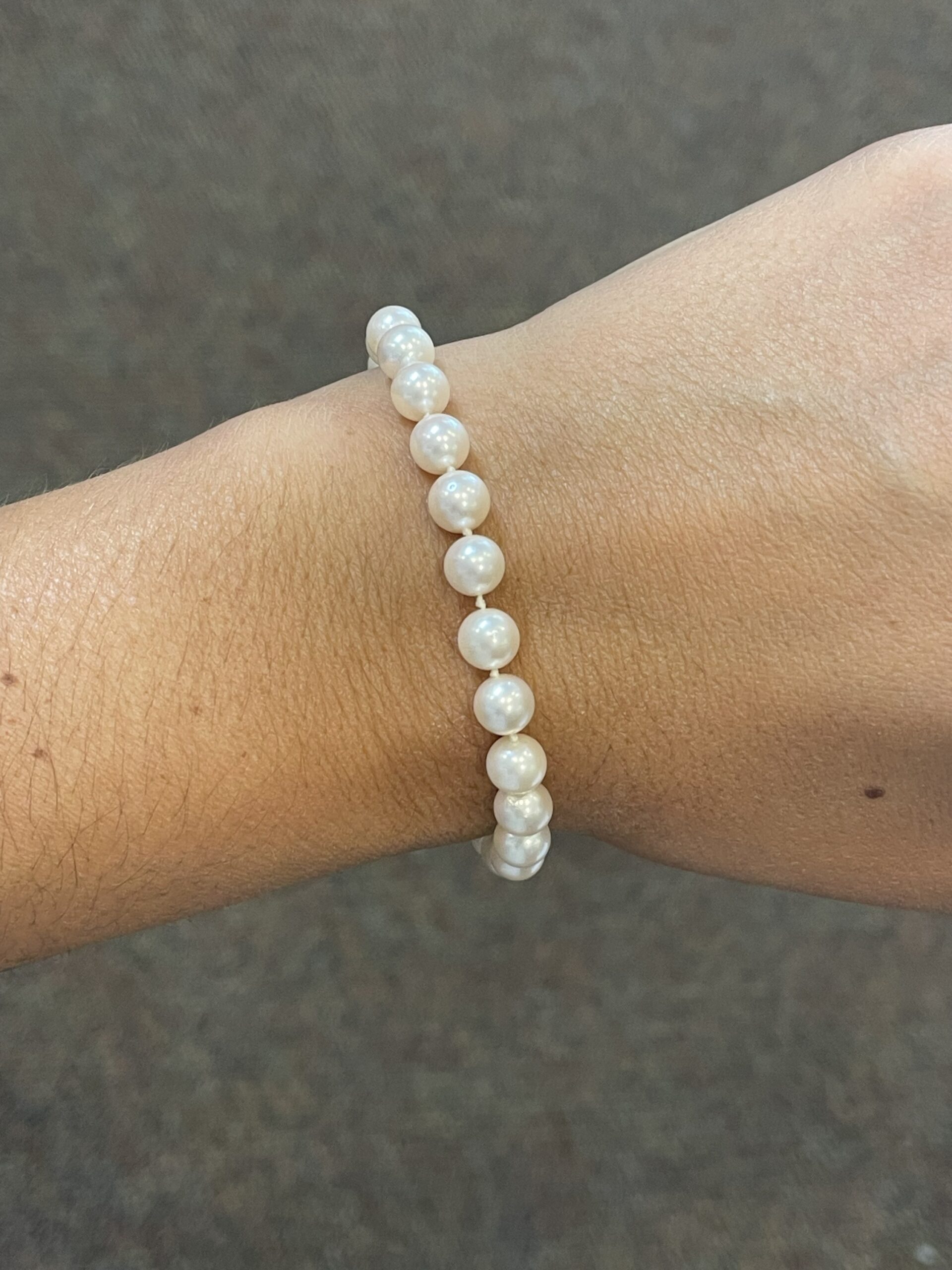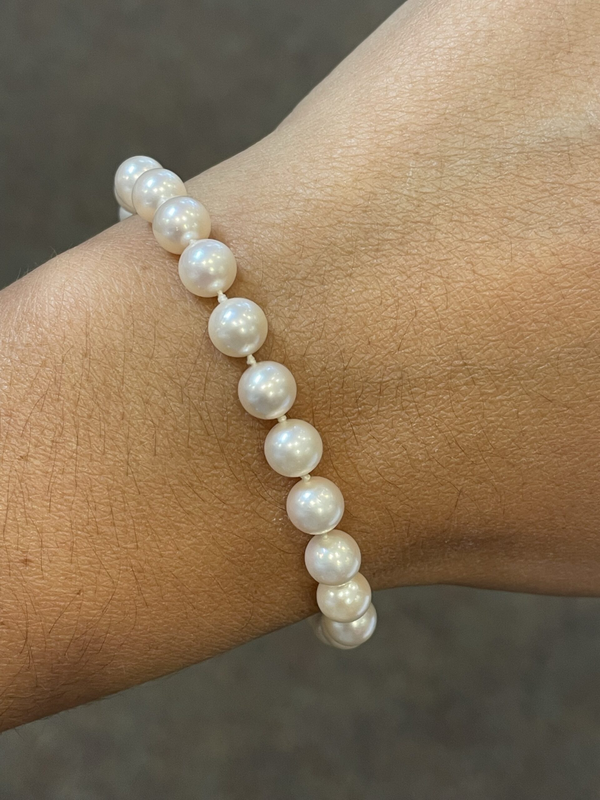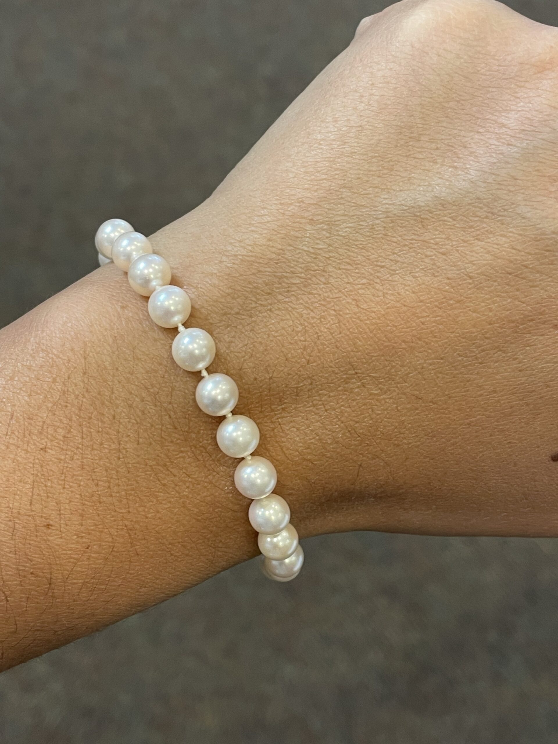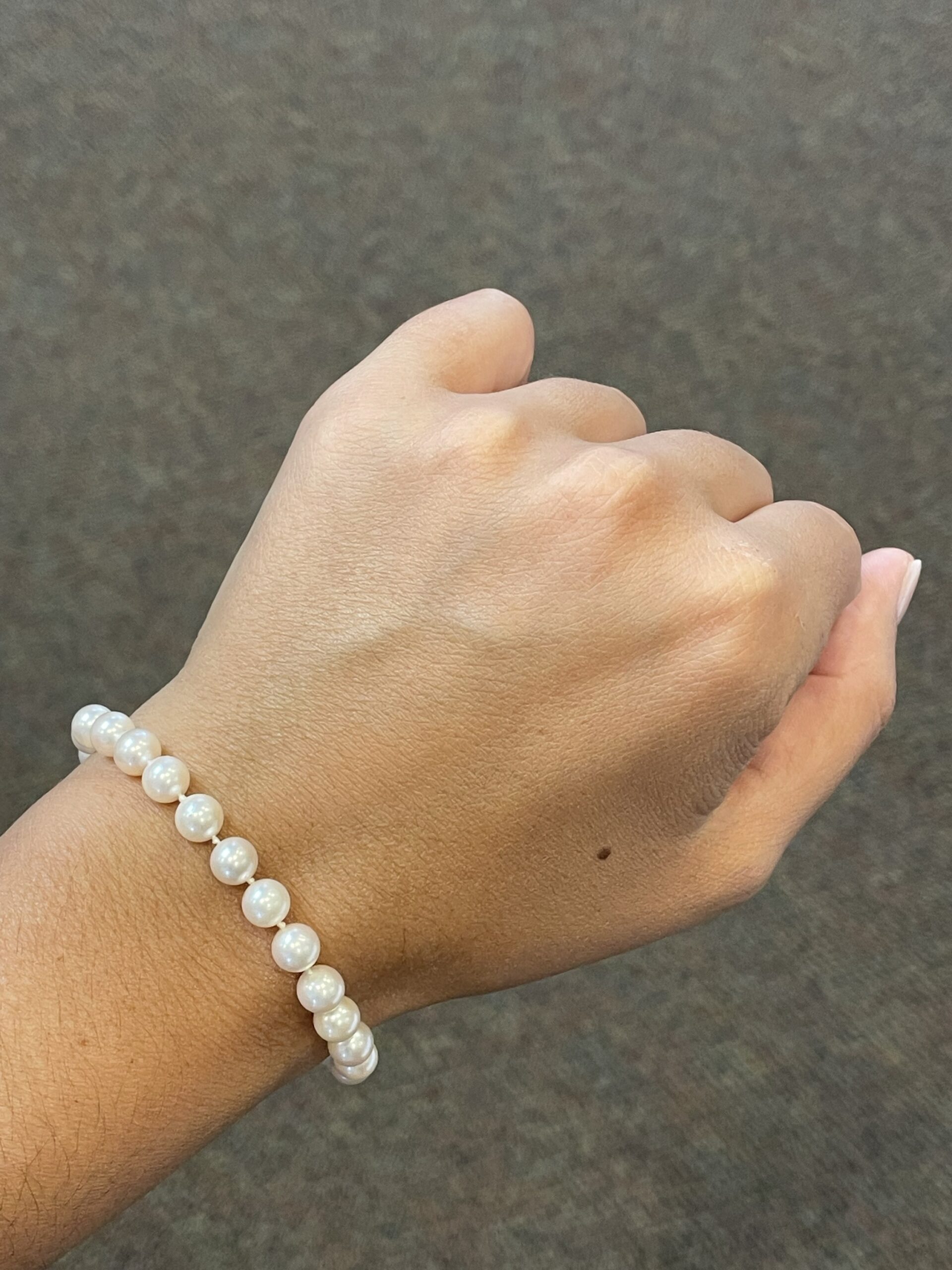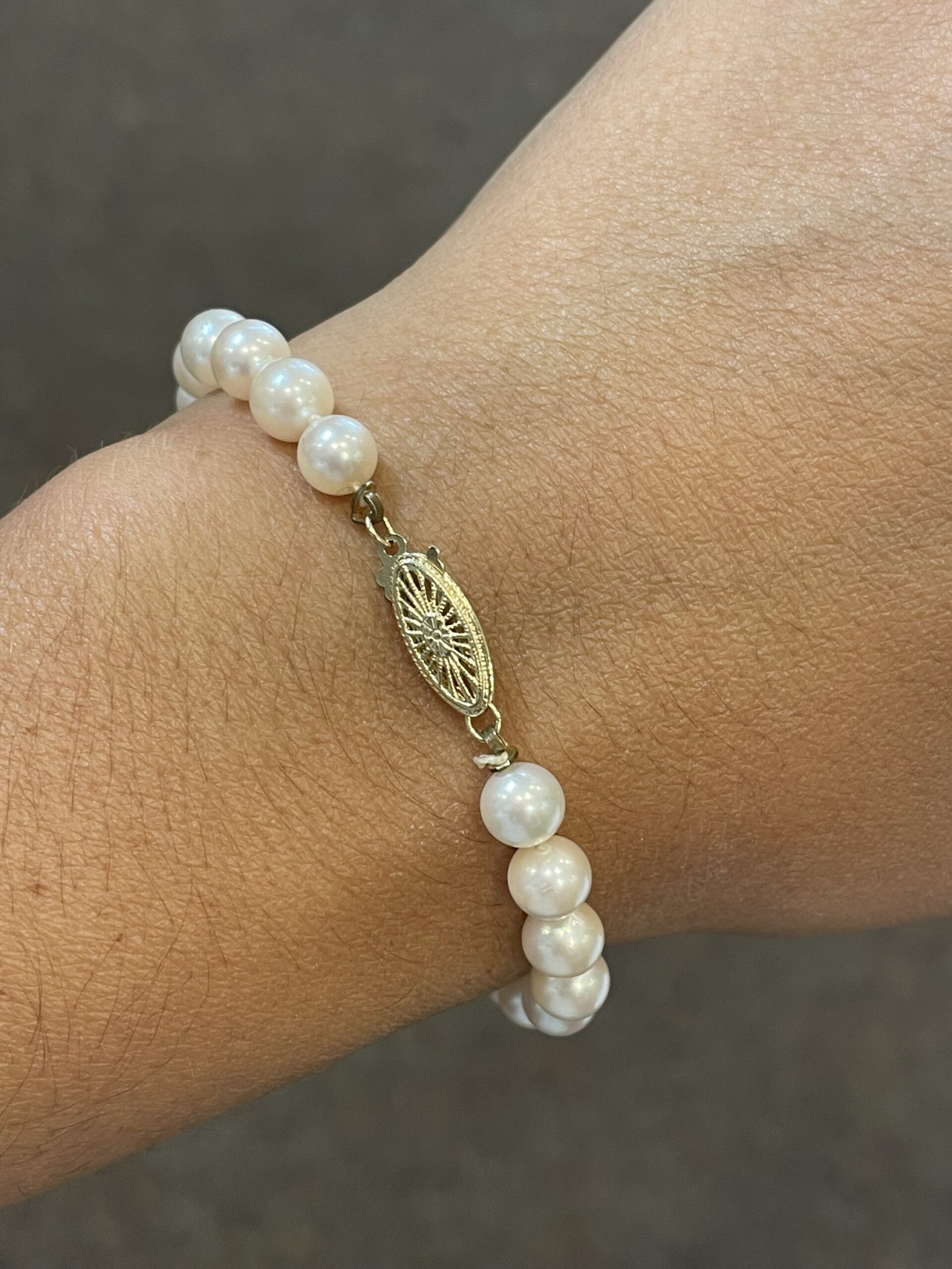 7″ cultured freshwater 6 mm knotted Pearl bracelet with 14k yellow gold filigree Pearl clasp.