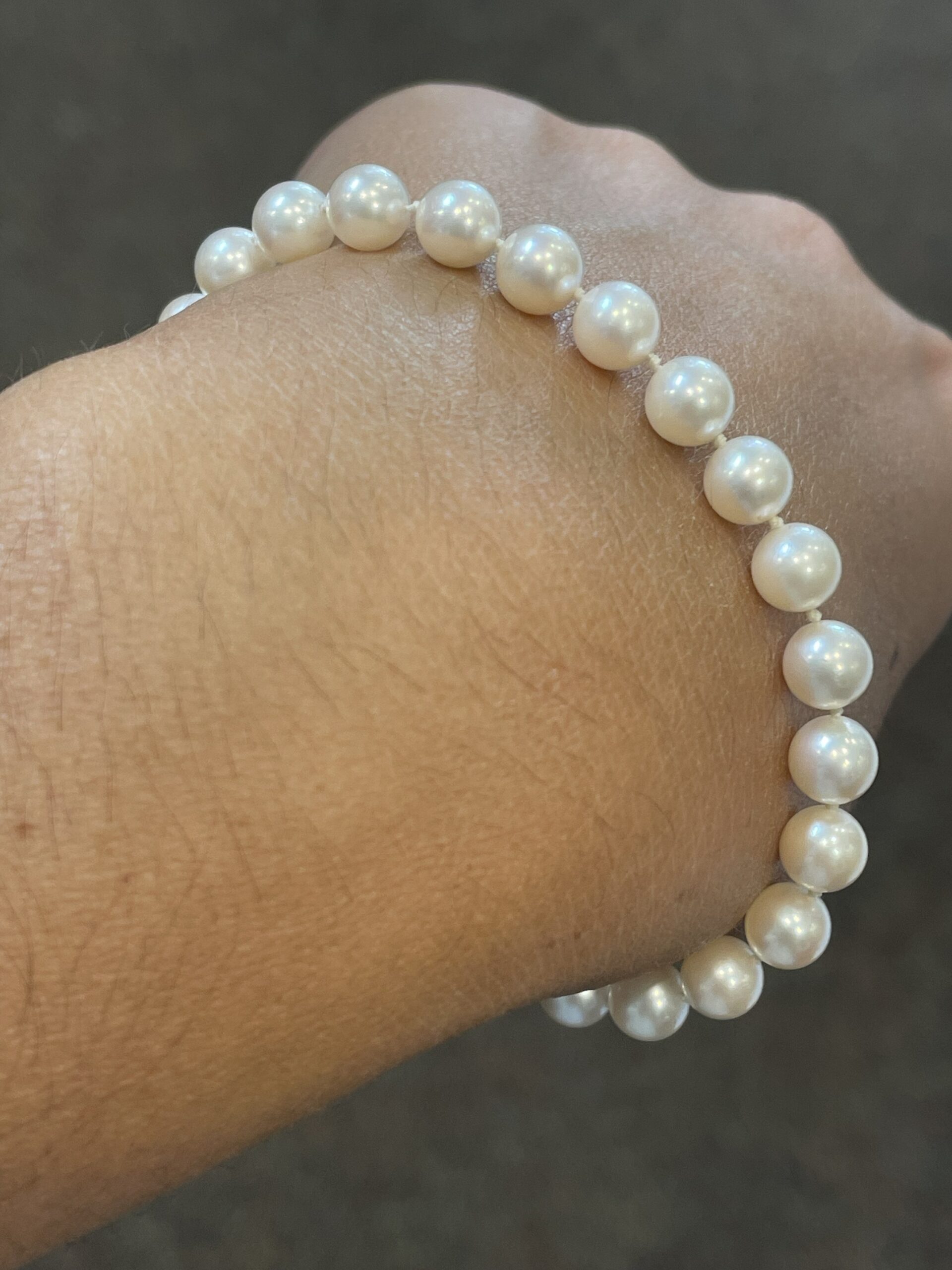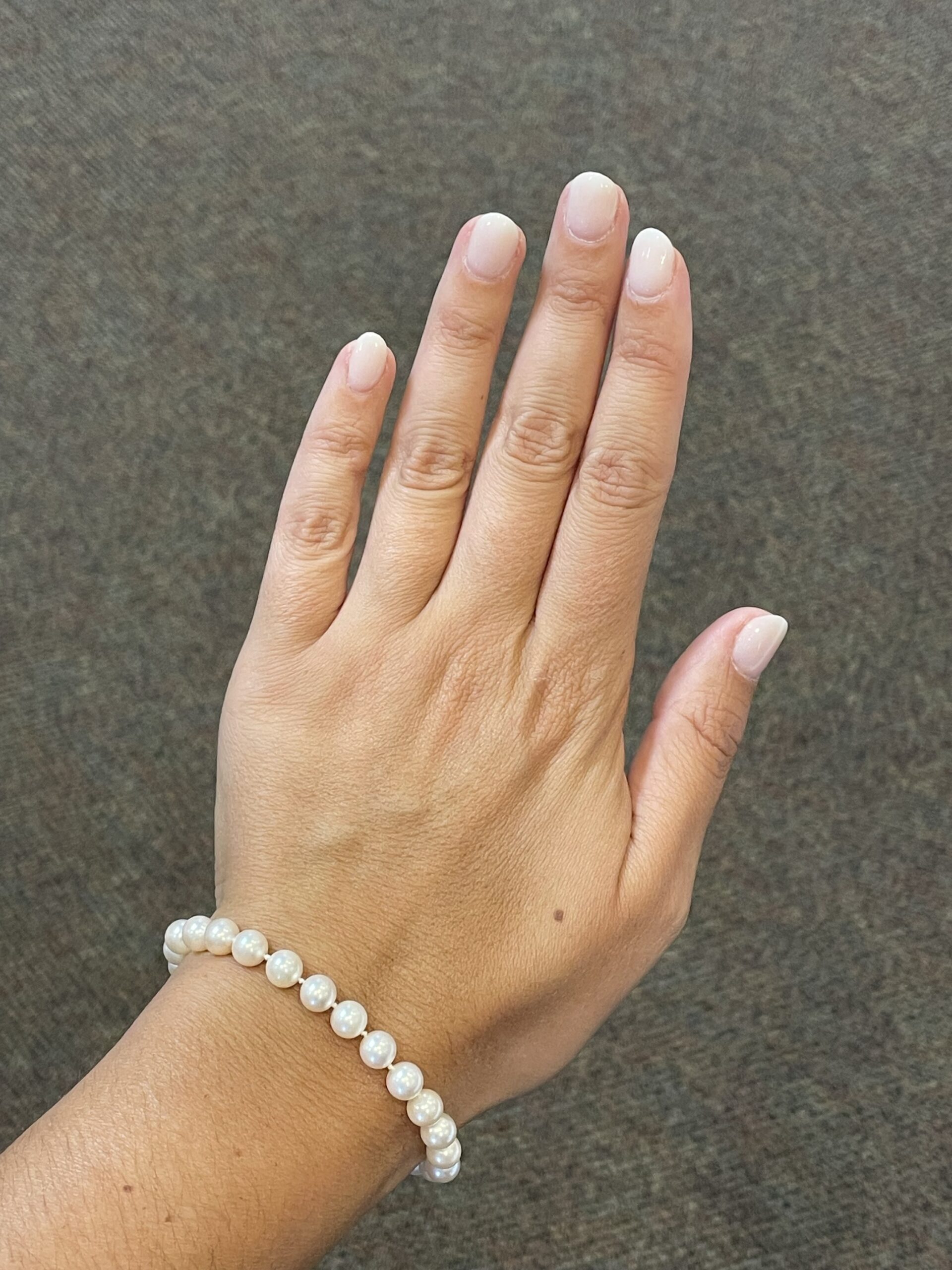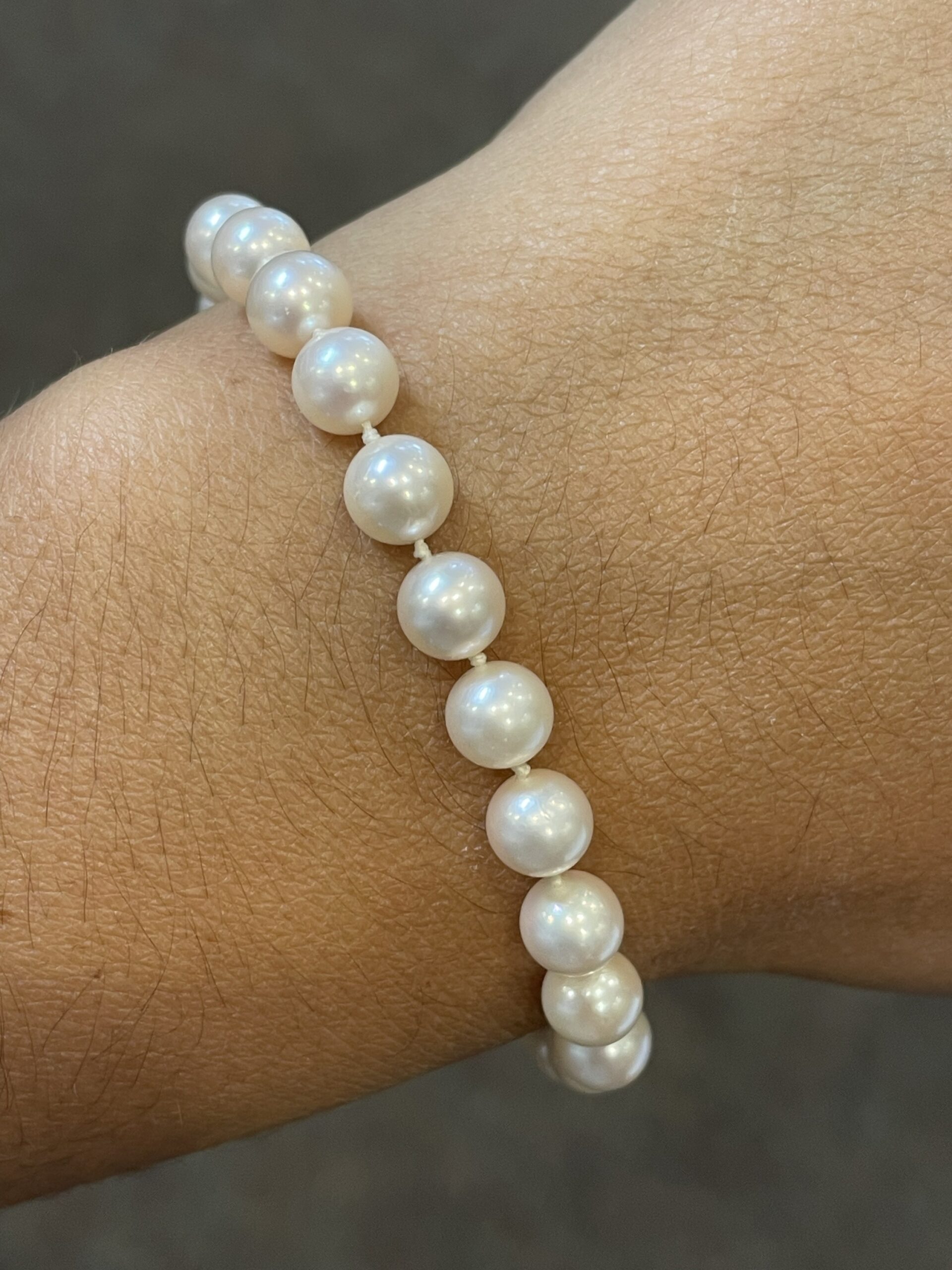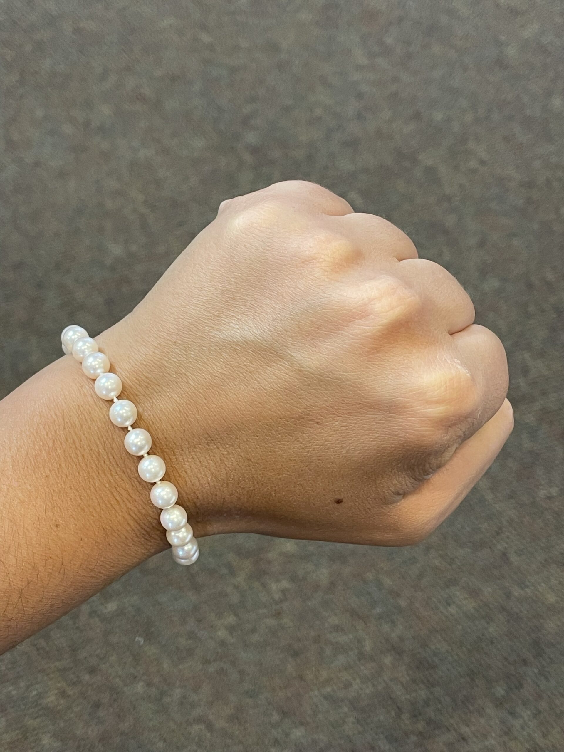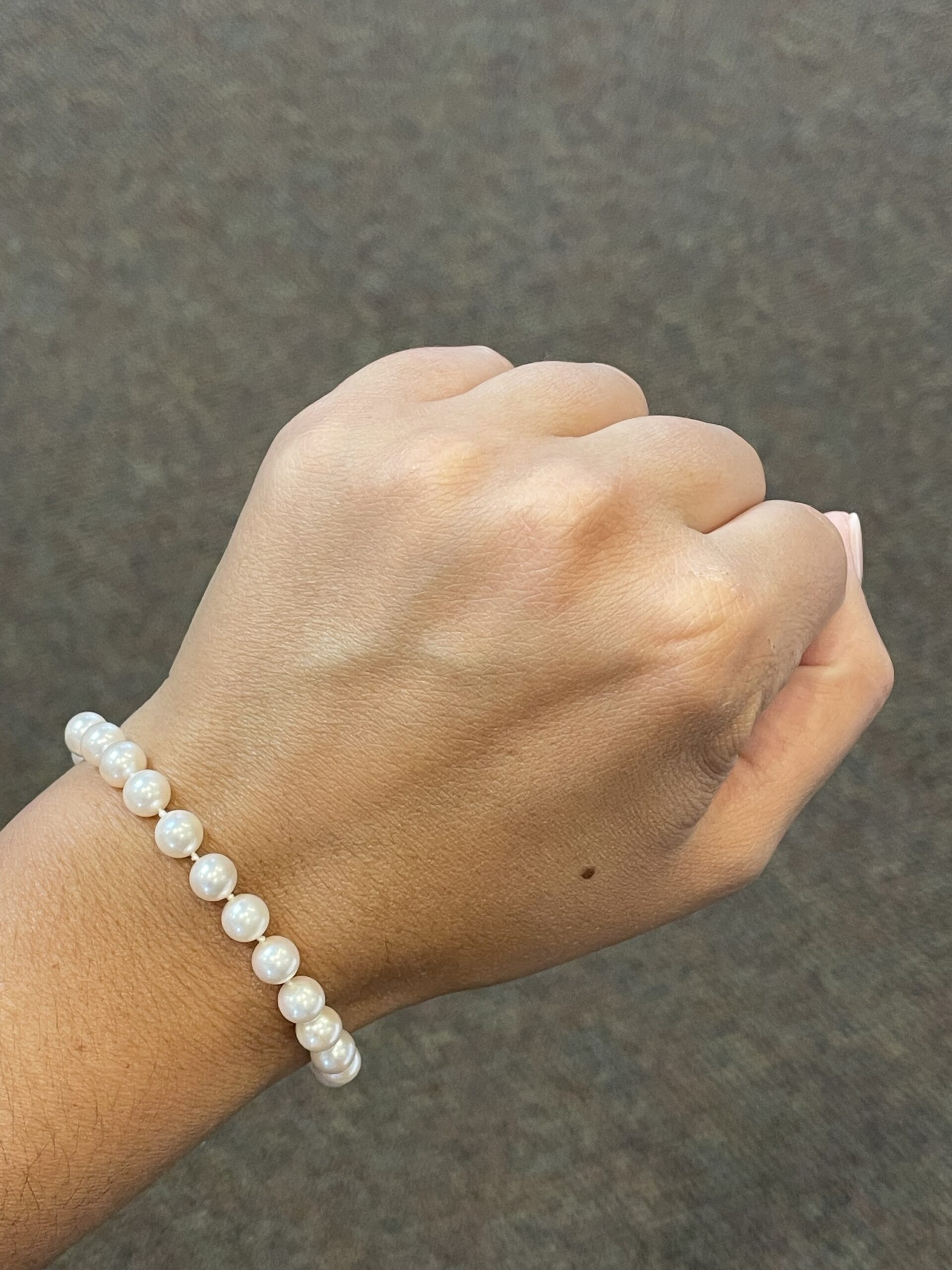 7″ cultured freshwater 6 mm knotted Pearl bracelet with 14k yellow gold filigree Pearl clasp.