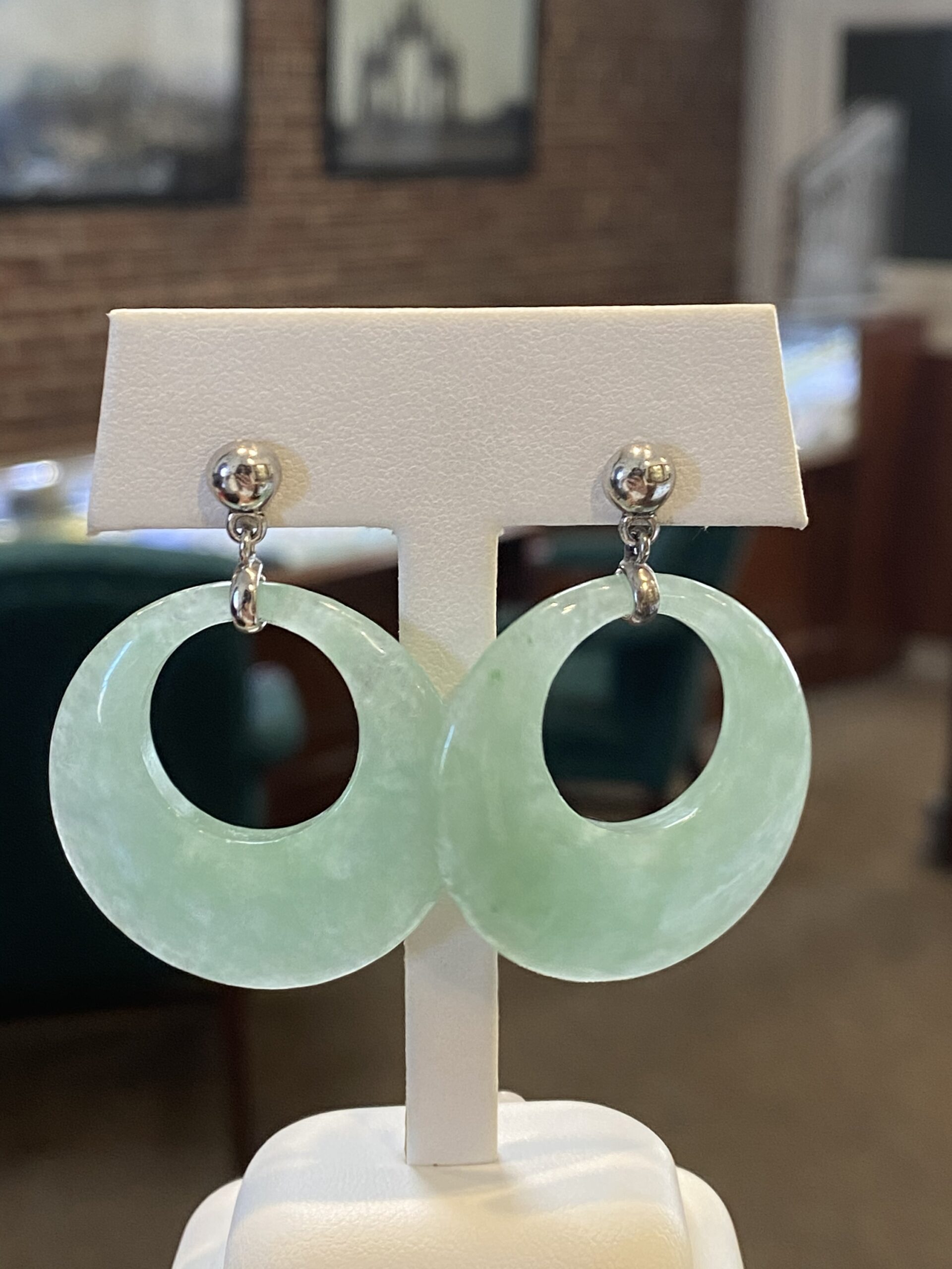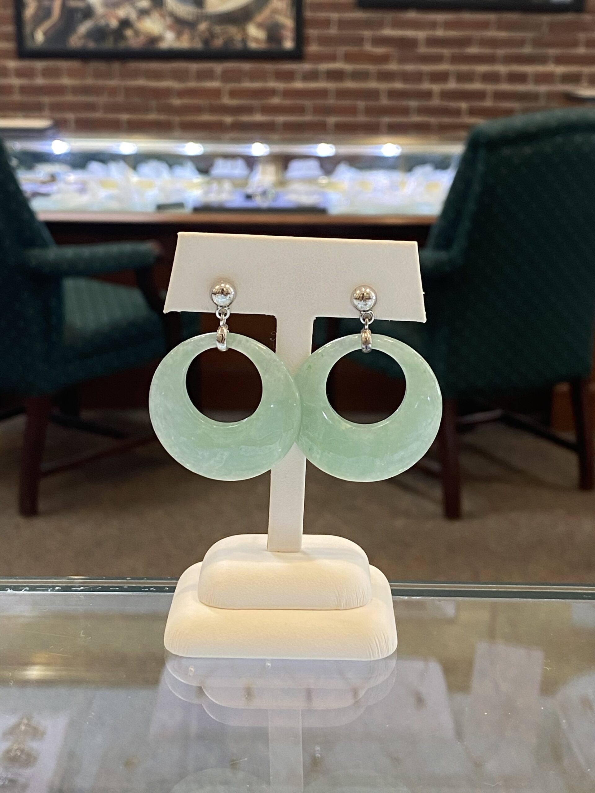 Sterling silver genuine Jade Circle Hoop Stud Dangle Earrings