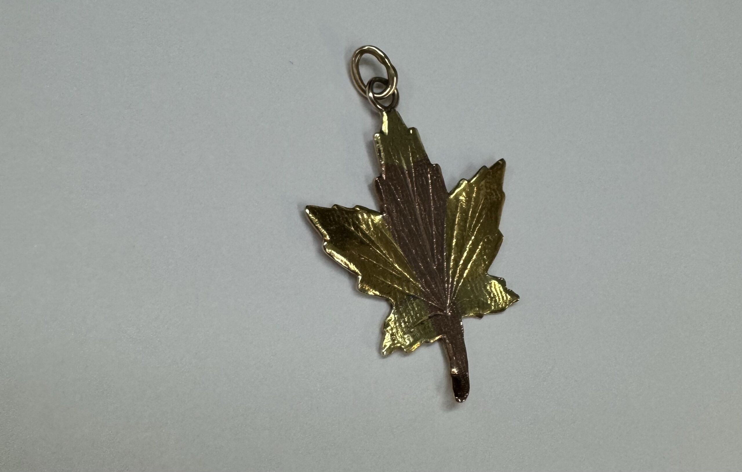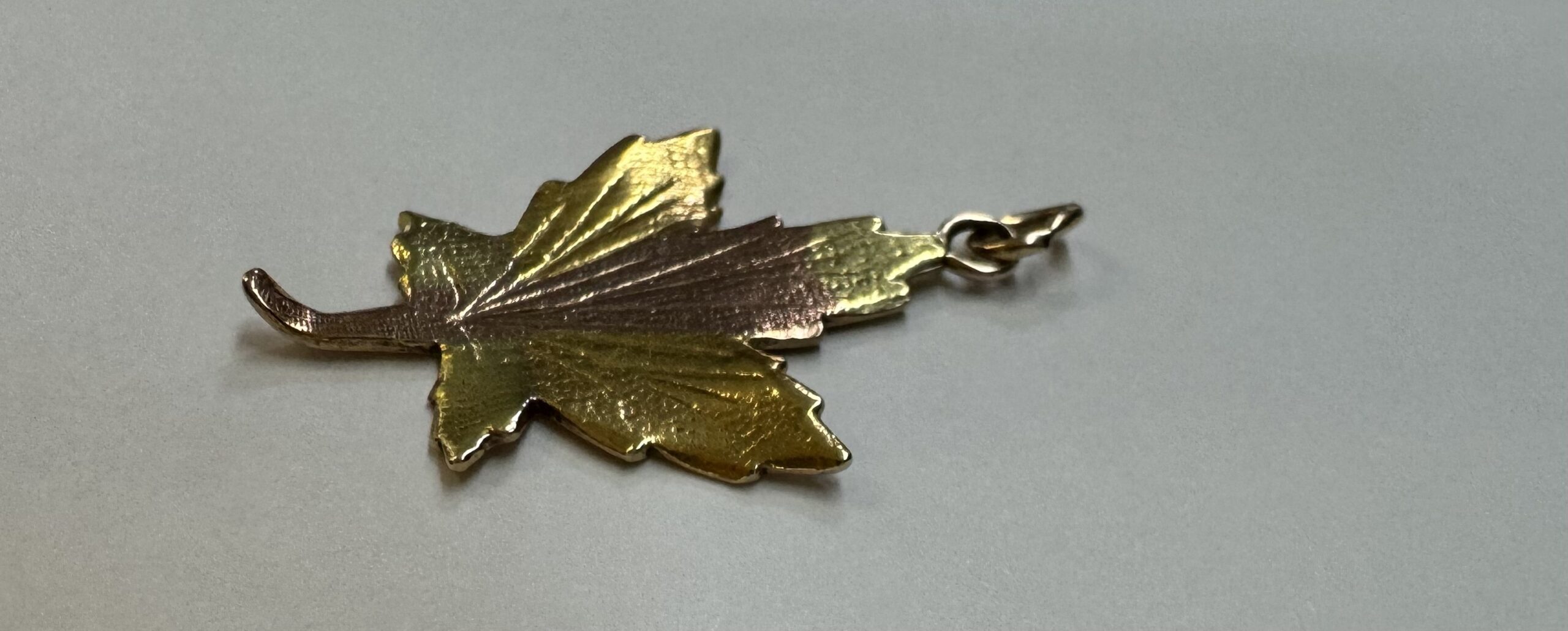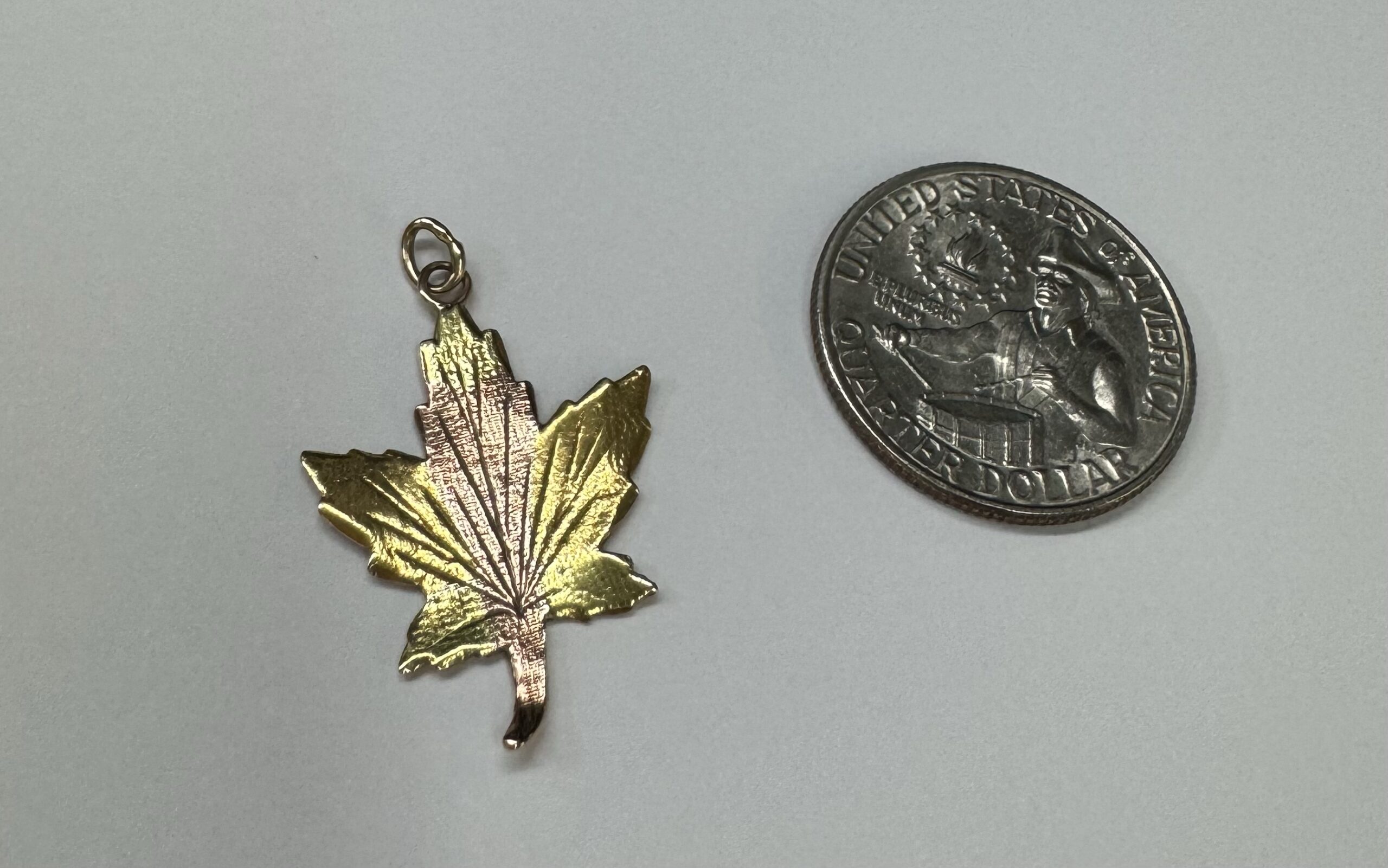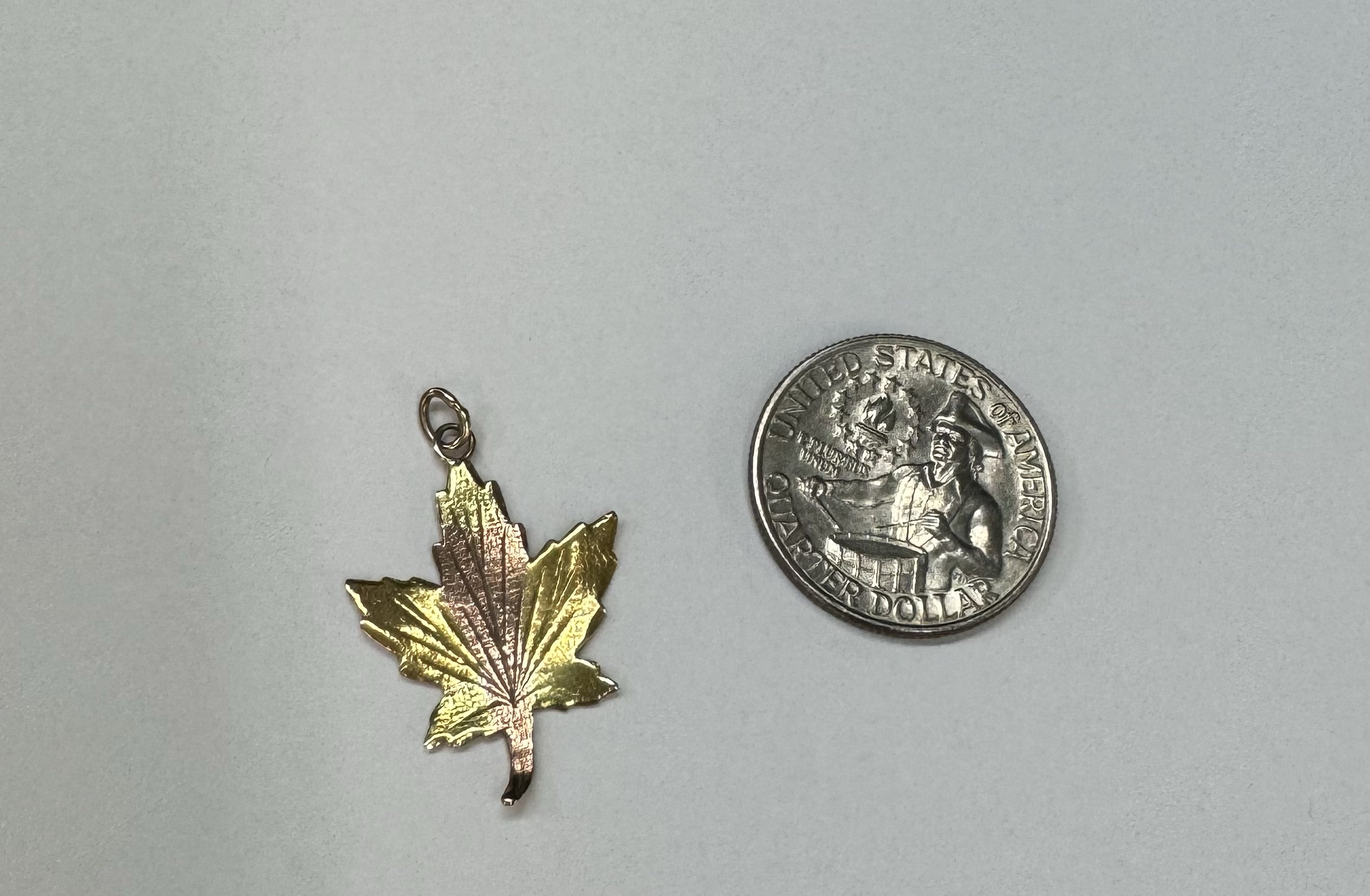 Vintage 10k tri-color gold Maple leaf charm/pendant. This piece has an entire weight of 2.1 grams.