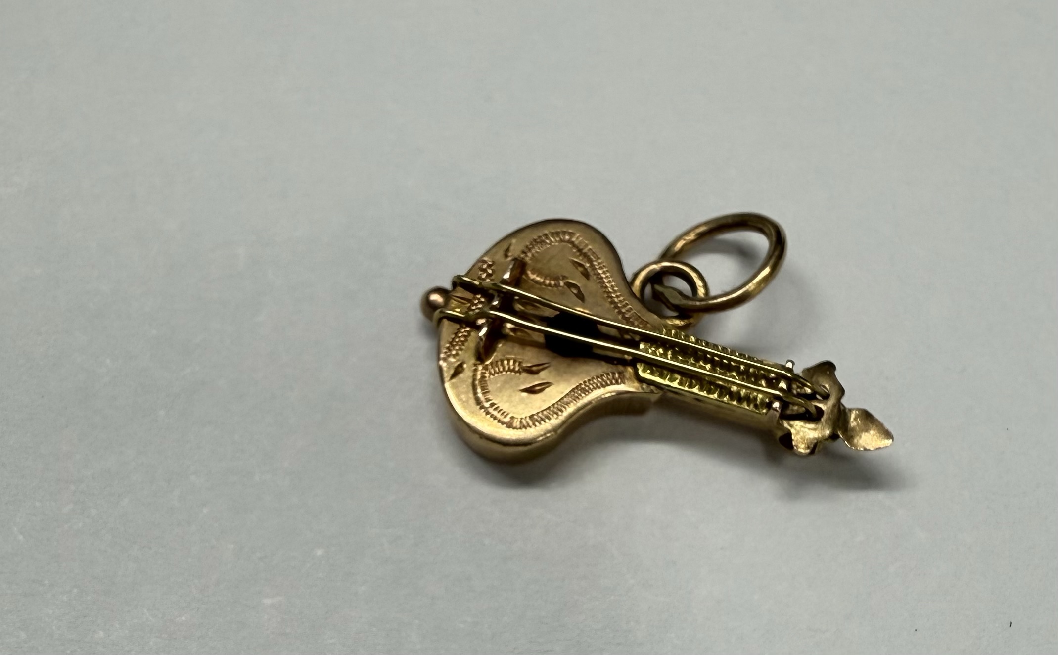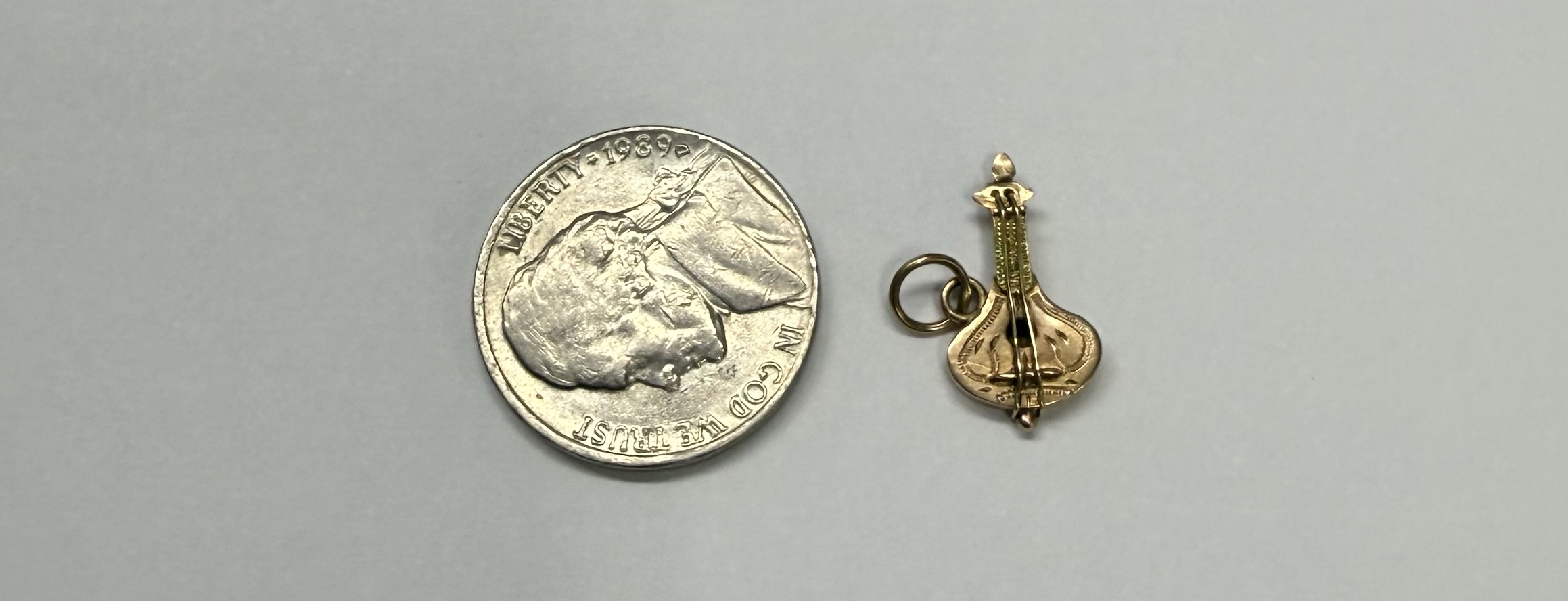 Vintage 10k yellow gold Mandolin charm/pendant. This charm has an entire weight of 0.8 grams.