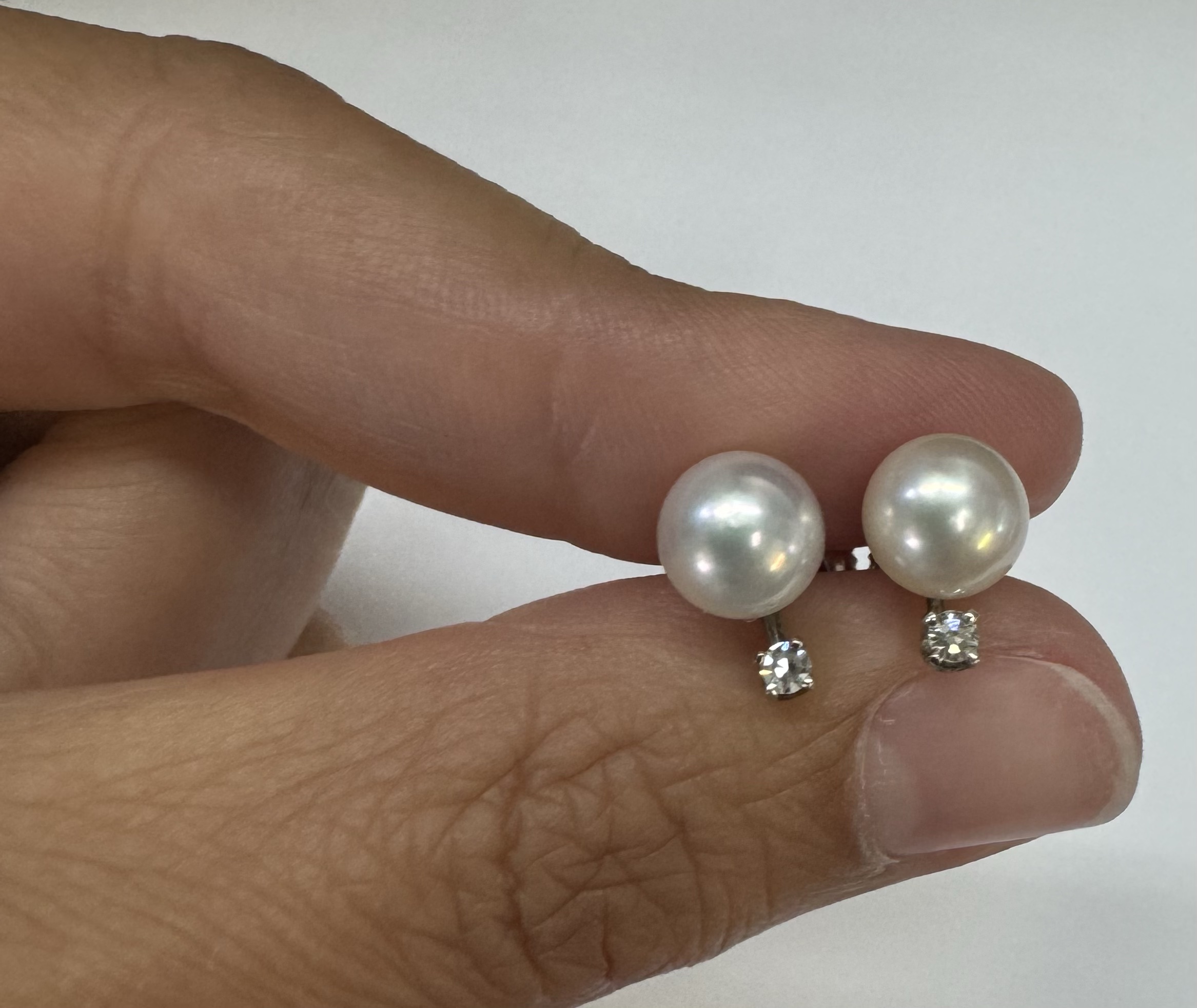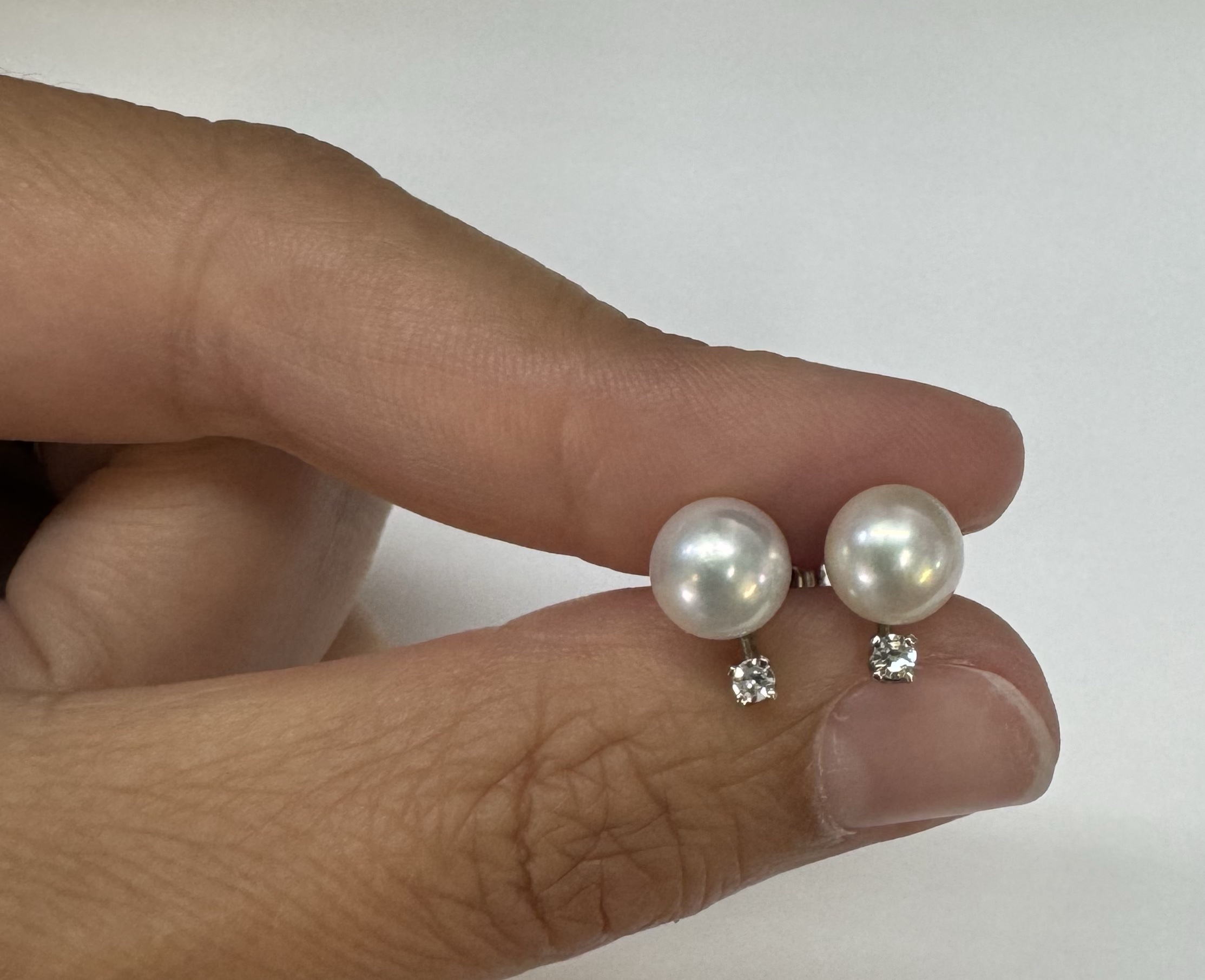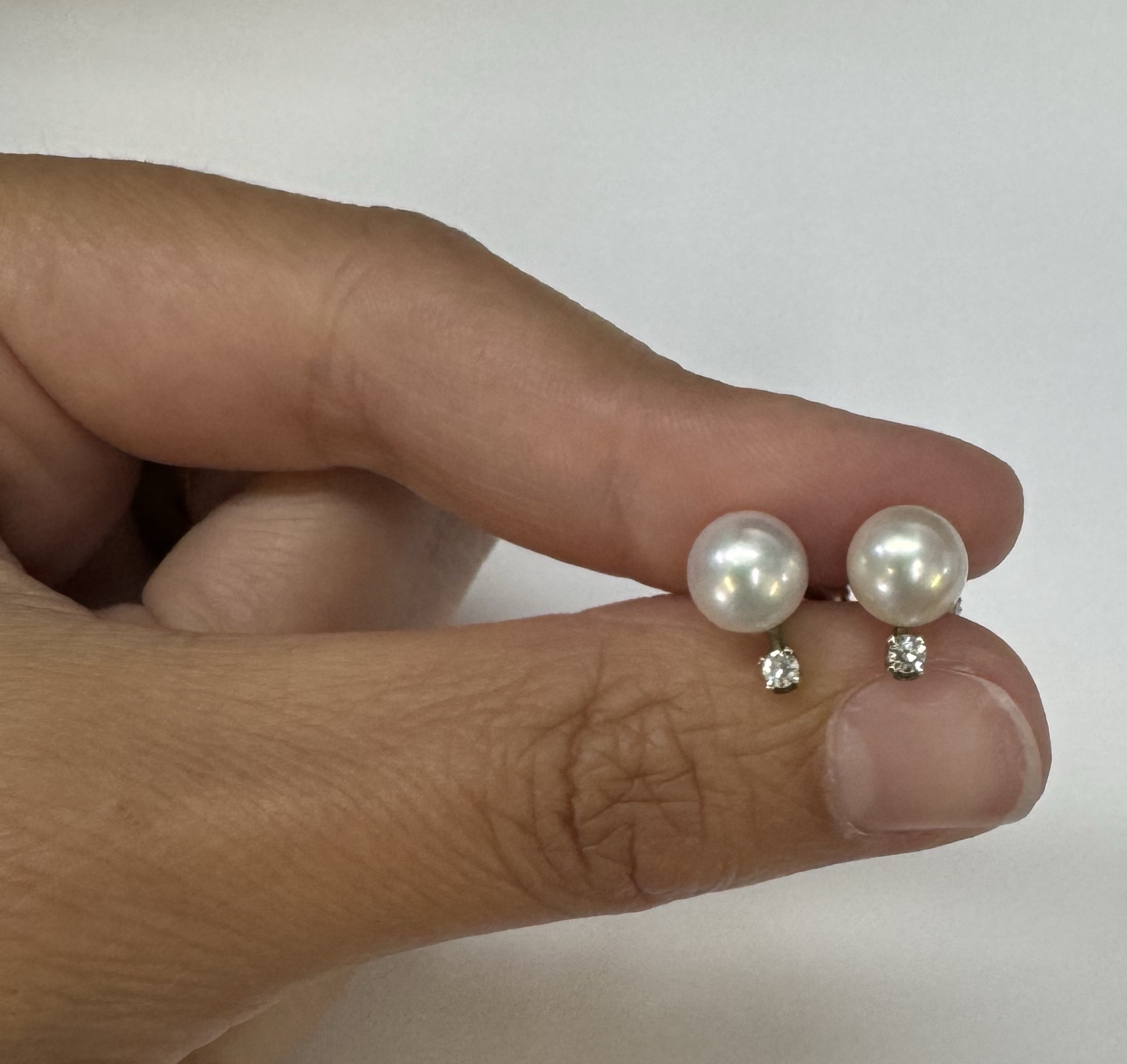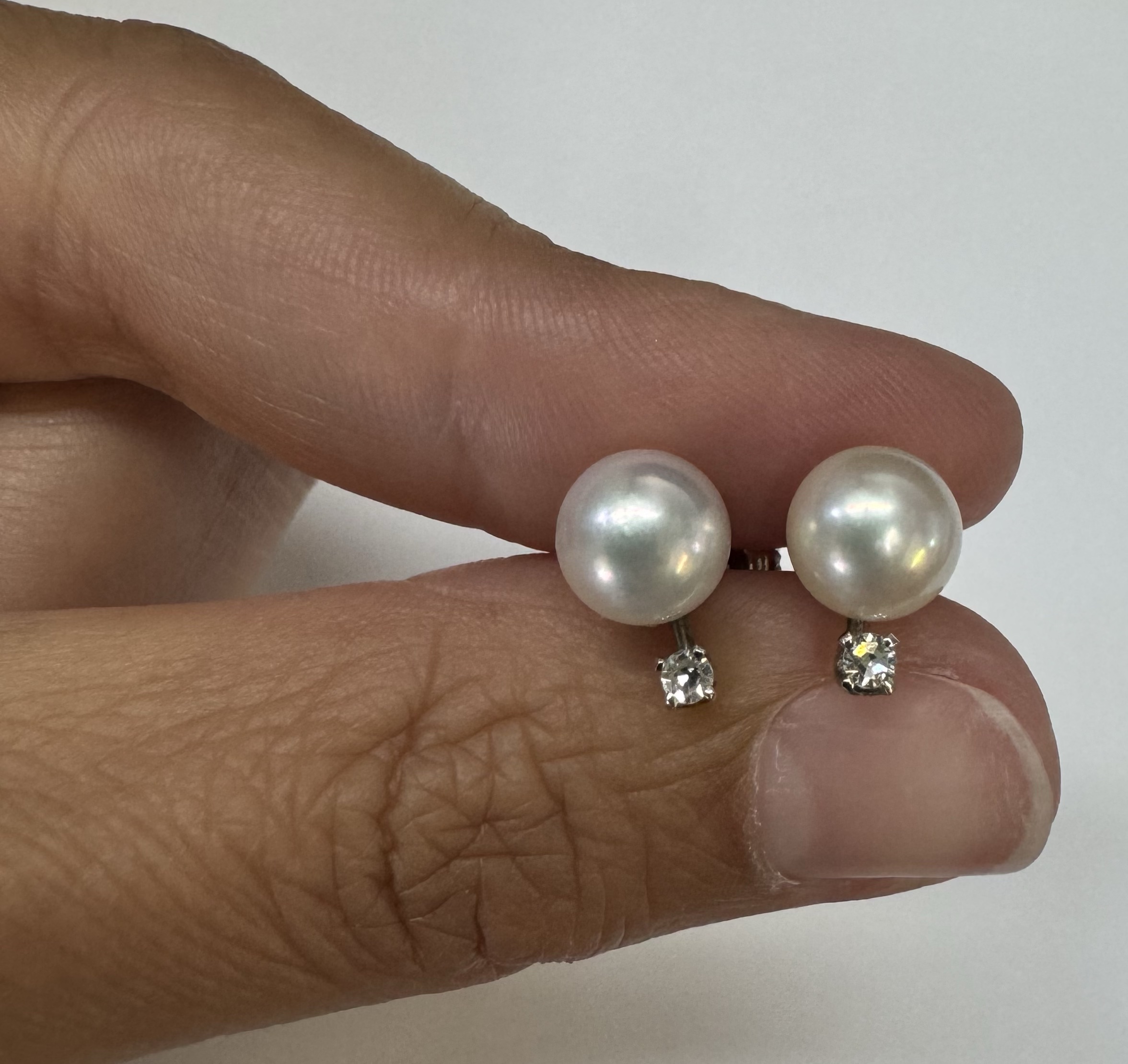 Another great deal! Vintage 14k white gold 7 mm cultured saltwater pearl & genuine .06 cttw Single Cut diamond screw back stud earrings. These earrings have an entire weight of 1.99 grams. Only one pair available at this price! These will go quick!