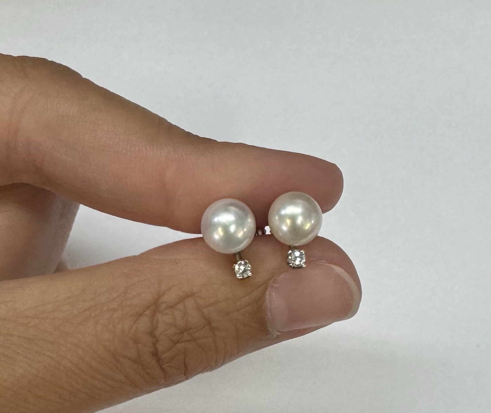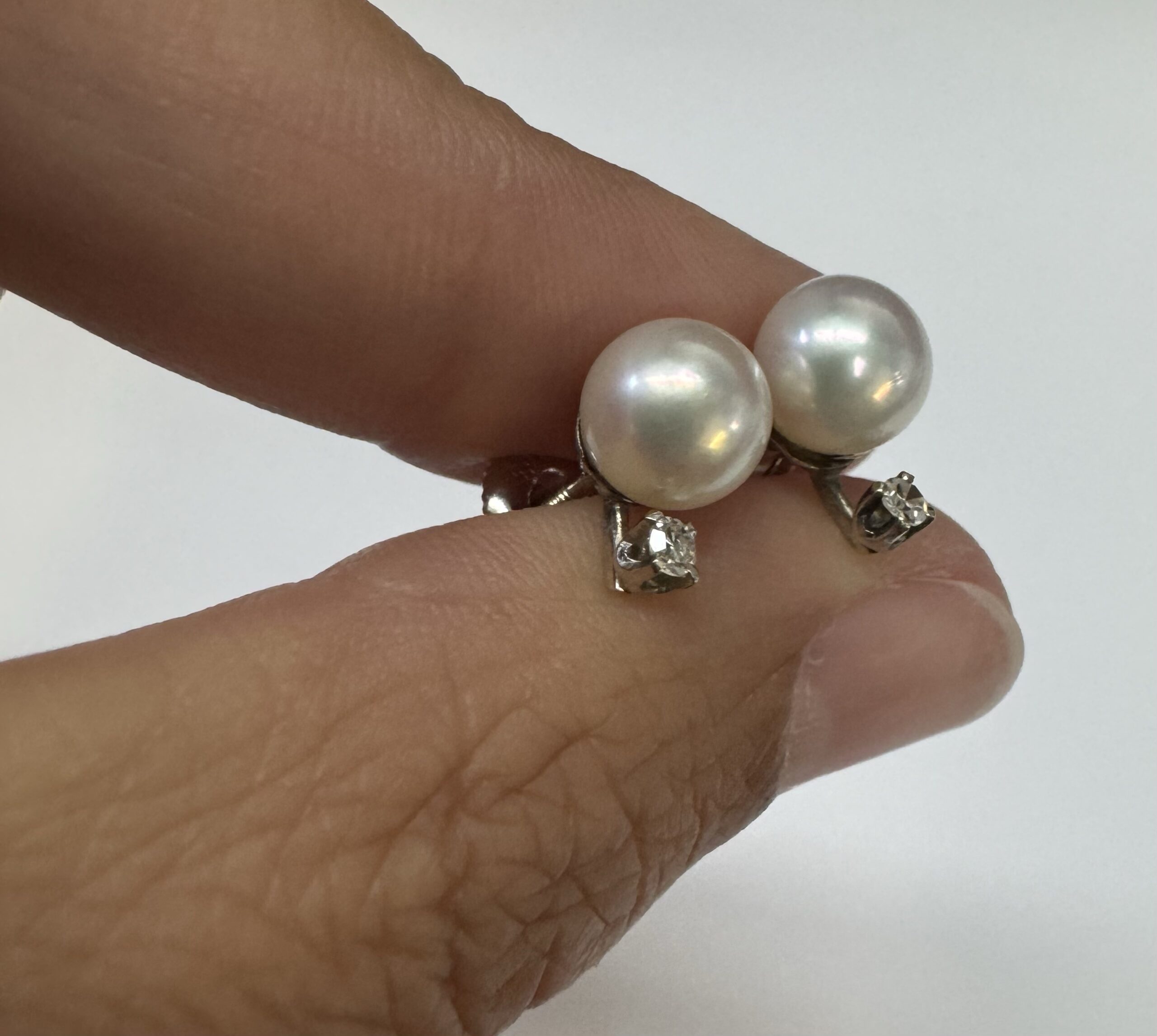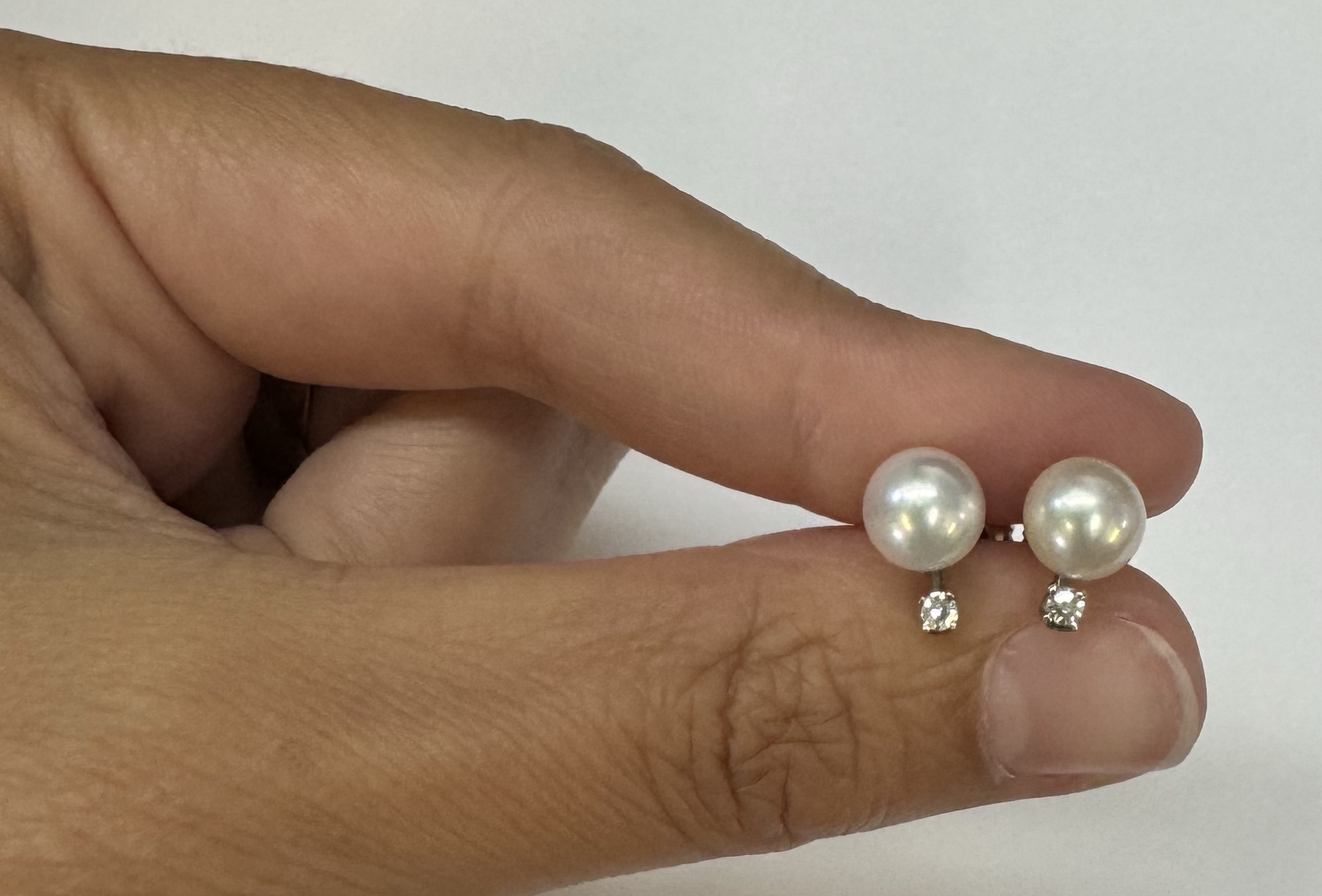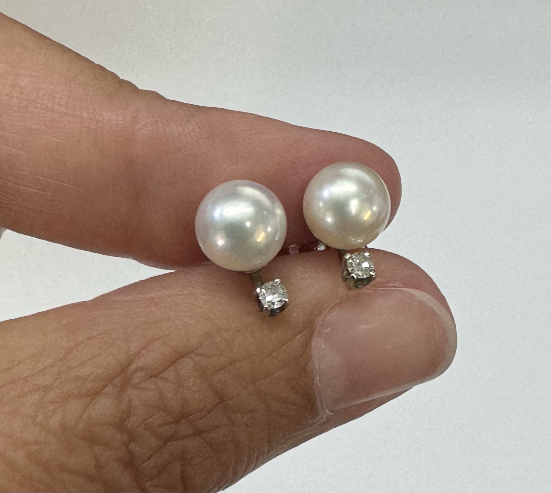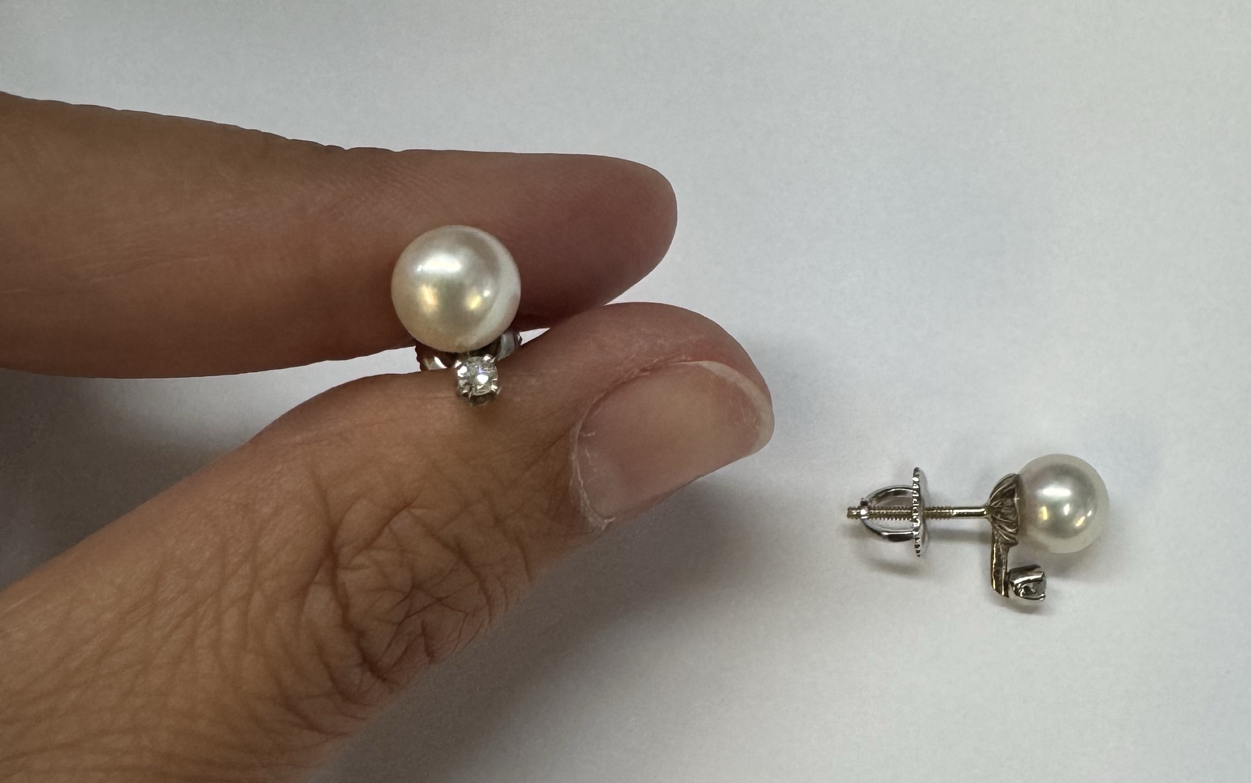 Another great deal! Vintage 14k white gold 7 mm cultured saltwater pearl & genuine .06 cttw Single Cut diamond screw back stud earrings. These earrings have an entire weight of 1.99 grams. Only one pair available at this price! These will go quick!