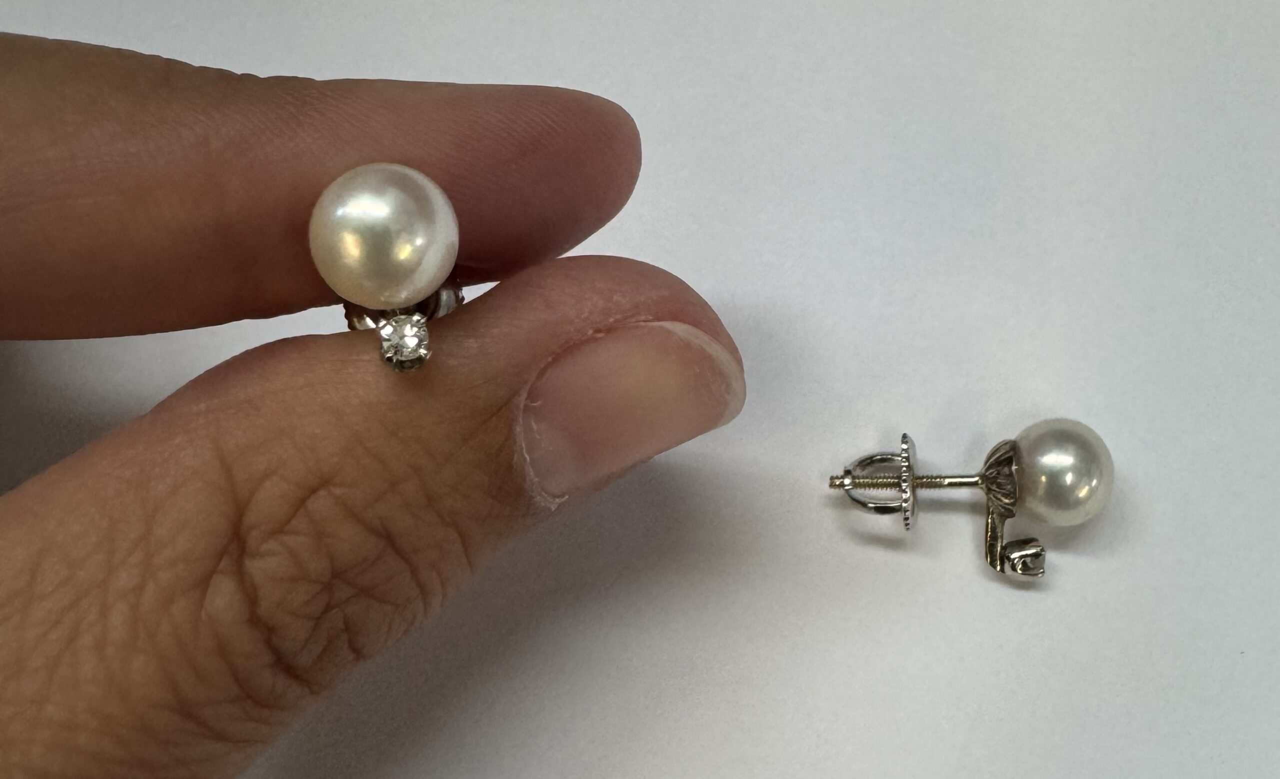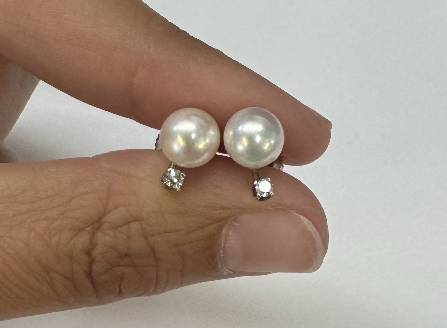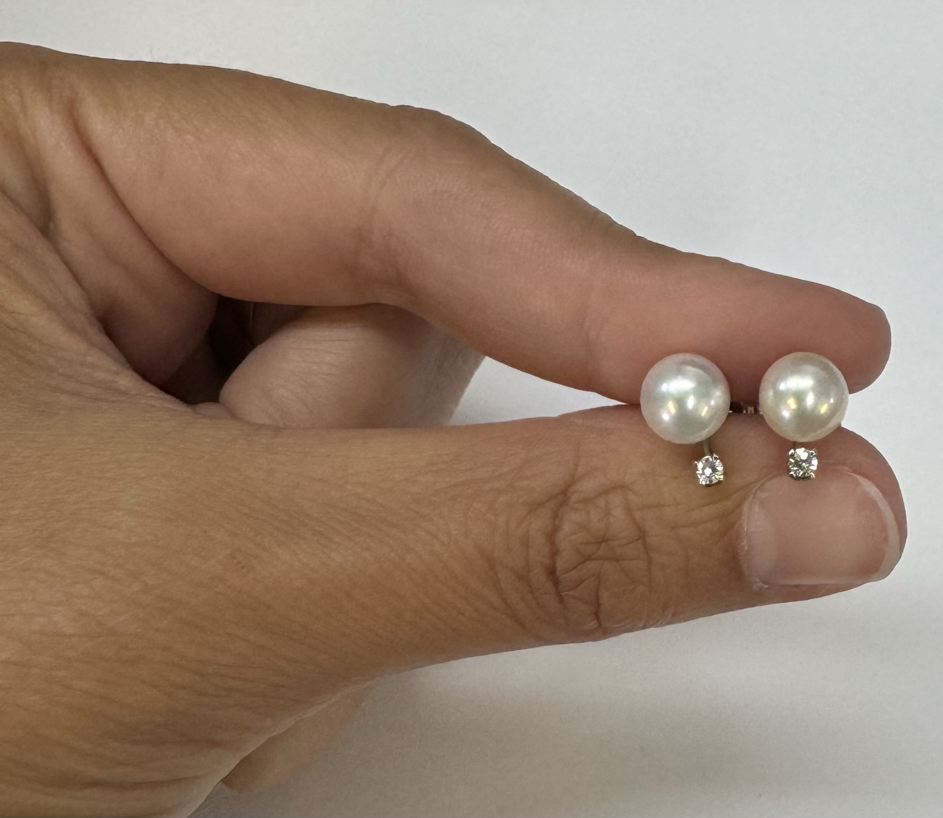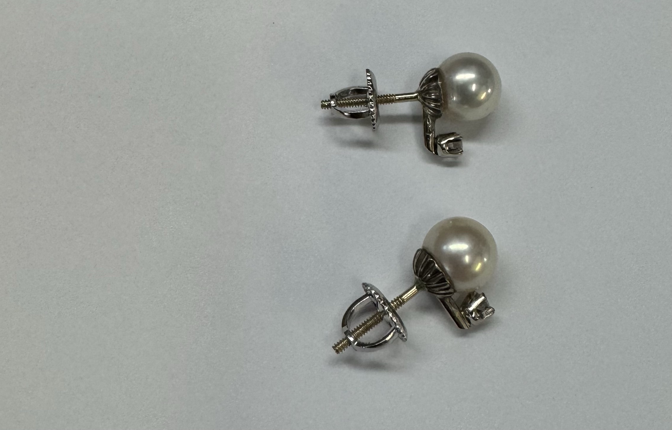 Another great deal! Vintage 14k white gold 7 mm cultured saltwater pearl & genuine .06 cttw Single Cut diamond screw back stud earrings. These earrings have an entire weight of 1.99 grams. Only one pair available at this price! These will go quick!