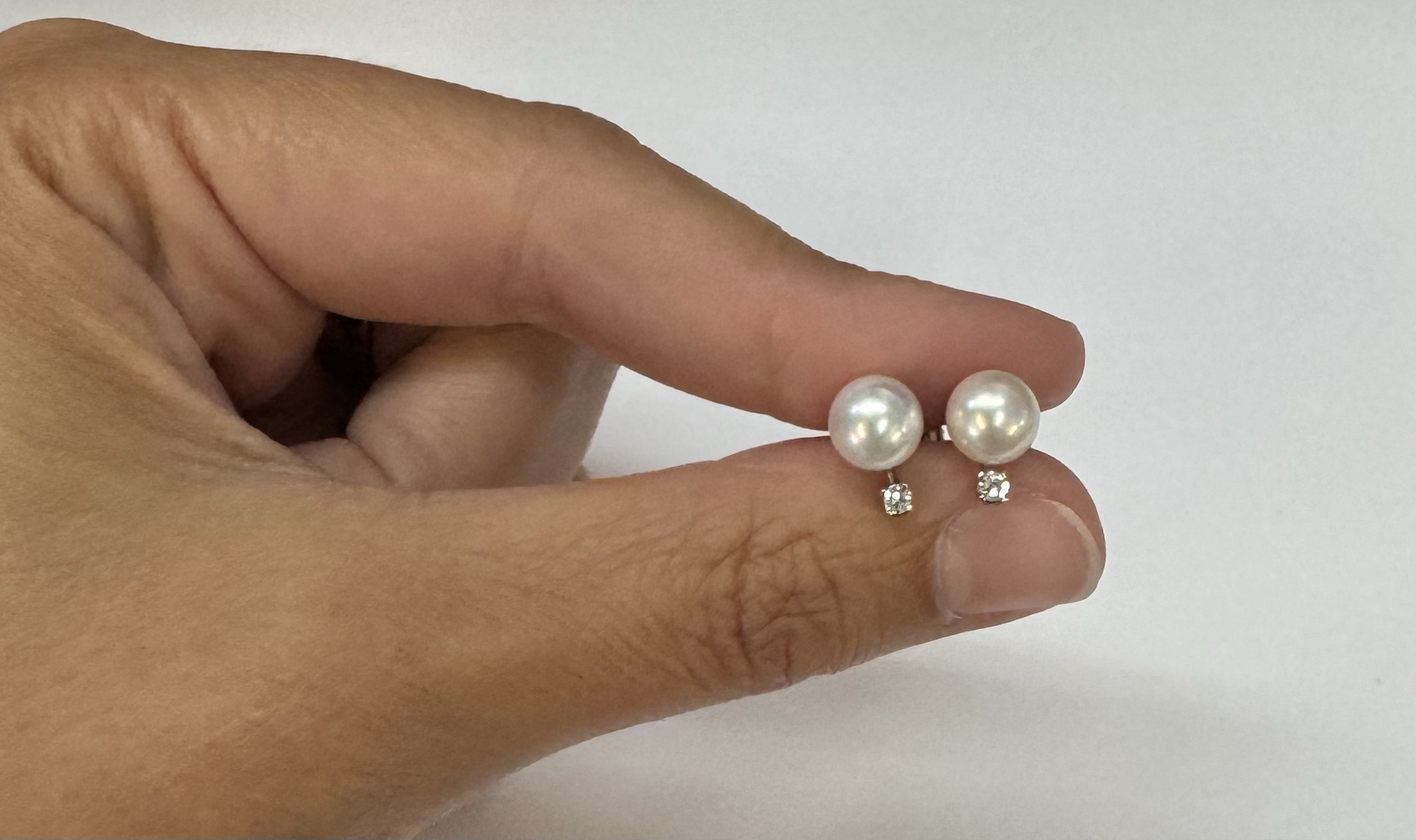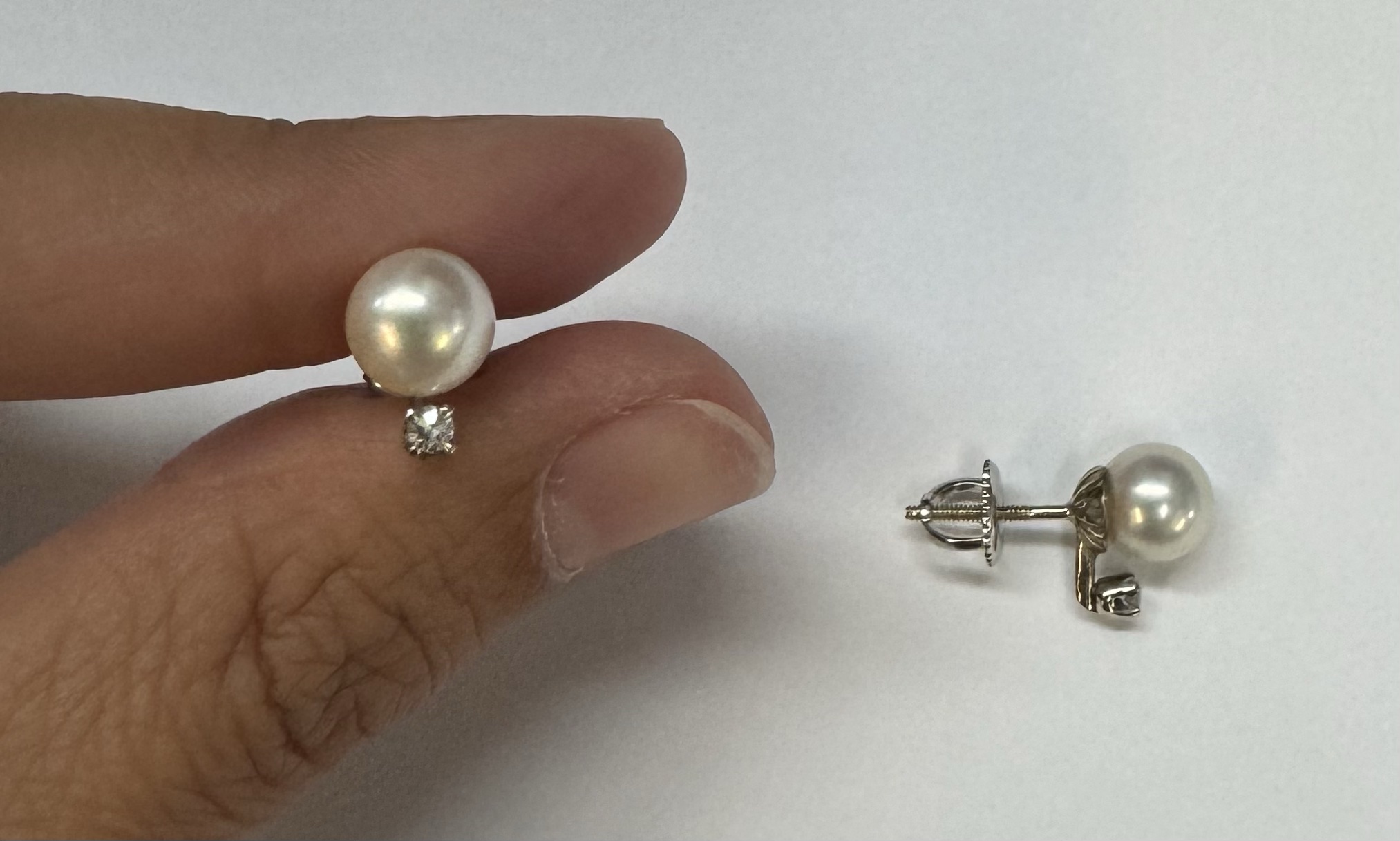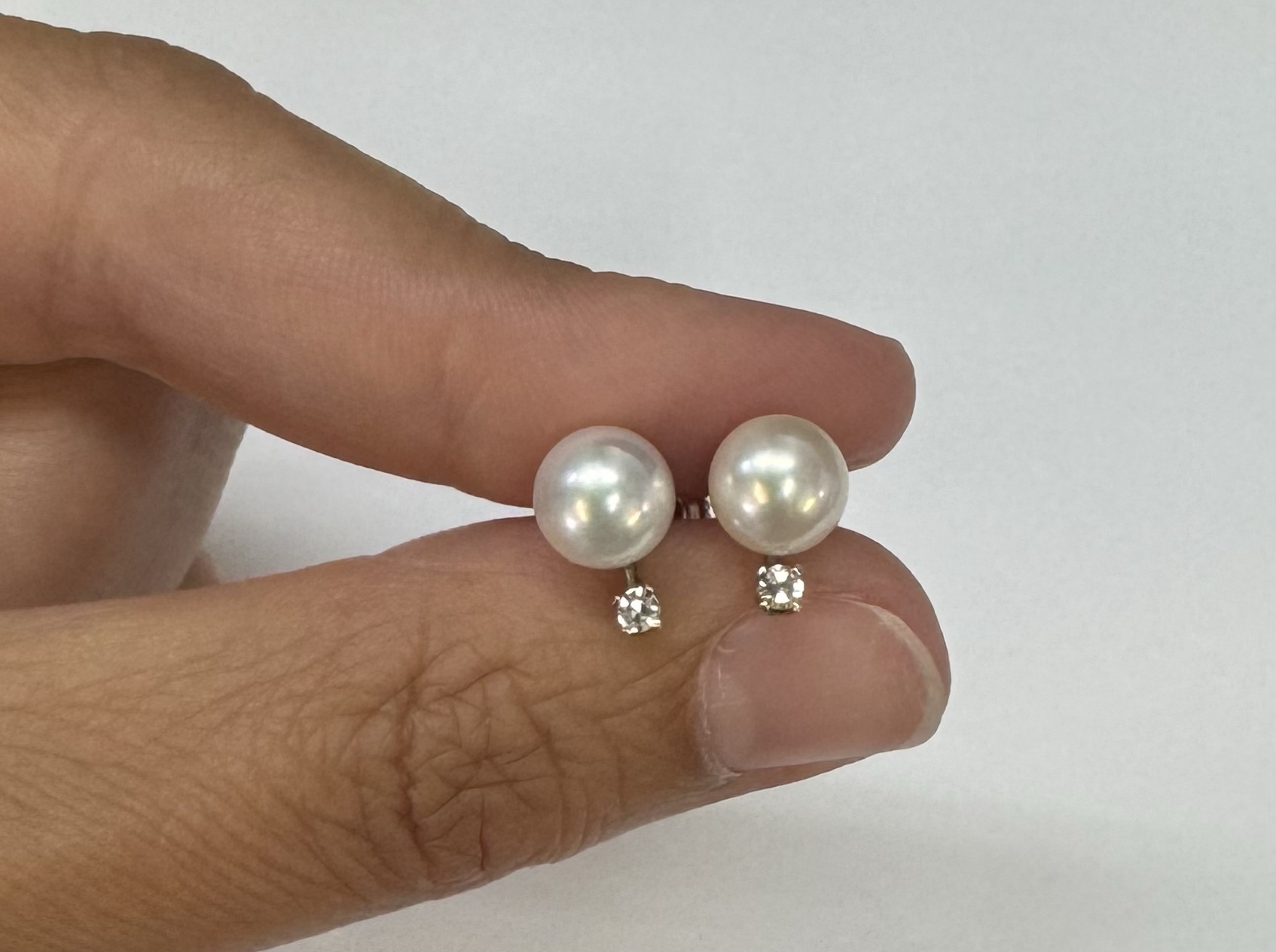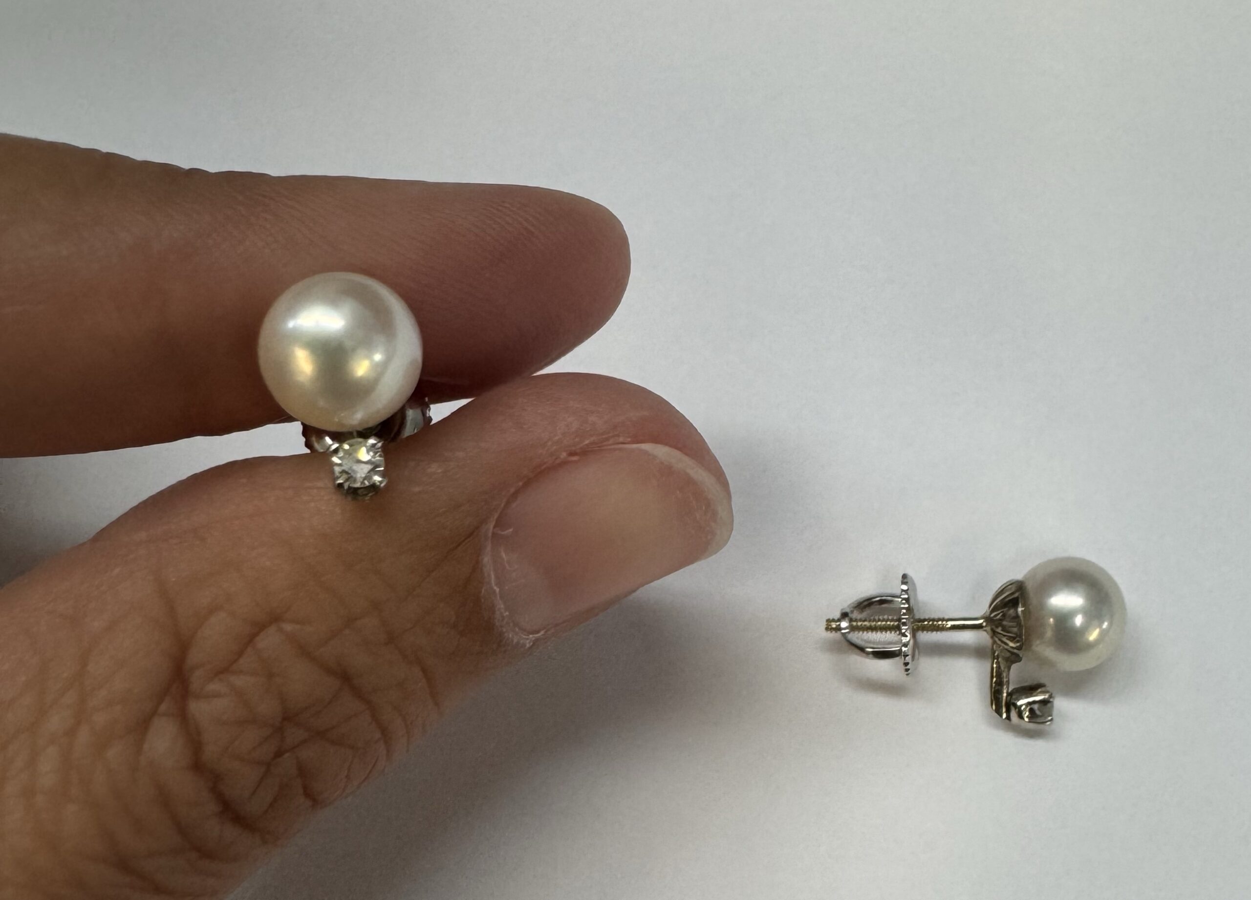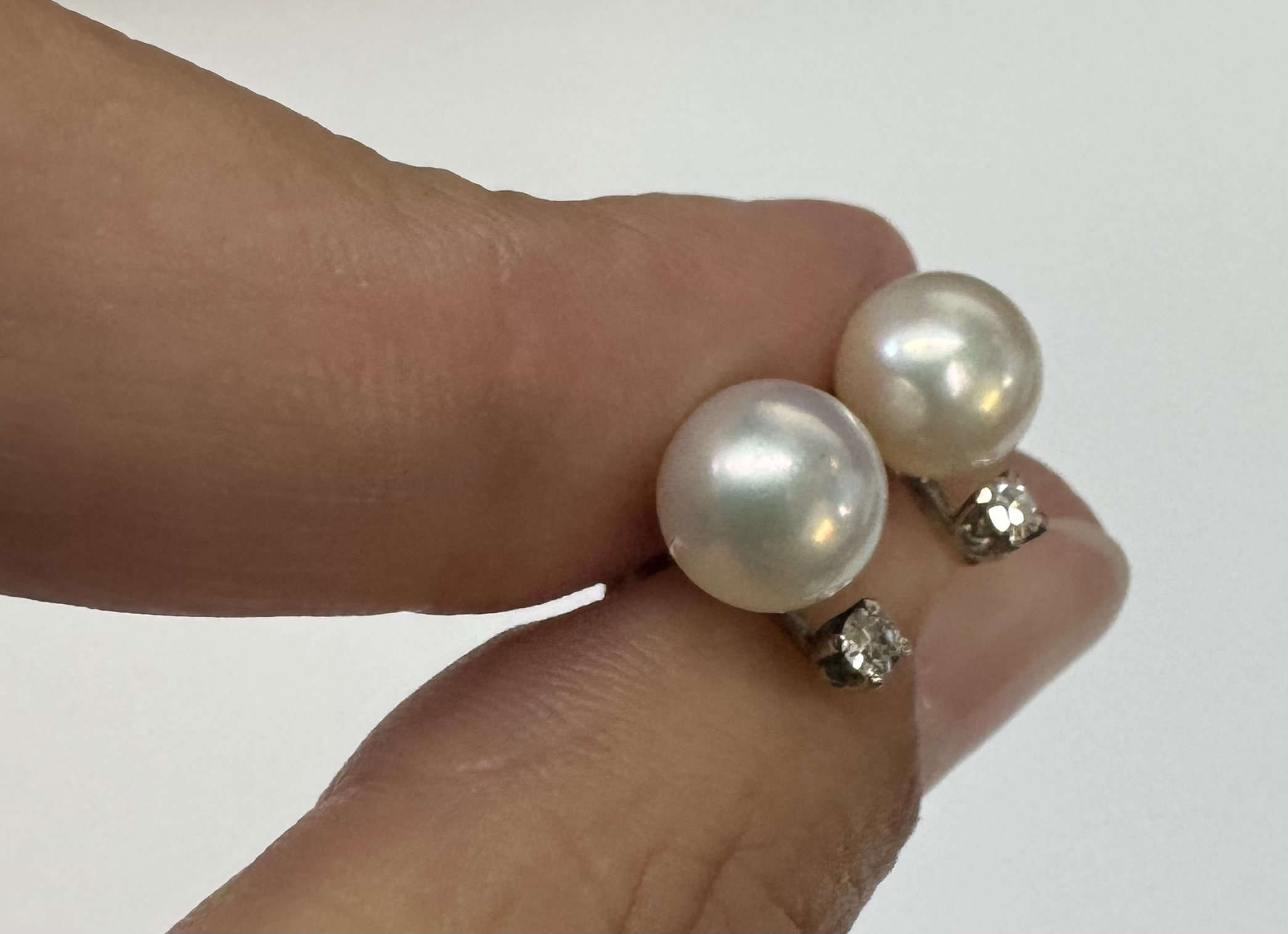 Another great deal! Vintage 14k white gold 7 mm cultured saltwater pearl & genuine .06 cttw Single Cut diamond screw back stud earrings. These earrings have an entire weight of 1.99 grams. Only one pair available at this price! These will go quick!