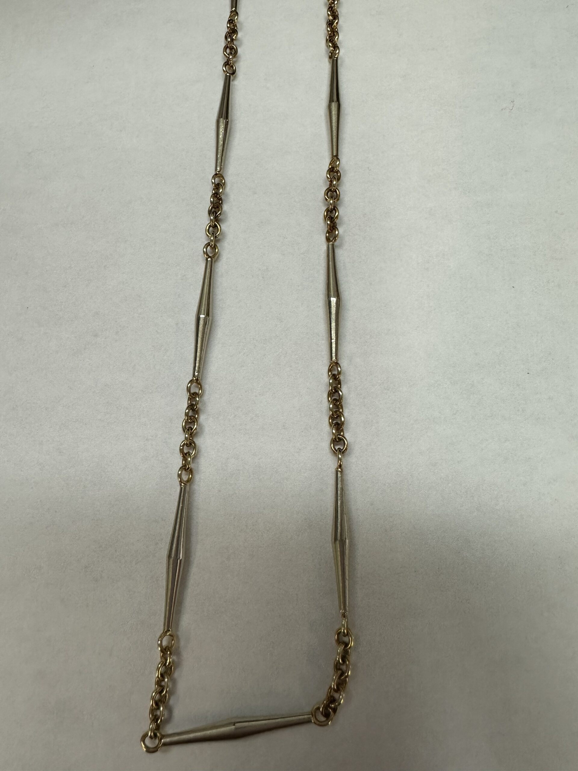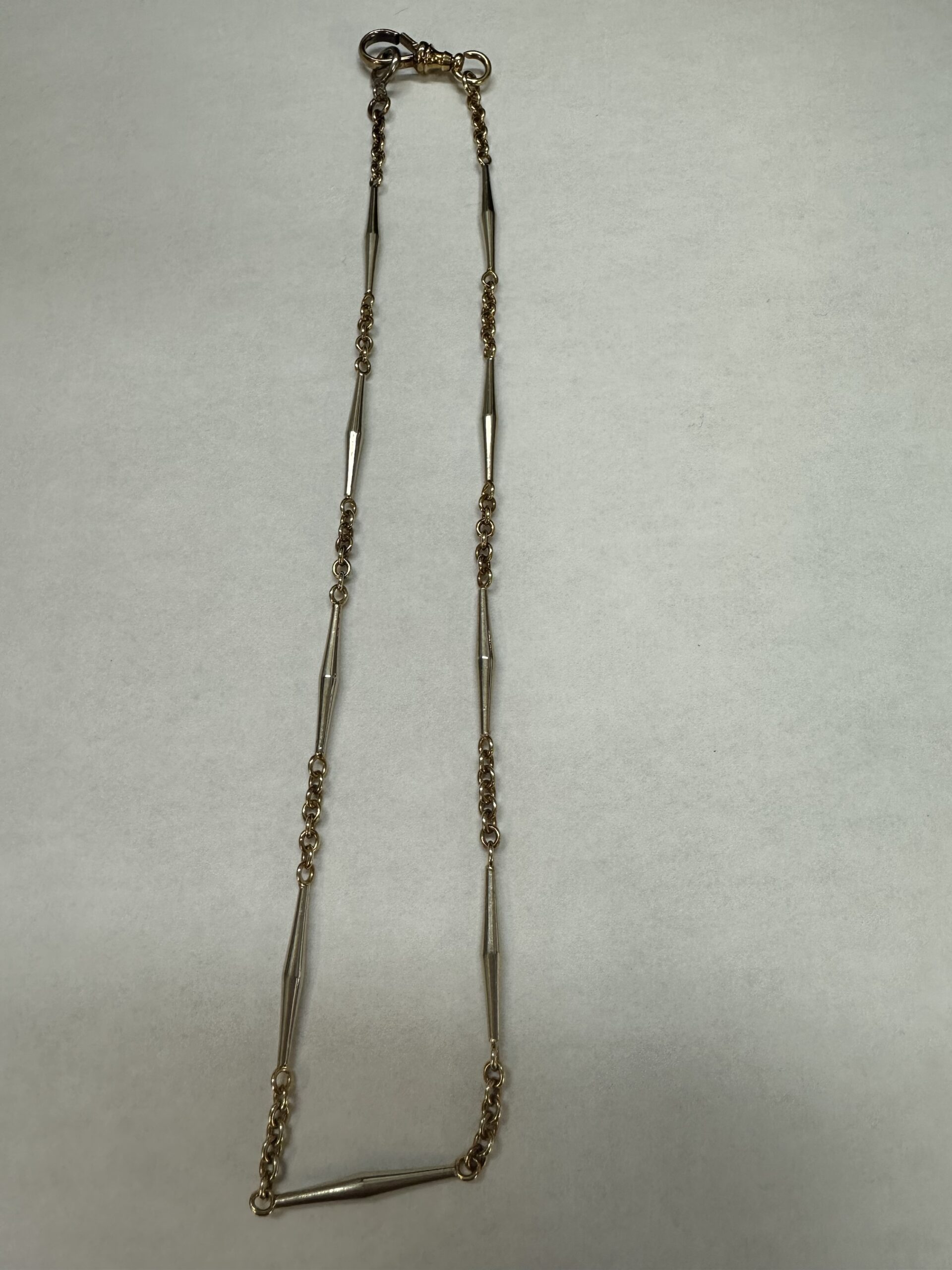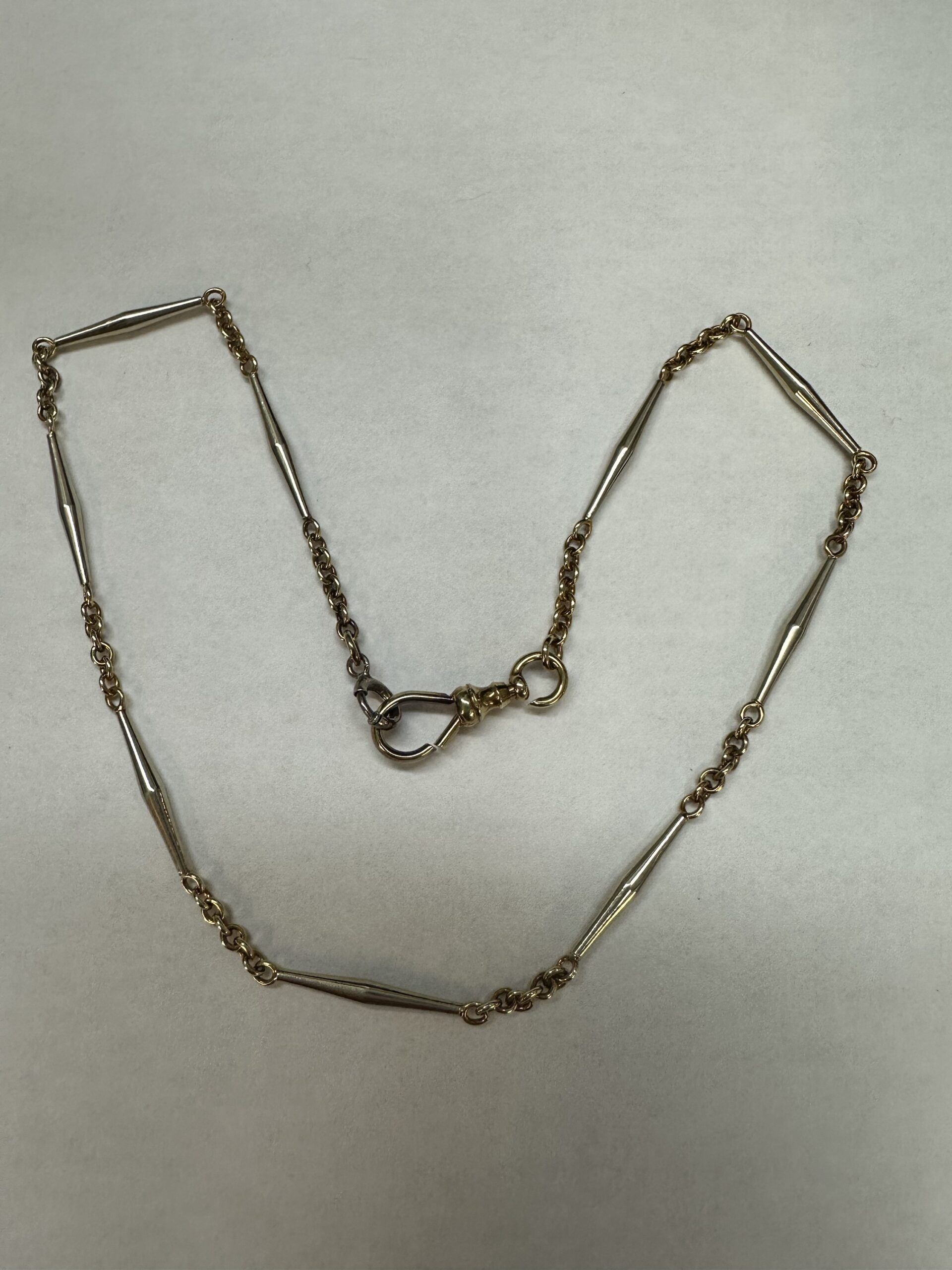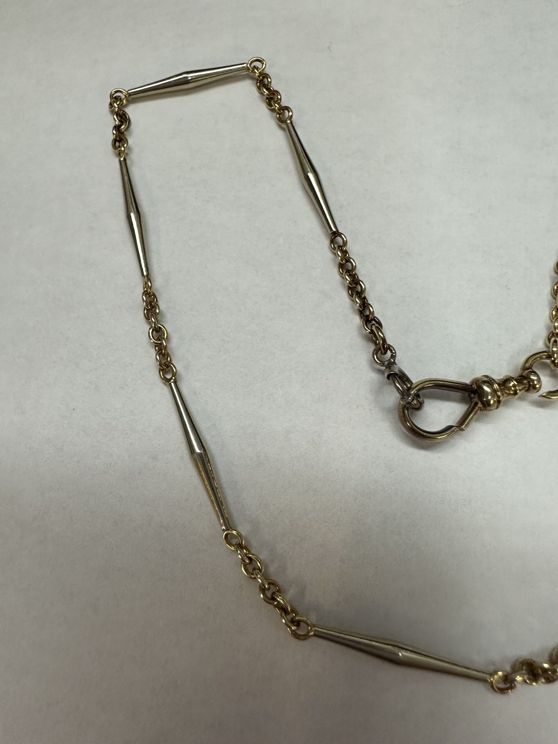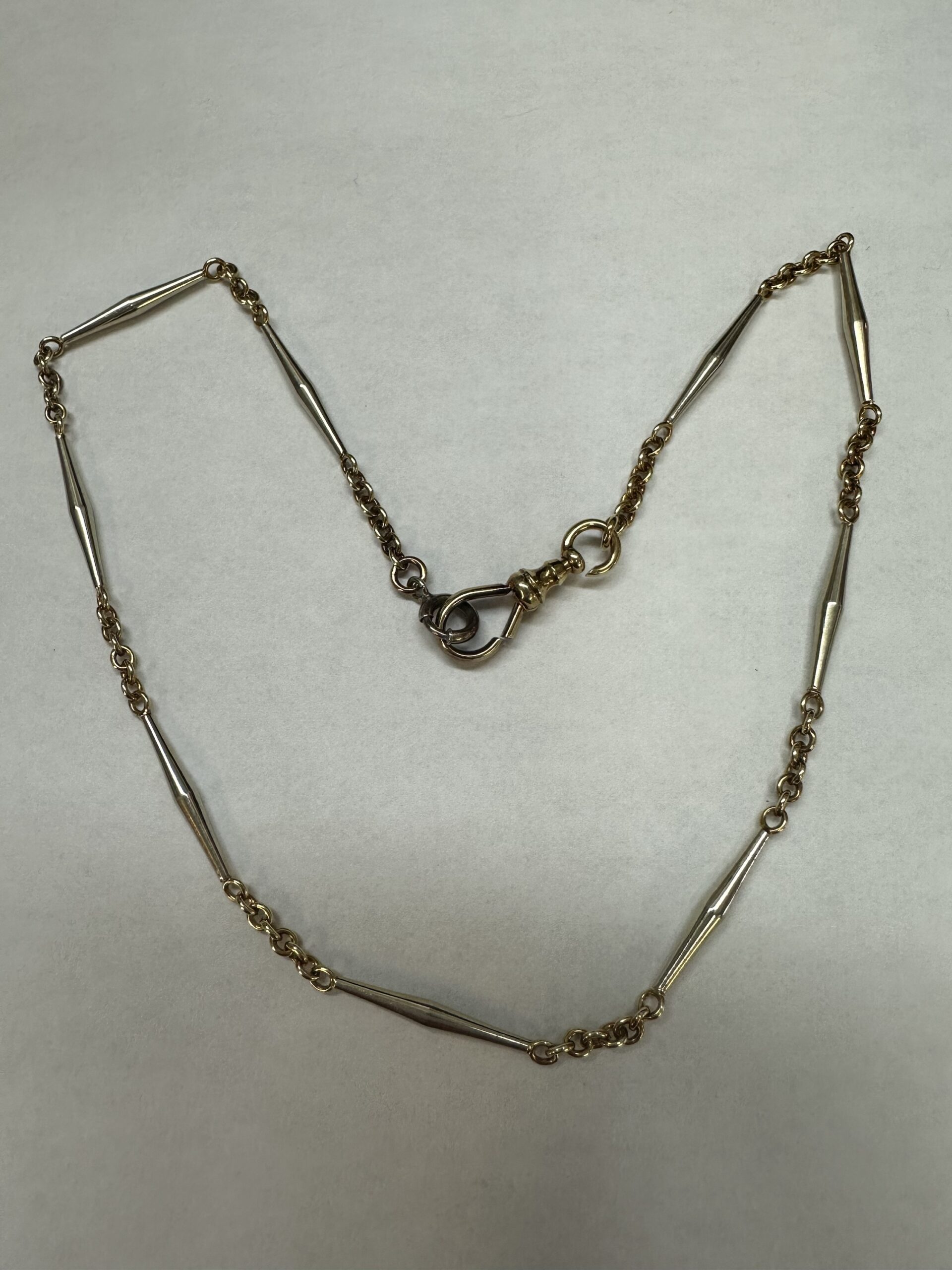 Vintage 14k yellow gold 13.5″ bar and round link pocket watch chain/choker necklace, 9.6 grams.