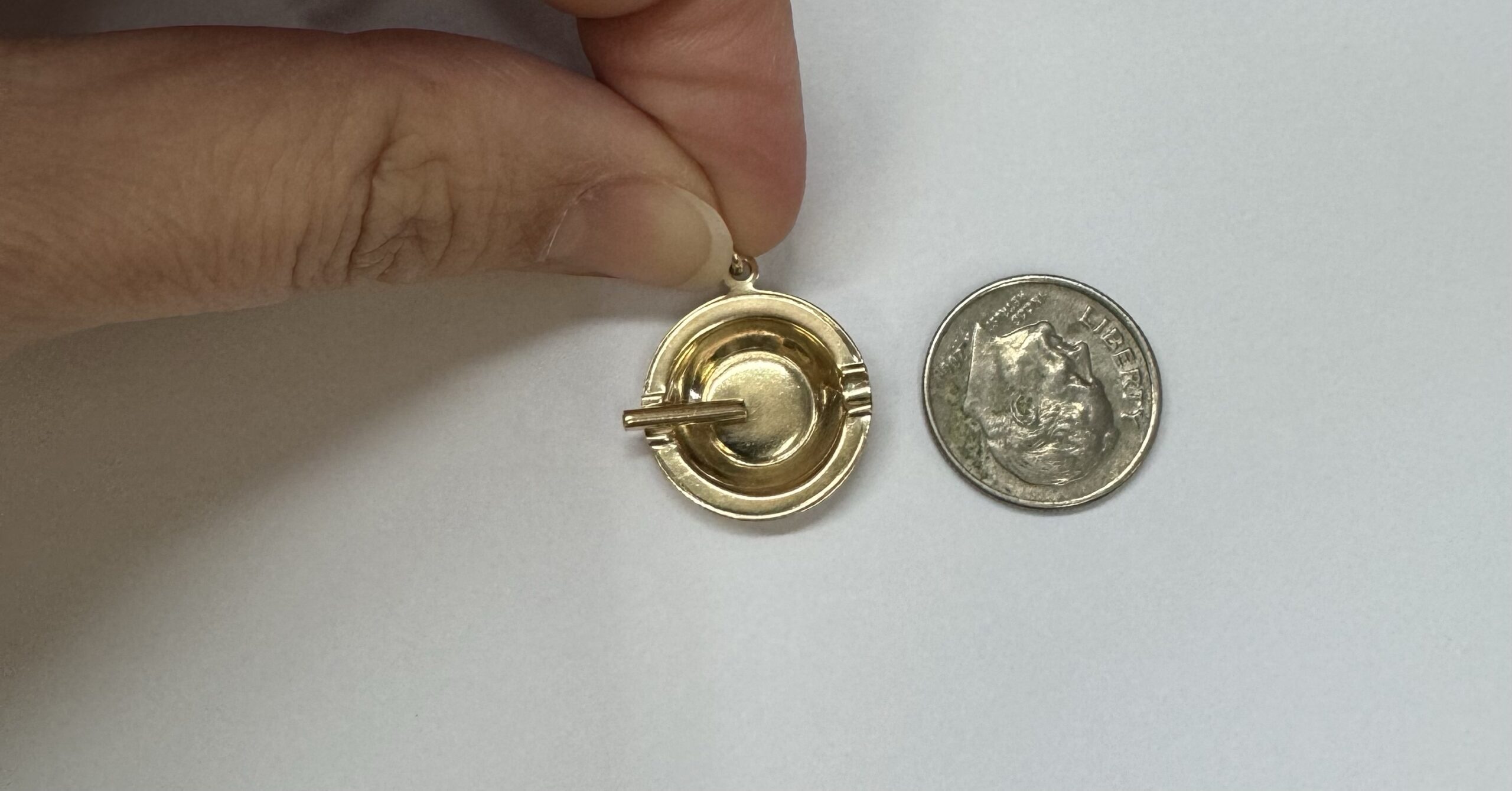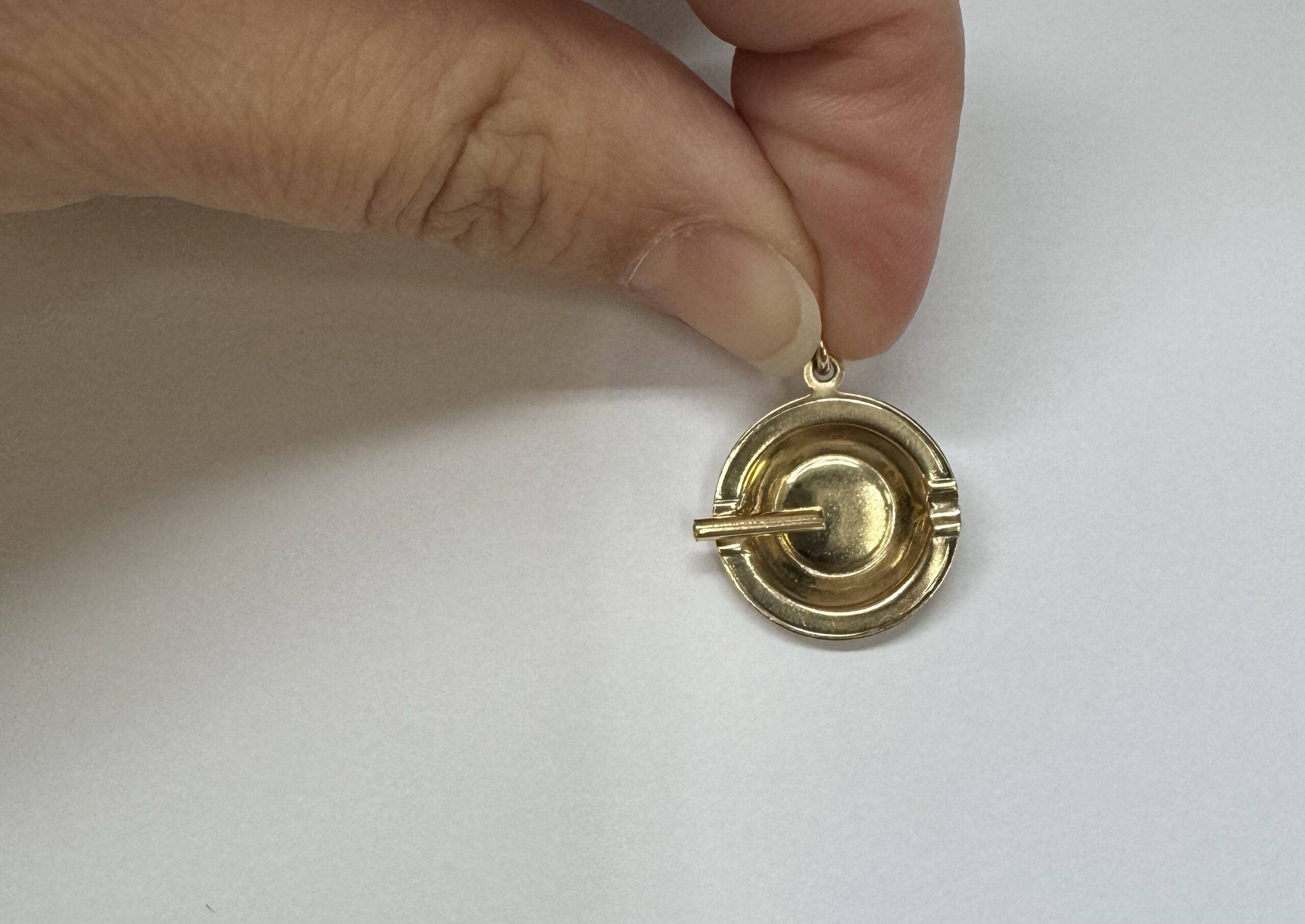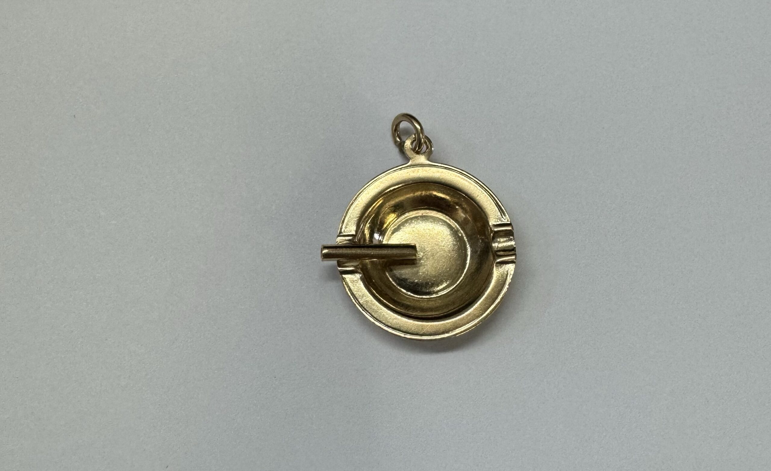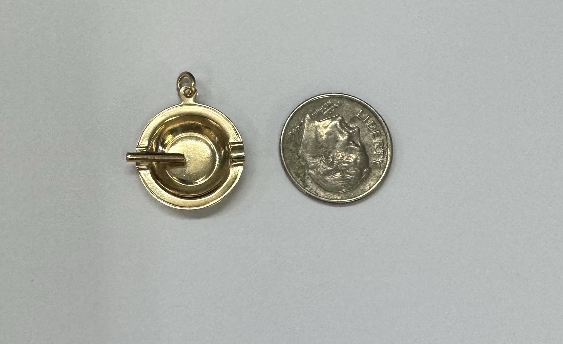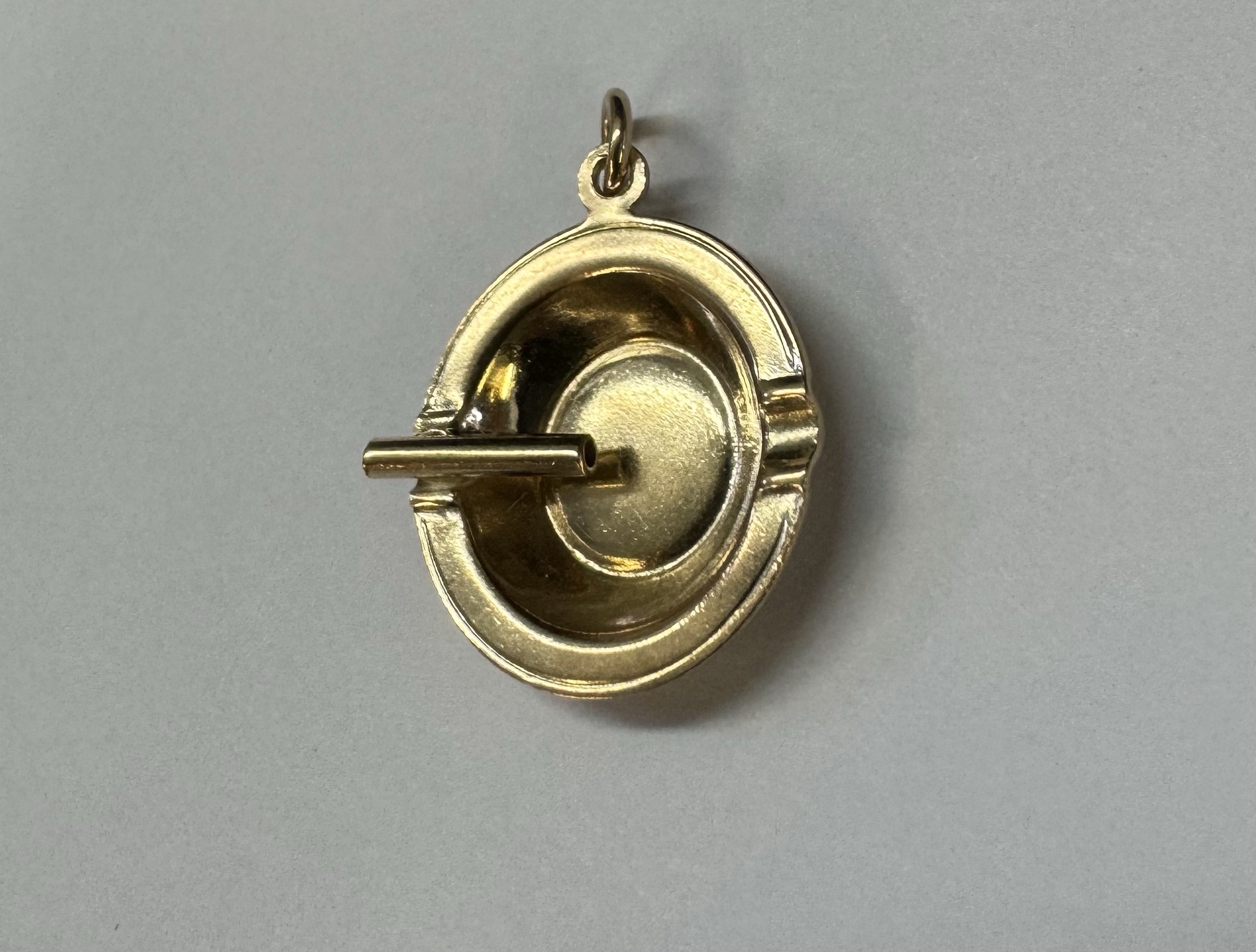 Vintage 14k yellow gold ashtray charm/pendant, 1.76 grams.