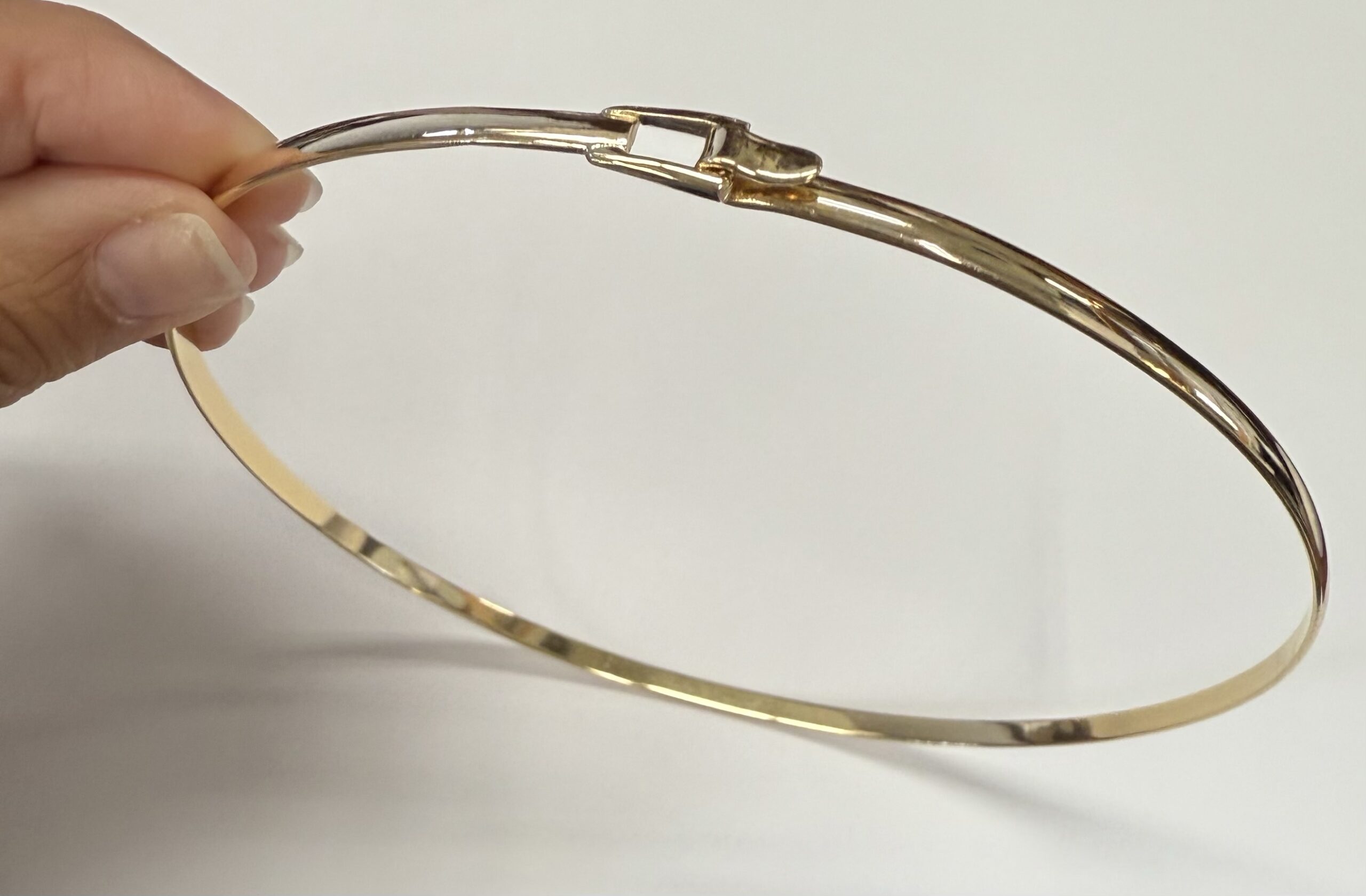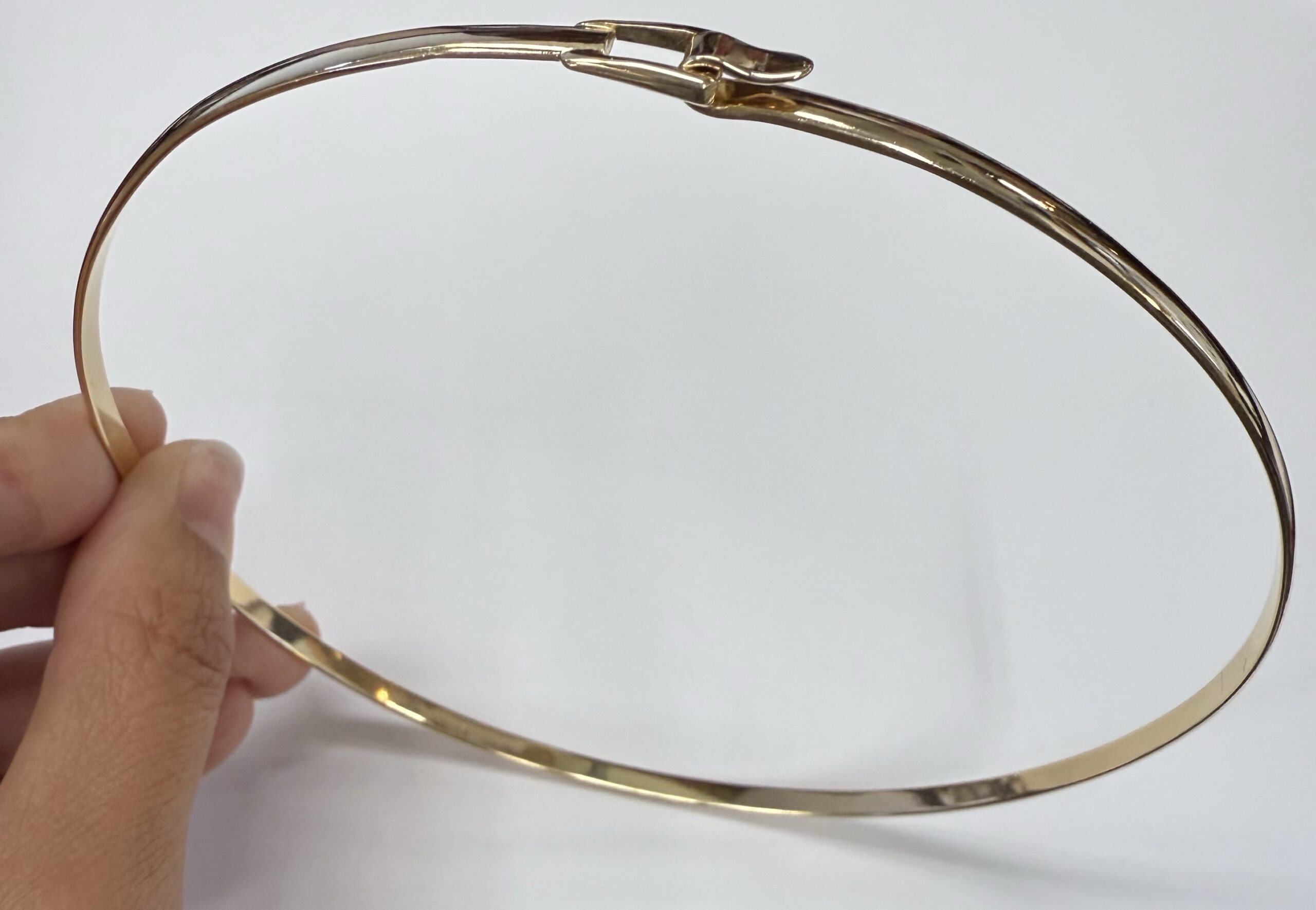 Vintage 14k yellow gold collar necklace with buckle style clasp. This necklace measures 15″ around, 4 mm in width, and it has an entire weight of 25.0 grams.
