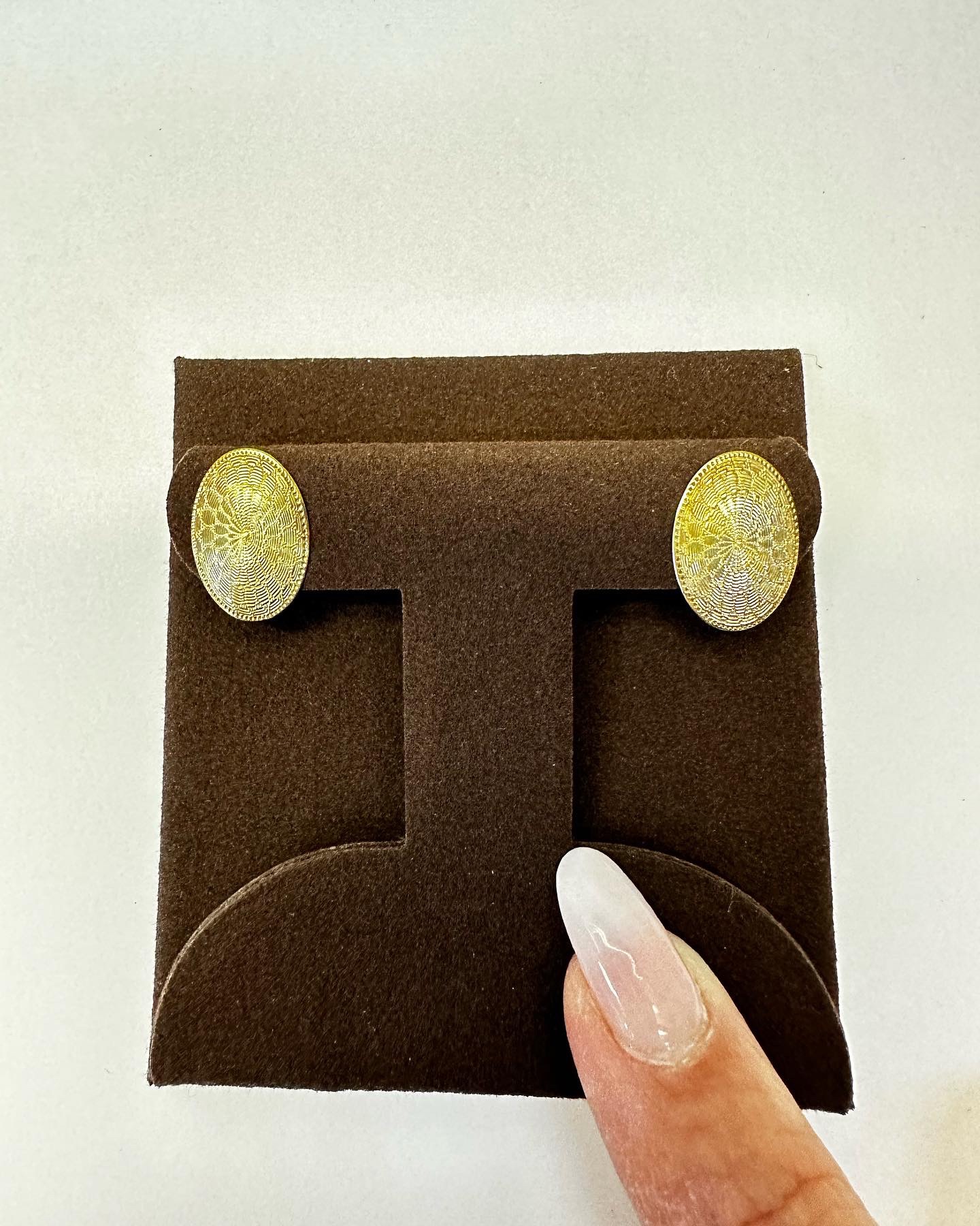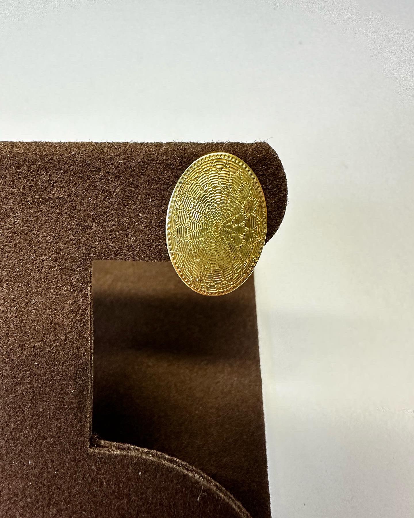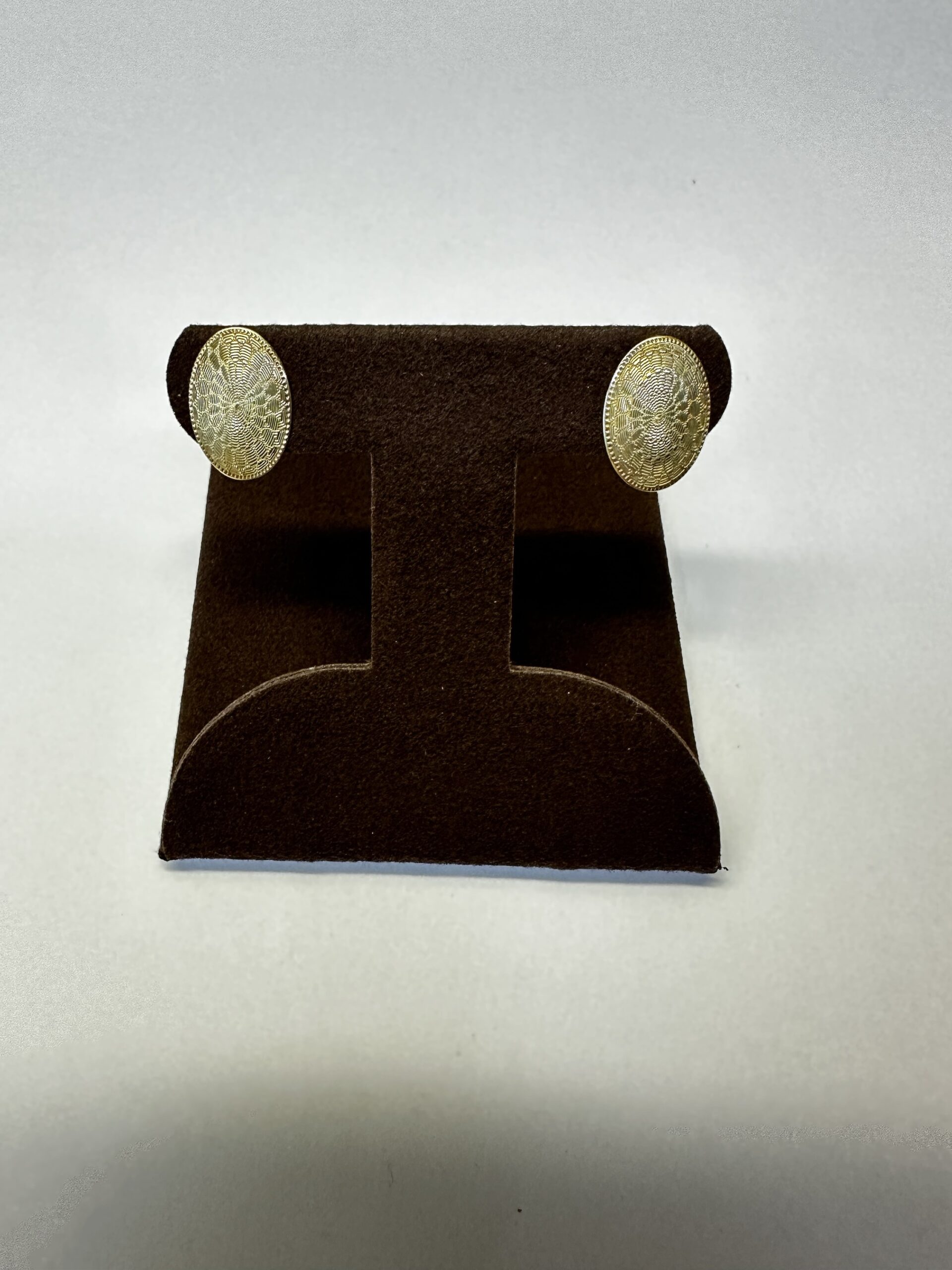Vintage 14k yellow gold 17 x 11 mm engraved oval shaped flat disc stud earrings, 1.9 grams.