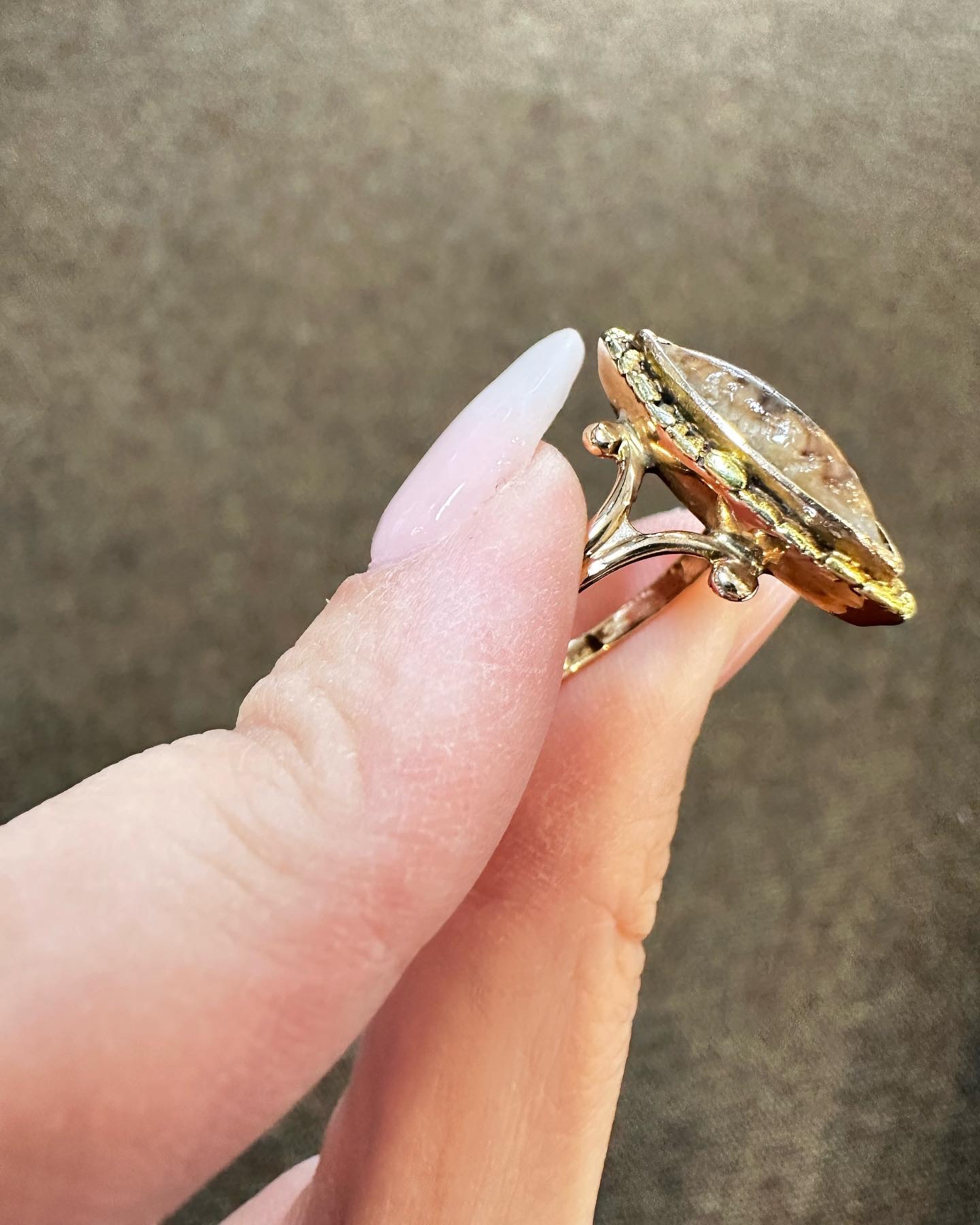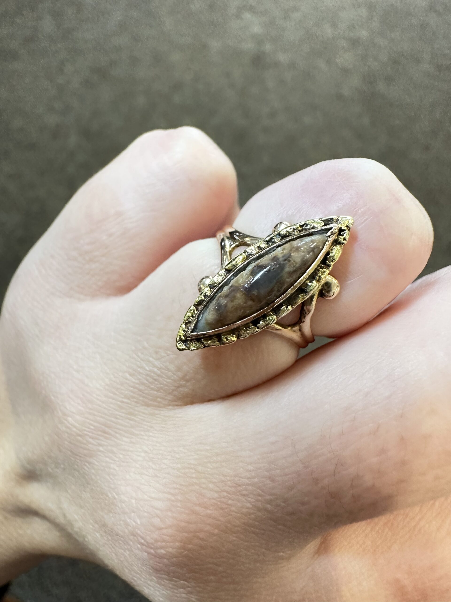 Vintage 14k yellow gold genuine Agate ring, size 5, 2.7 grams.