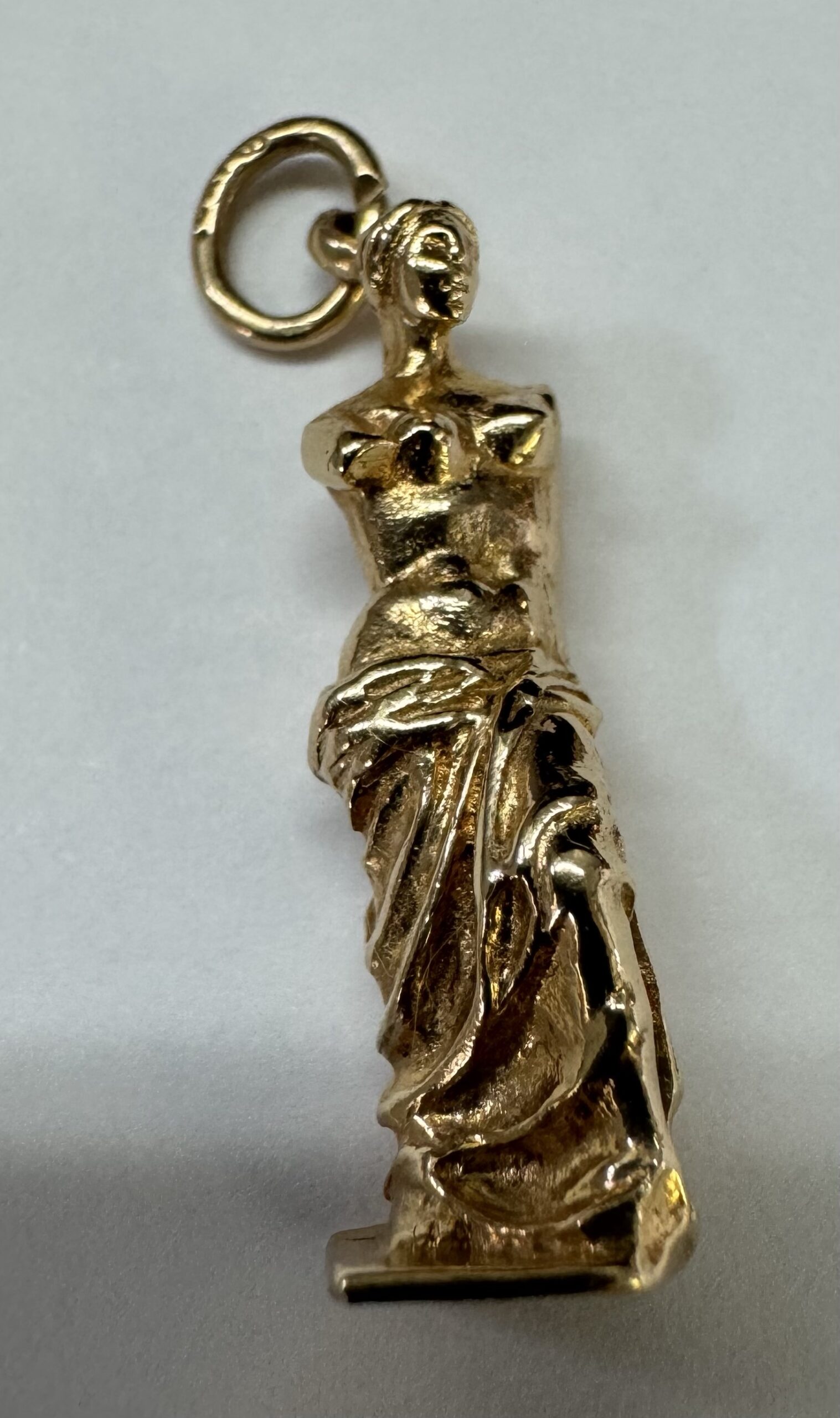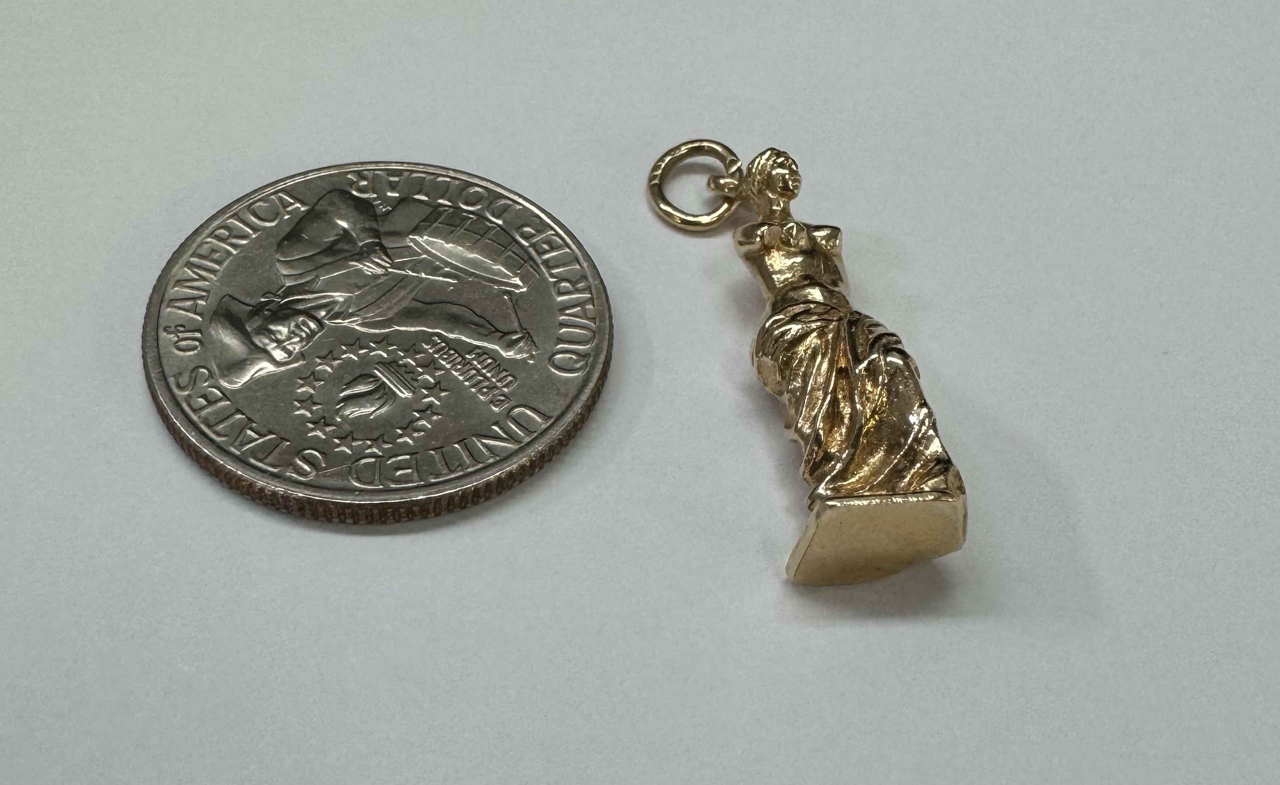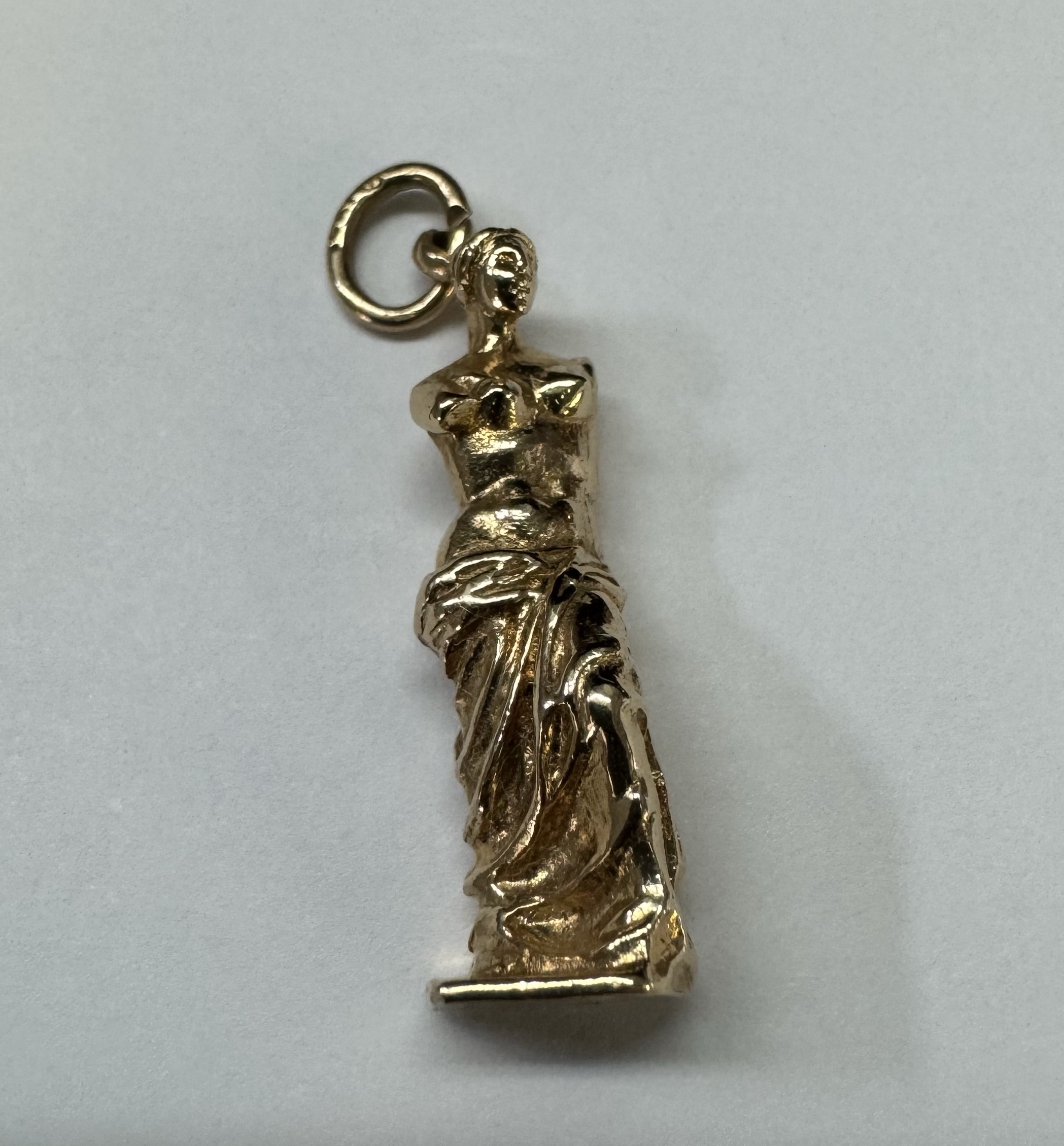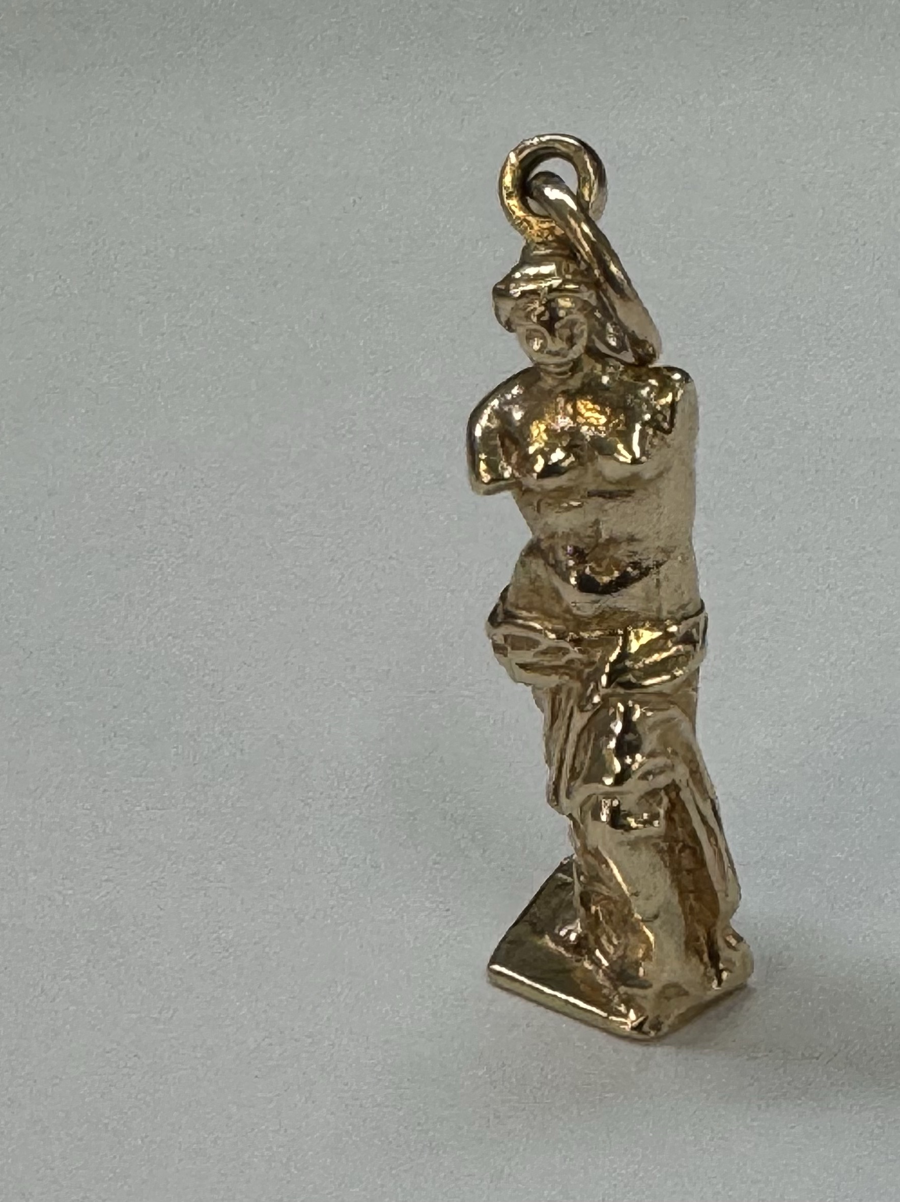 Vintage 14k yellow gold Roman statue charm/pendant. This piece has an entire weight of 5.5 grams.