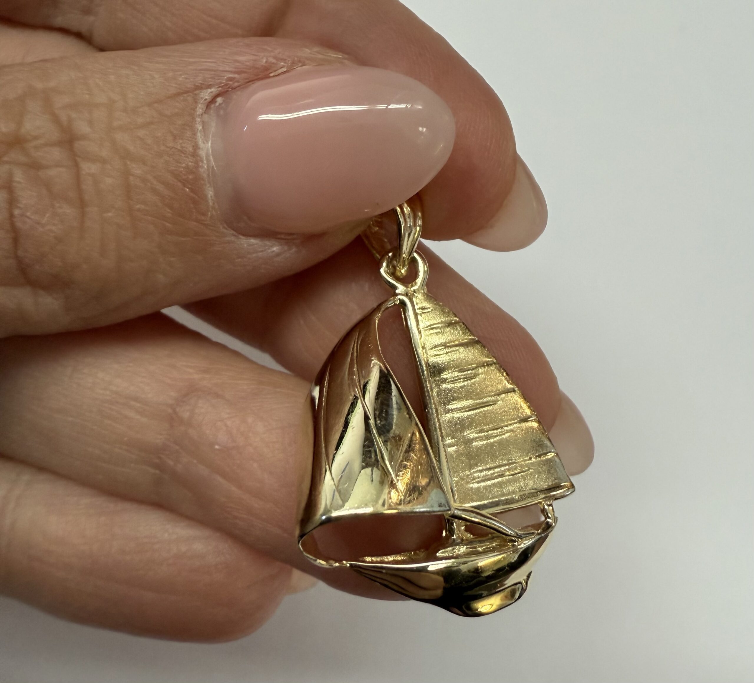 Vintage 14k yellow gold Sailboat charm/pendant. This piece has an entire weight of 4.0 grams.
